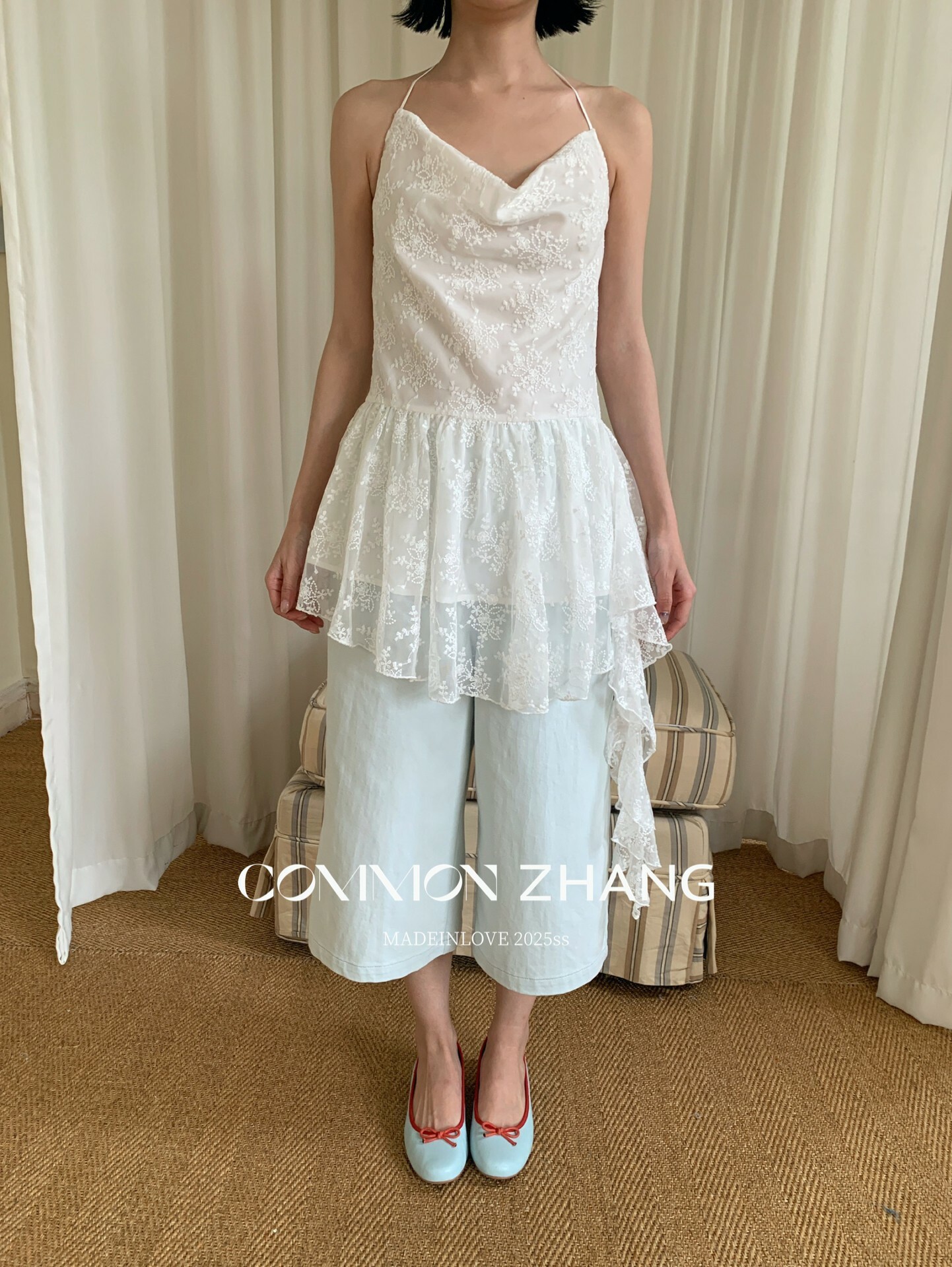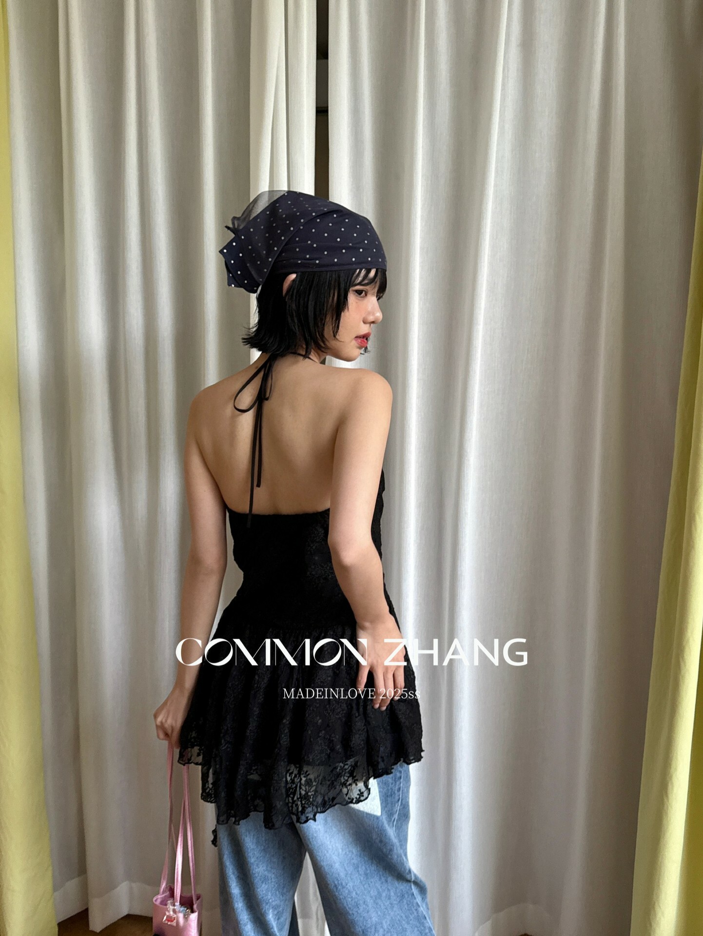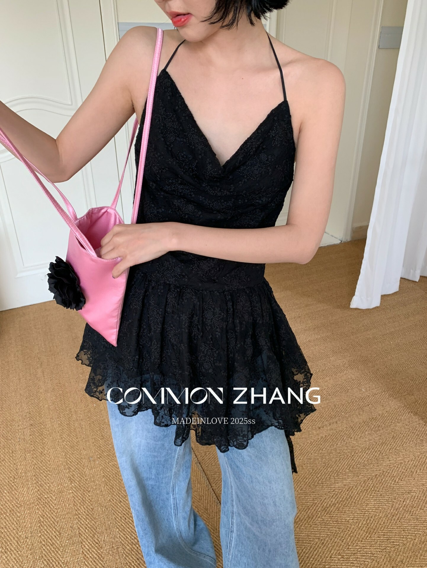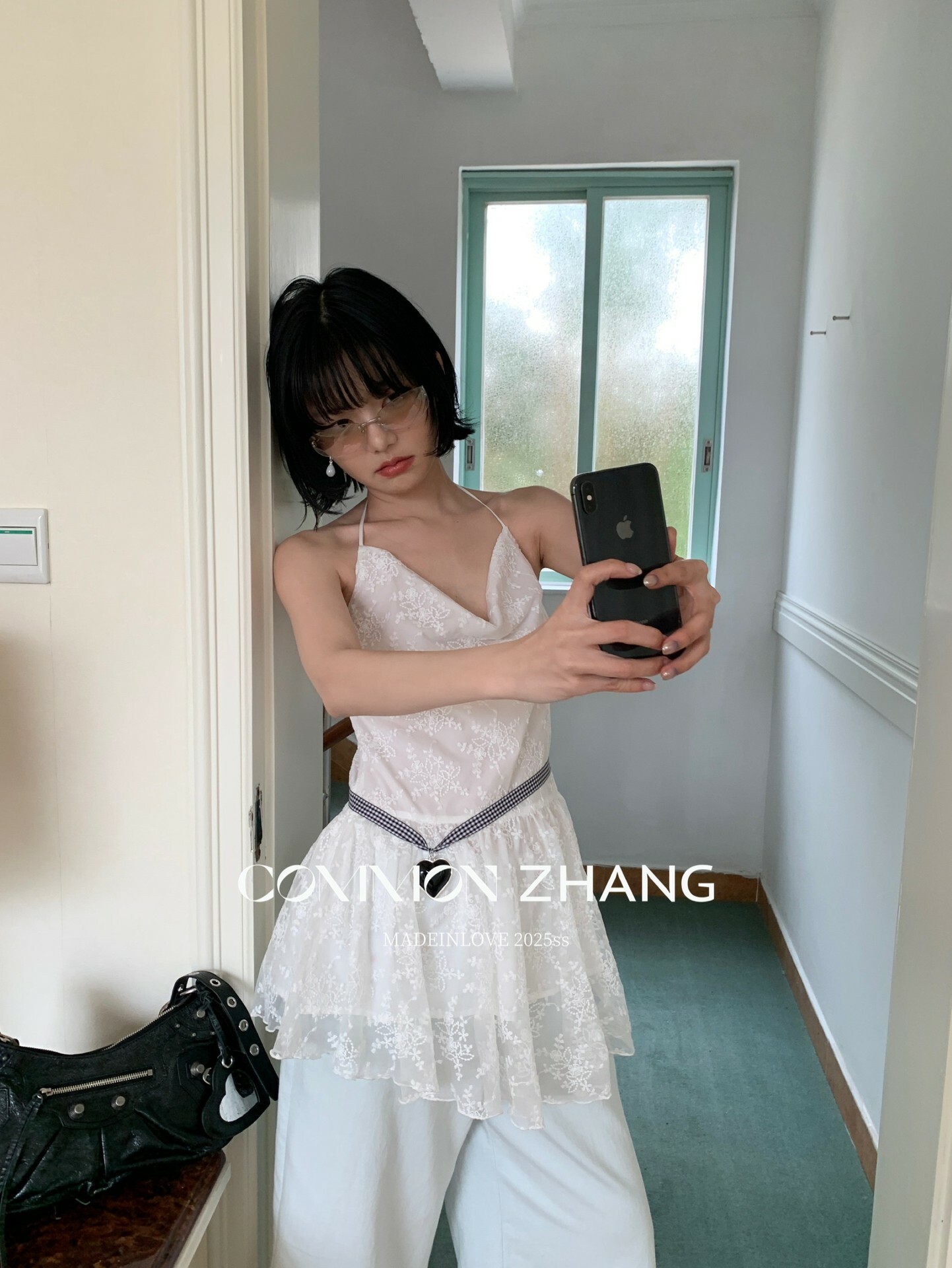 *o-ha-you*【FCZCB203840】夏季新款韓版名媛掛脖露背性感百搭蕩領緹花小衫-2色-如有需要請先諮詢
