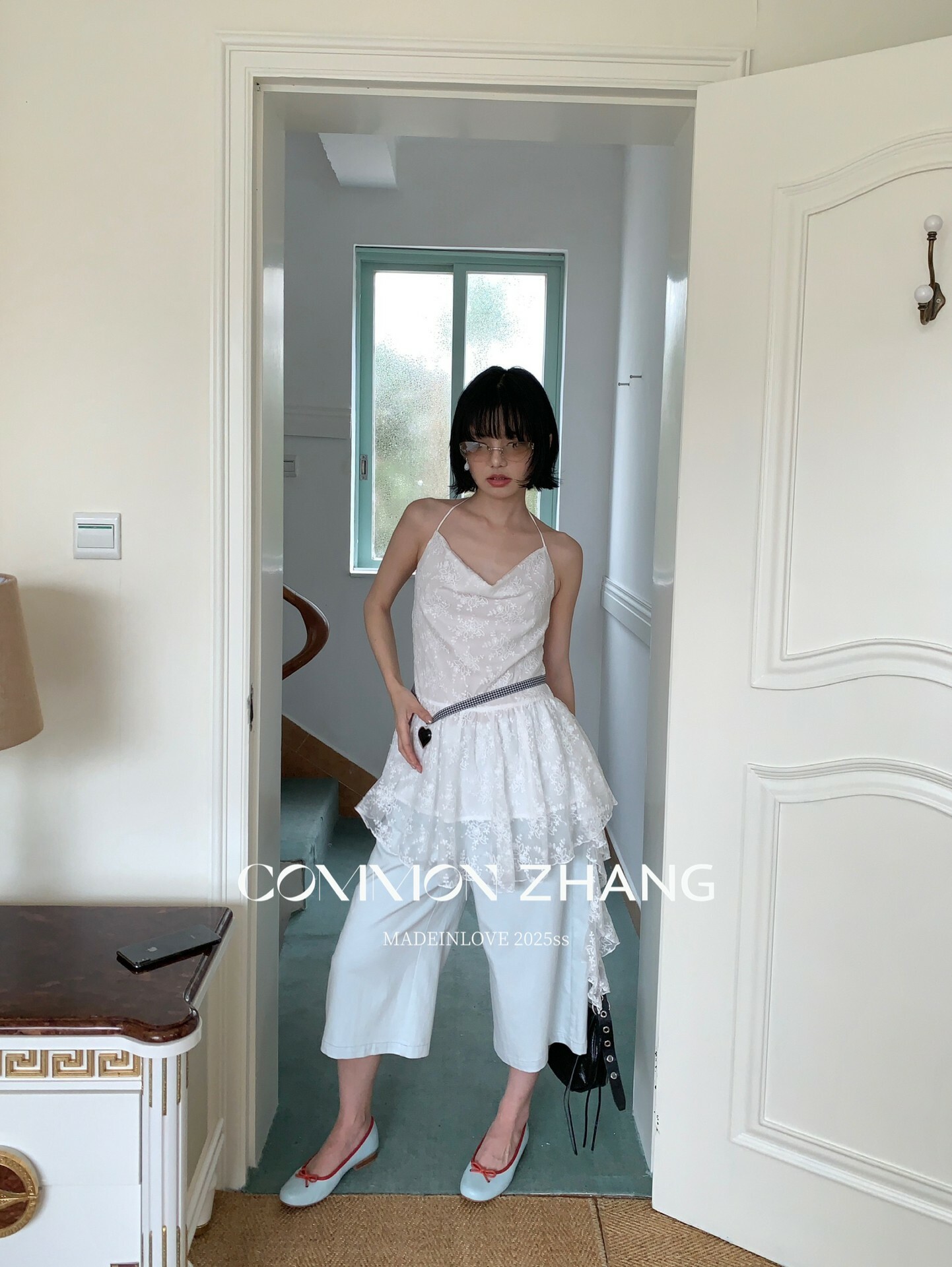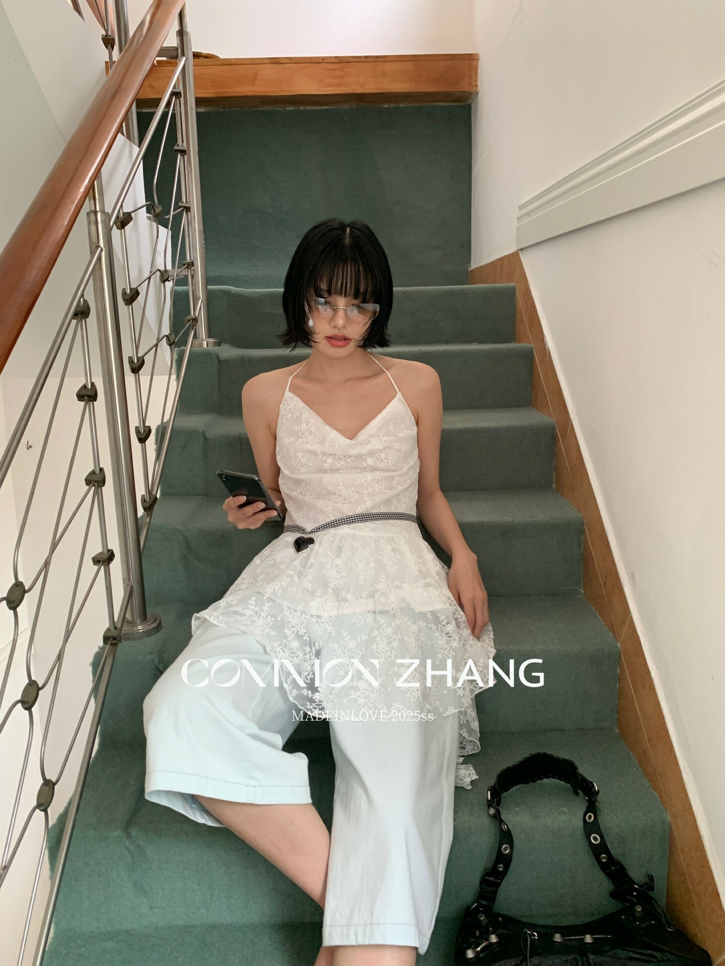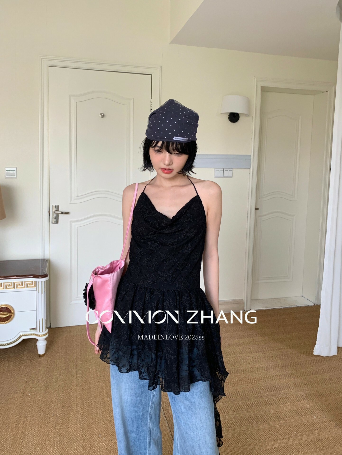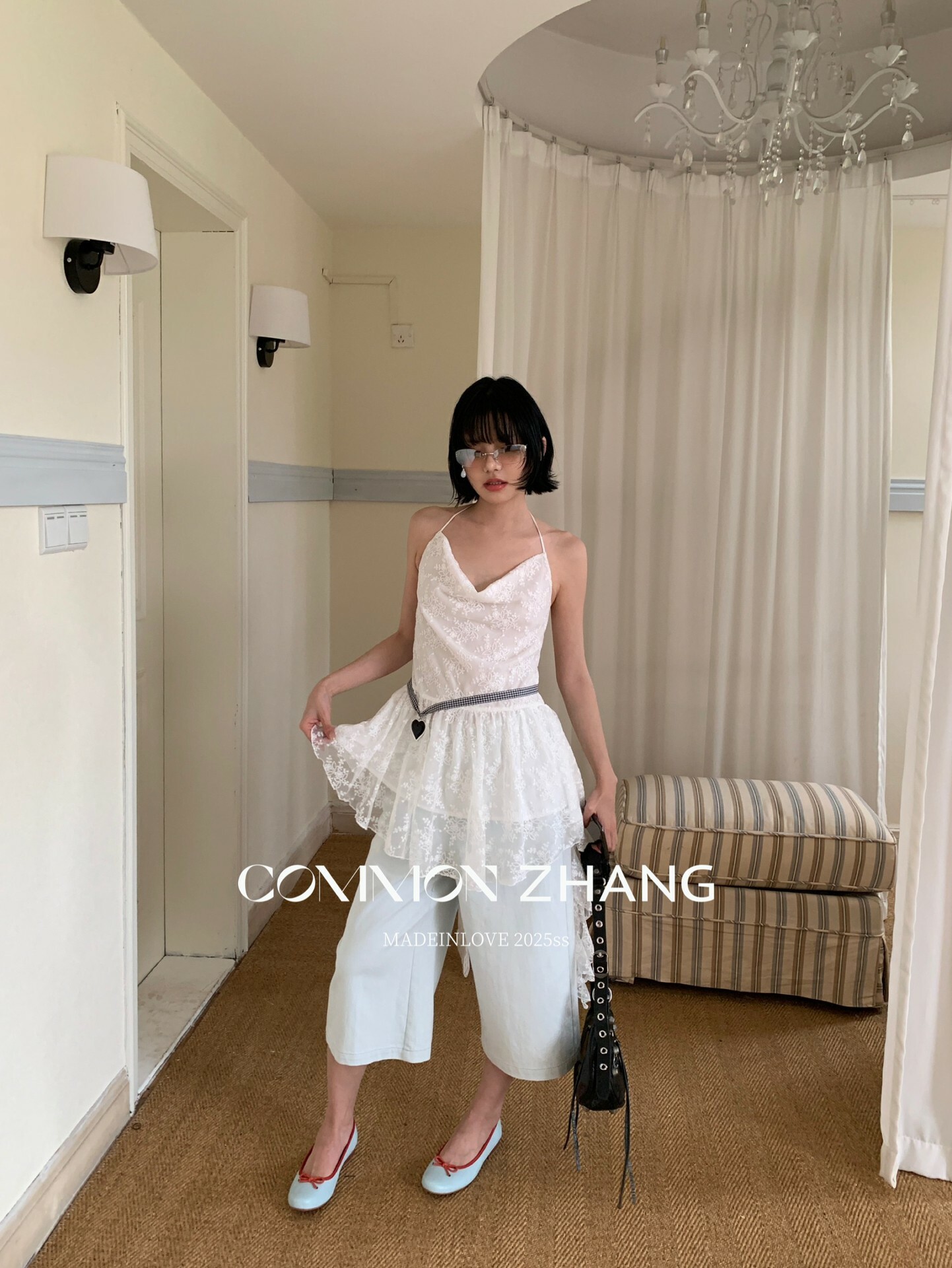 *o-ha-you*【FCZCB203840】夏季新款韓版名媛掛脖露背性感百搭蕩領緹花小衫-2色-如有需要請先諮詢