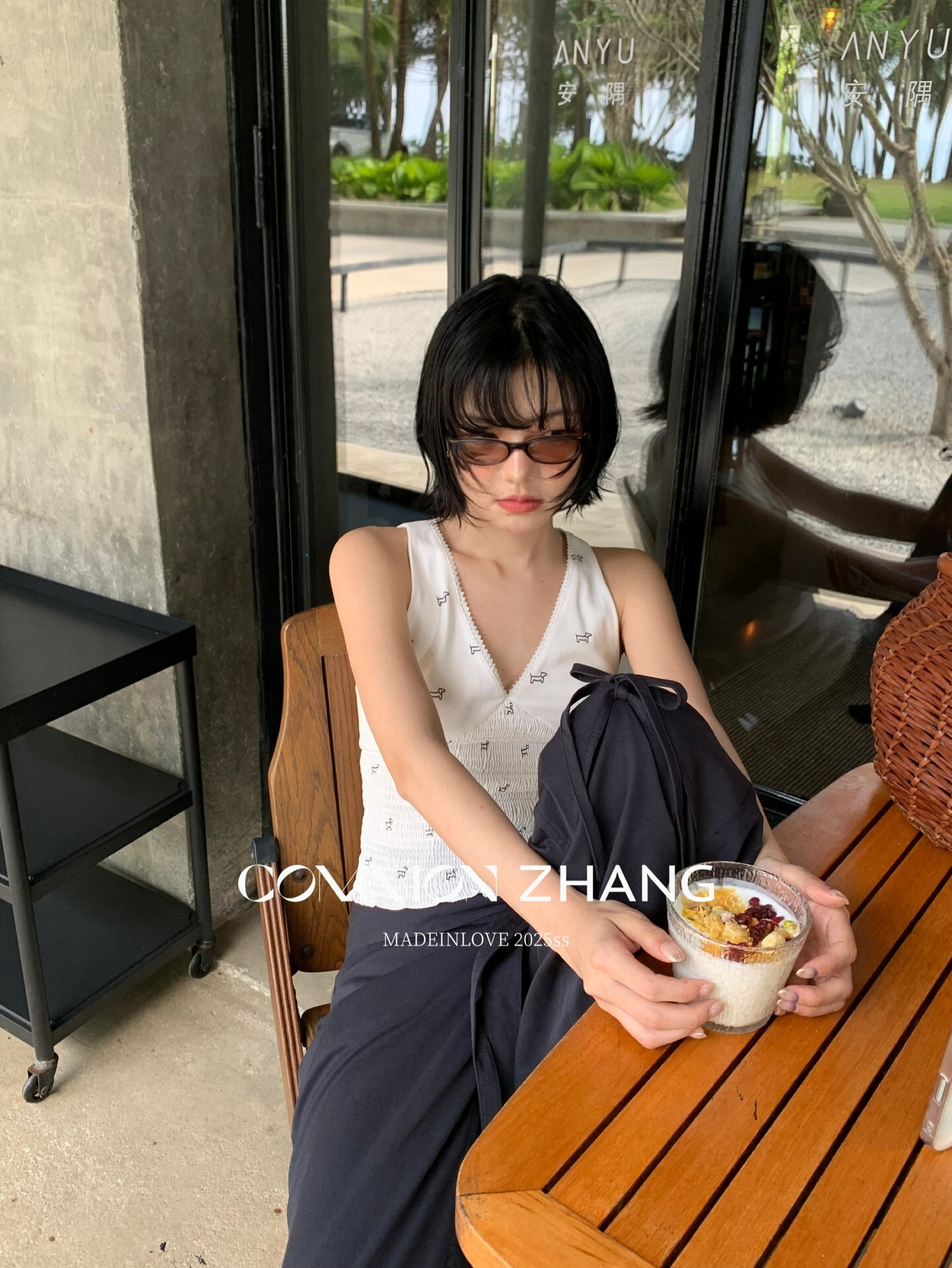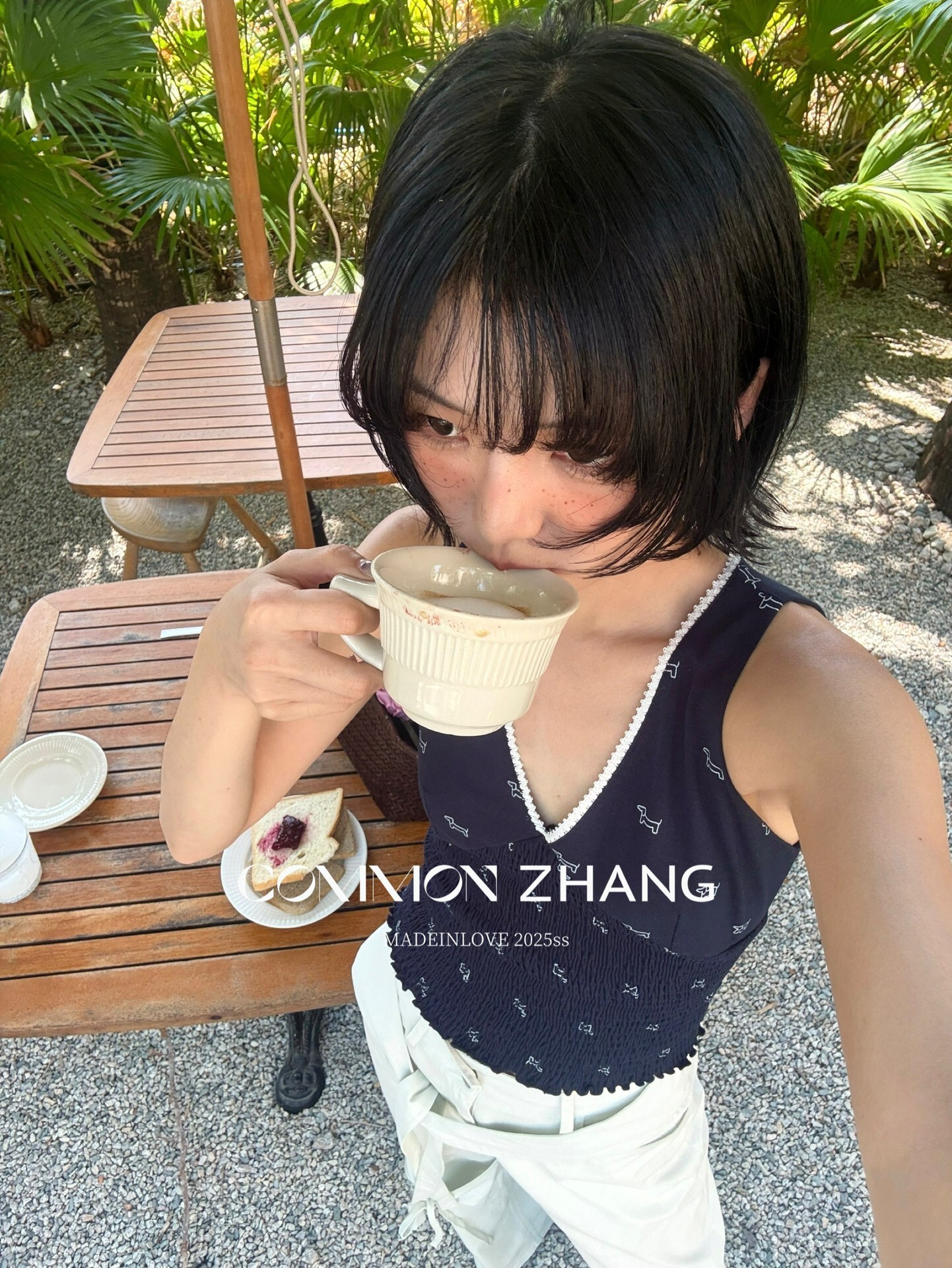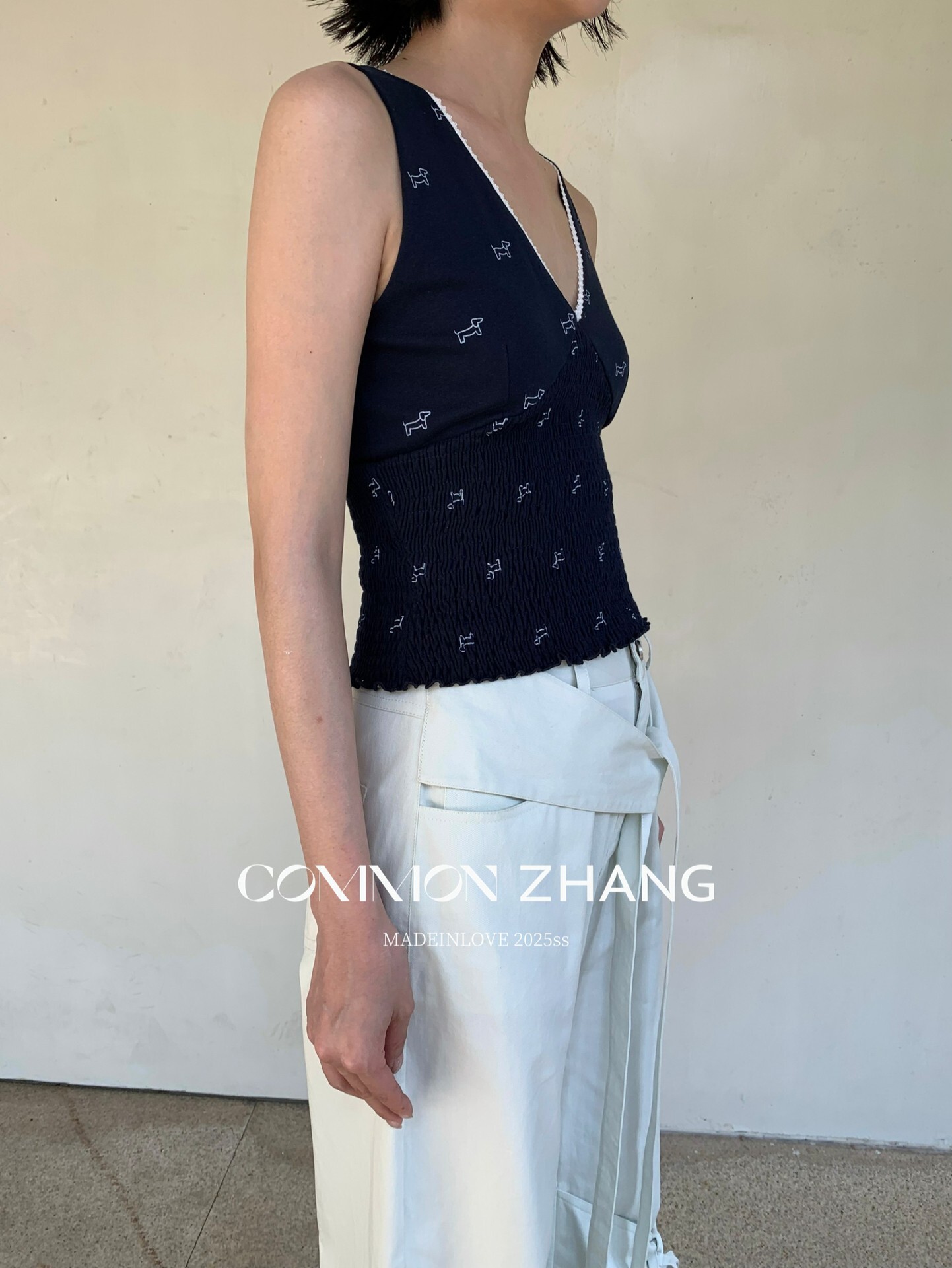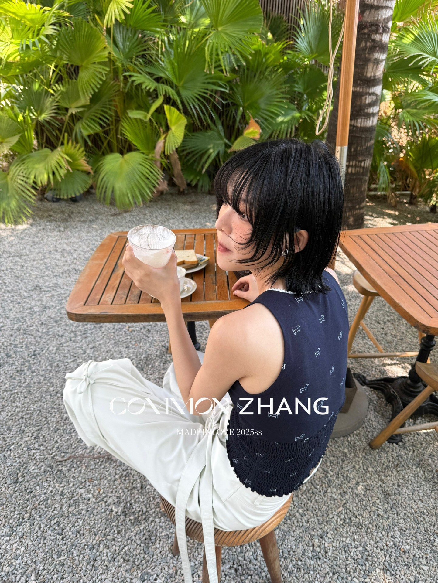 *o-ha-you*【FCZCB203945】度假旅遊韓版狗狗印花撞色邊V領百搭背心小衫-2色