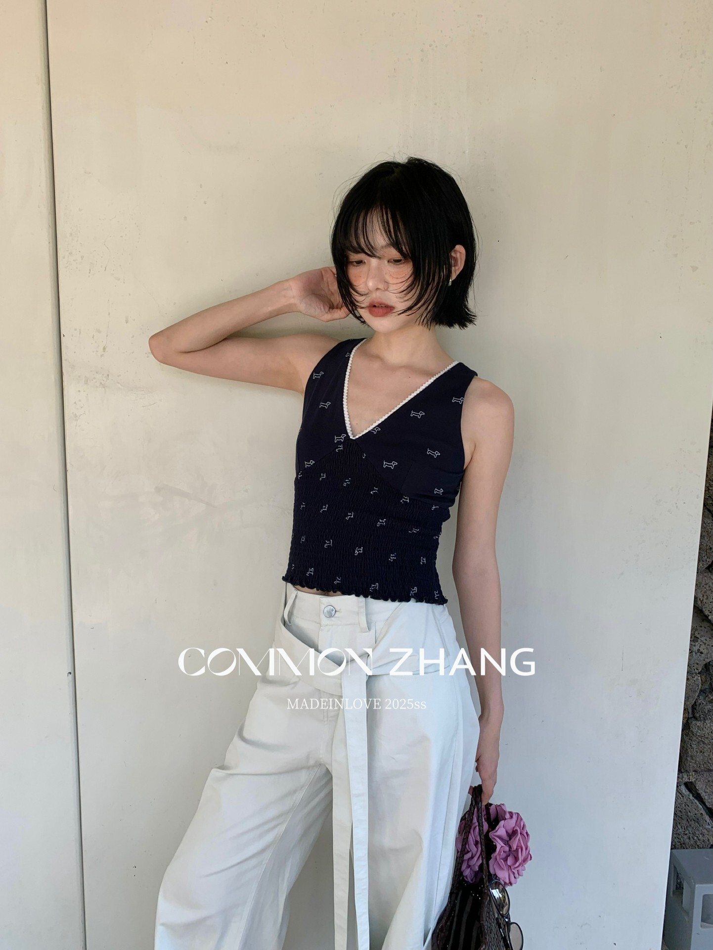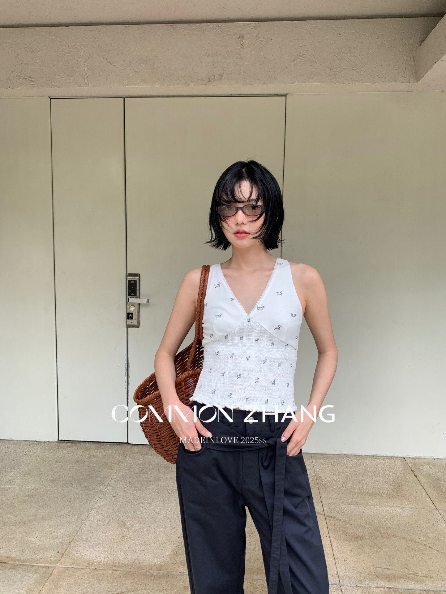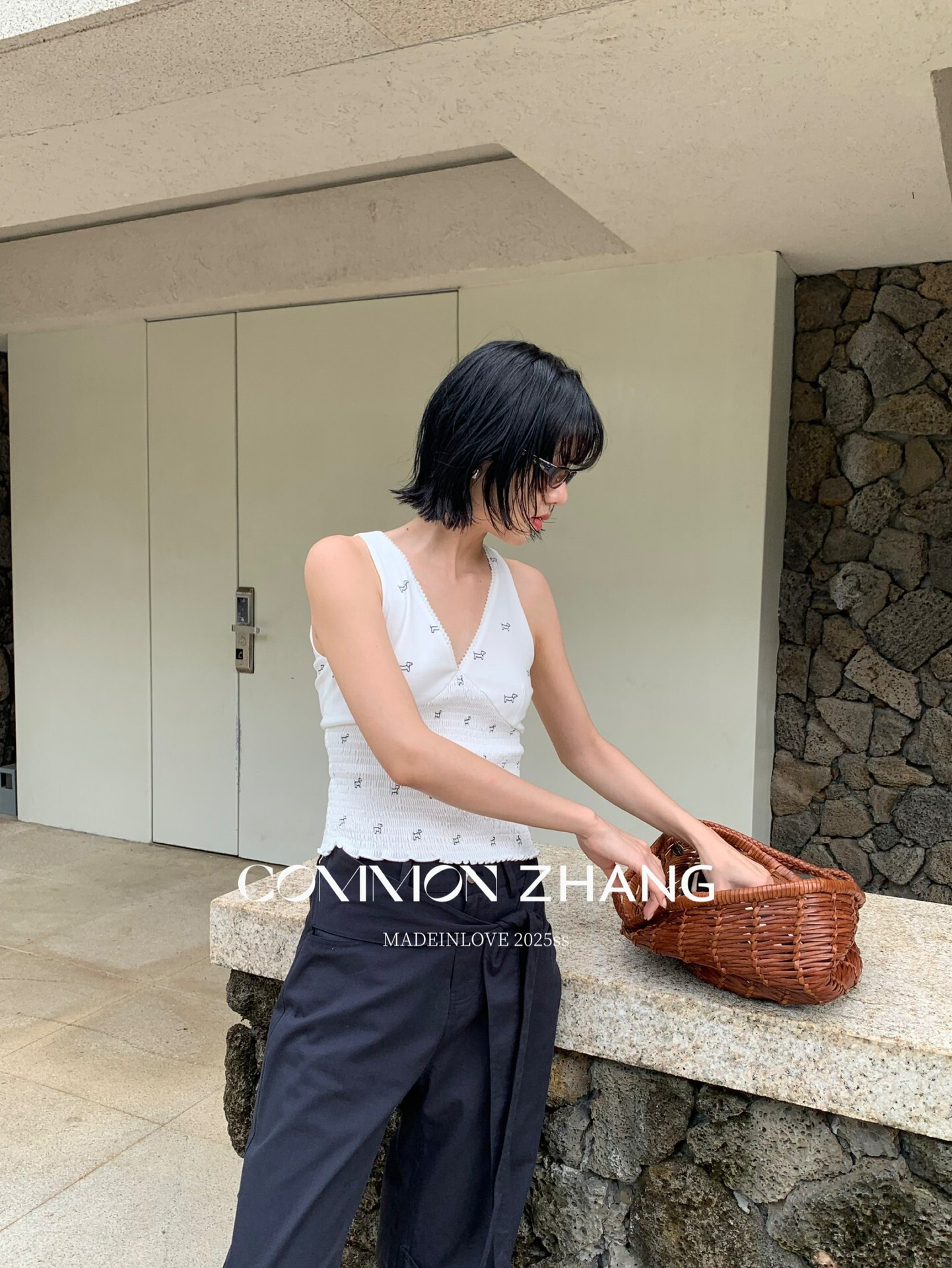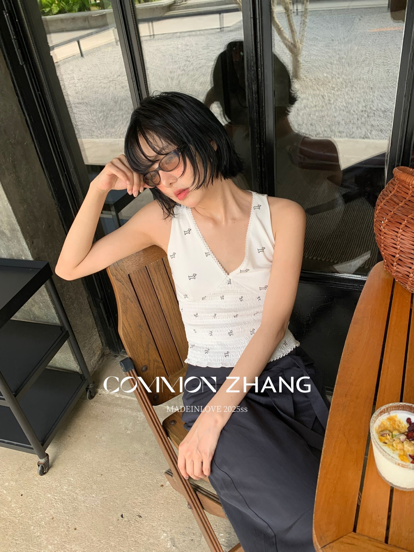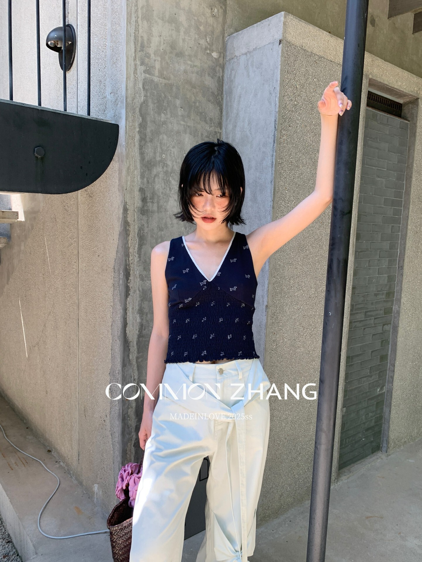 *o-ha-you*【FCZCB203945】度假旅遊韓版狗狗印花撞色邊V領百搭背心小衫-2色