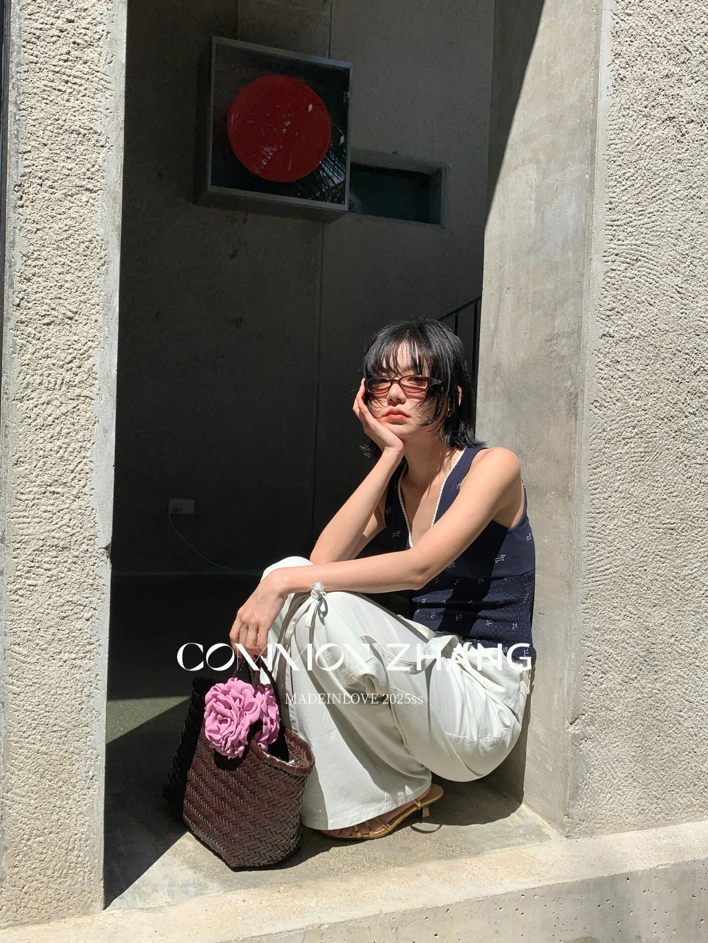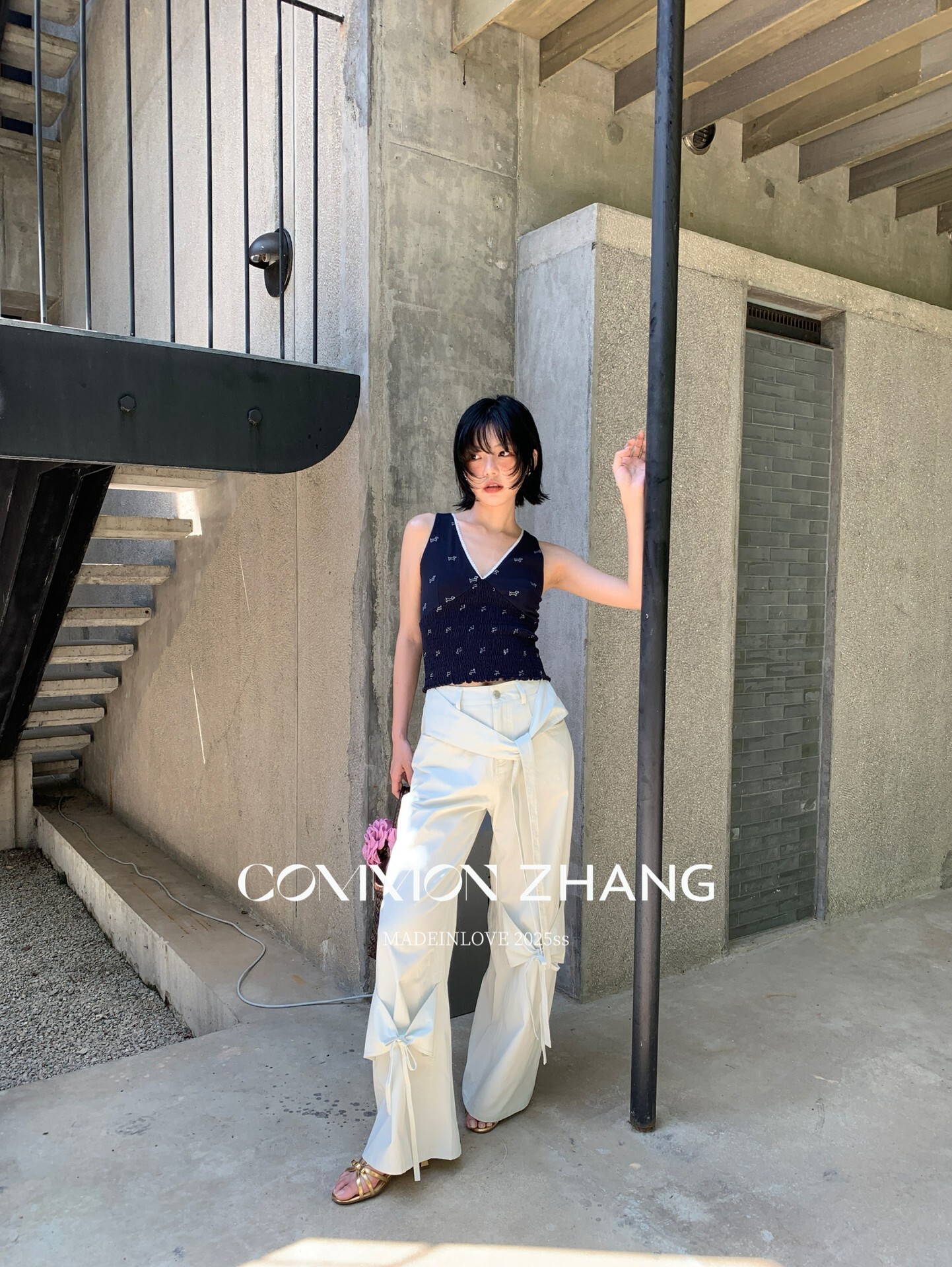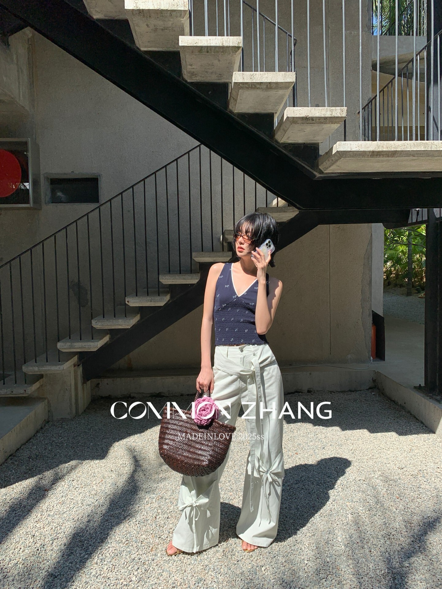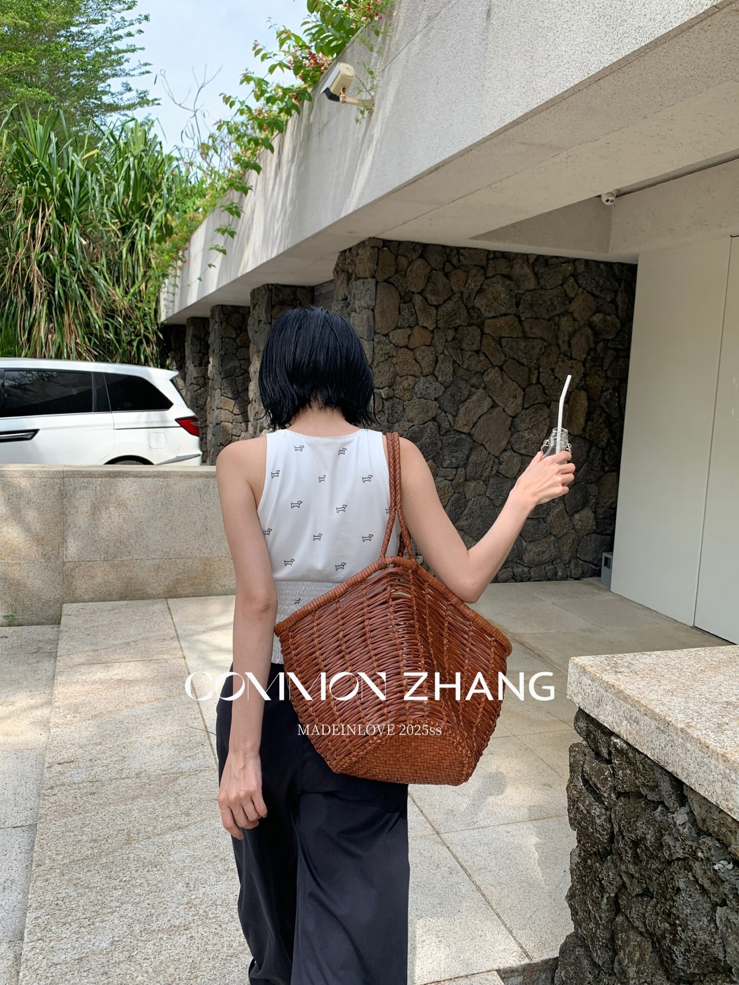 *o-ha-you*【FCZCB203945】度假旅遊韓版狗狗印花撞色邊V領百搭背心小衫-2色