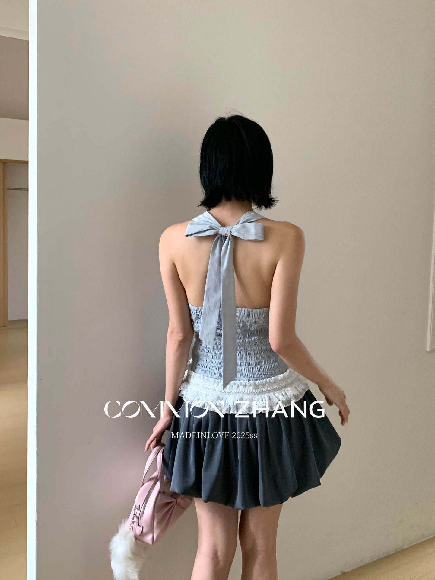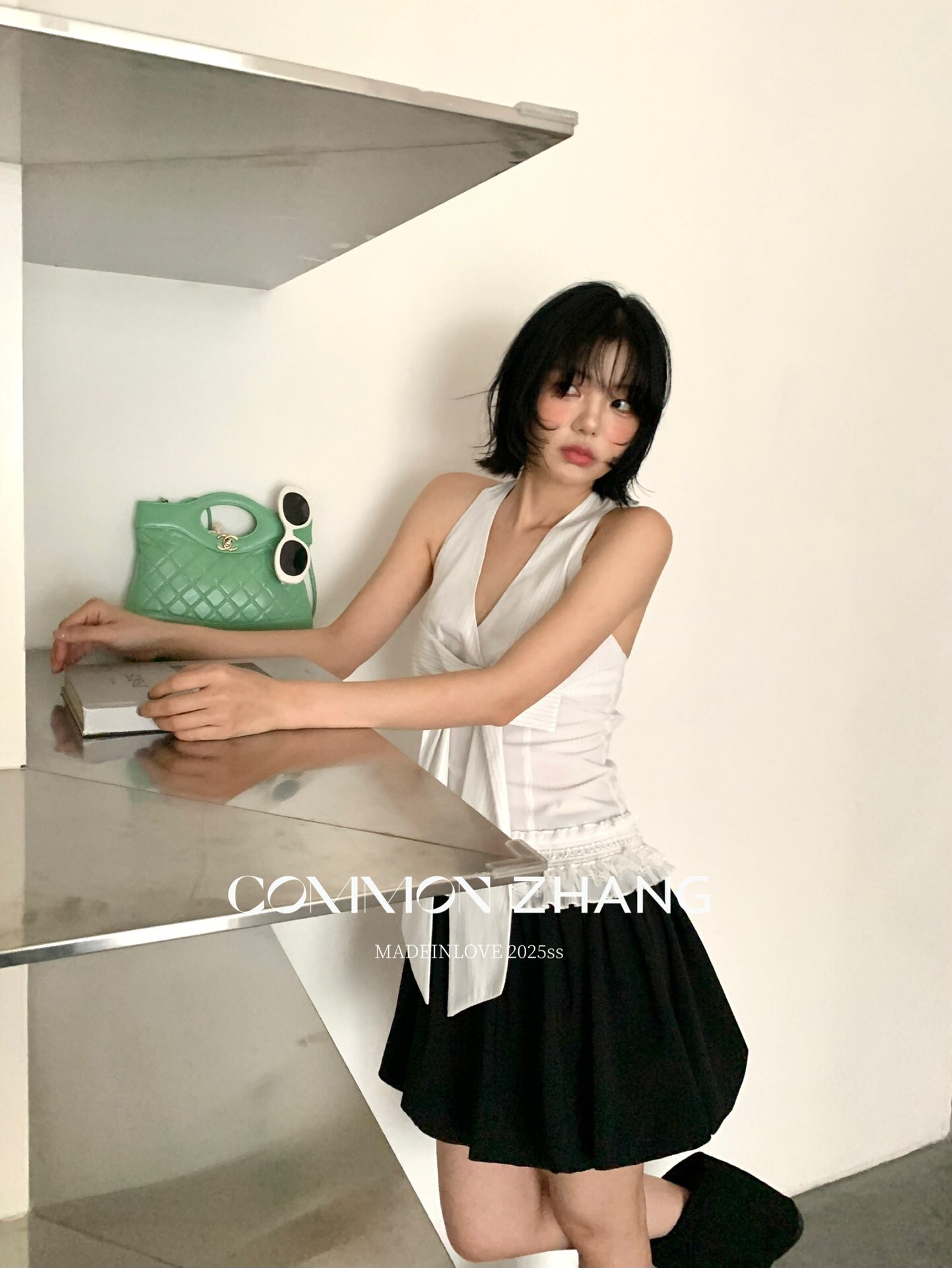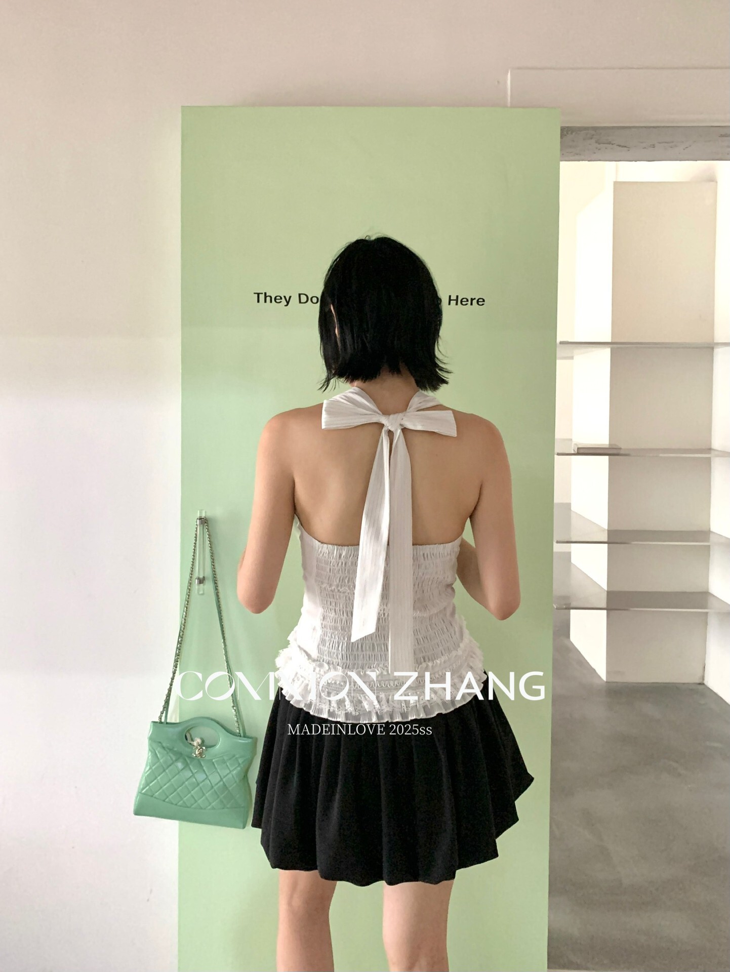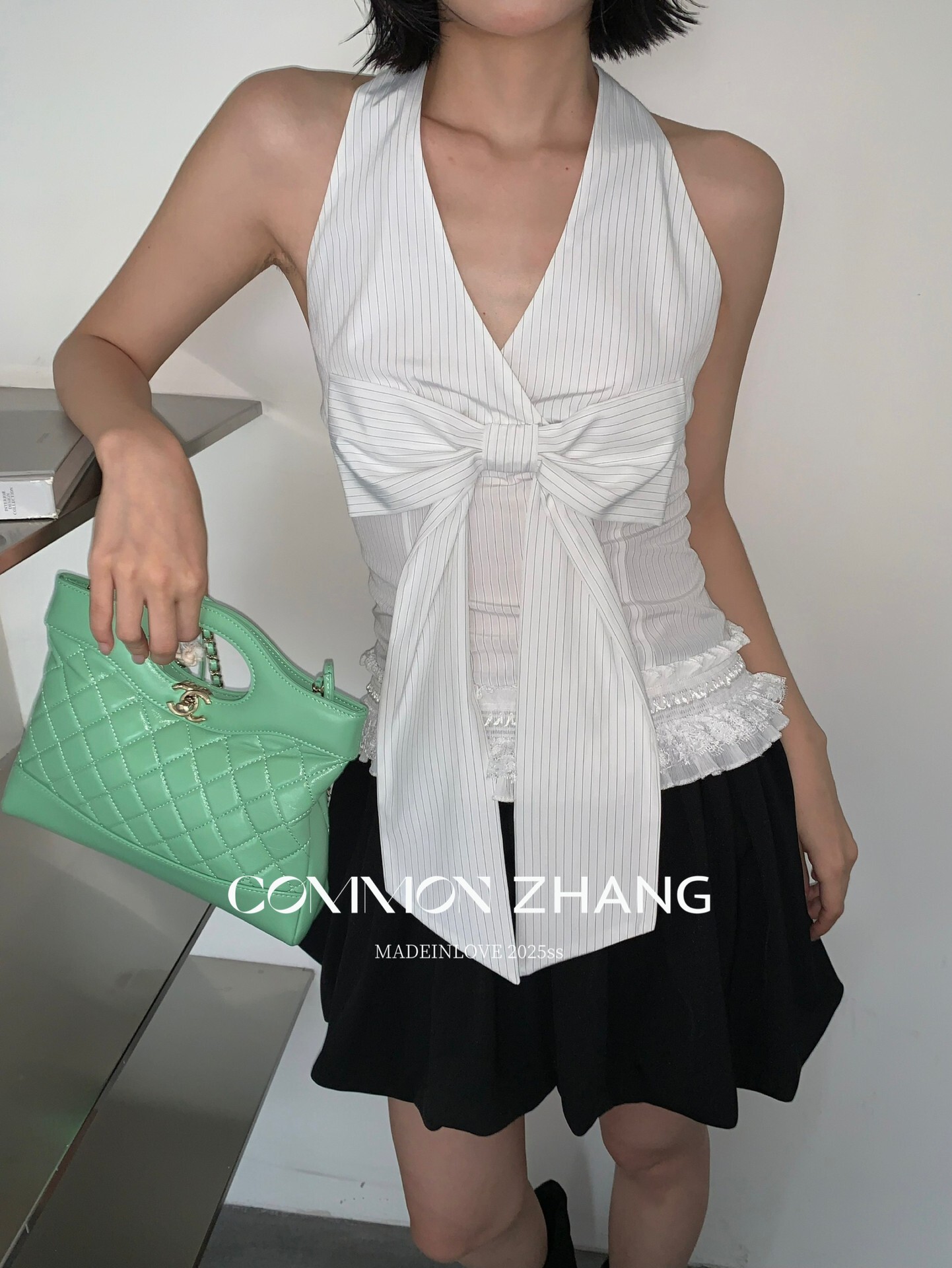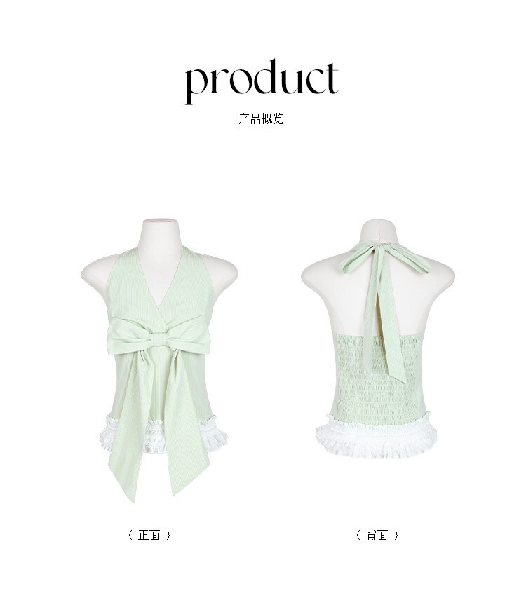 *o-ha-you*【FCZCB203970】夏季法式蕾絲拼接繫帶掛脖露背性感約會百搭小衫-3色
