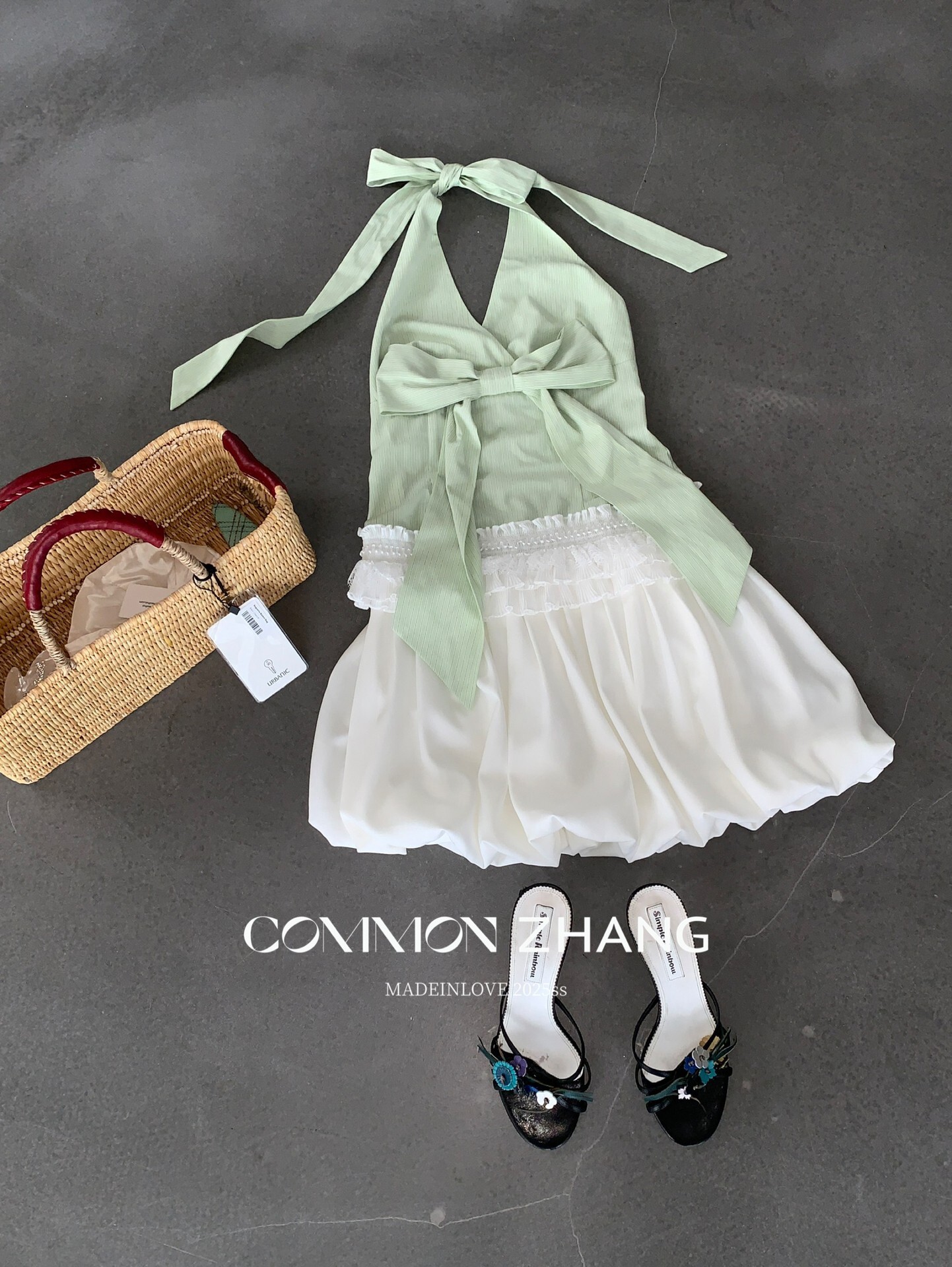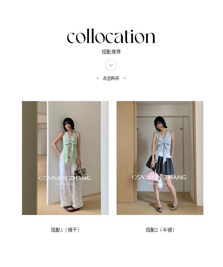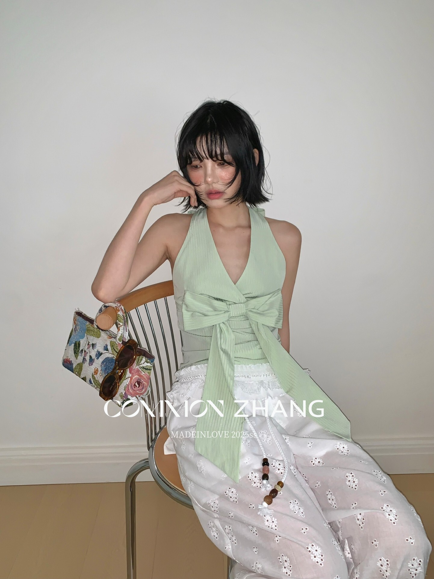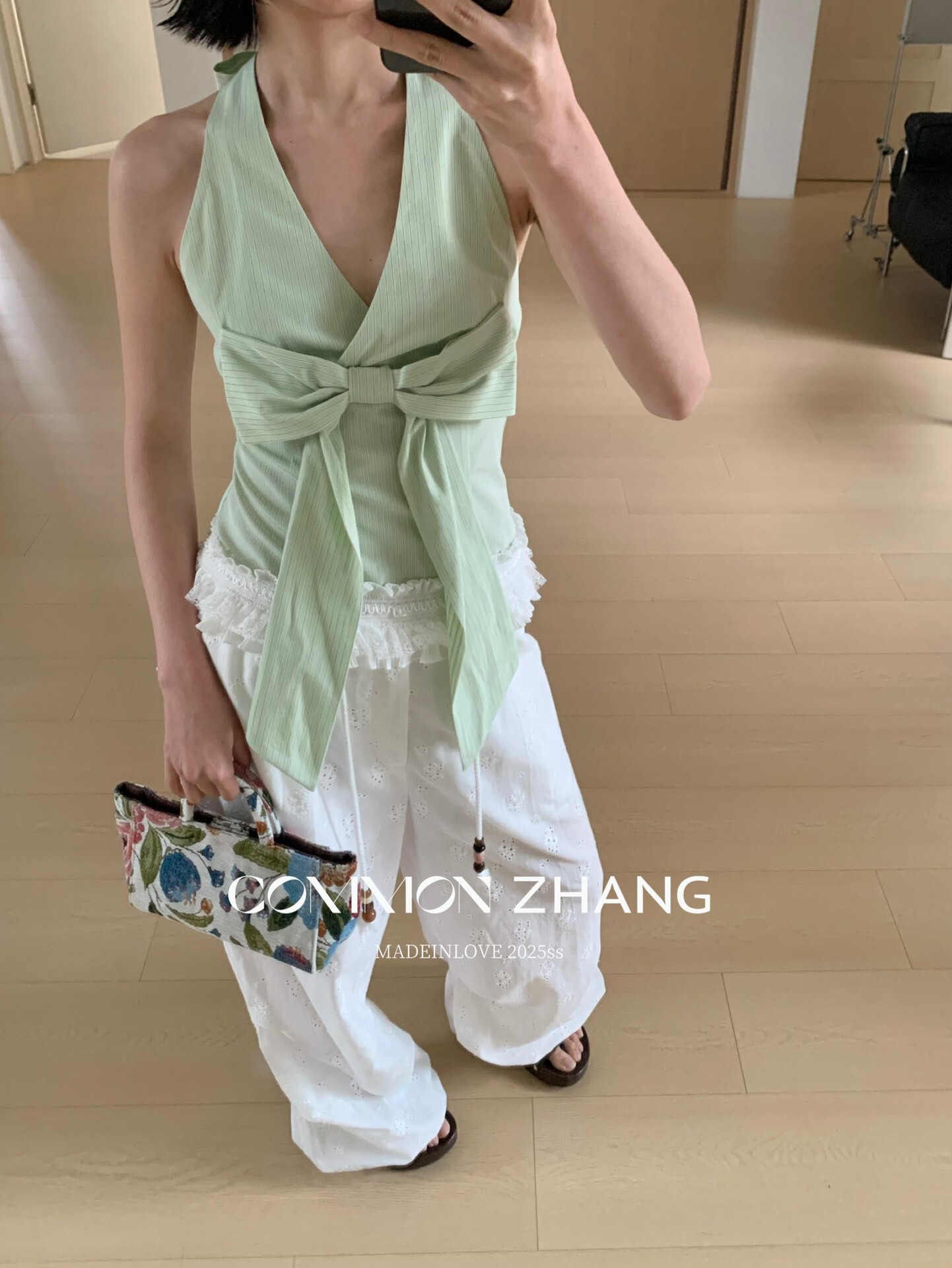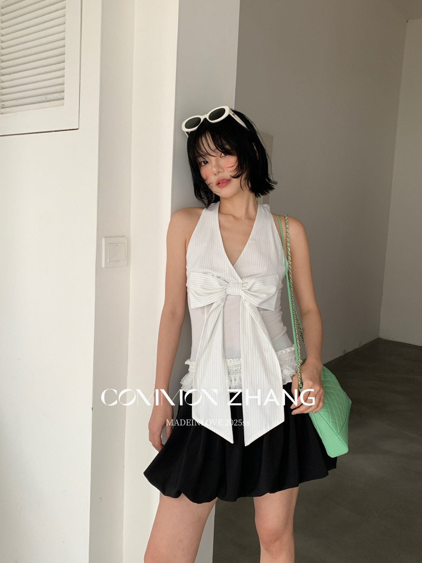 *o-ha-you*【FCZCB203970】夏季法式蕾絲拼接繫帶掛脖露背性感約會百搭小衫-3色