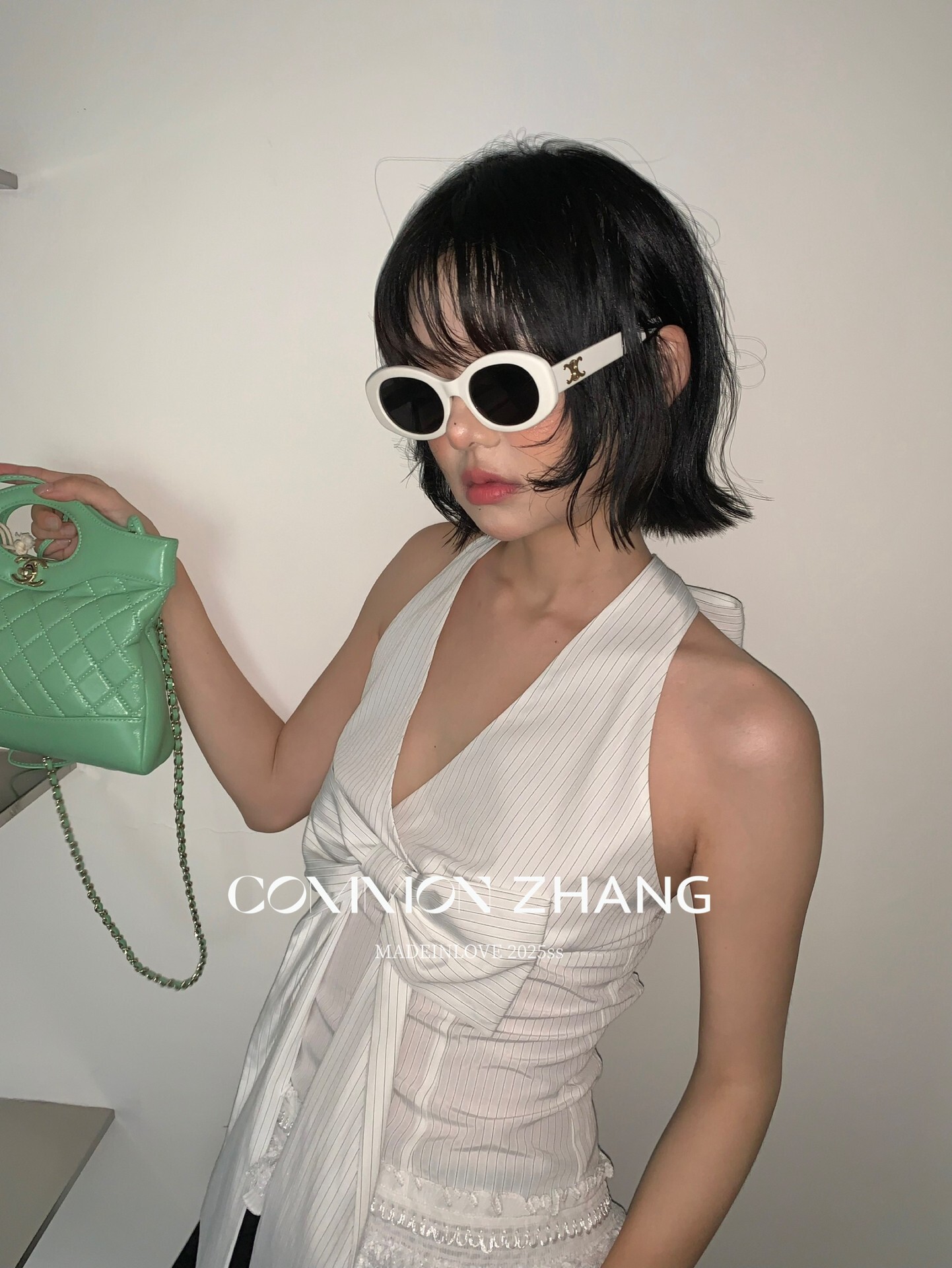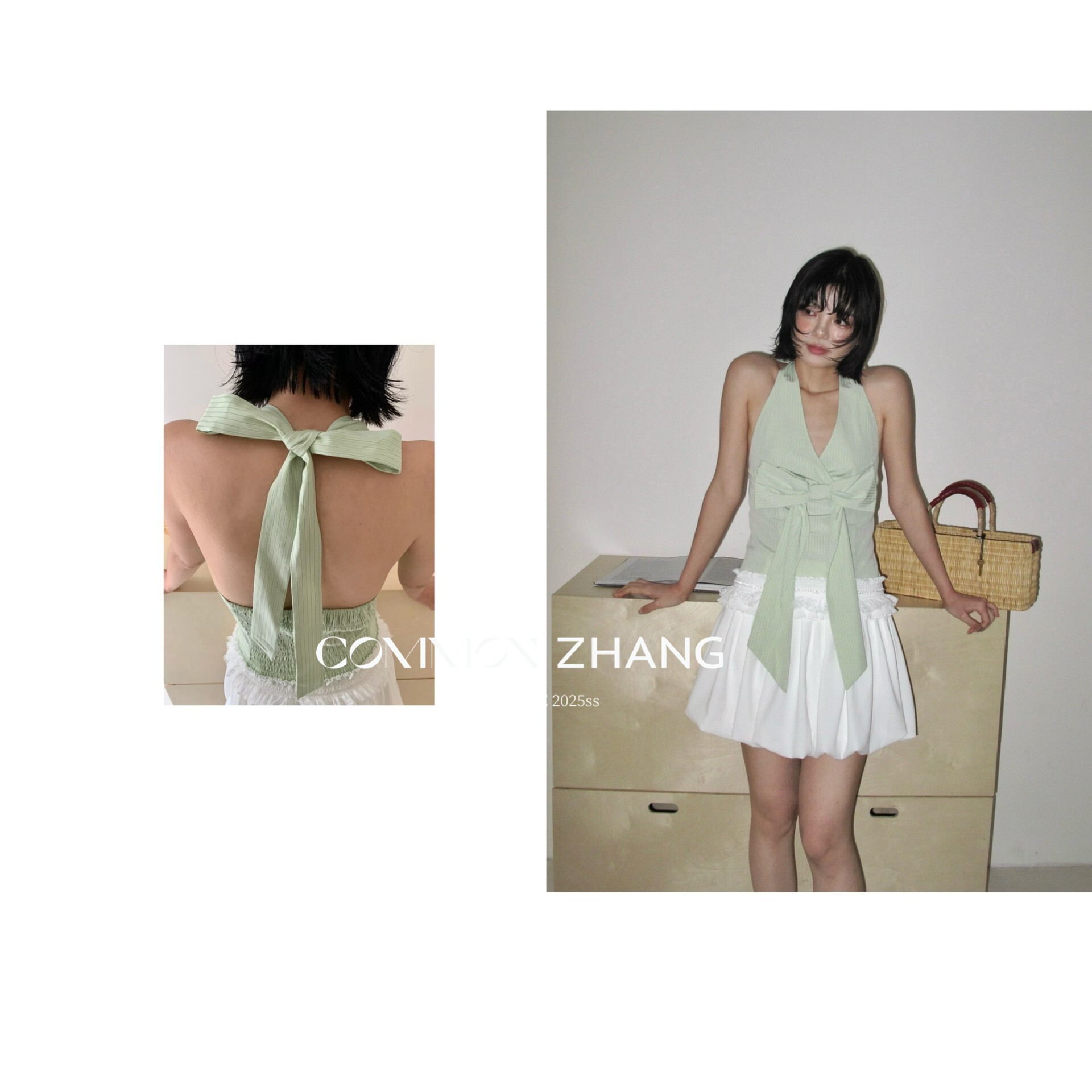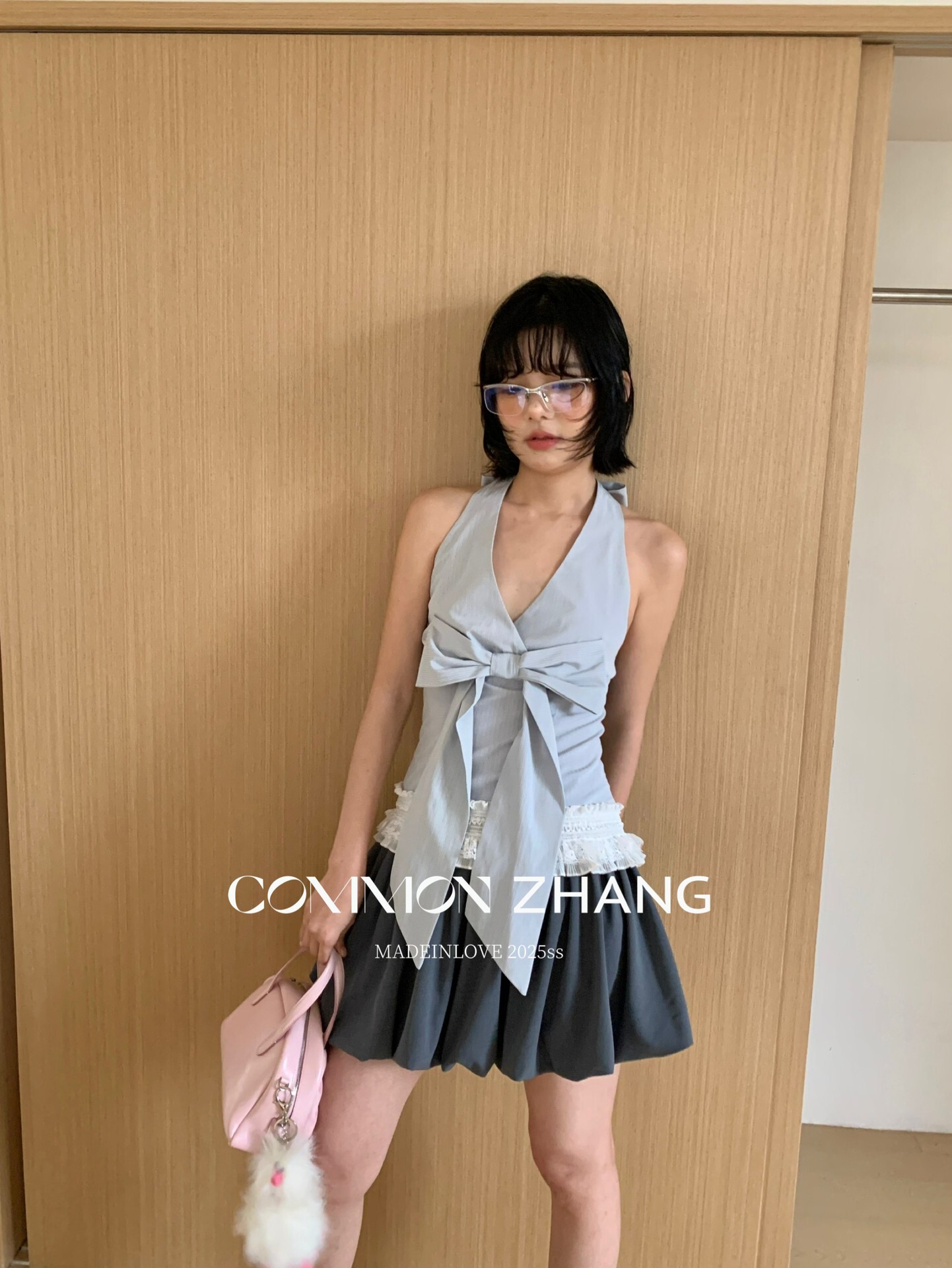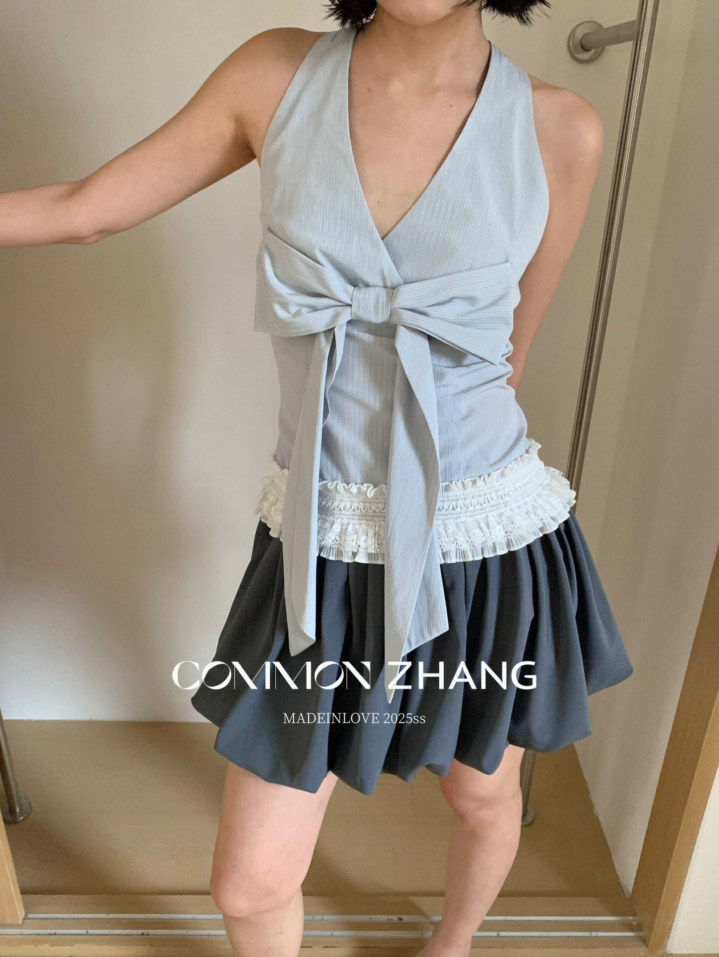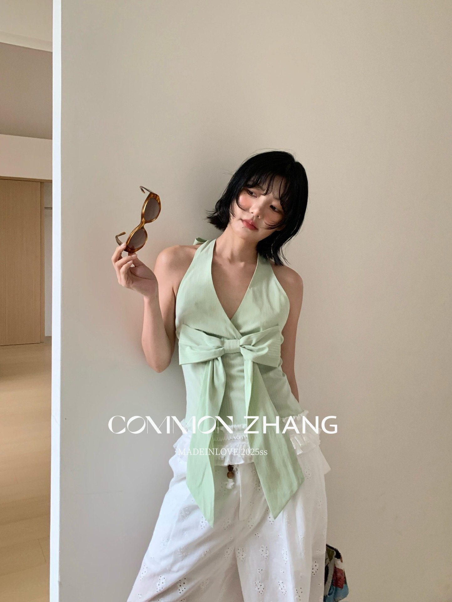 *o-ha-you*【FCZCB203970】夏季法式蕾絲拼接繫帶掛脖露背性感約會百搭小衫-3色