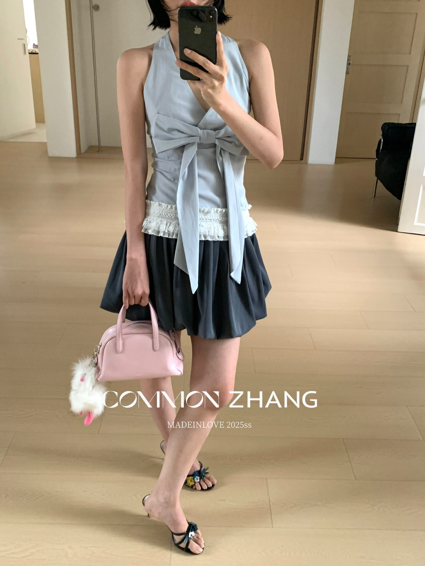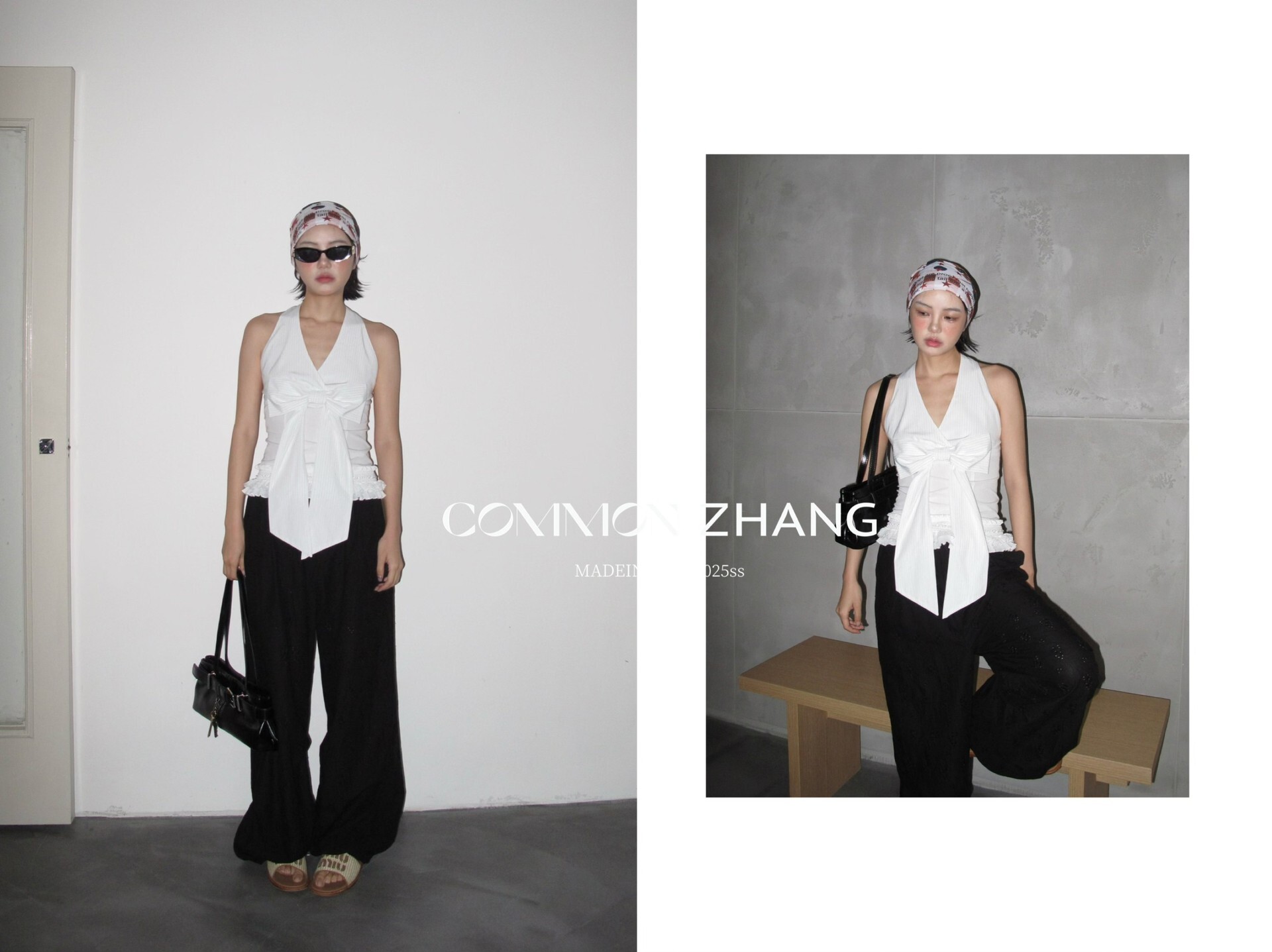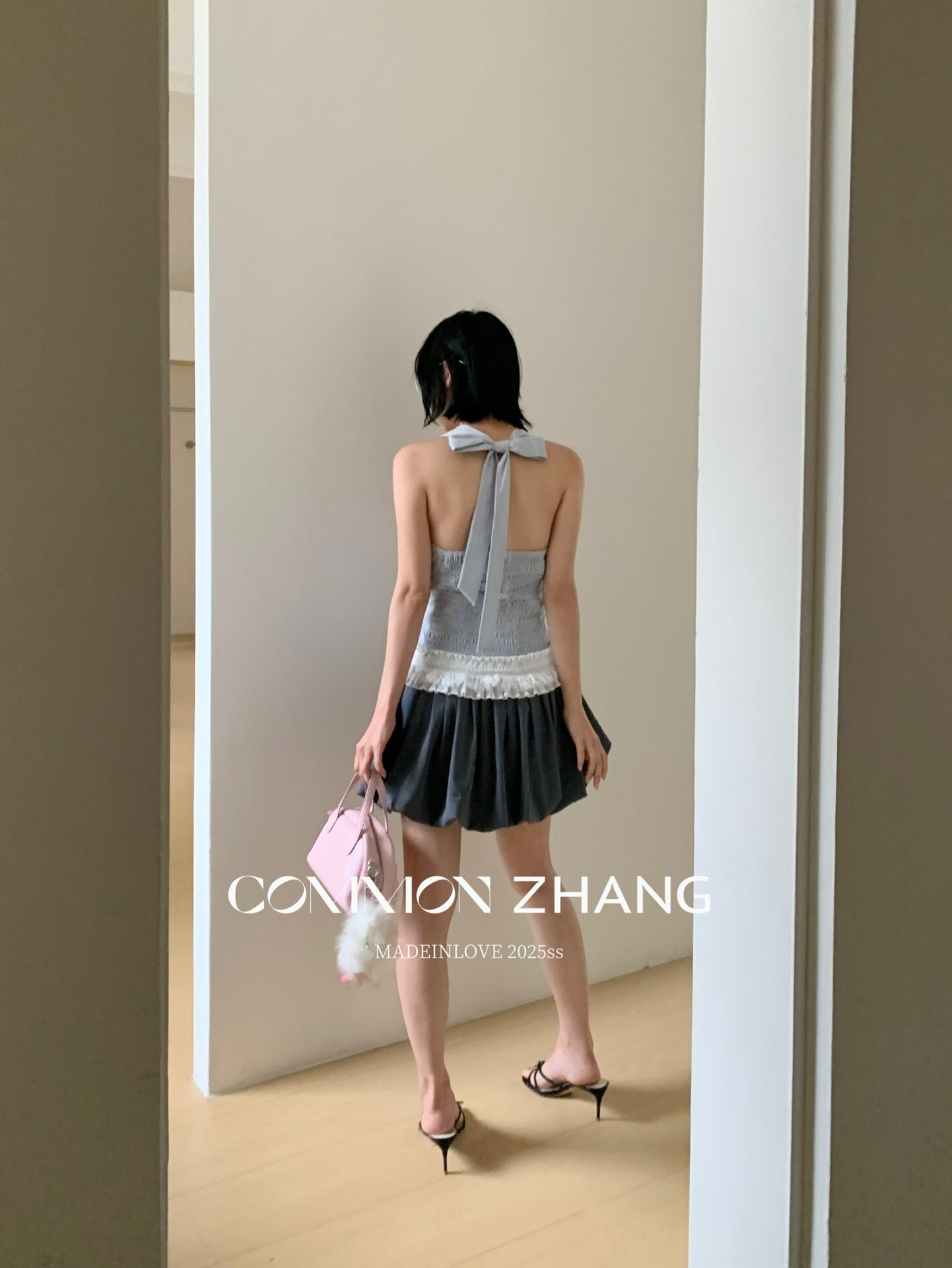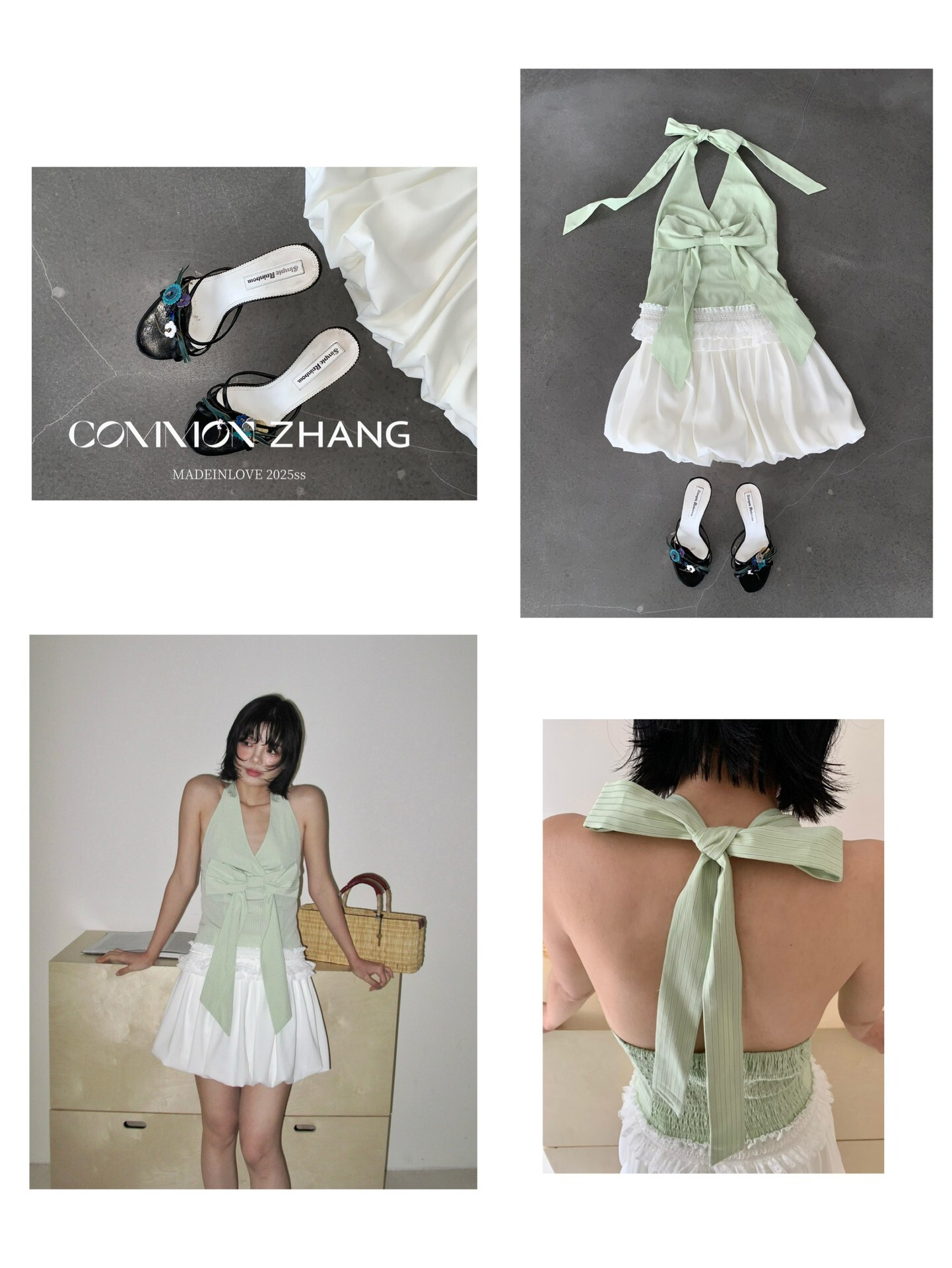 *o-ha-you*【FCZCB203970】夏季法式蕾絲拼接繫帶掛脖露背性感約會百搭小衫-3色