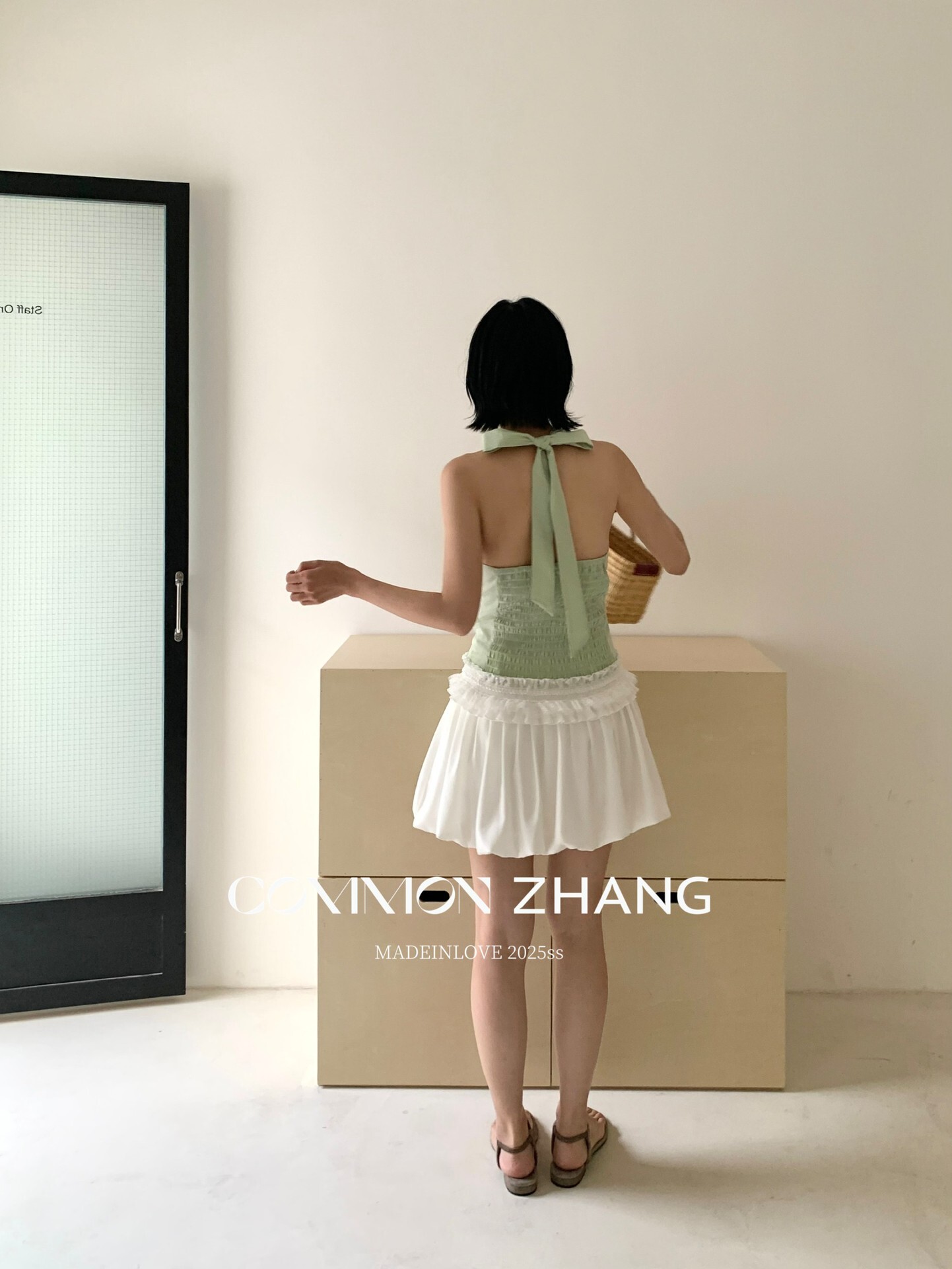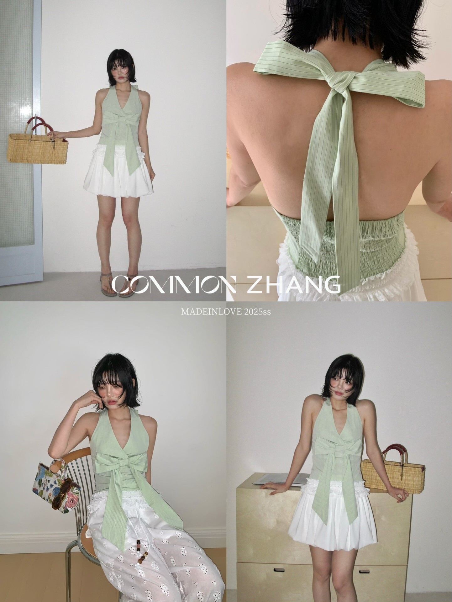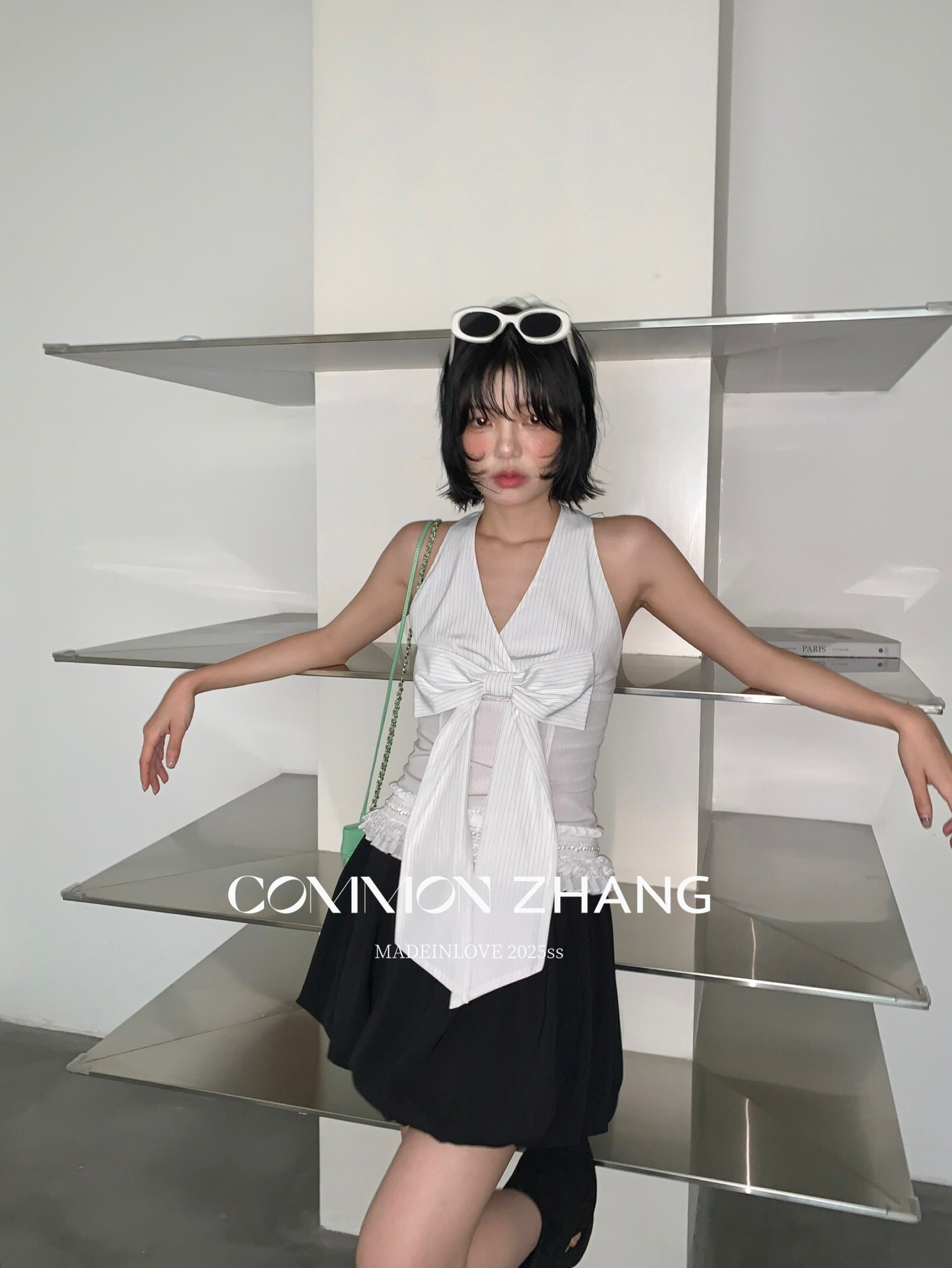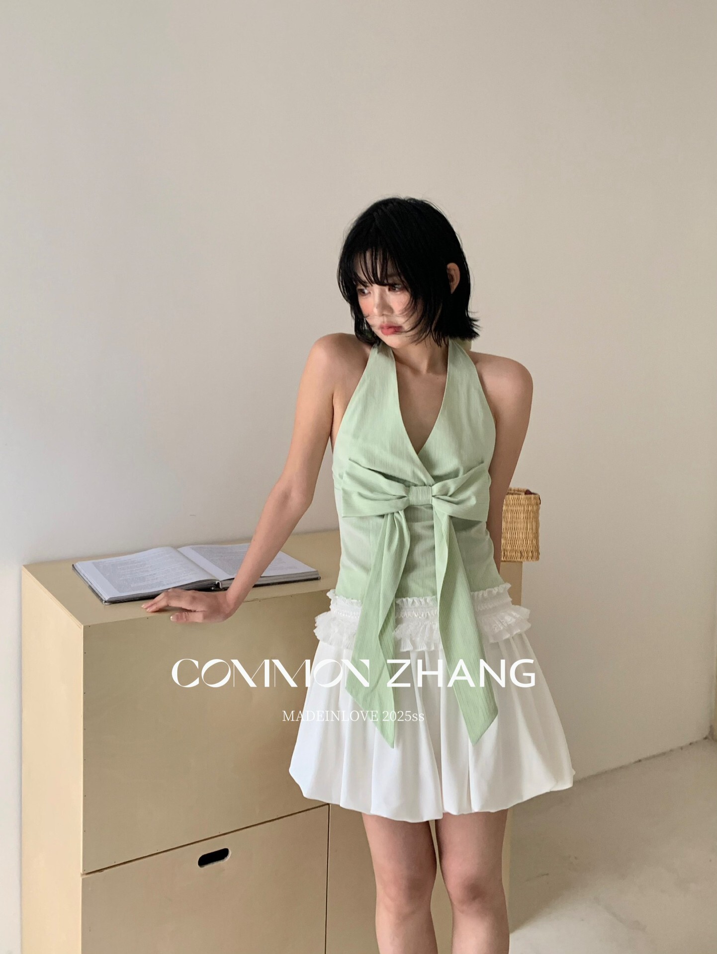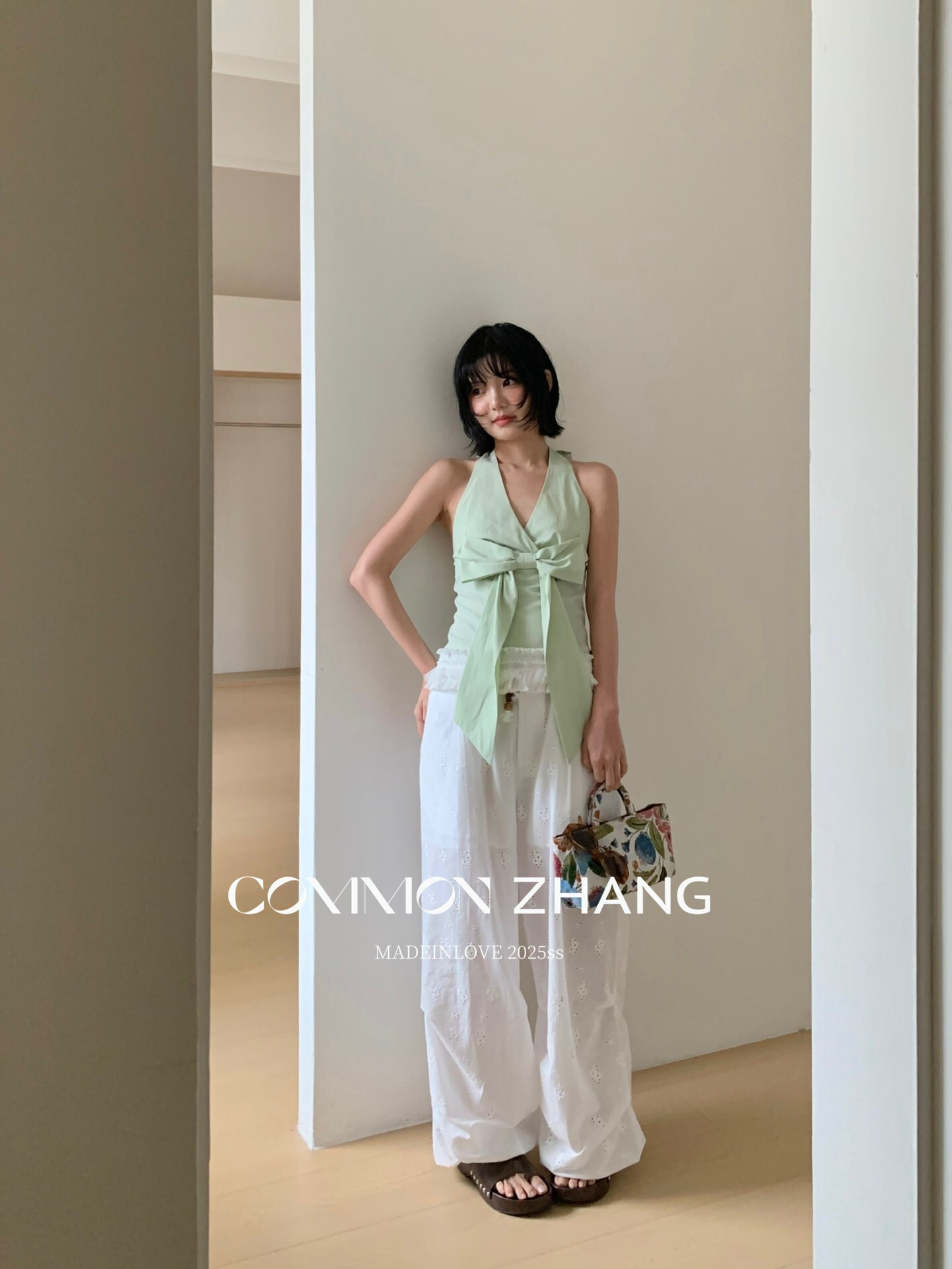 *o-ha-you*【FCZCB203970】夏季法式蕾絲拼接繫帶掛脖露背性感約會百搭小衫-3色