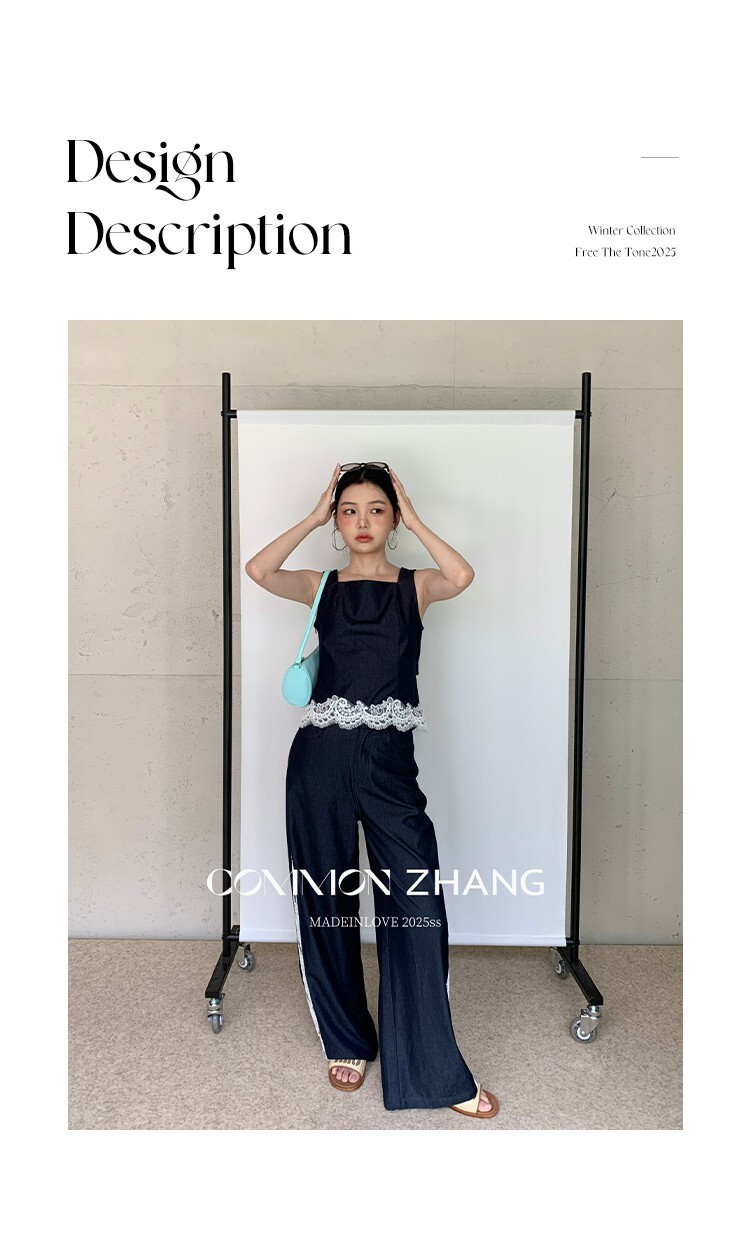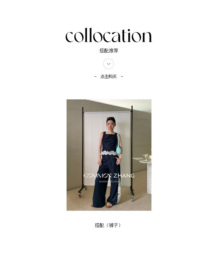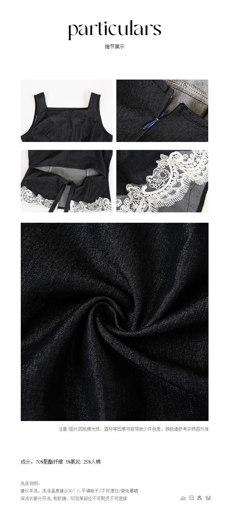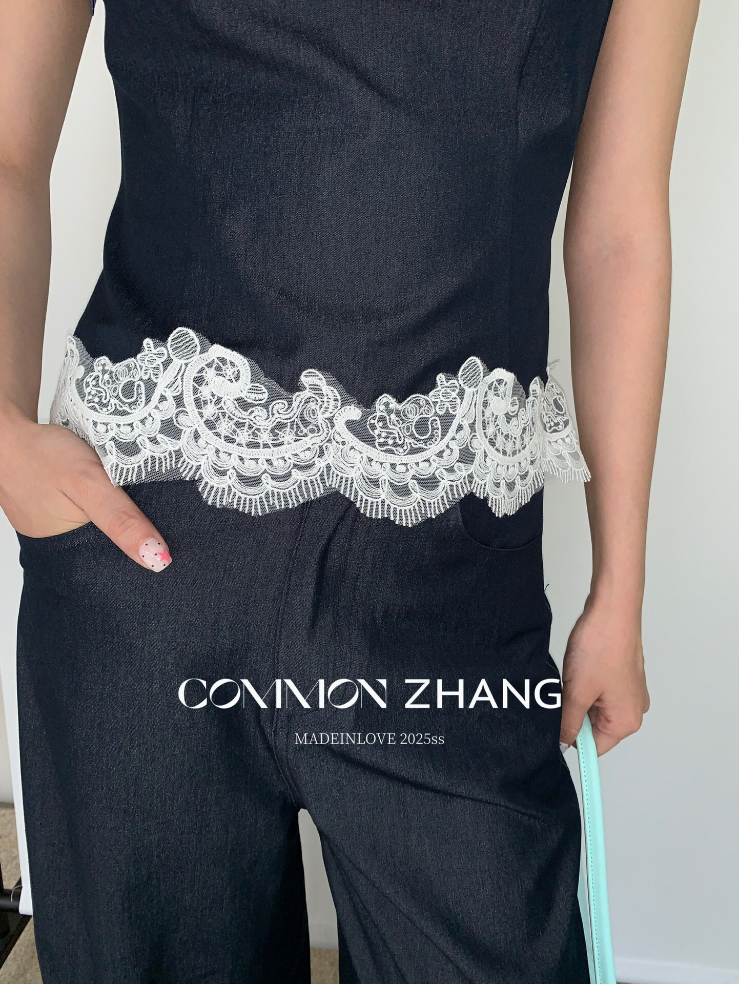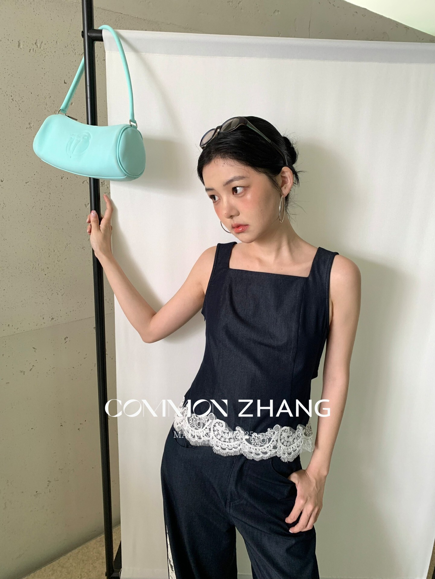 *o-ha-you*【FCZCB204031】夏季法式女孩俏皮深藍蕾絲邊拼接露背質感背心小衫