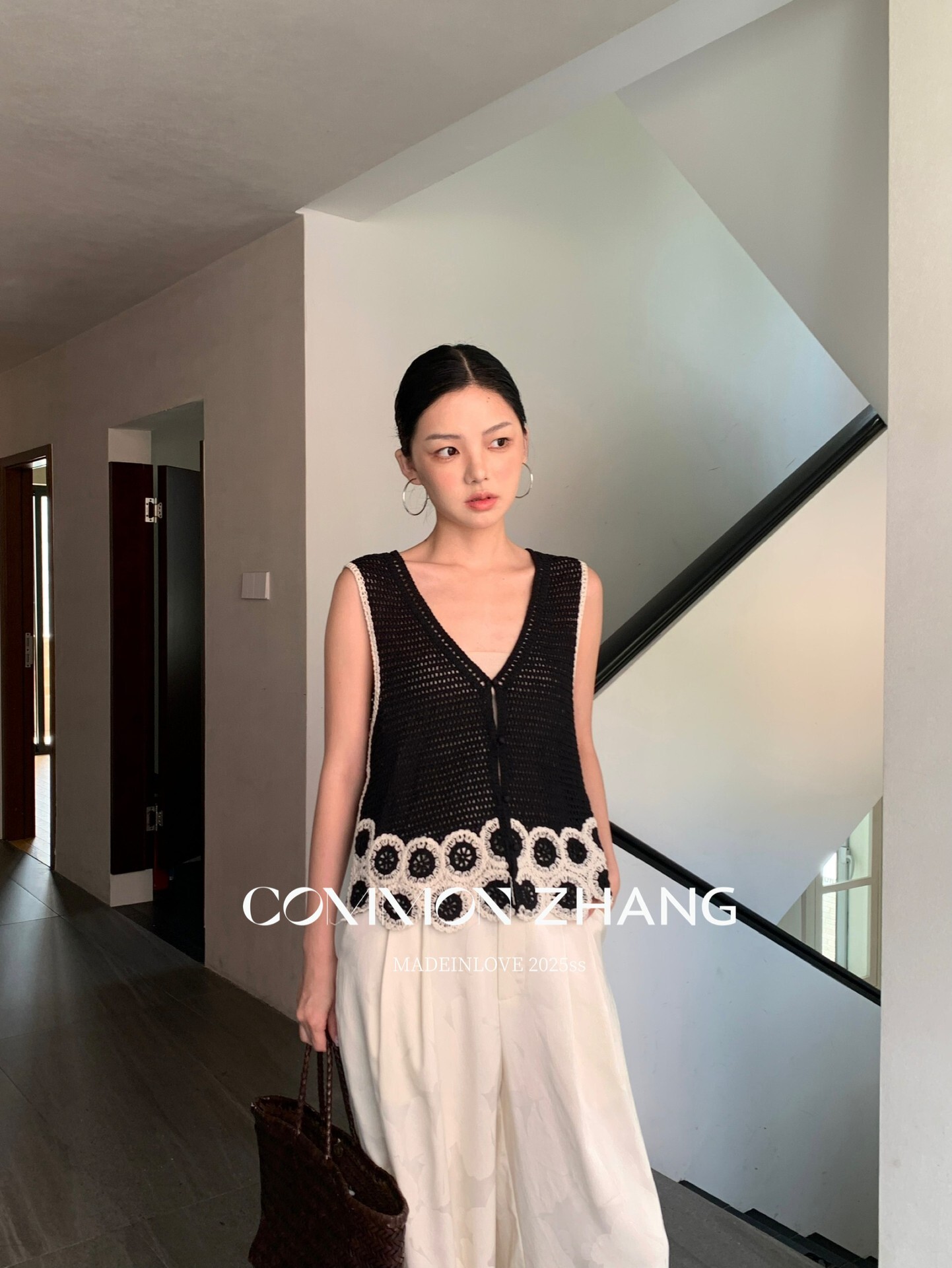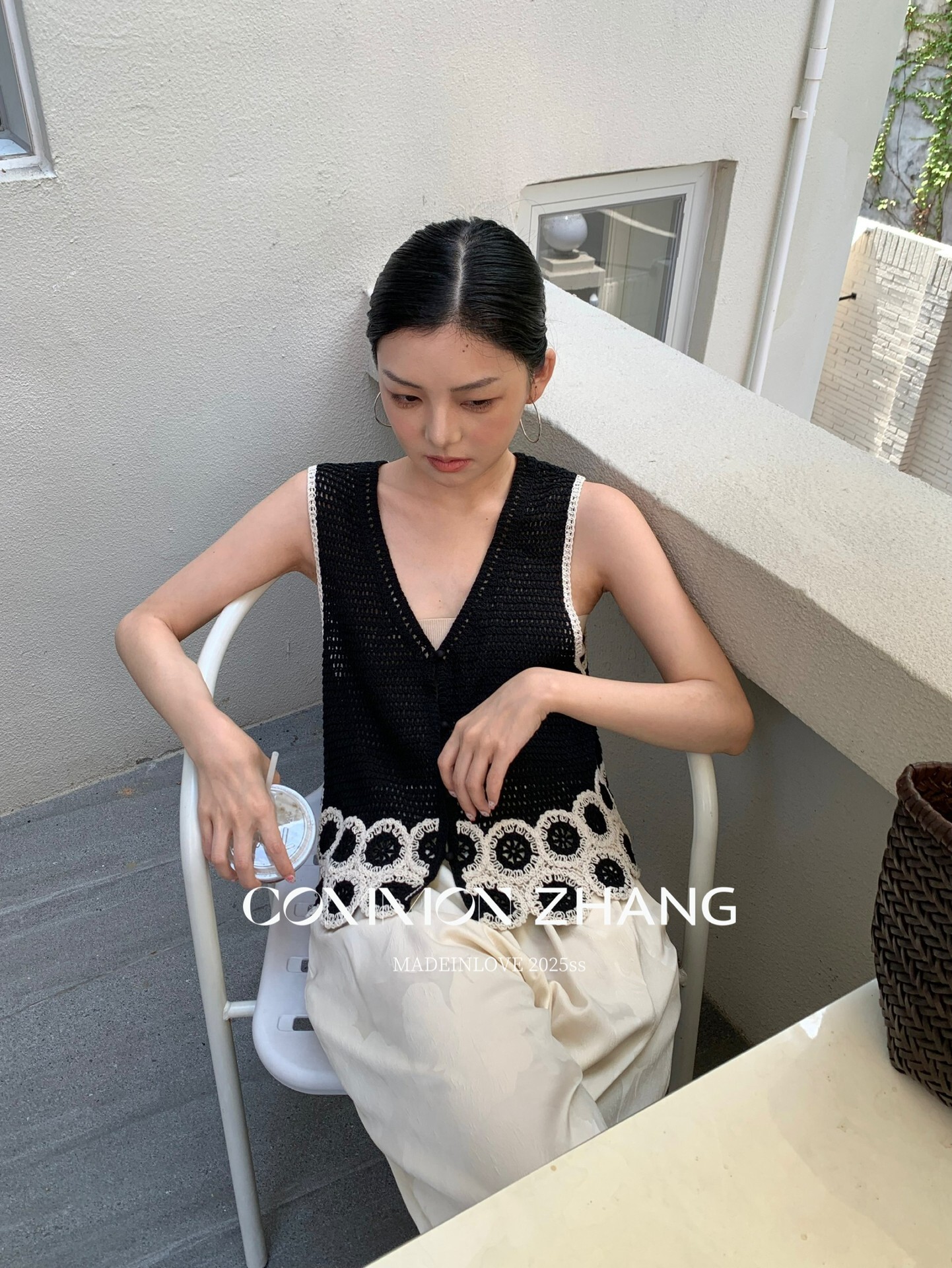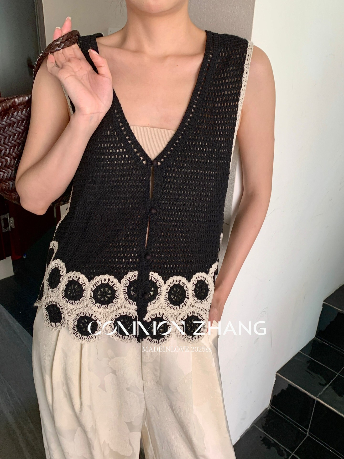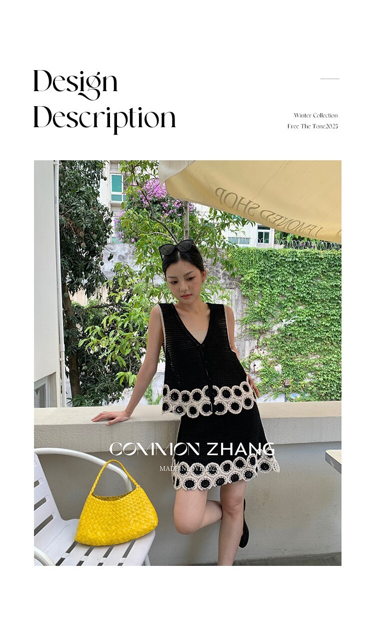 *o-ha-you*【FCZCB204108】夏季法式名媛鏤空花卉繡花V領休閒百搭毛衣背心