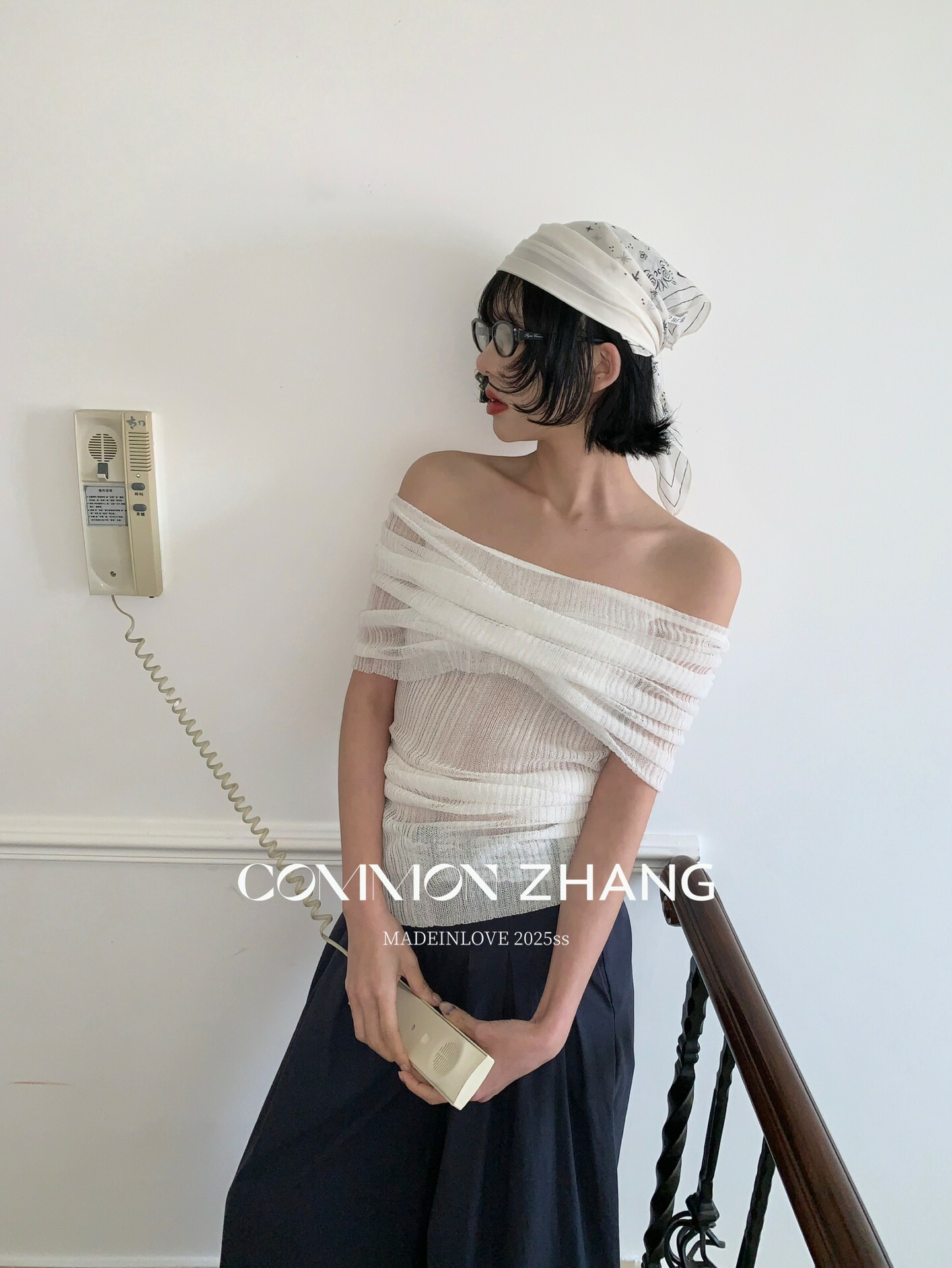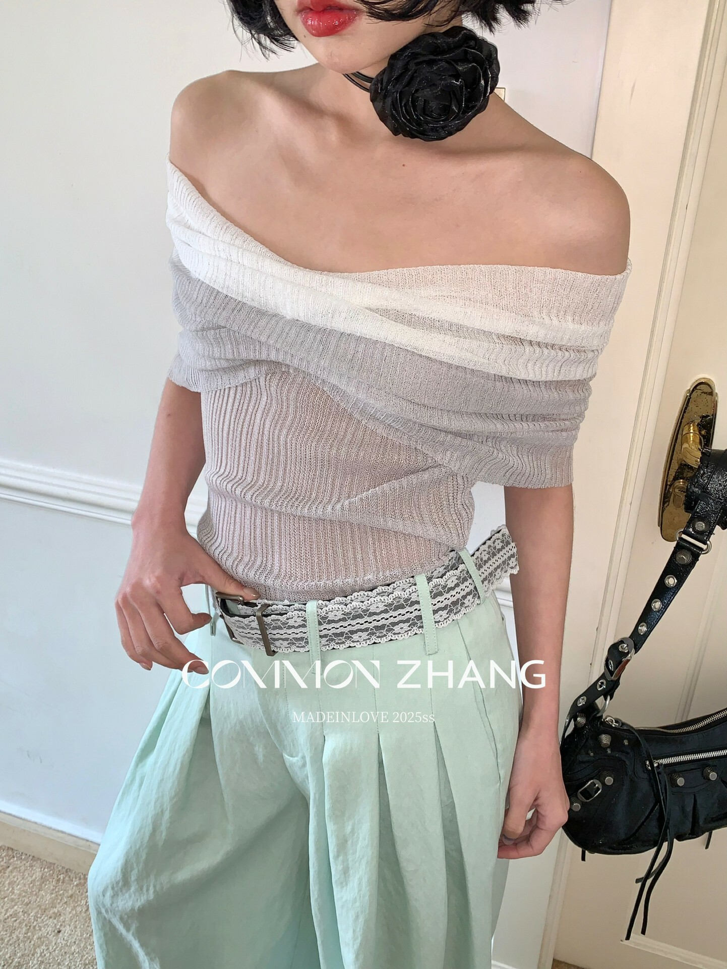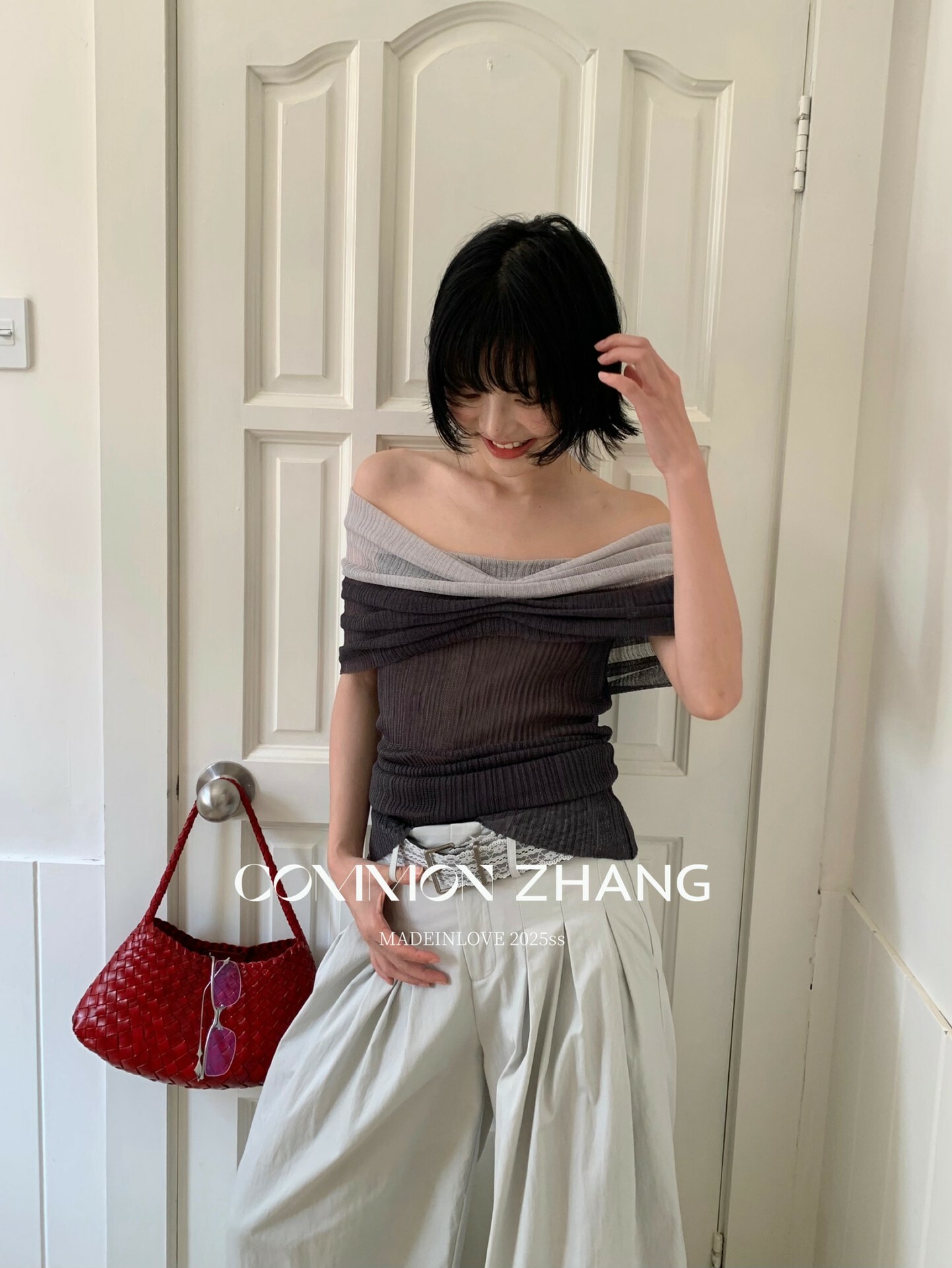 *o-ha-you*【FCZCB205646】夏季新款韓版一字領露肩性感透視純欲百搭針織衫-3色