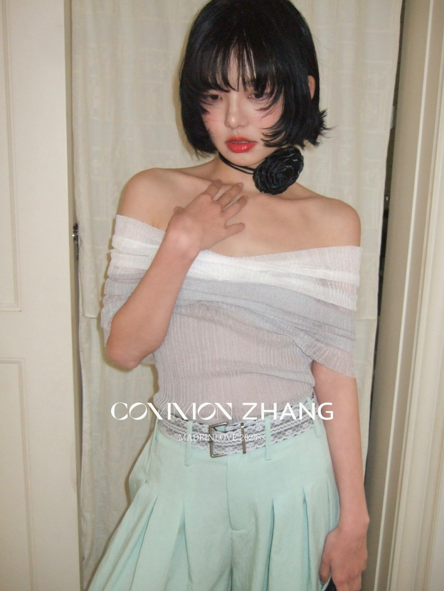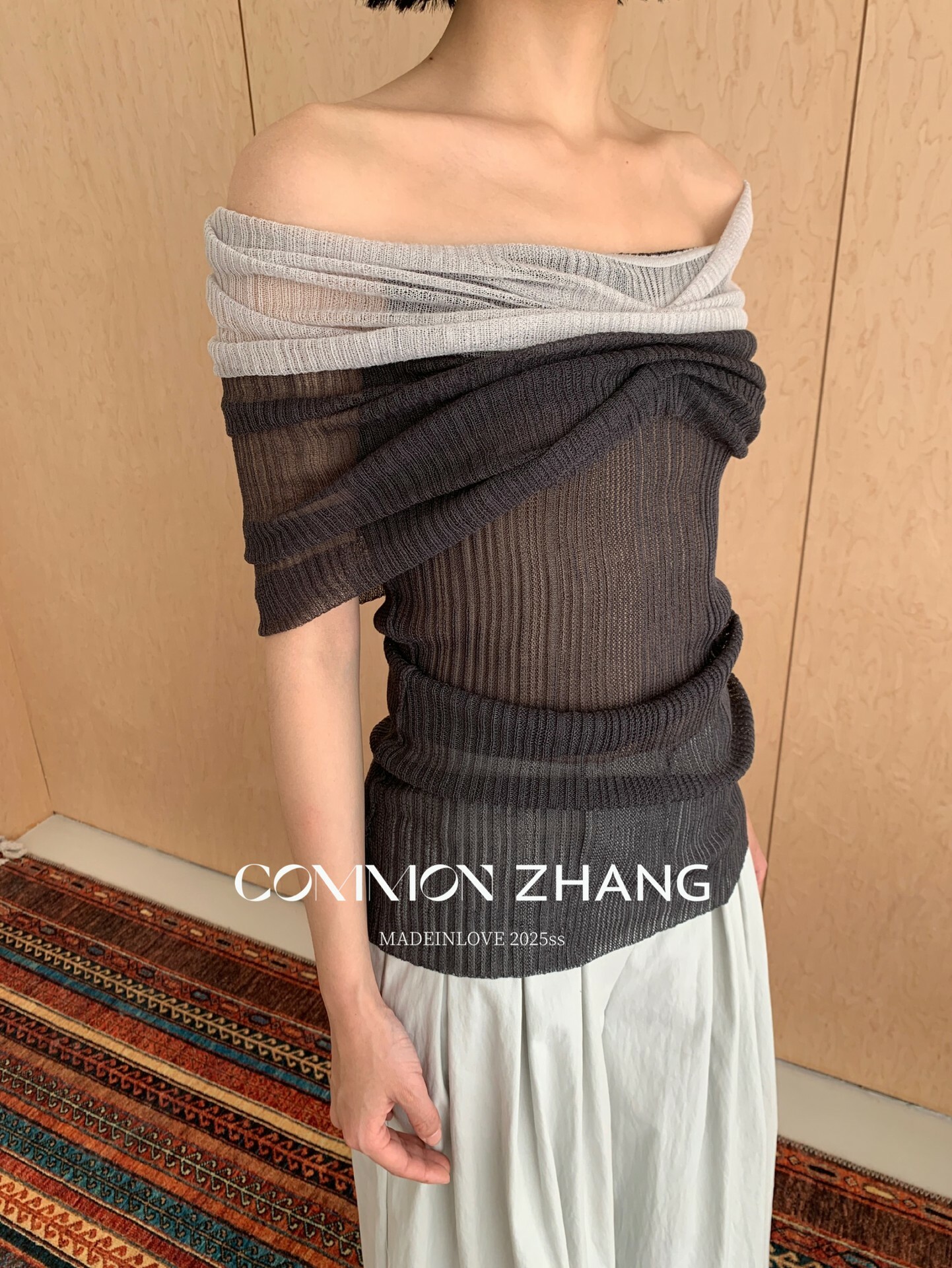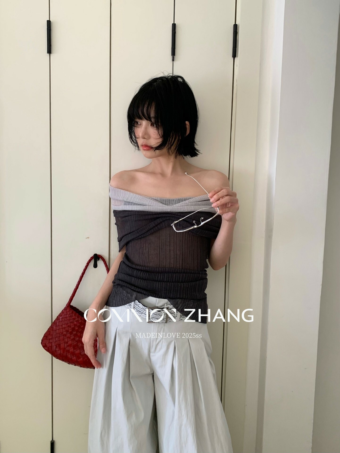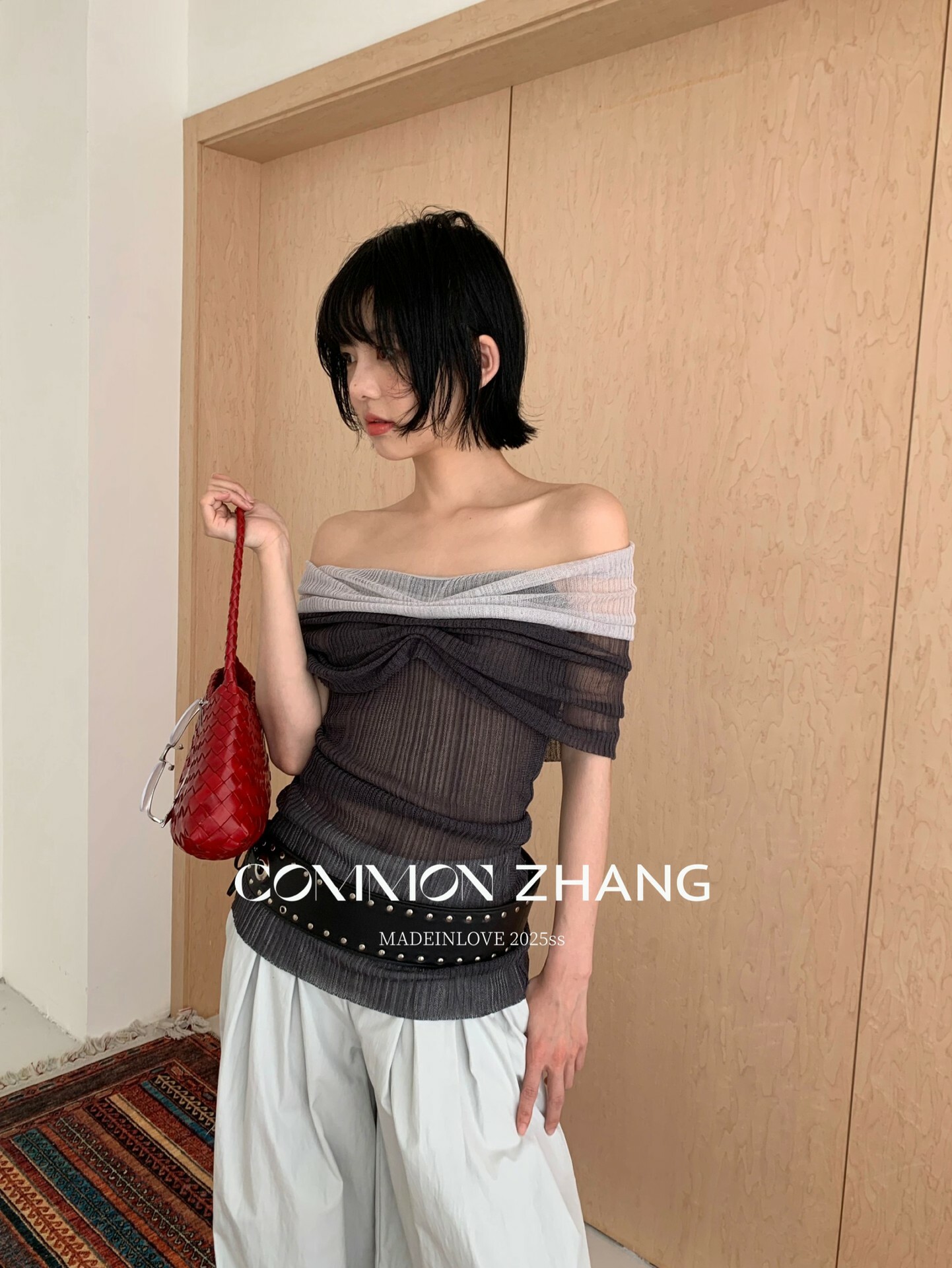 *o-ha-you*【FCZCB205646】夏季新款韓版一字領露肩性感透視純欲百搭針織衫-3色