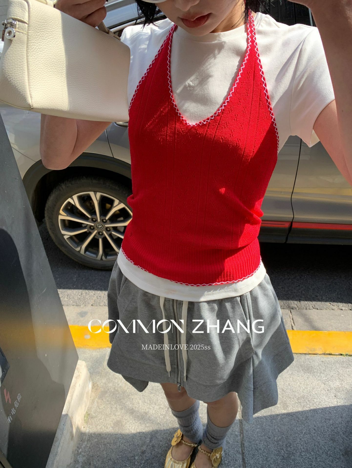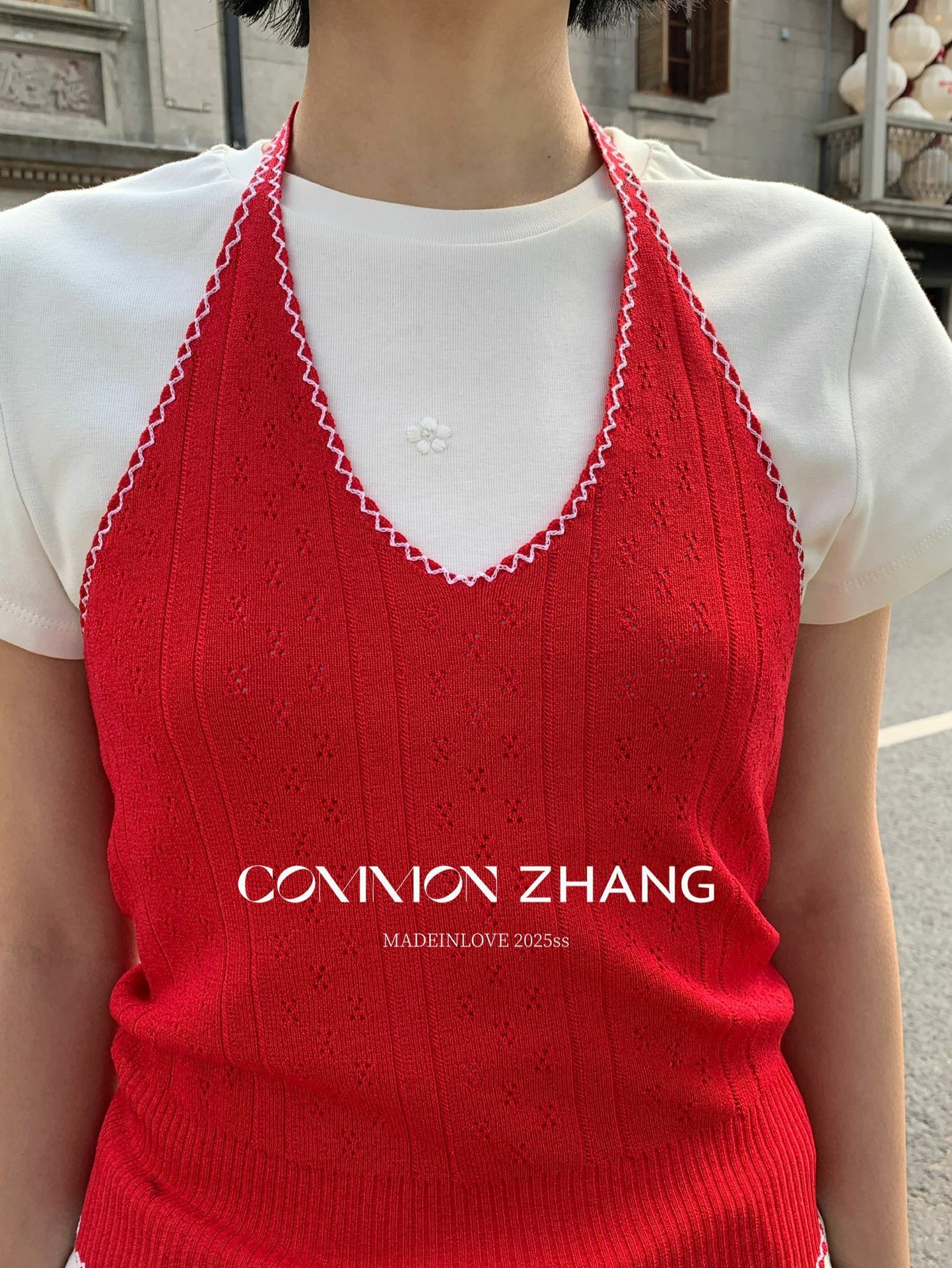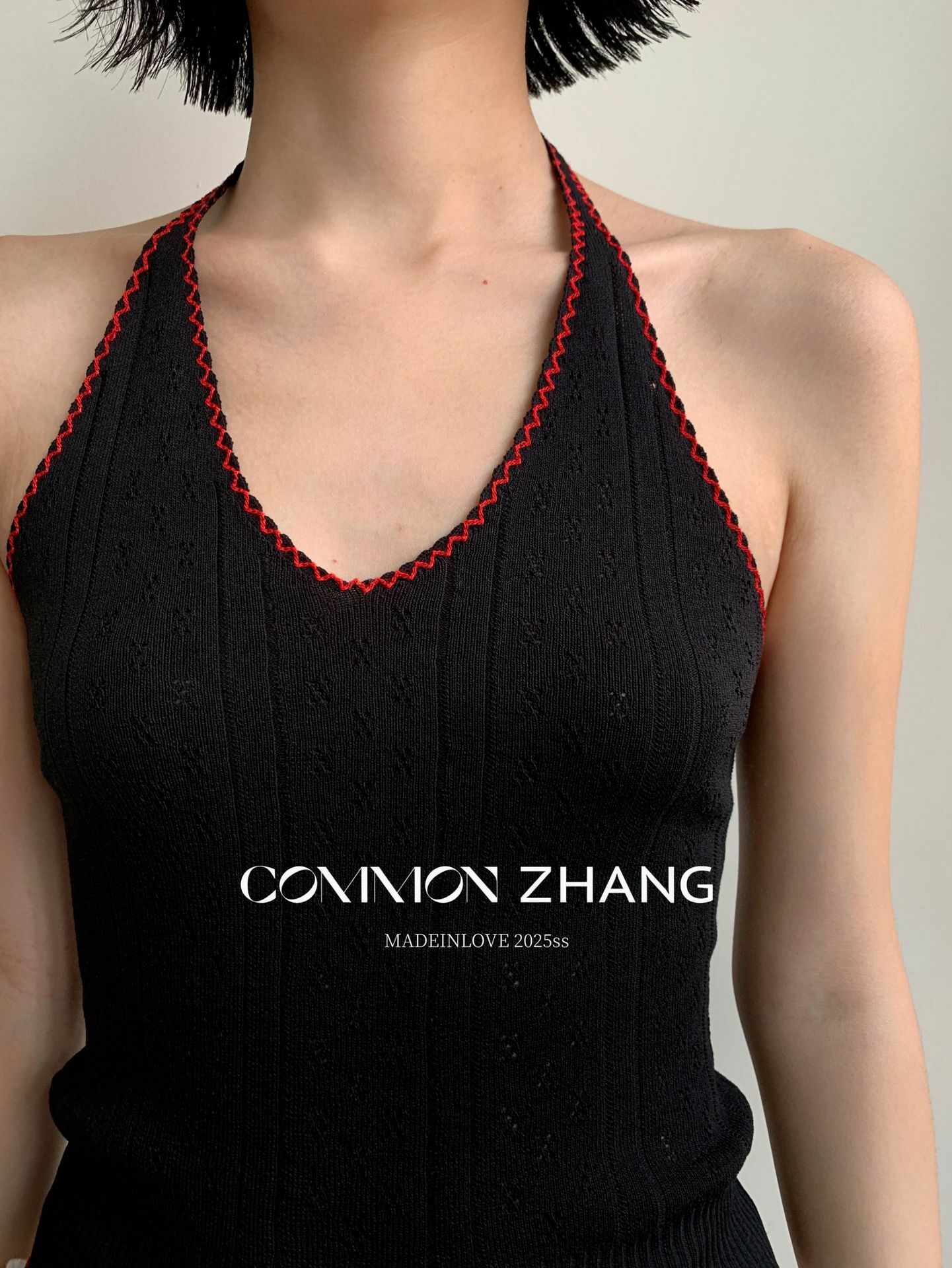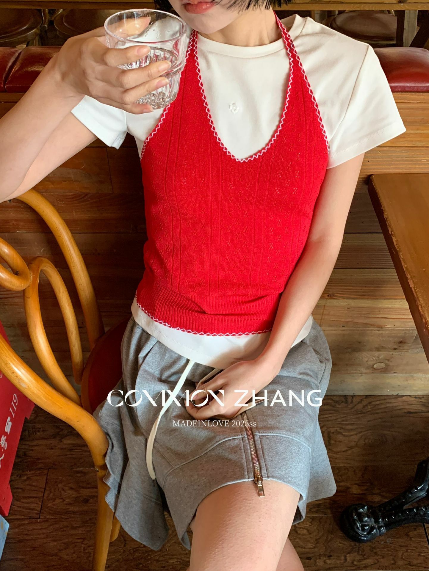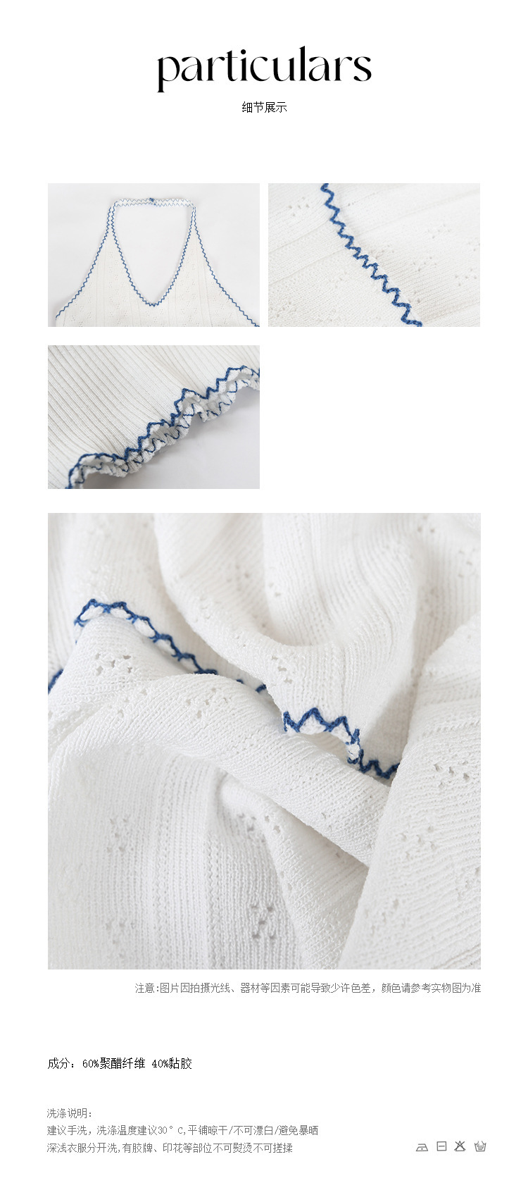 *o-ha-you*【FCZCB205748】夏季韓版拼色邊鏤空掛脖露背性感小眾背心針織衫-3色-如有需要請先諮詢