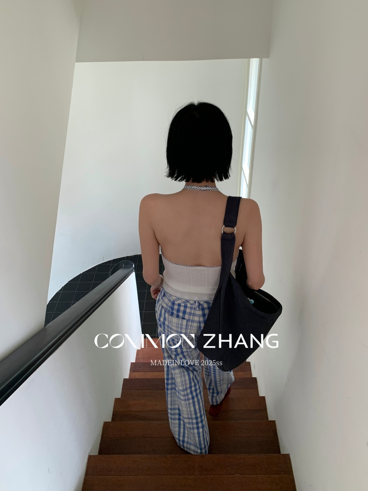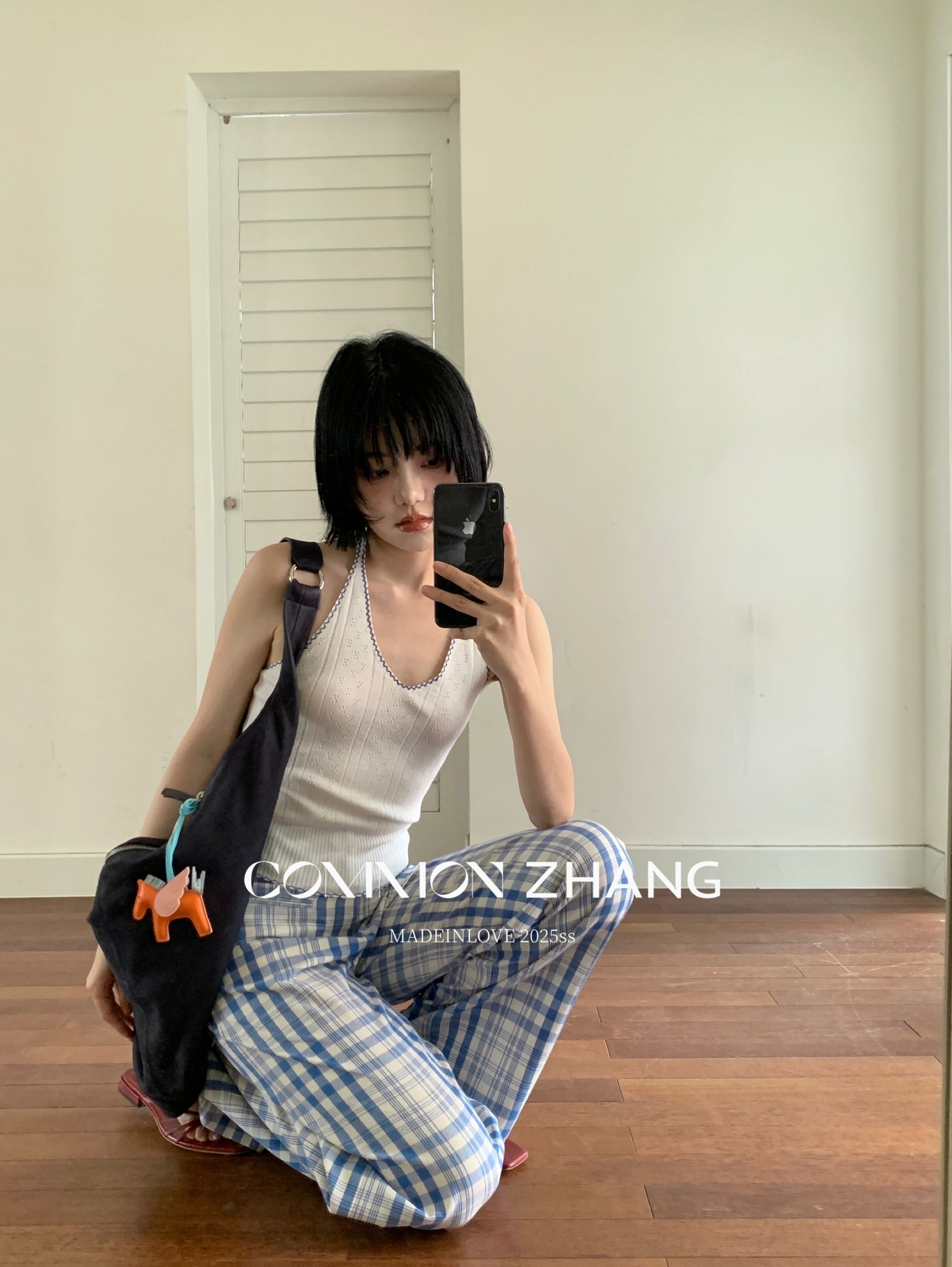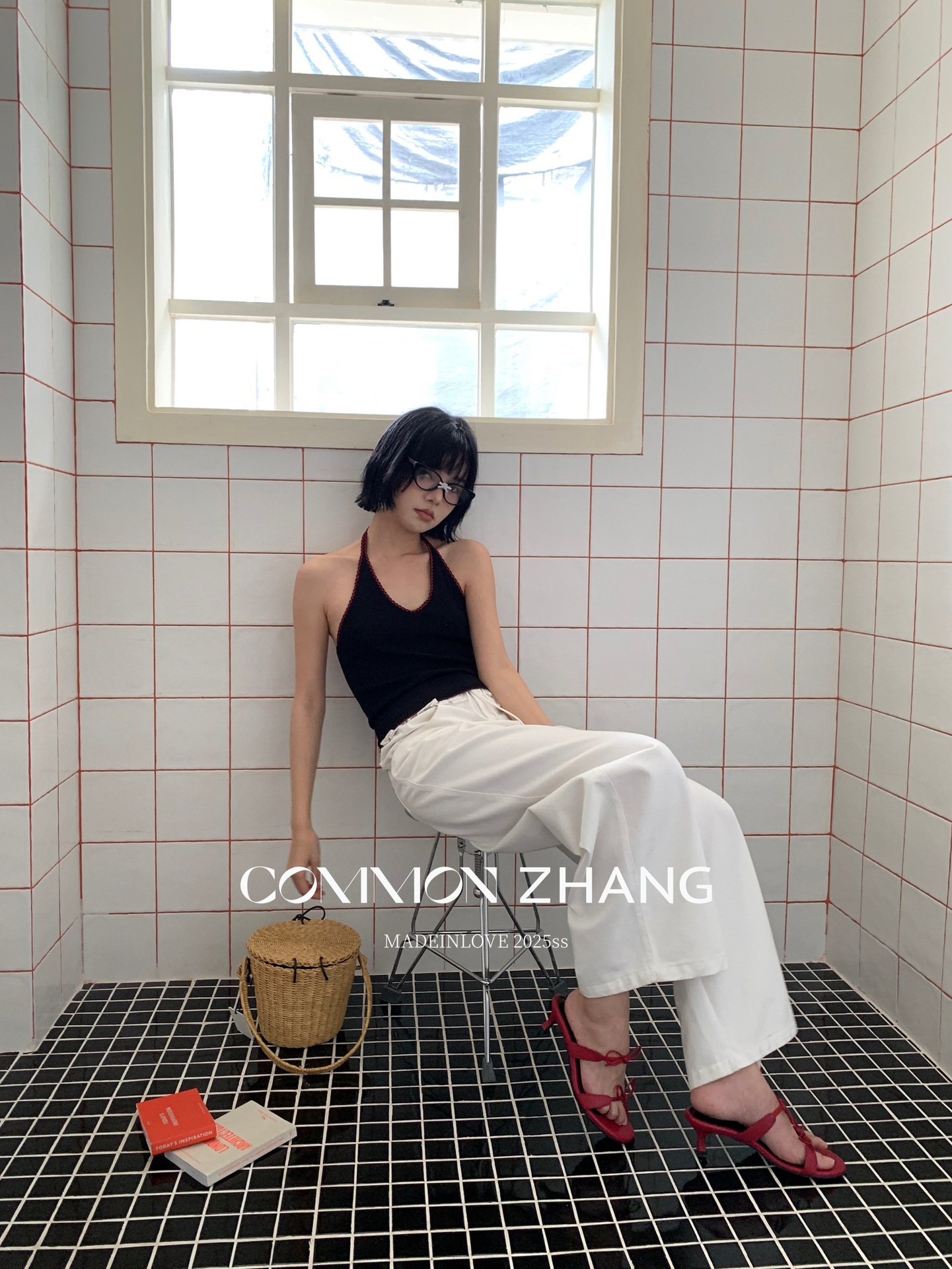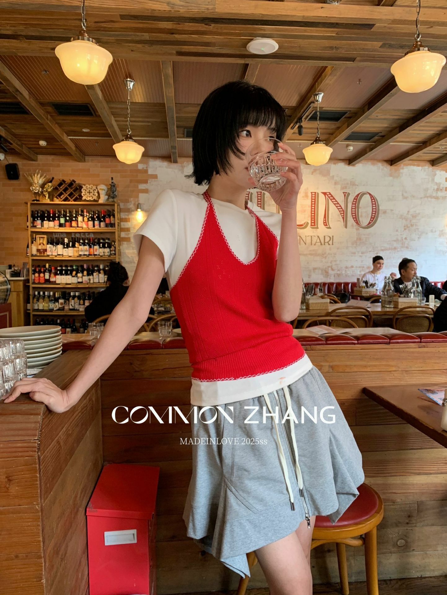 *o-ha-you*【FCZCB205748】夏季韓版拼色邊鏤空掛脖露背性感小眾背心針織衫-3色-如有需要請先諮詢