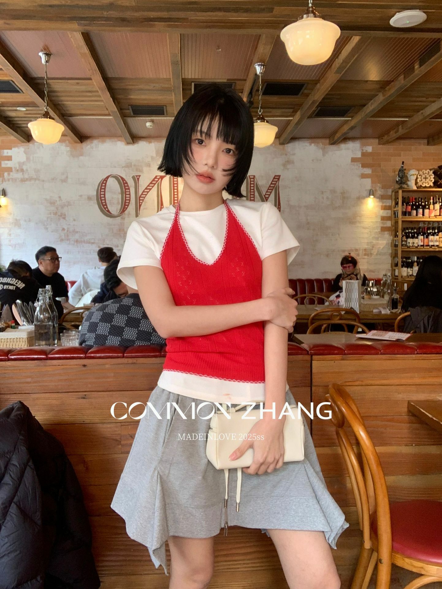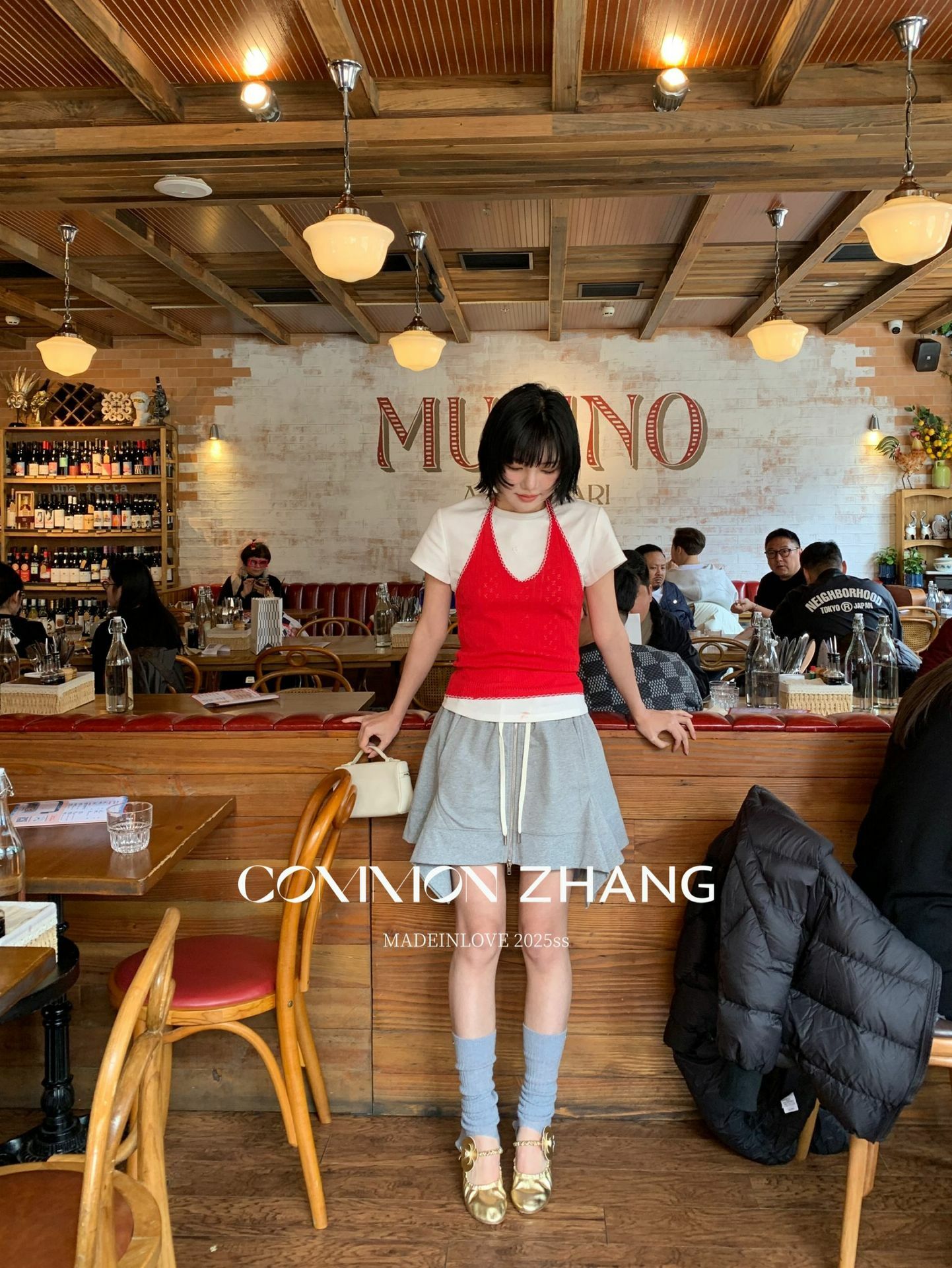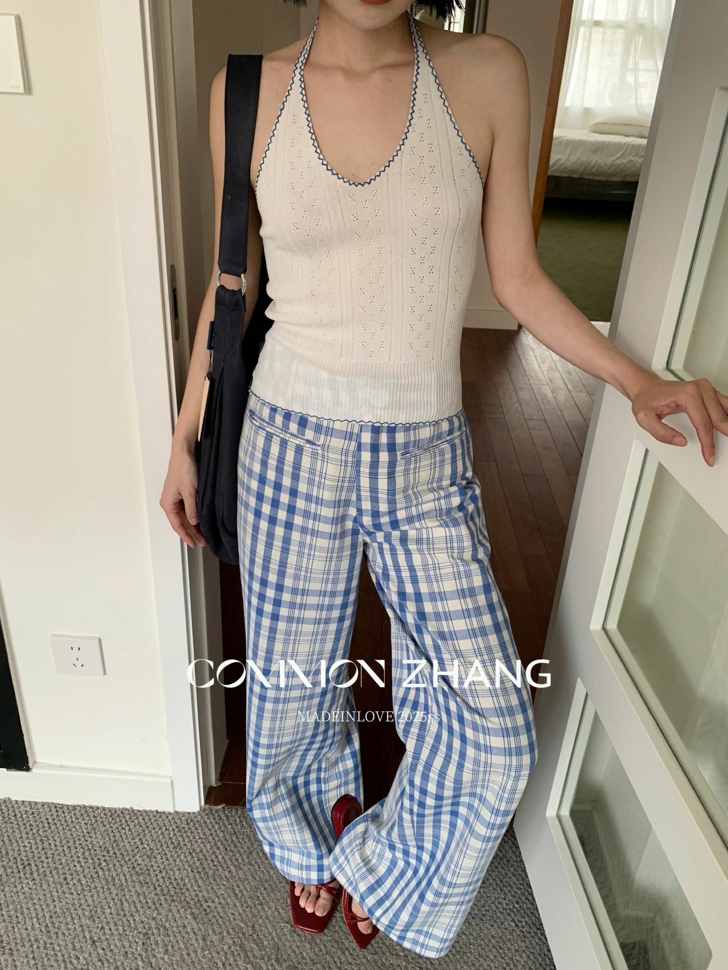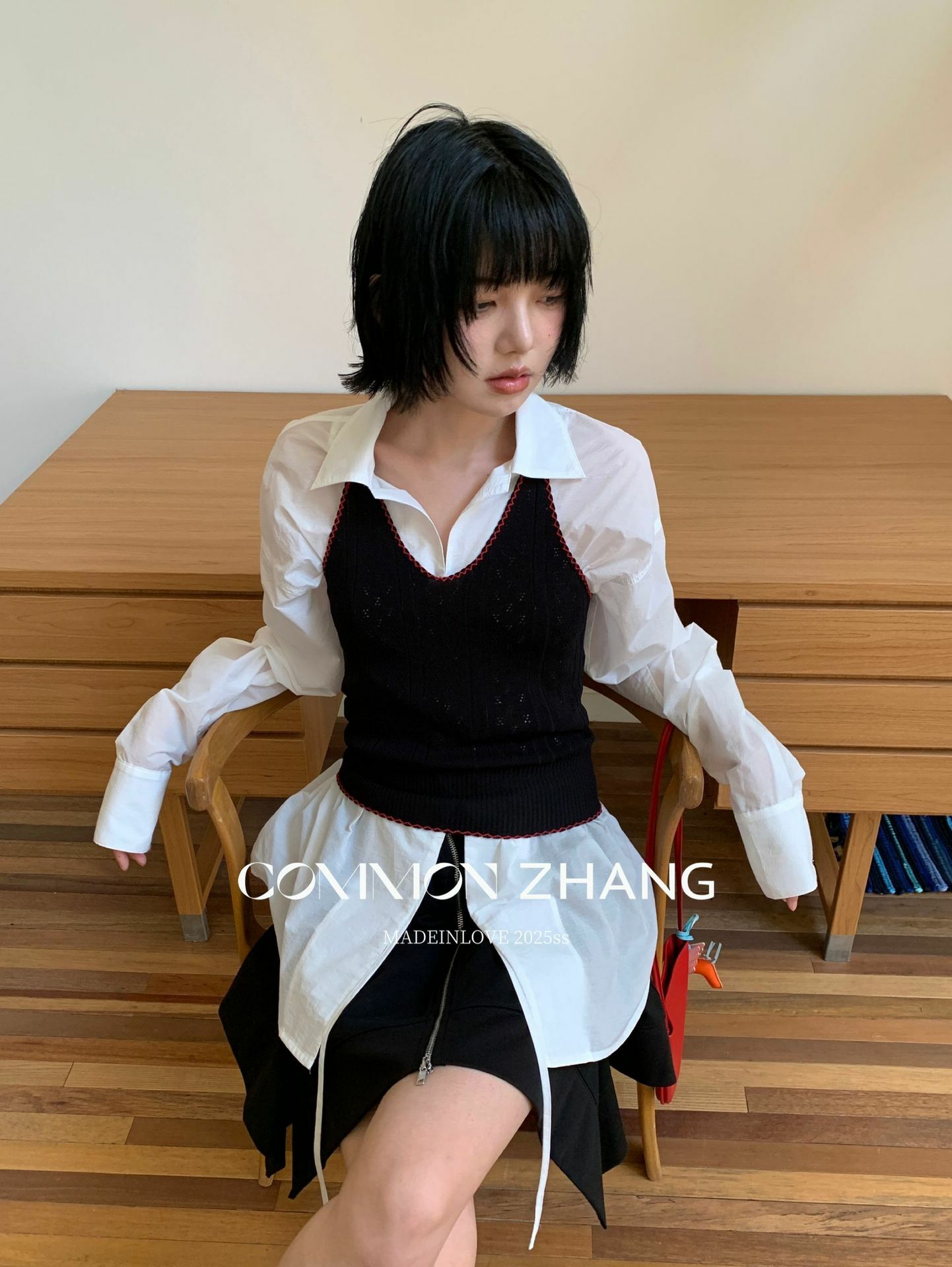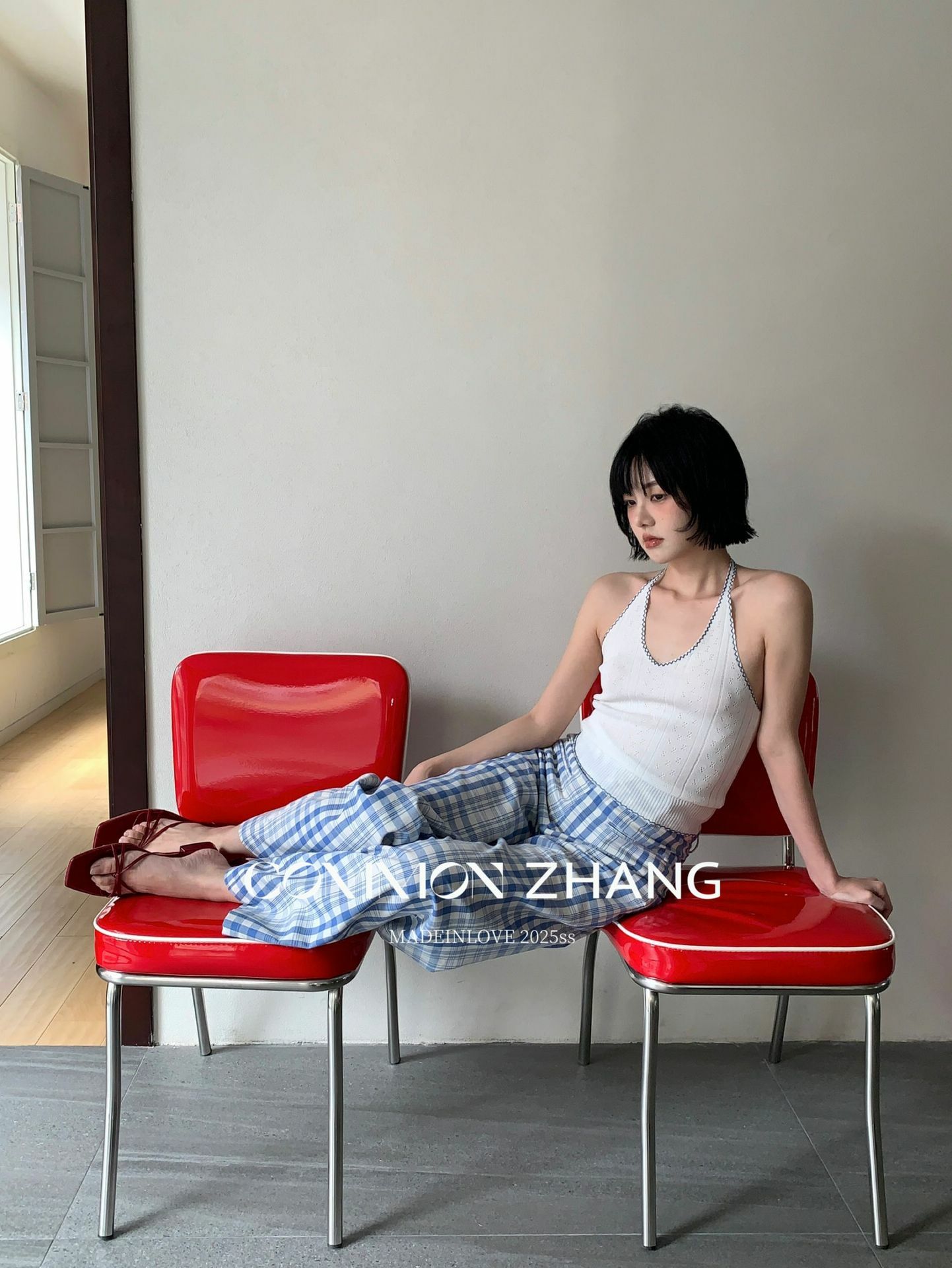*o-ha-you*【FCZCB205748】夏季韓版拼色邊鏤空掛脖露背性感小眾背心針織衫-3色-如有需要請先諮詢