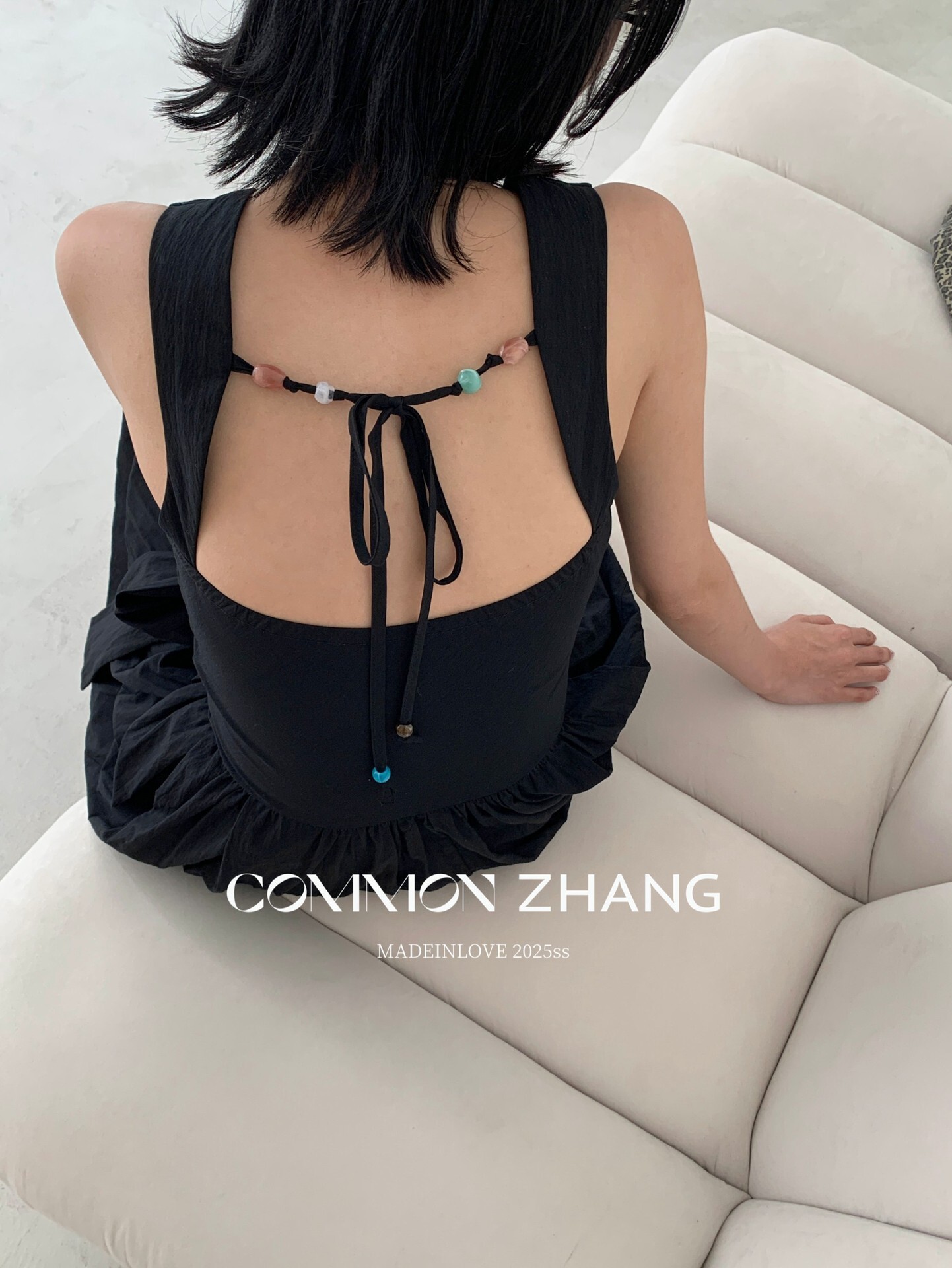 *o-ha-you*【FCZCB206379】夏季韓版度假出遊遮胯收腰露背顯瘦花苞背心連衣裙洋裝-2色