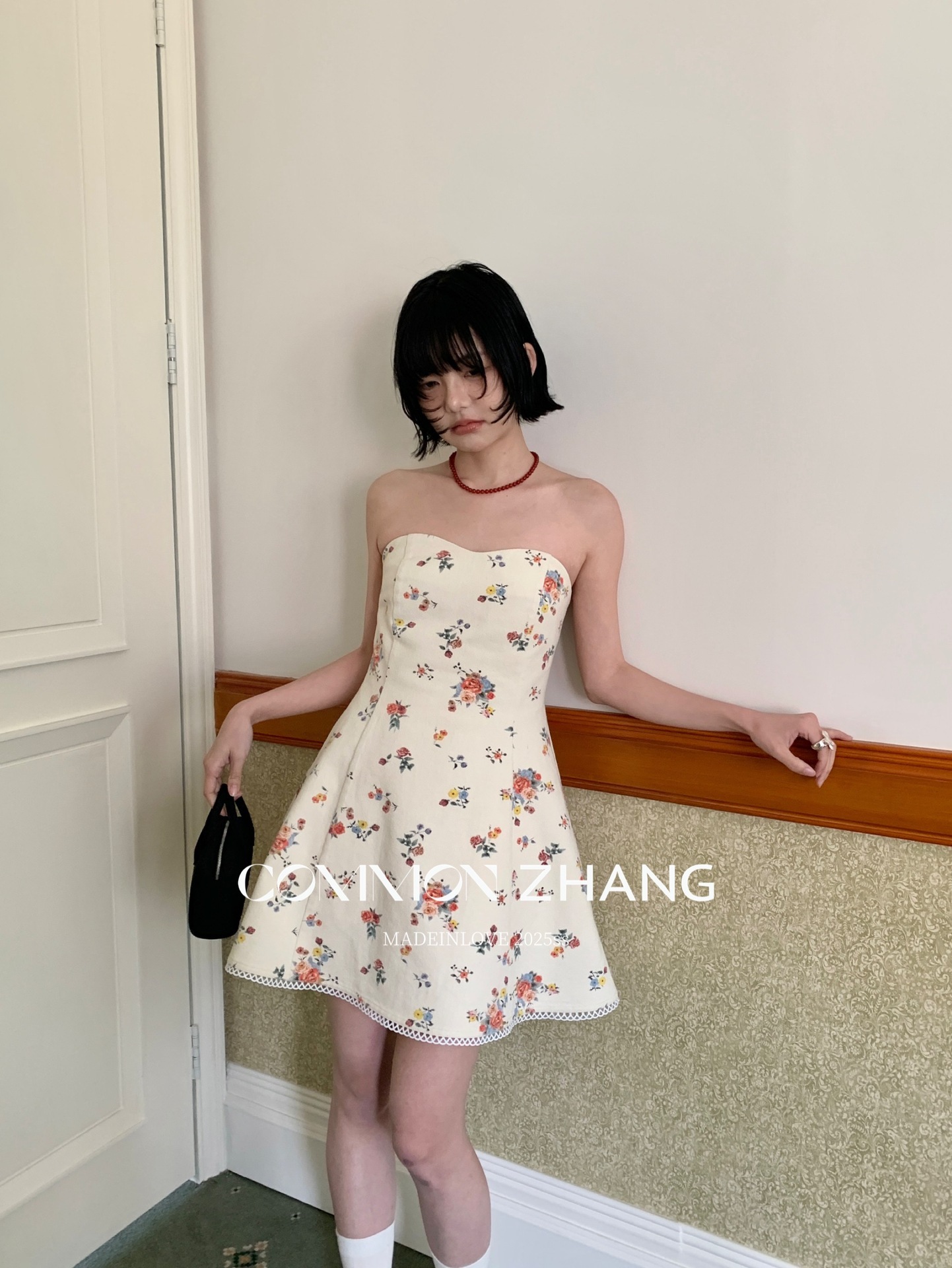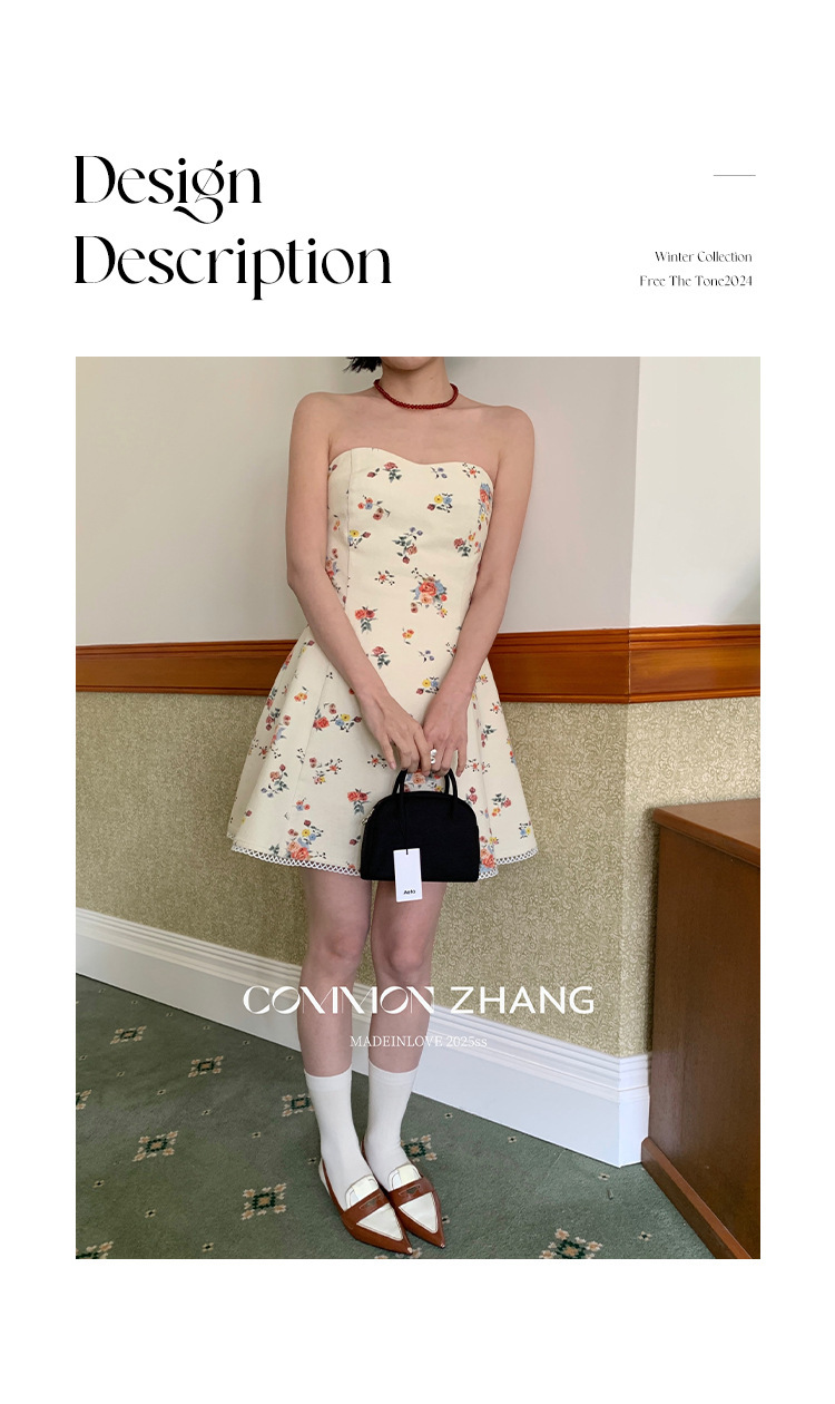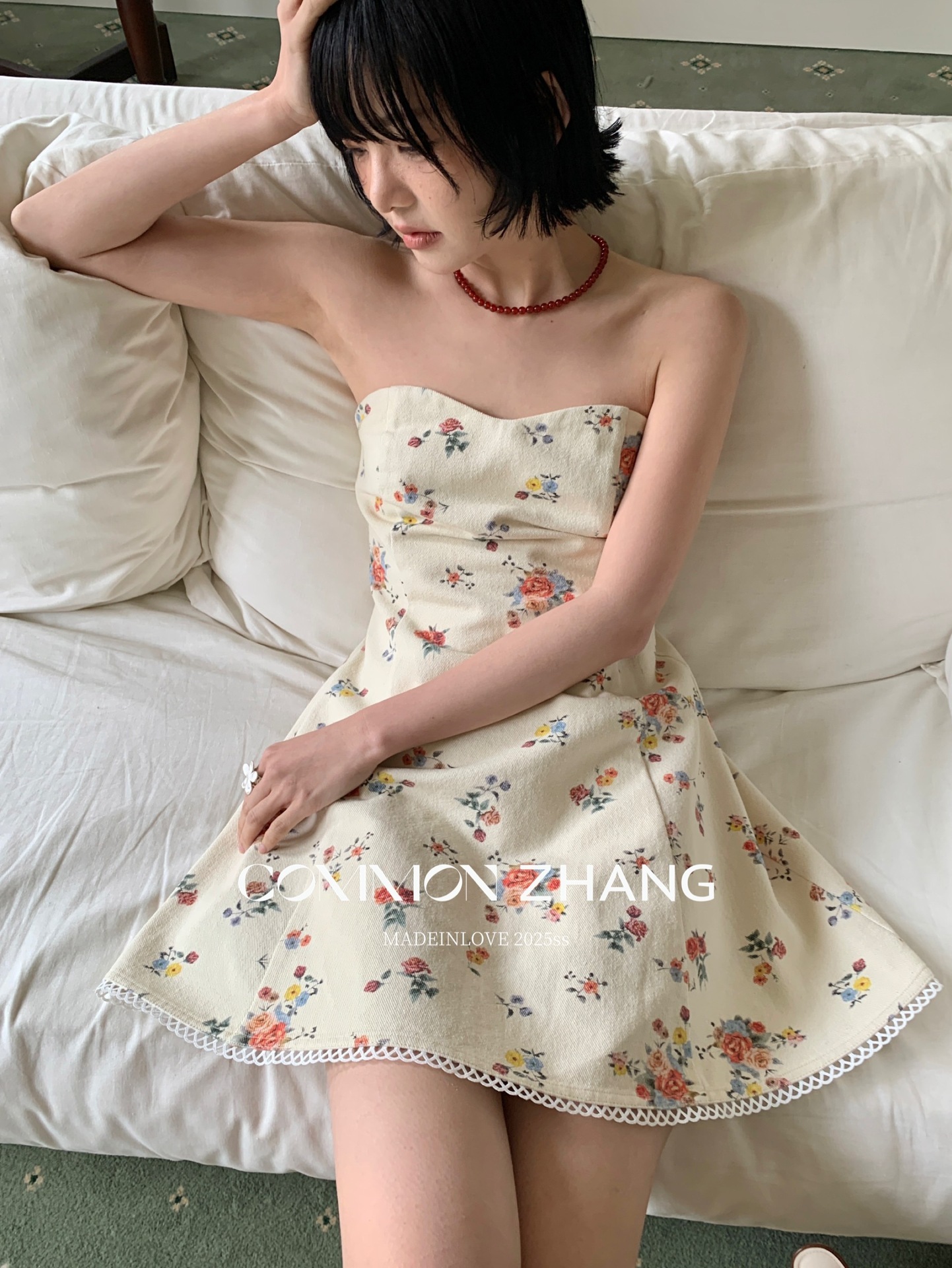 *o-ha-you*【FCZCB206827】夏季法式減齡女孩感碎花收腰顯瘦百搭抹胸連衣裙小洋裝-2色