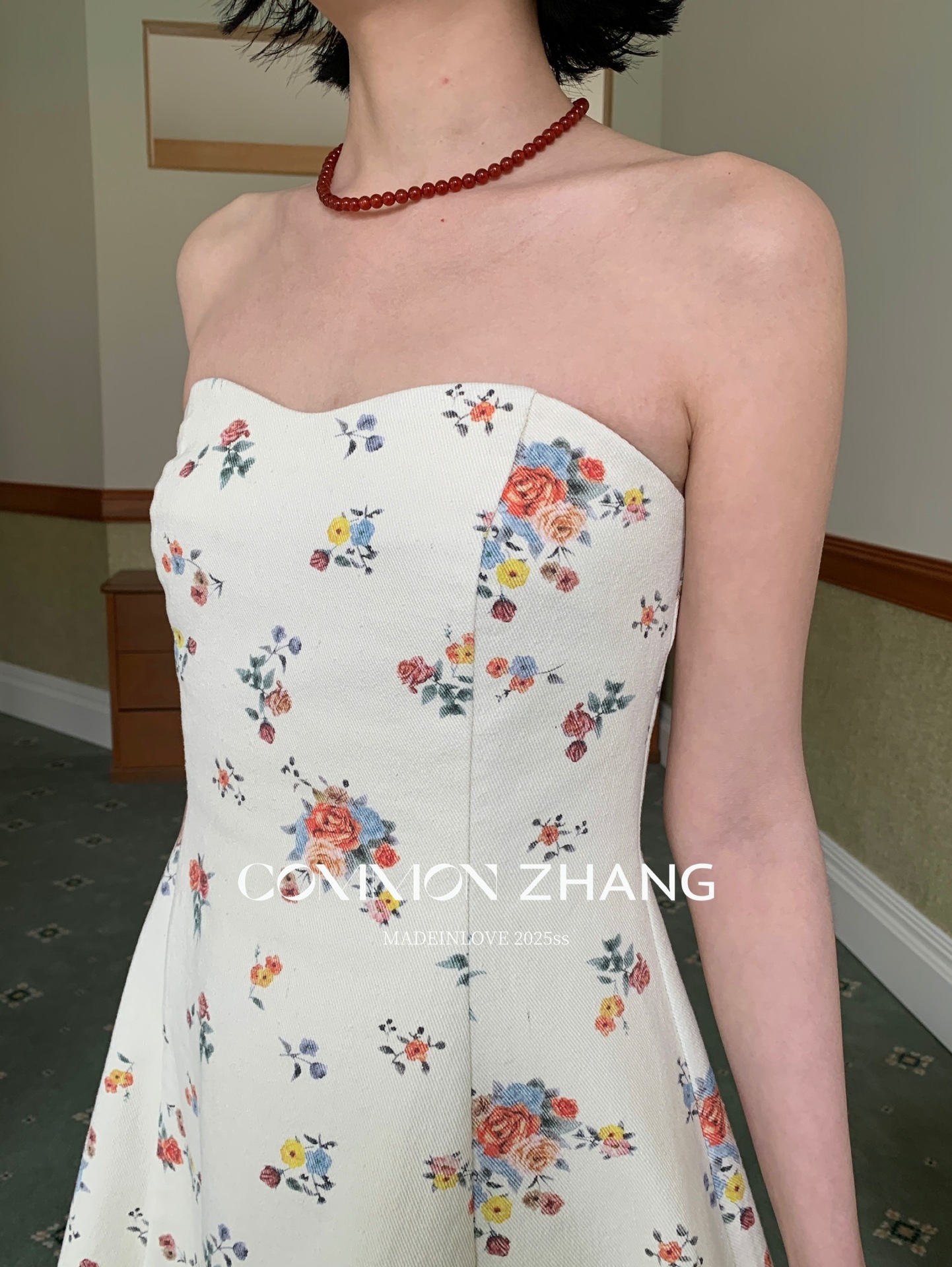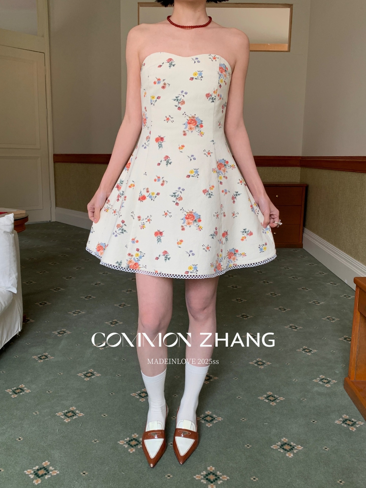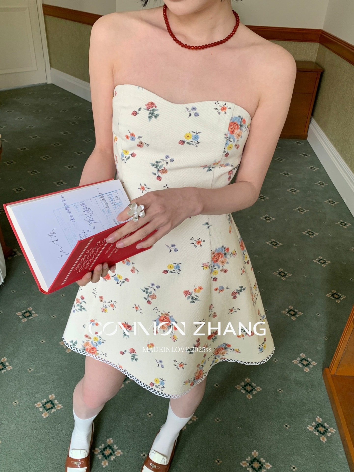 *o-ha-you*【FCZCB206827】夏季法式減齡女孩感碎花收腰顯瘦百搭抹胸連衣裙小洋裝-2色