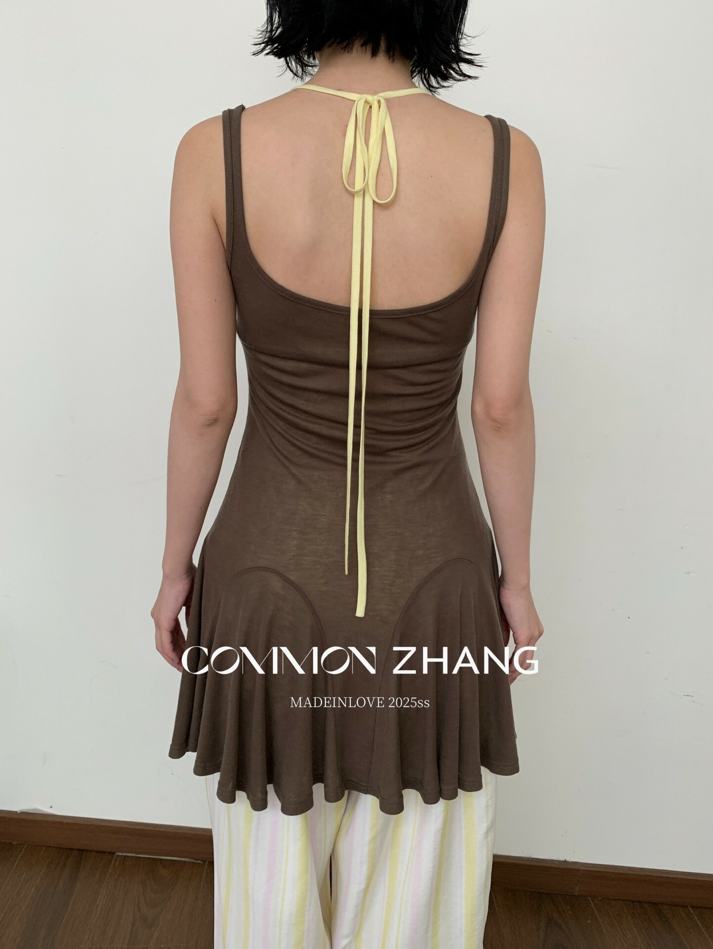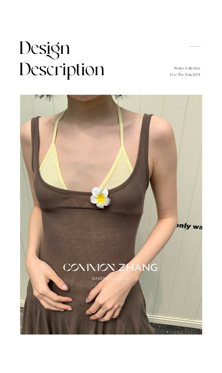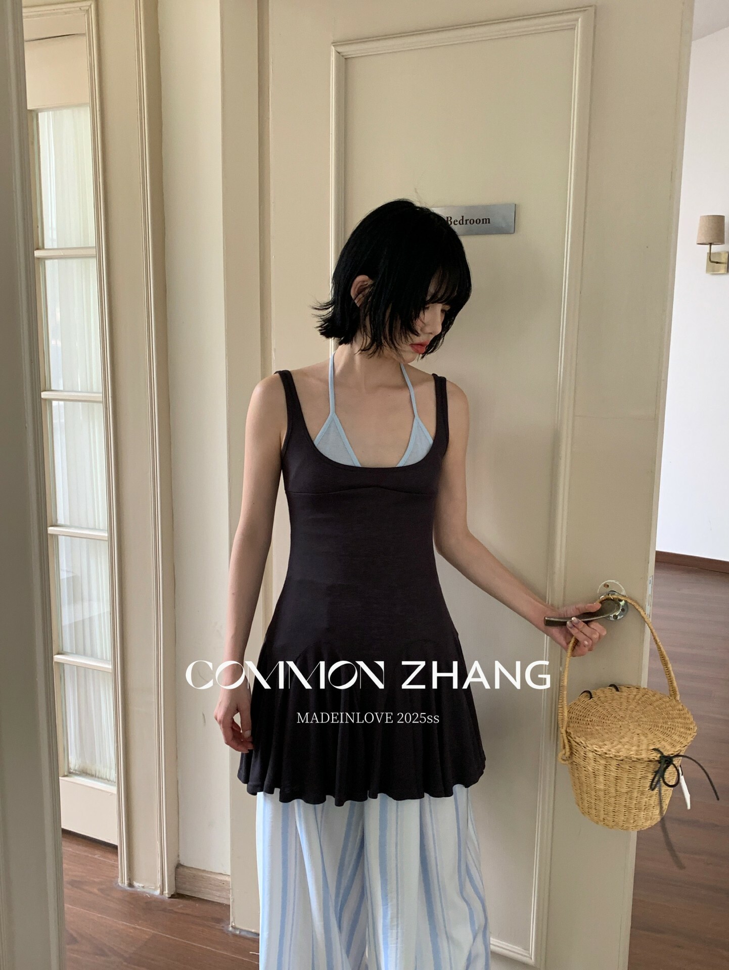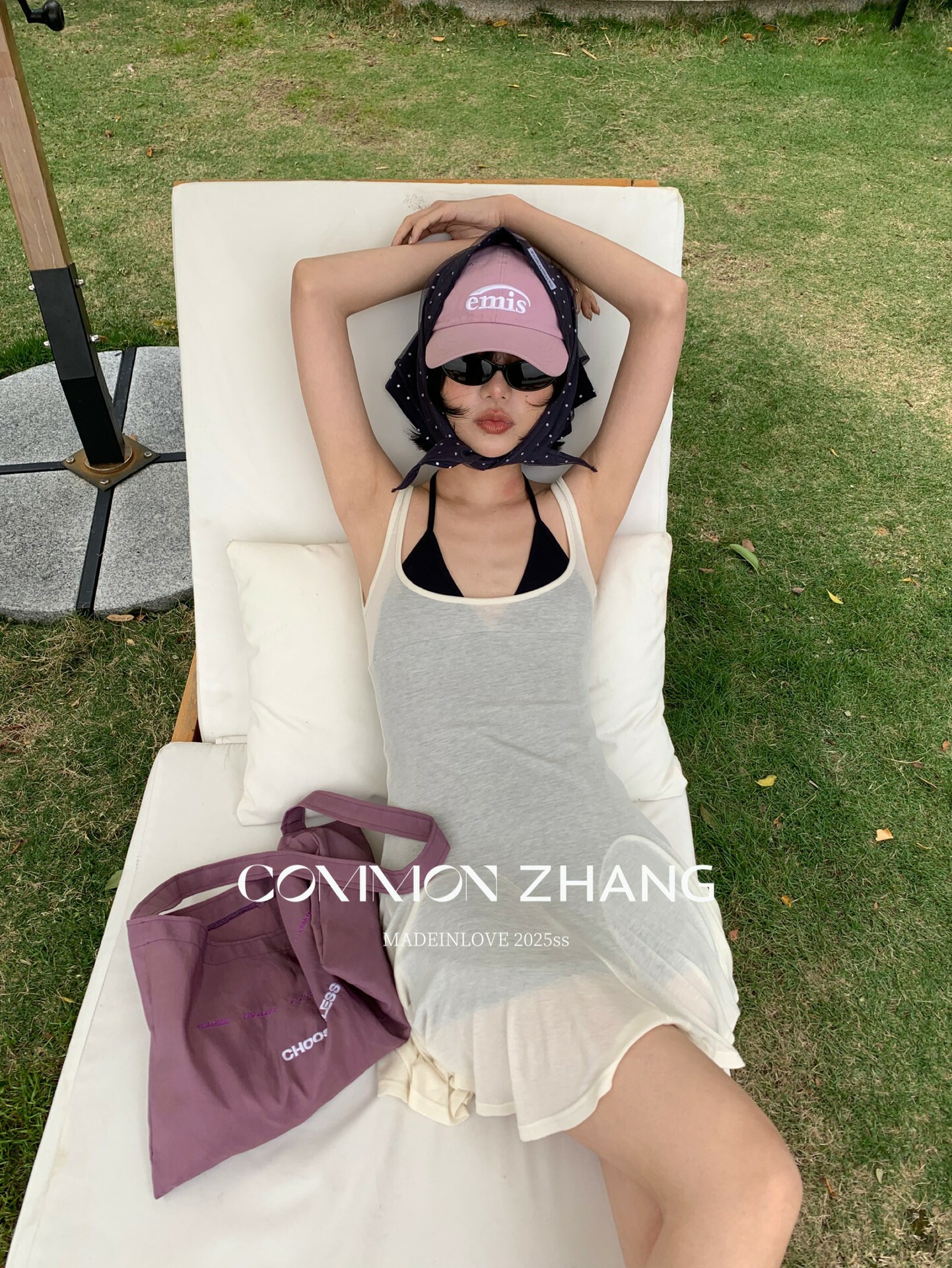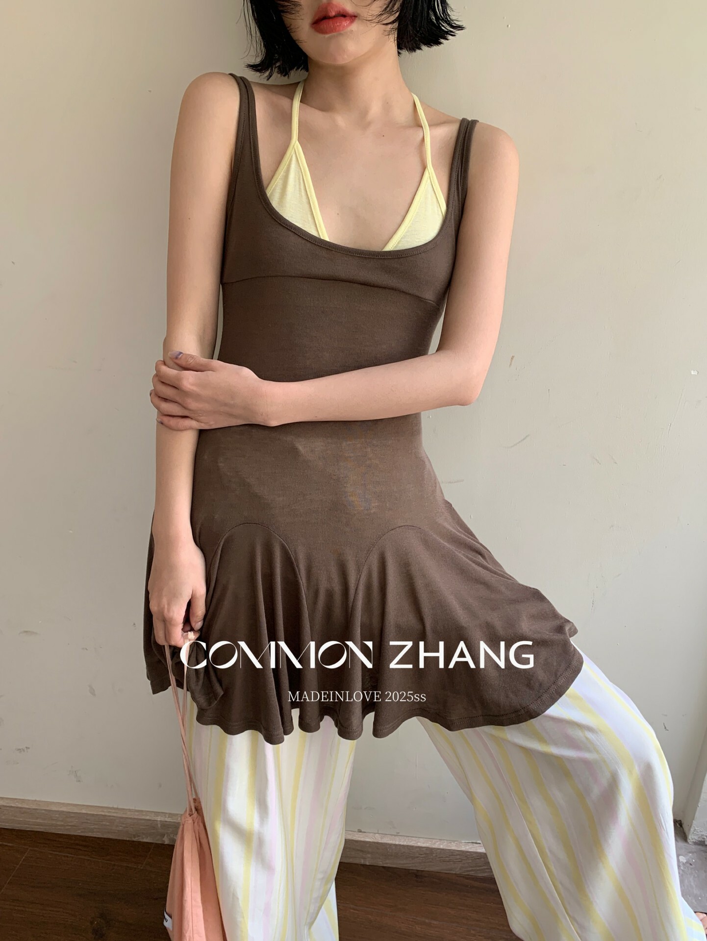 *o-ha-you*【FCZCB206882】夏季韓版天絲掛脖內搭疊穿羊毛背心連衣裙假兩件洋裝-4色
