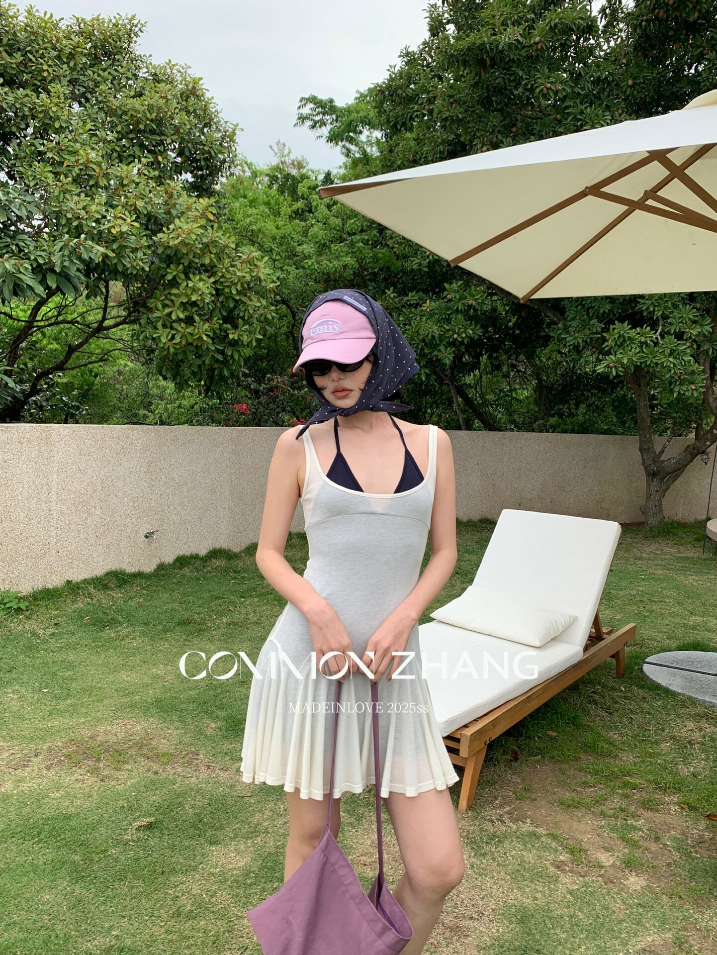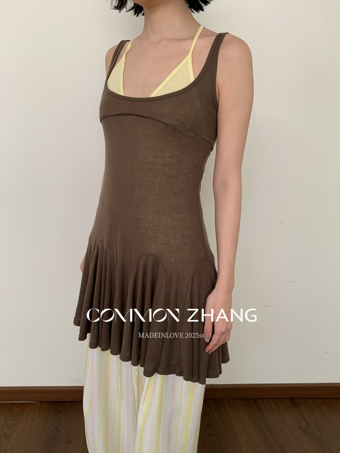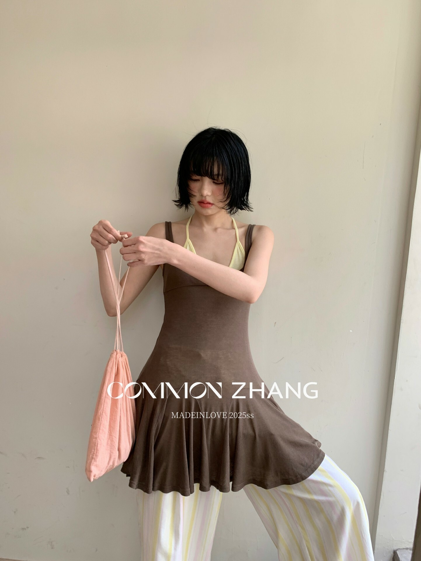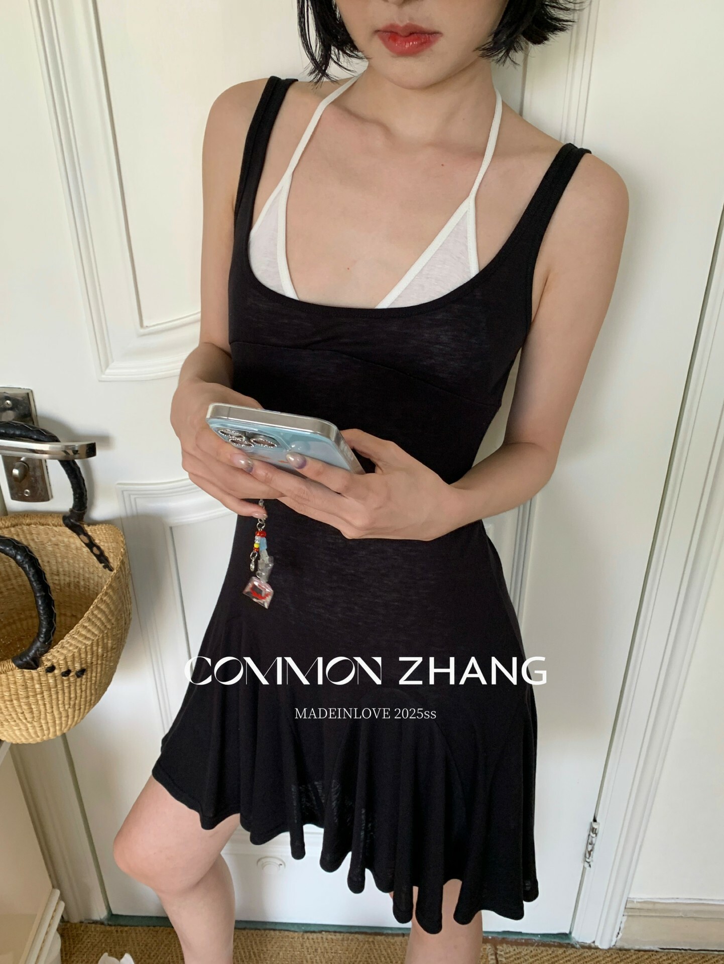 *o-ha-you*【FCZCB206882】夏季韓版天絲掛脖內搭疊穿羊毛背心連衣裙假兩件洋裝-4色