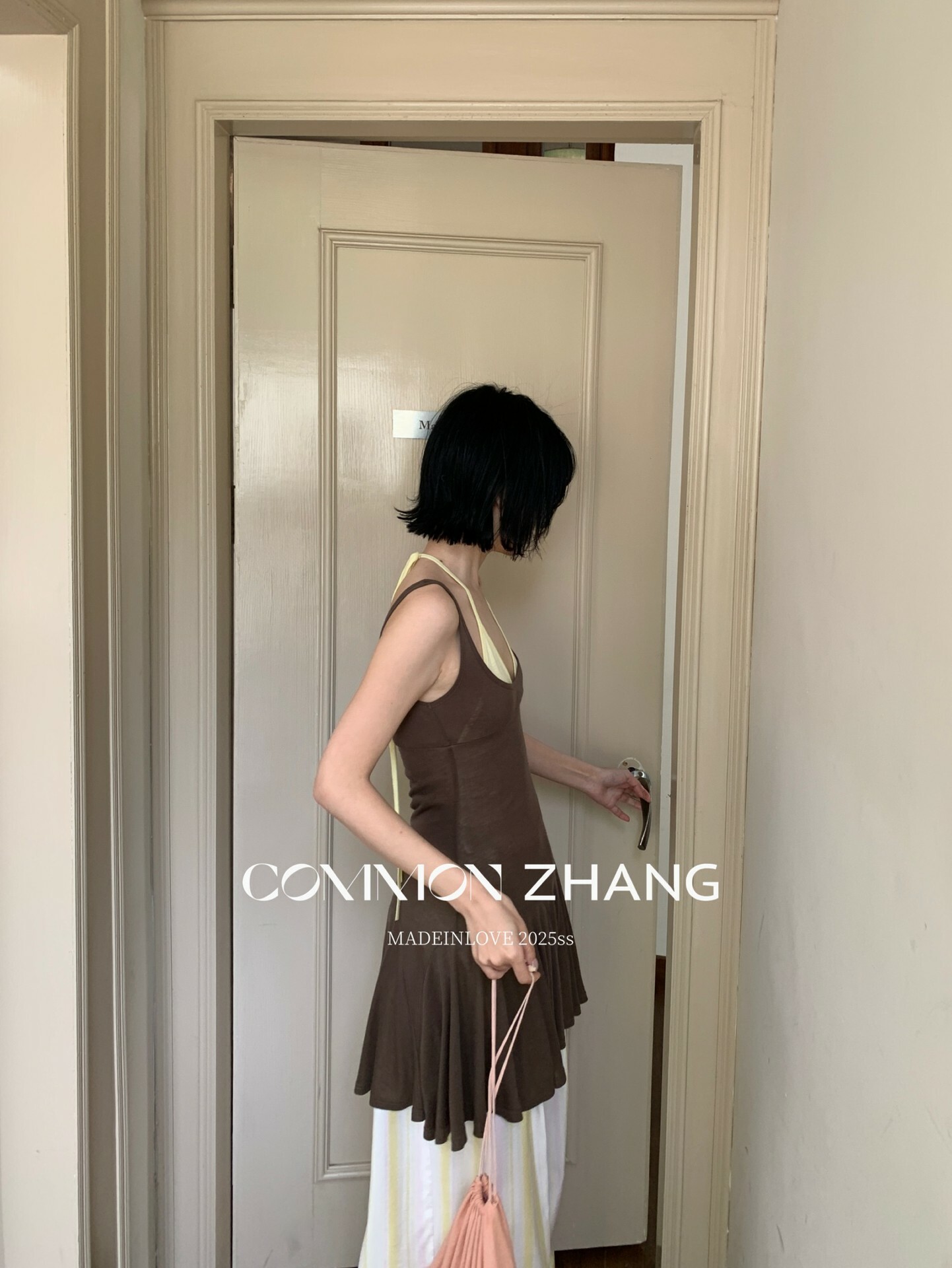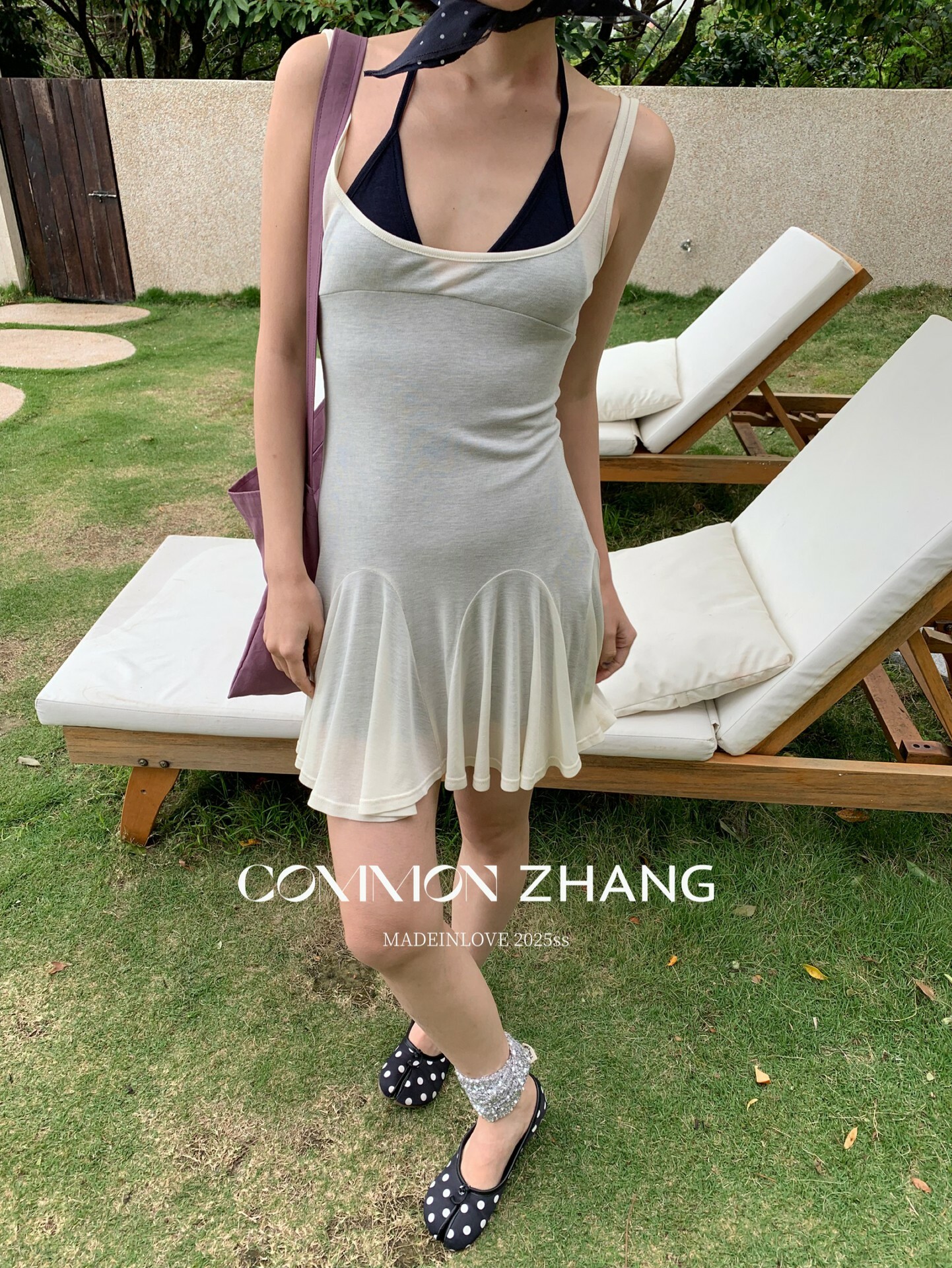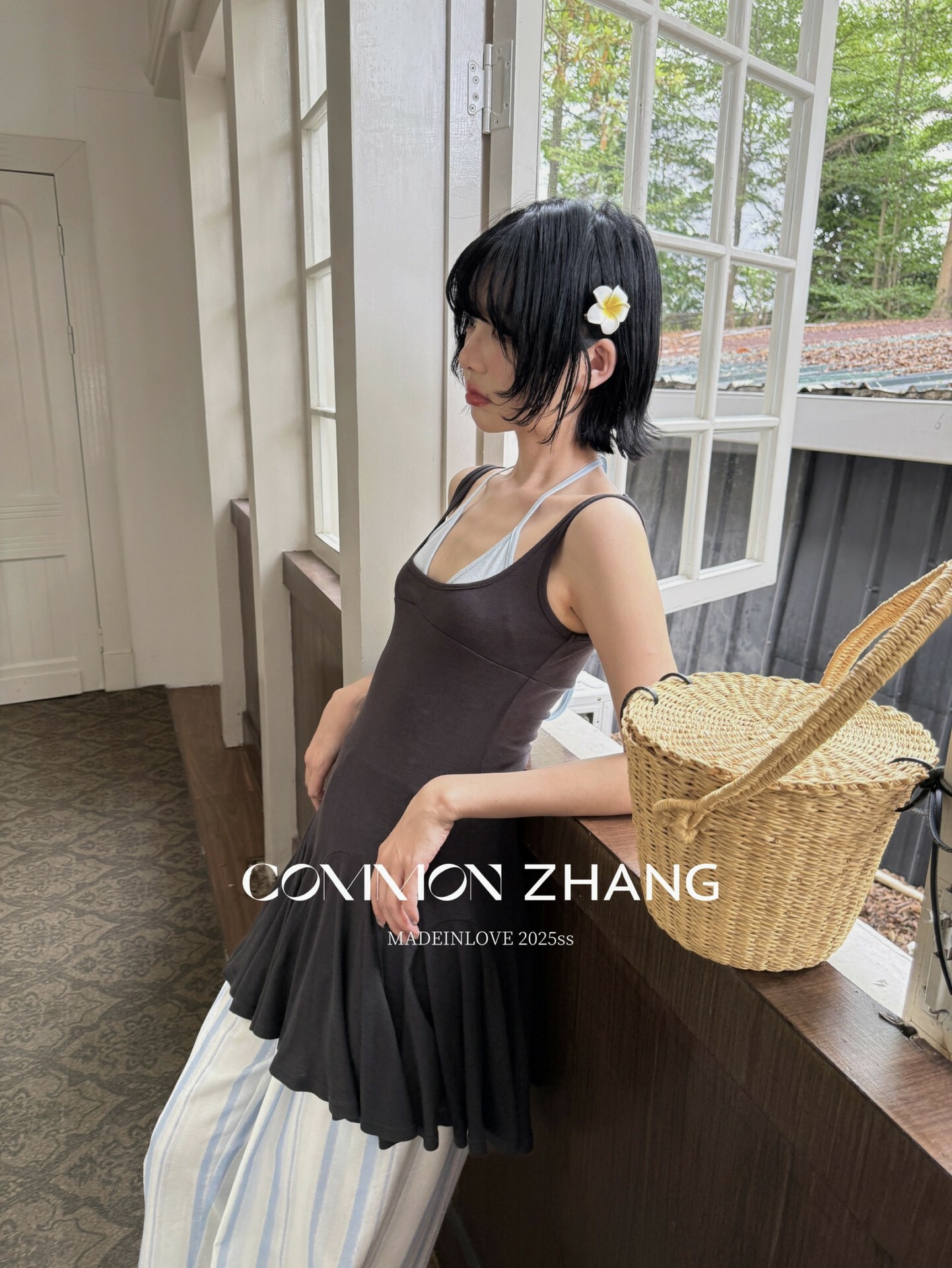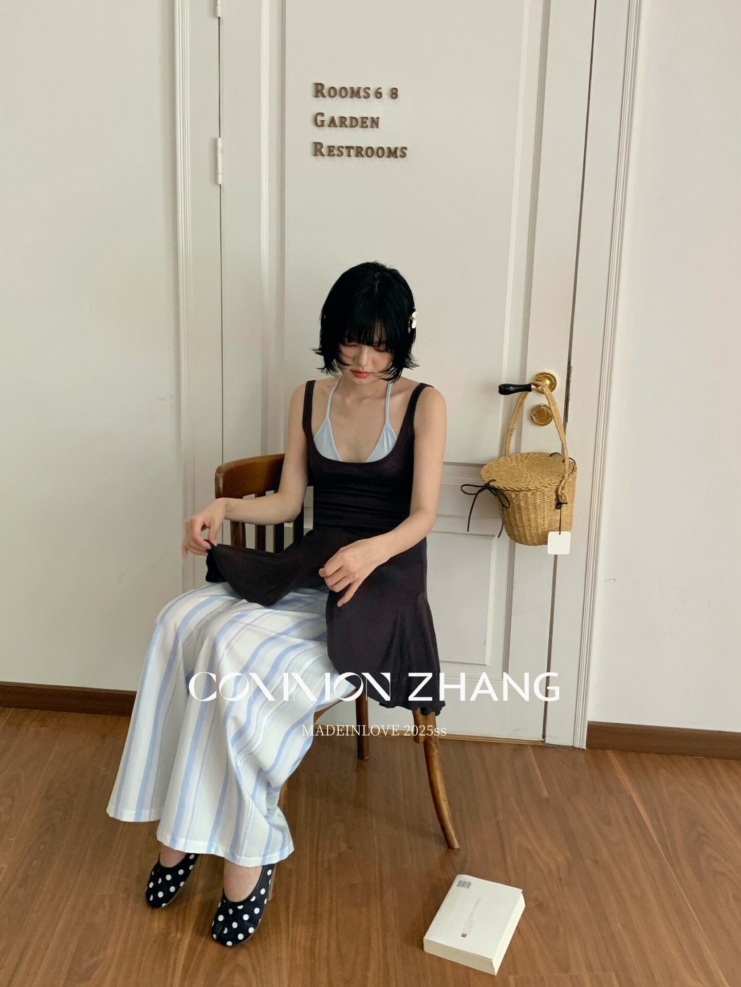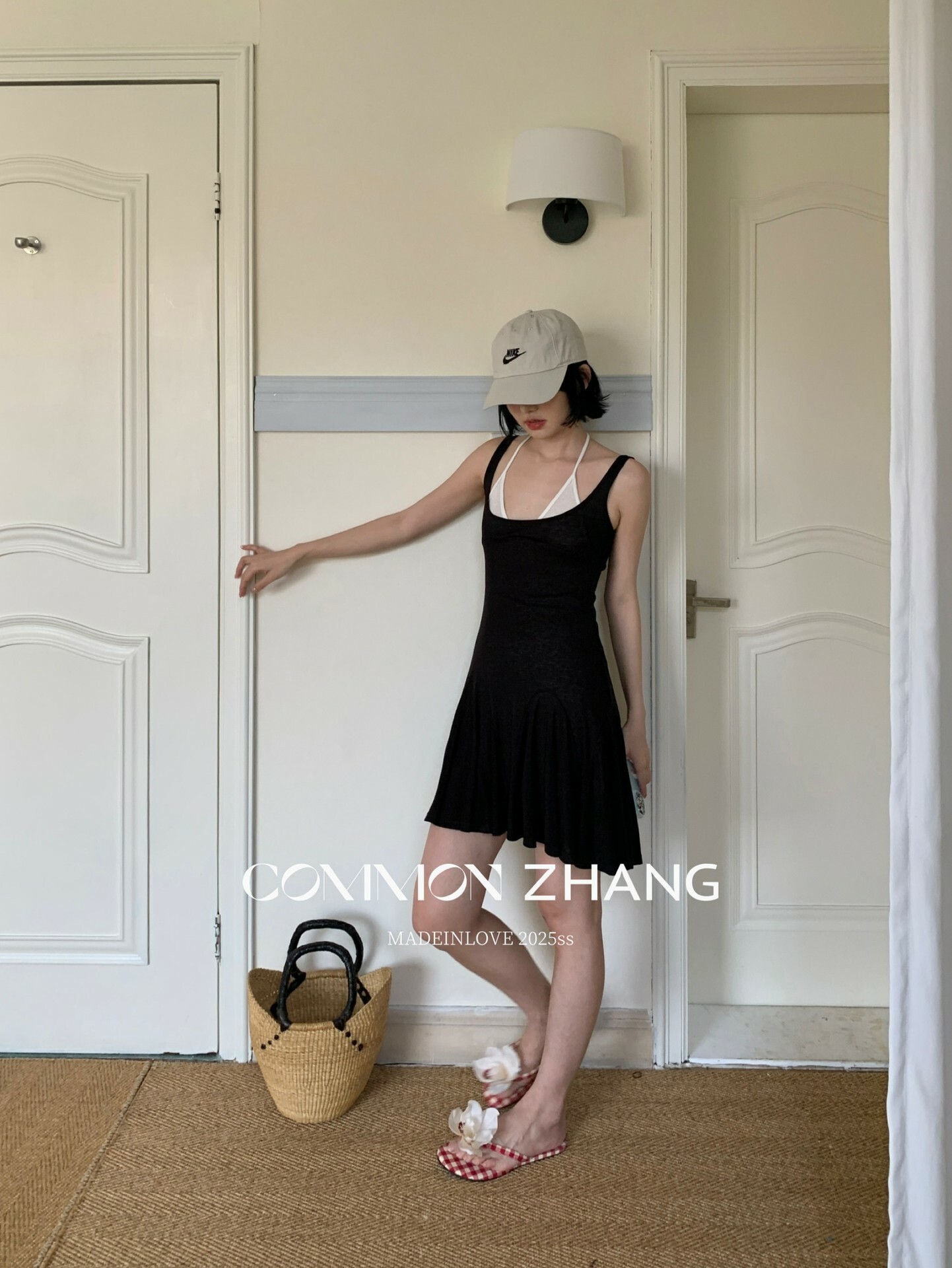 *o-ha-you*【FCZCB206882】夏季韓版天絲掛脖內搭疊穿羊毛背心連衣裙假兩件洋裝-4色