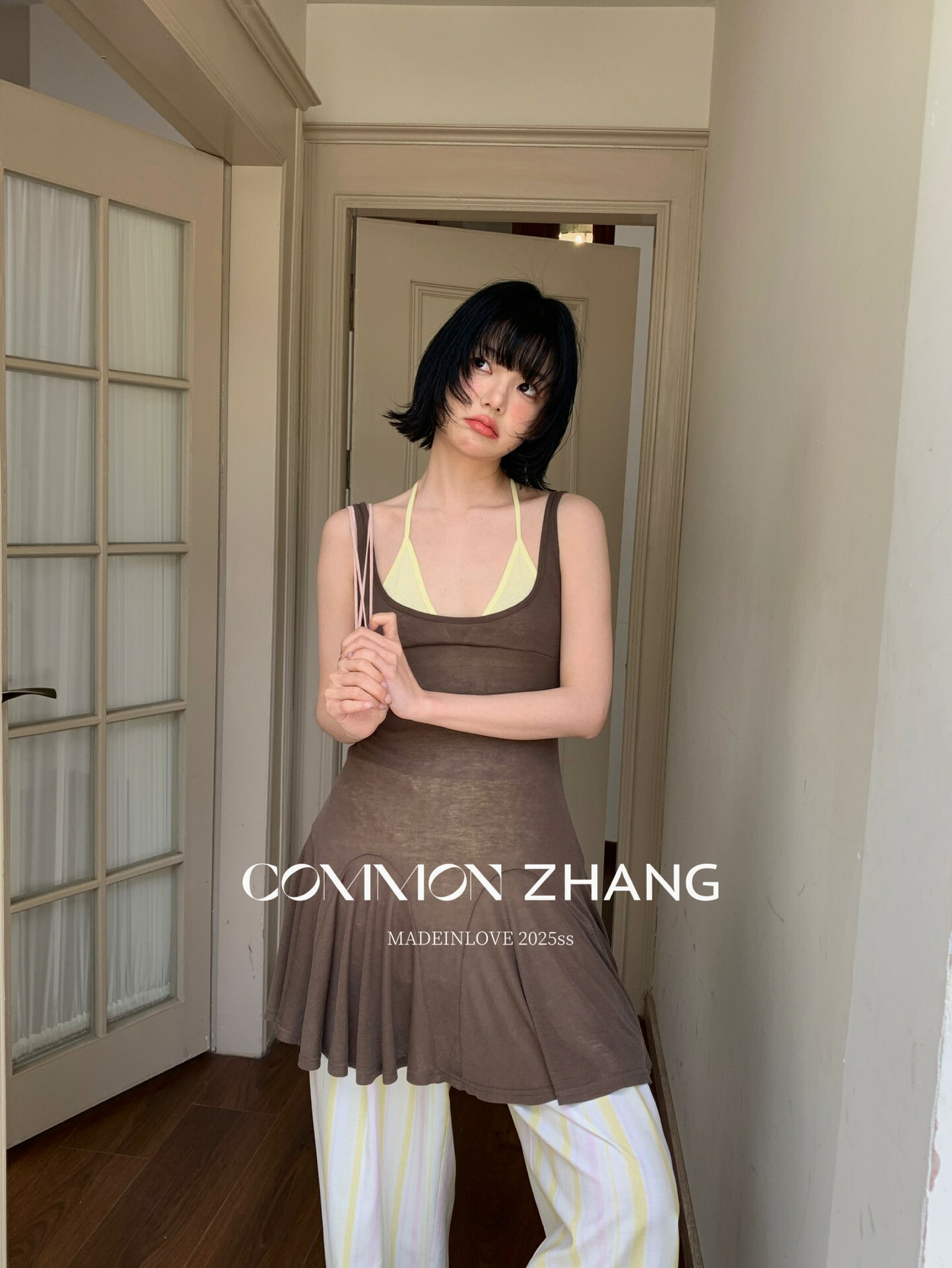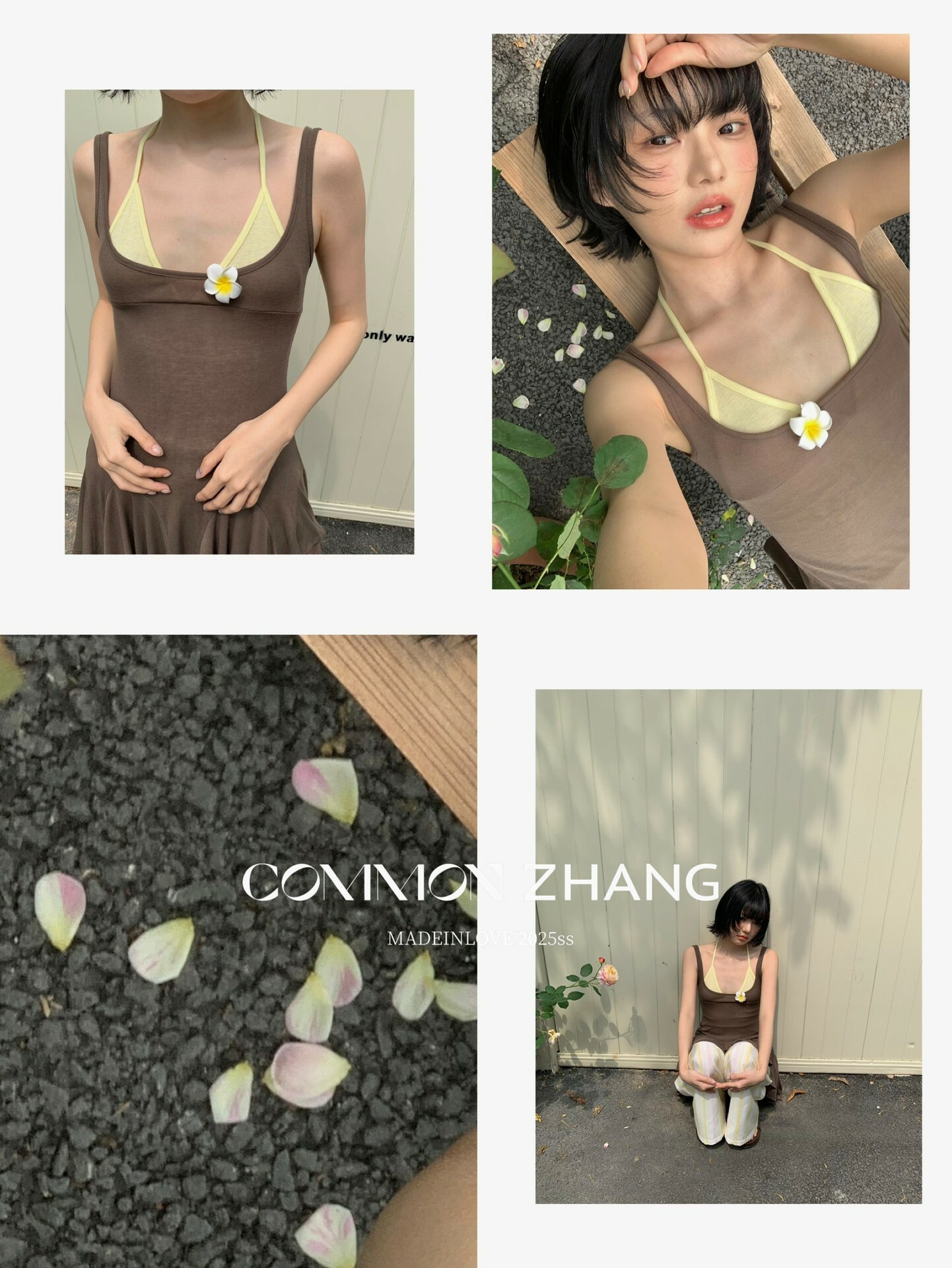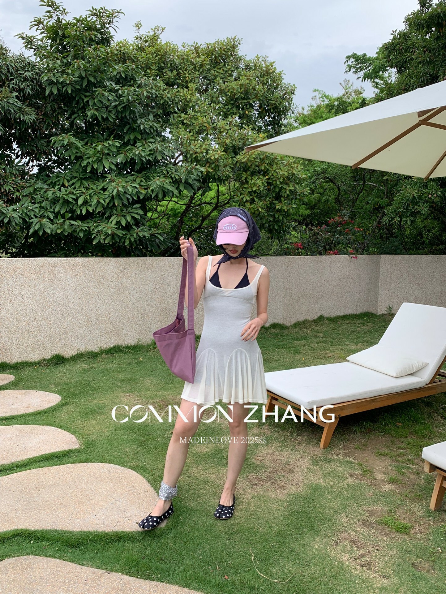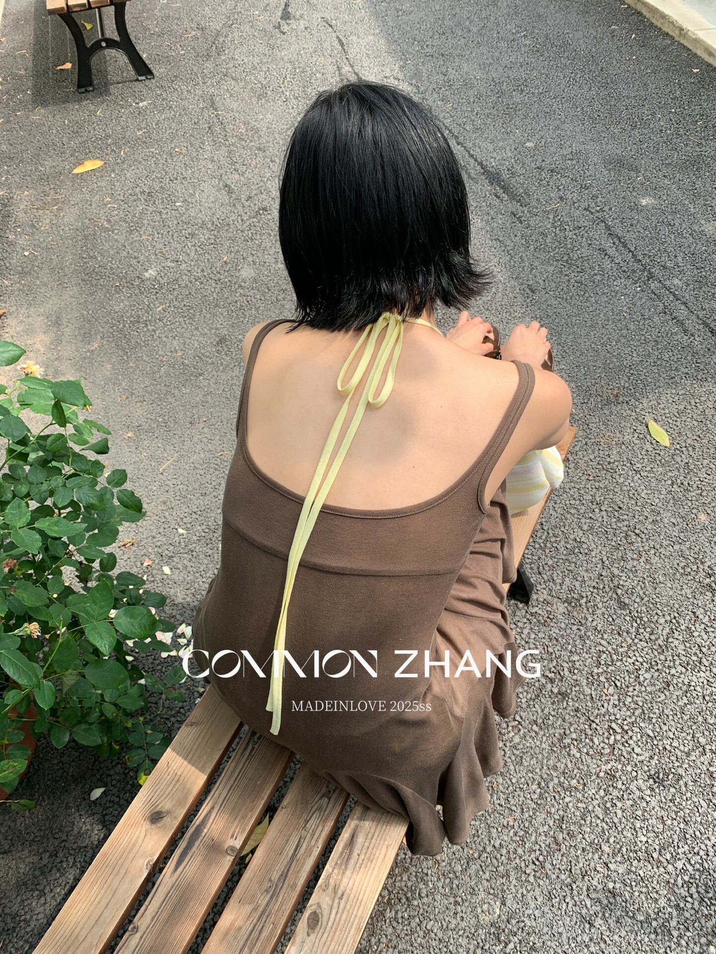 *o-ha-you*【FCZCB206882】夏季韓版天絲掛脖內搭疊穿羊毛背心連衣裙假兩件洋裝-4色