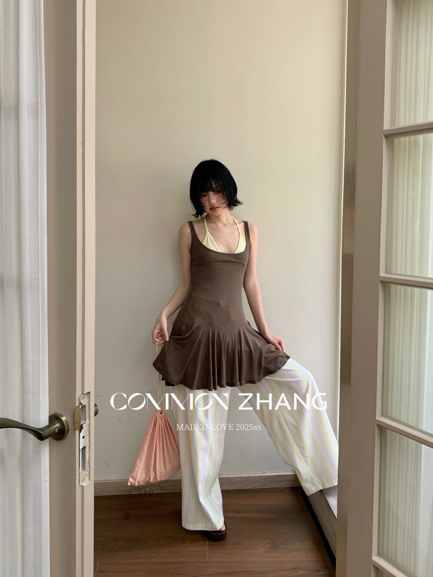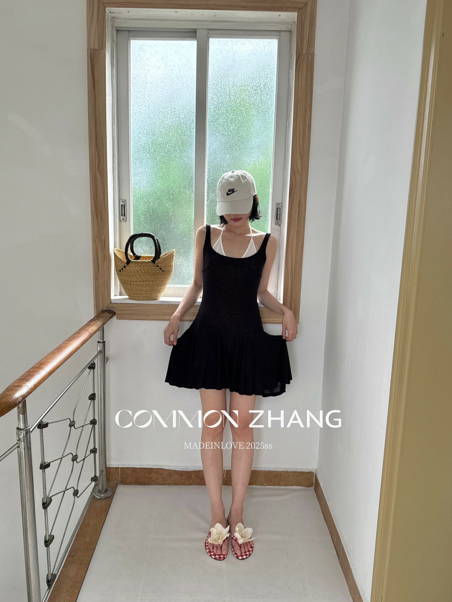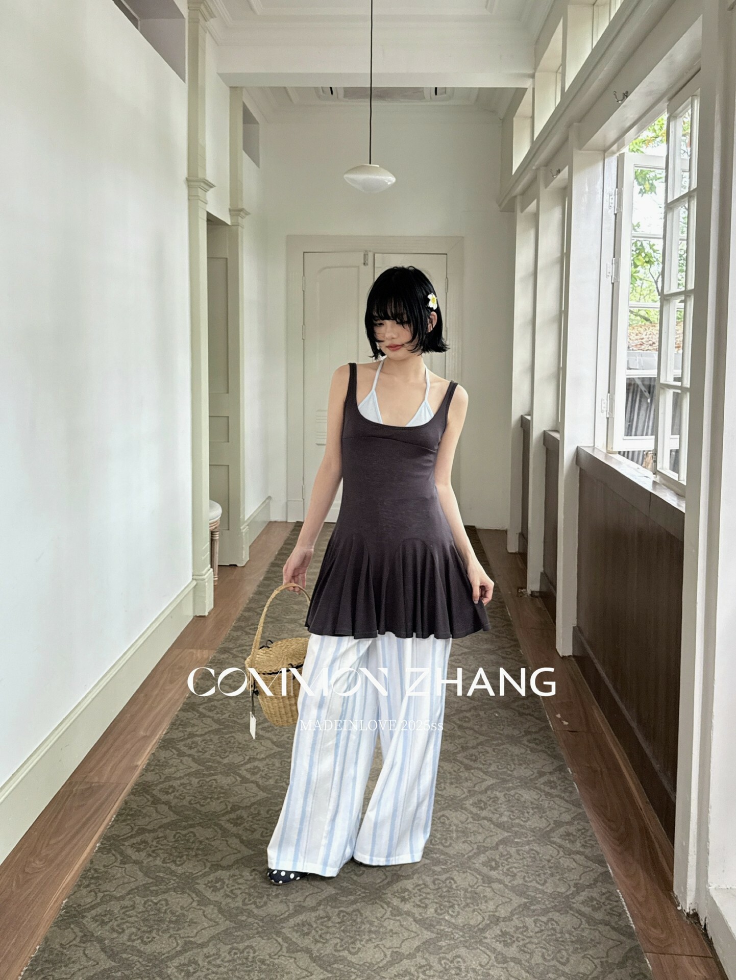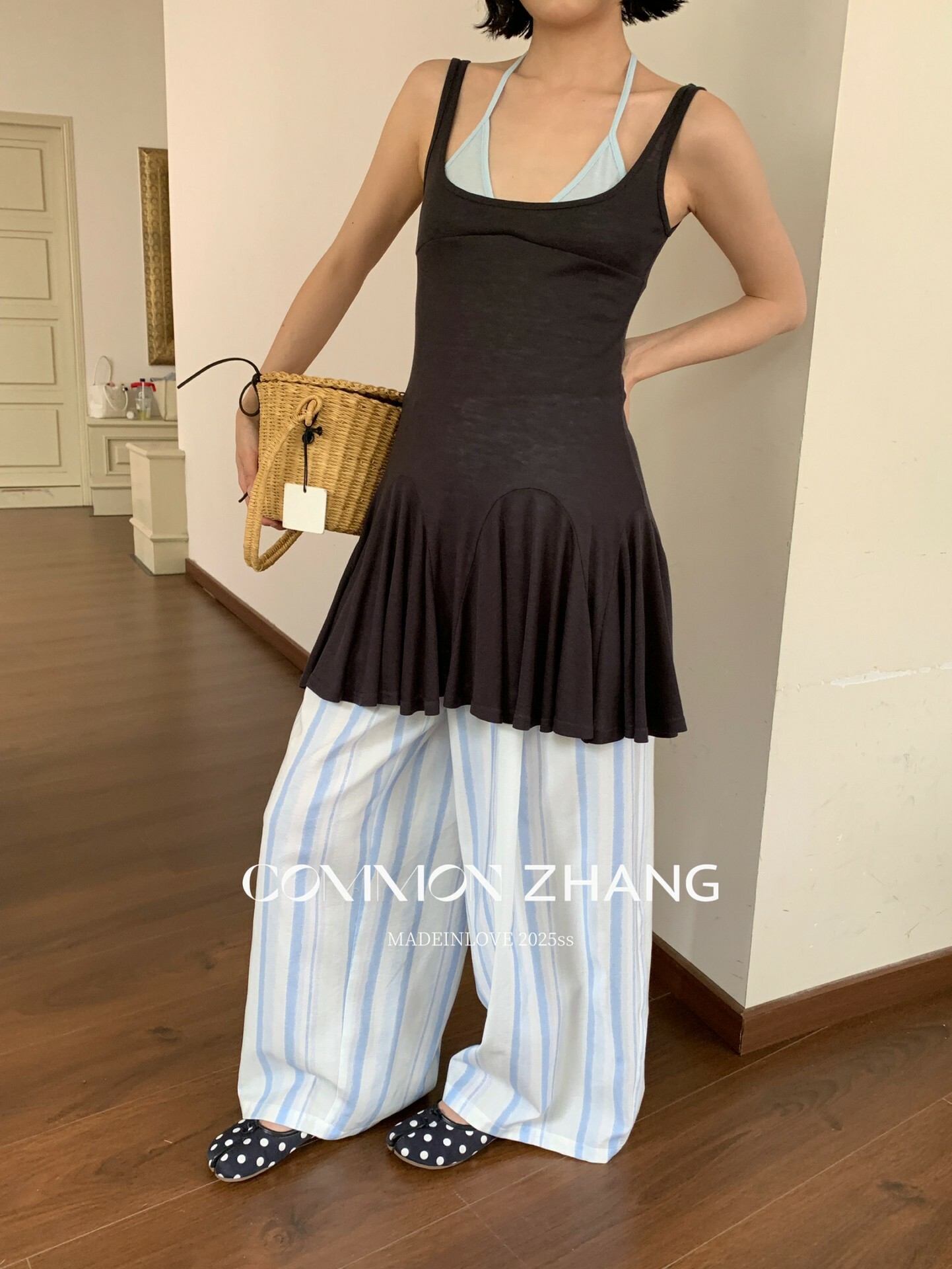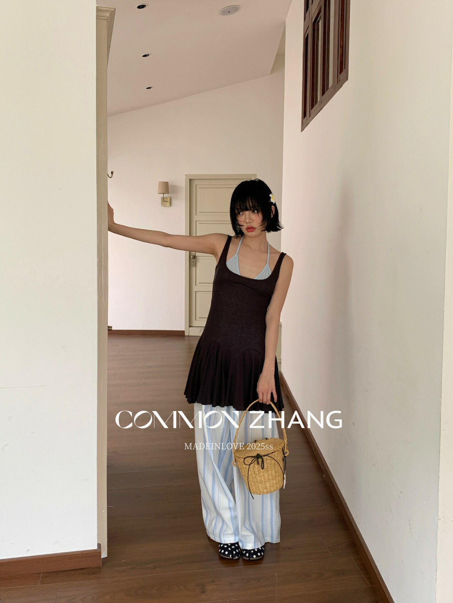 *o-ha-you*【FCZCB206882】夏季韓版天絲掛脖內搭疊穿羊毛背心連衣裙假兩件洋裝-4色