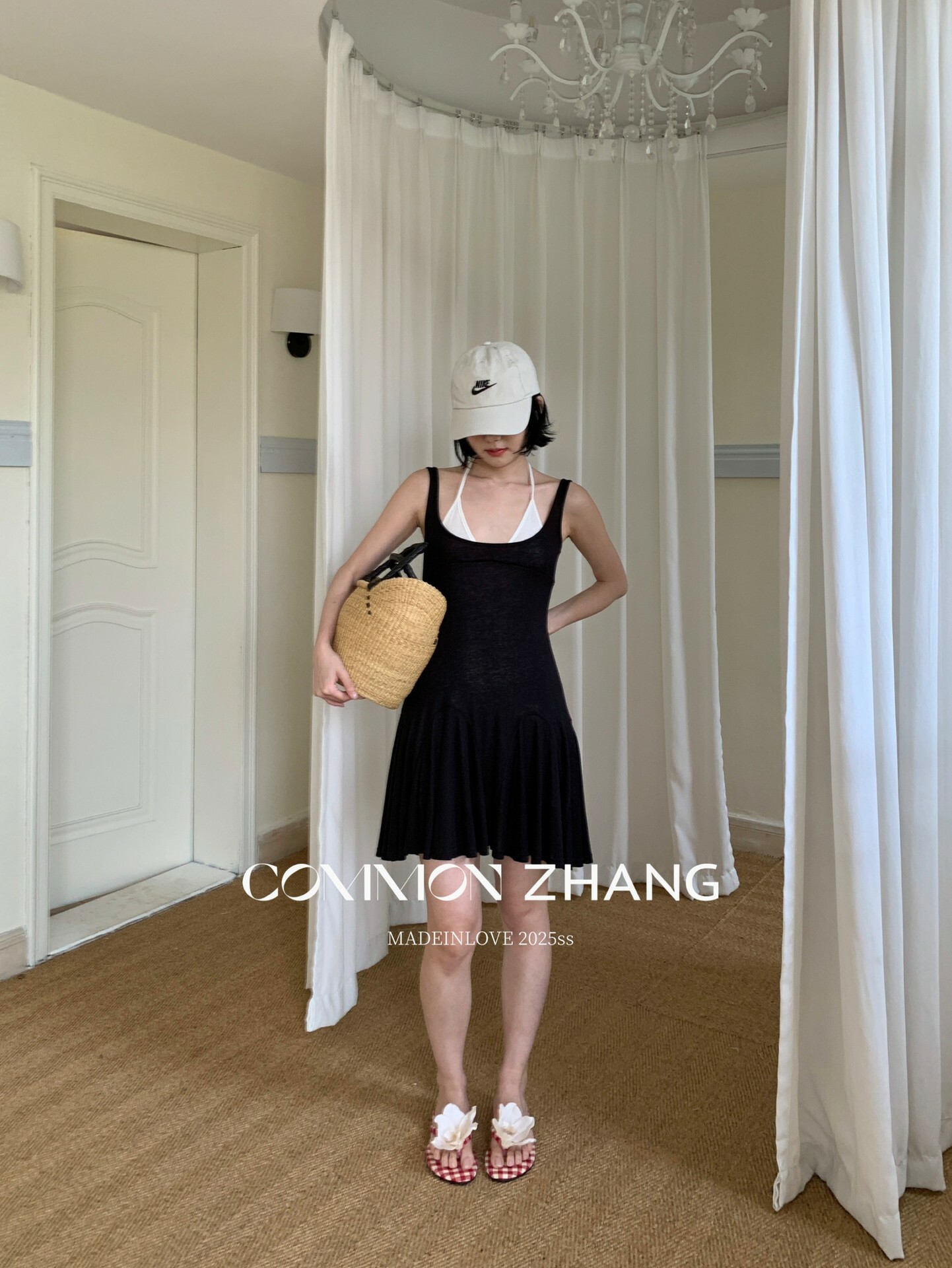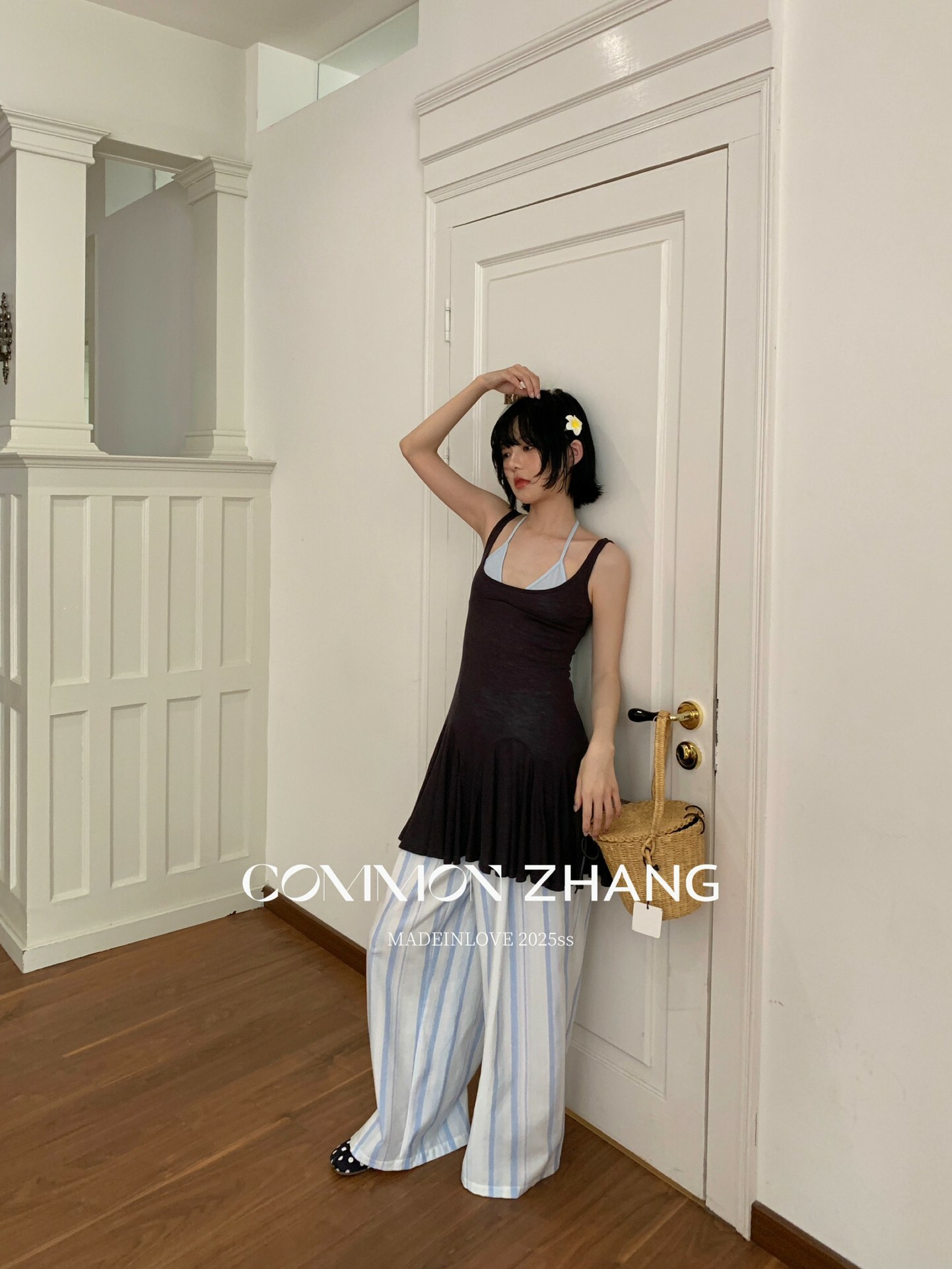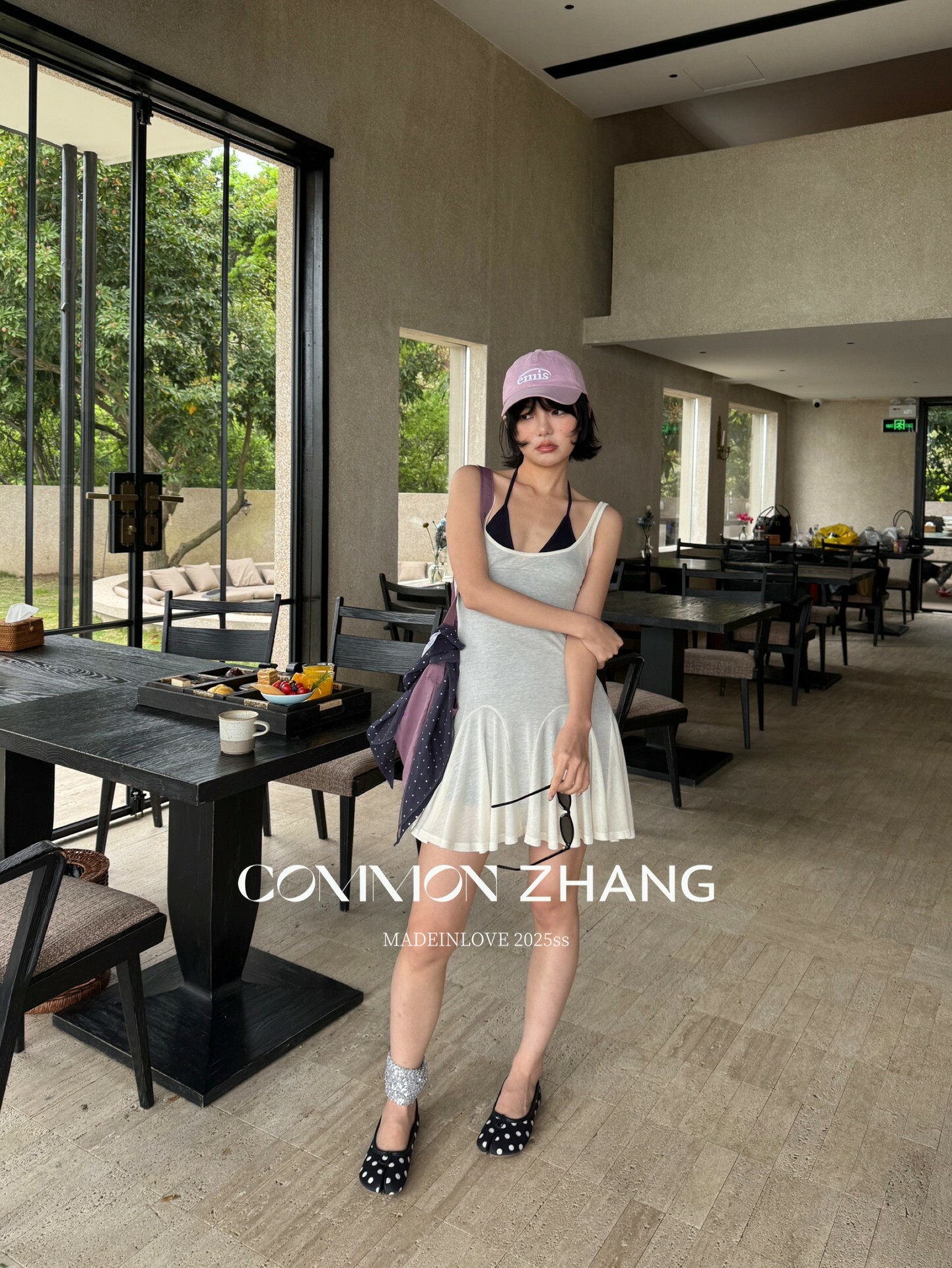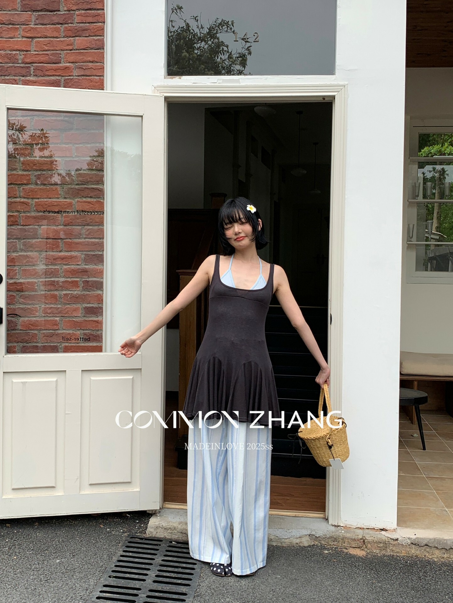 *o-ha-you*【FCZCB206882】夏季韓版天絲掛脖內搭疊穿羊毛背心連衣裙假兩件洋裝-4色