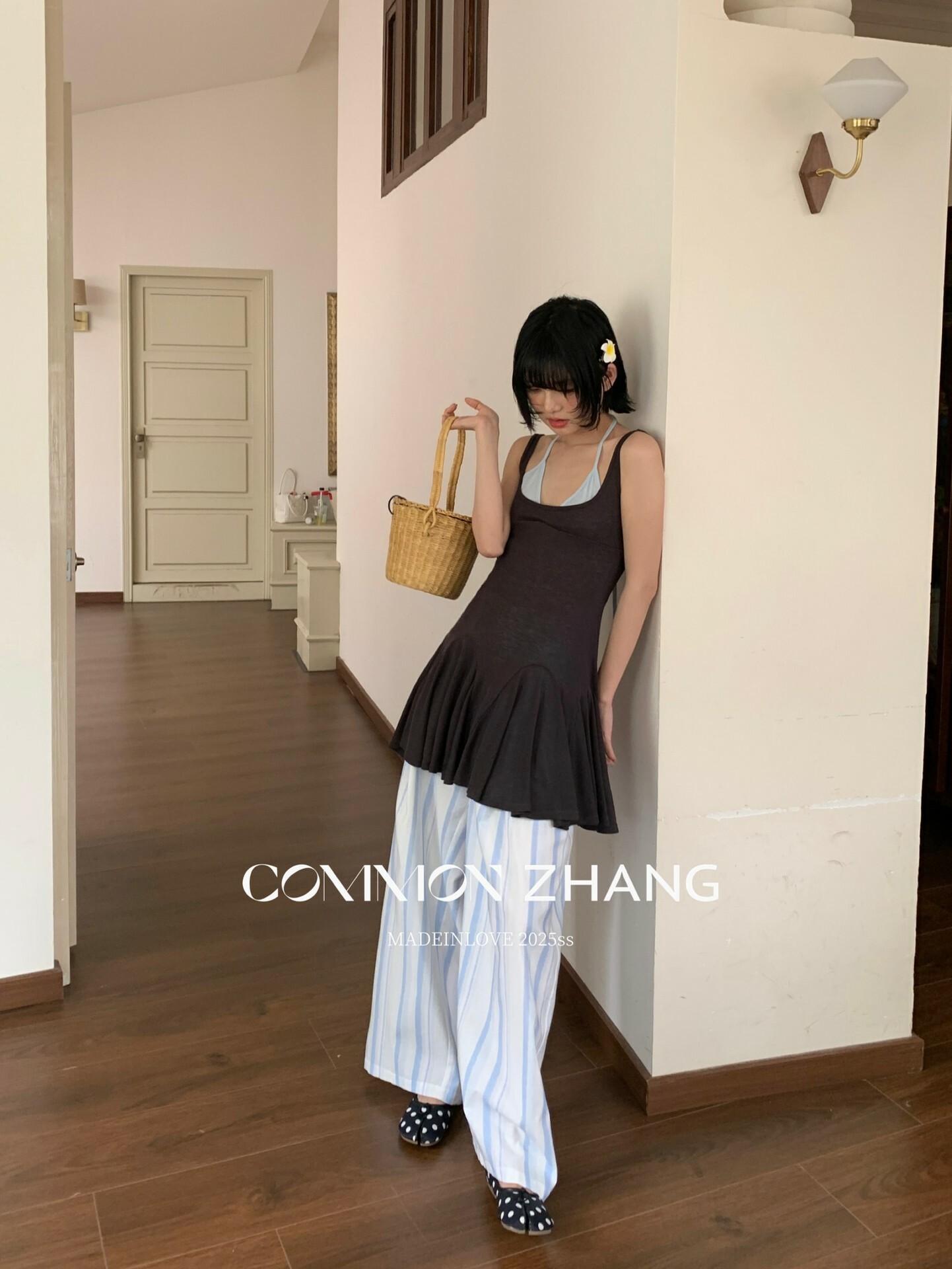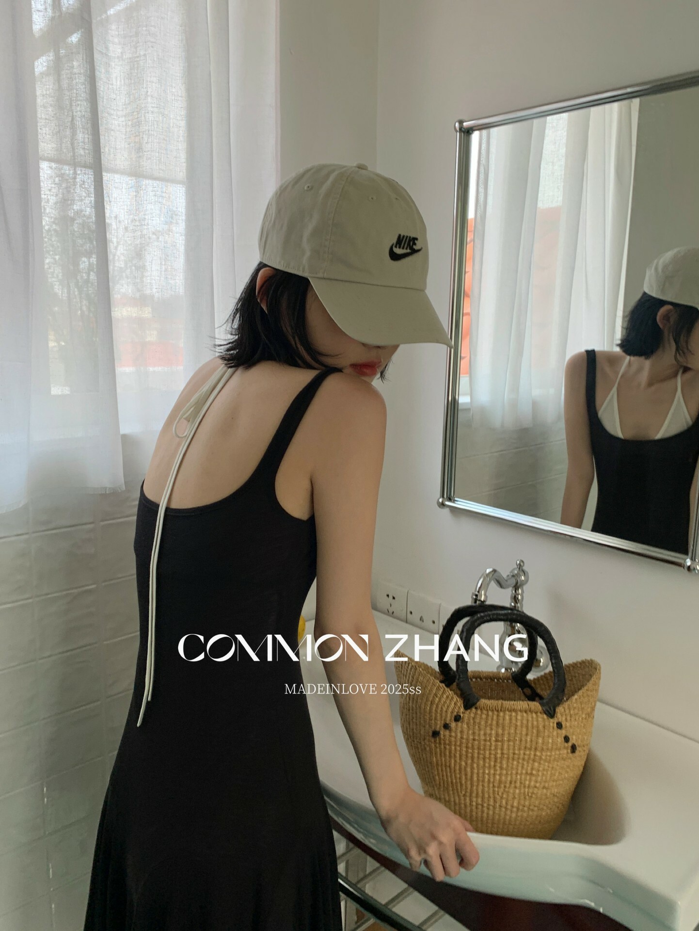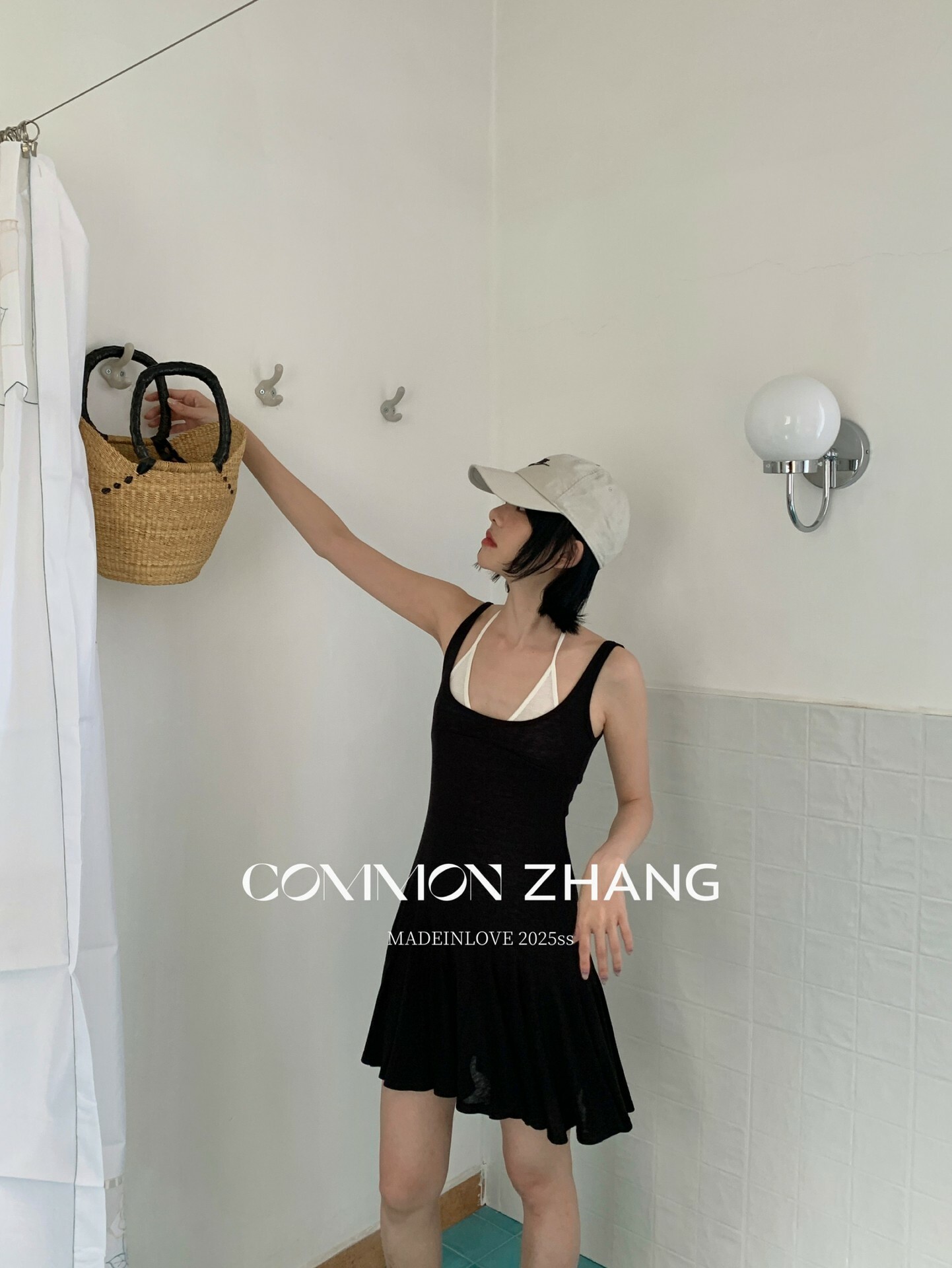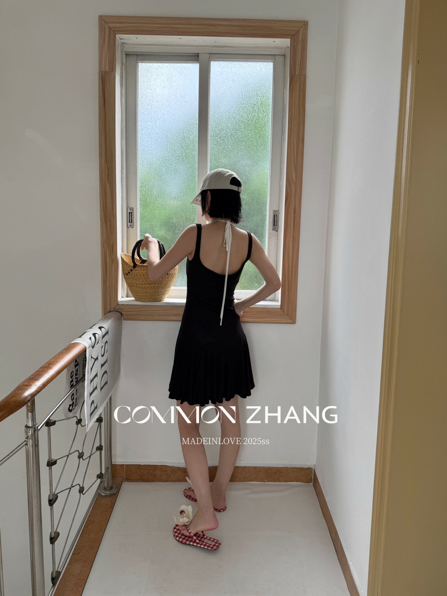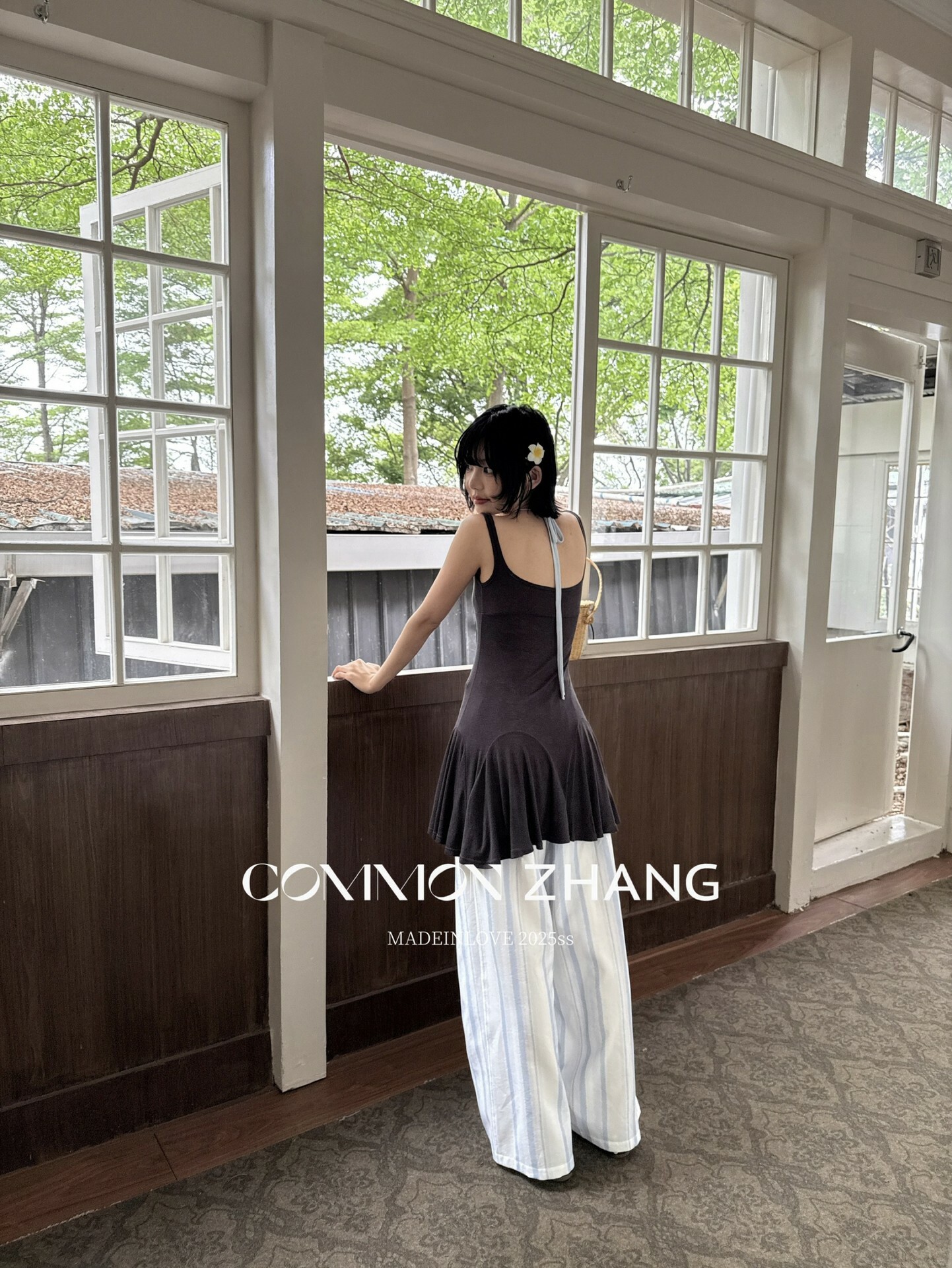 *o-ha-you*【FCZCB206882】夏季韓版天絲掛脖內搭疊穿羊毛背心連衣裙假兩件洋裝-4色