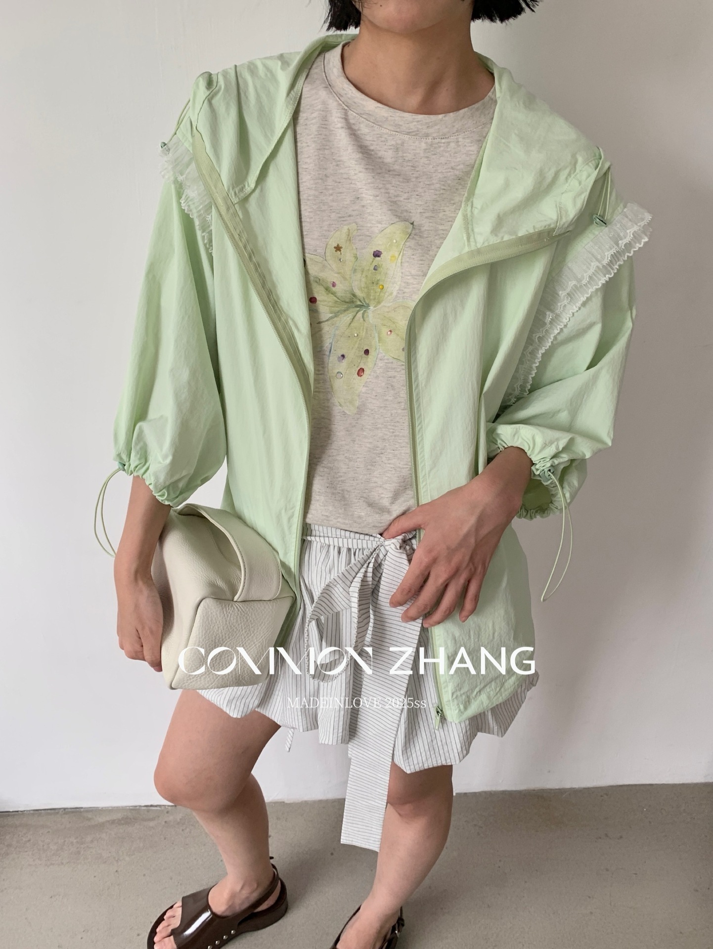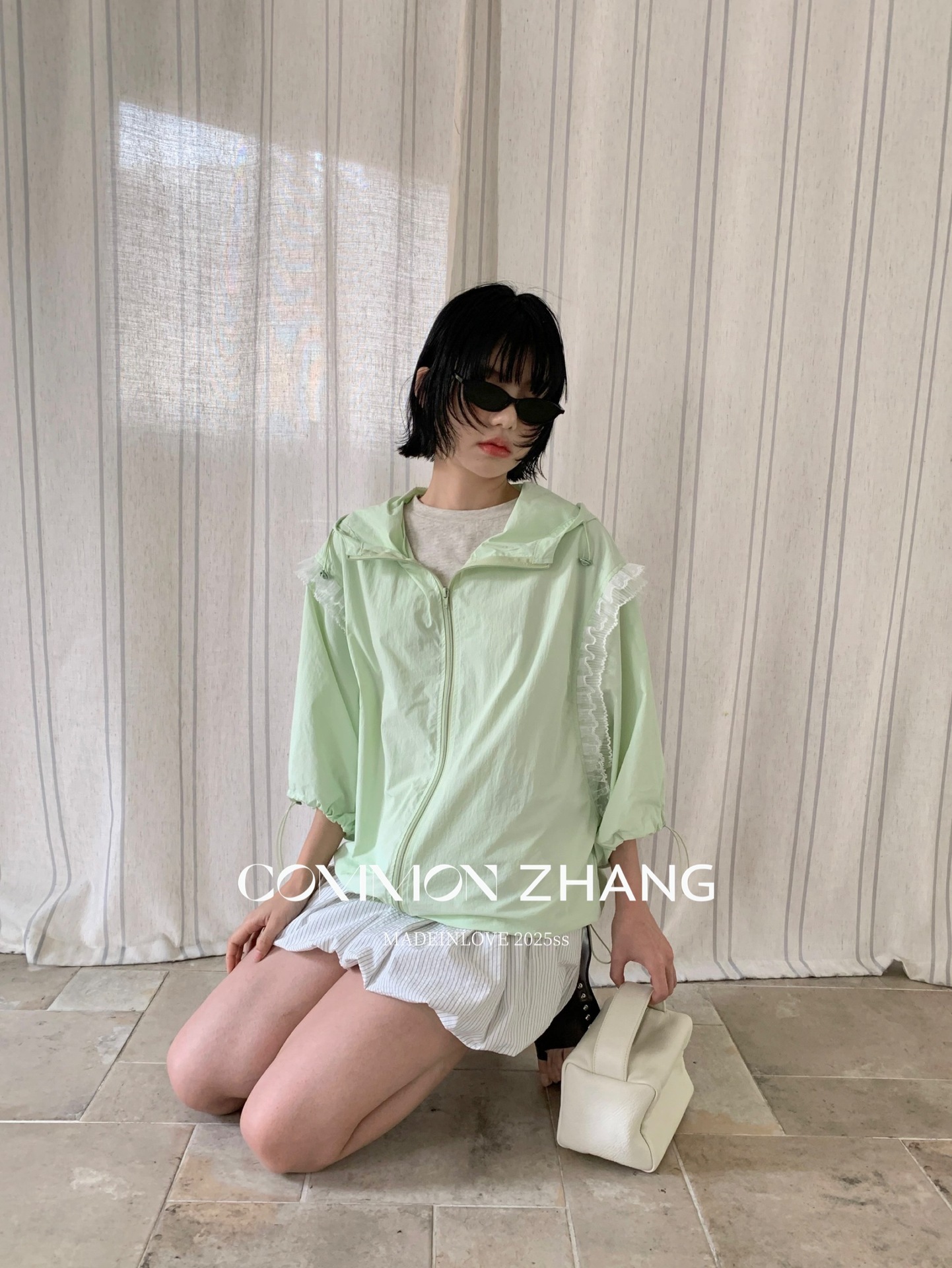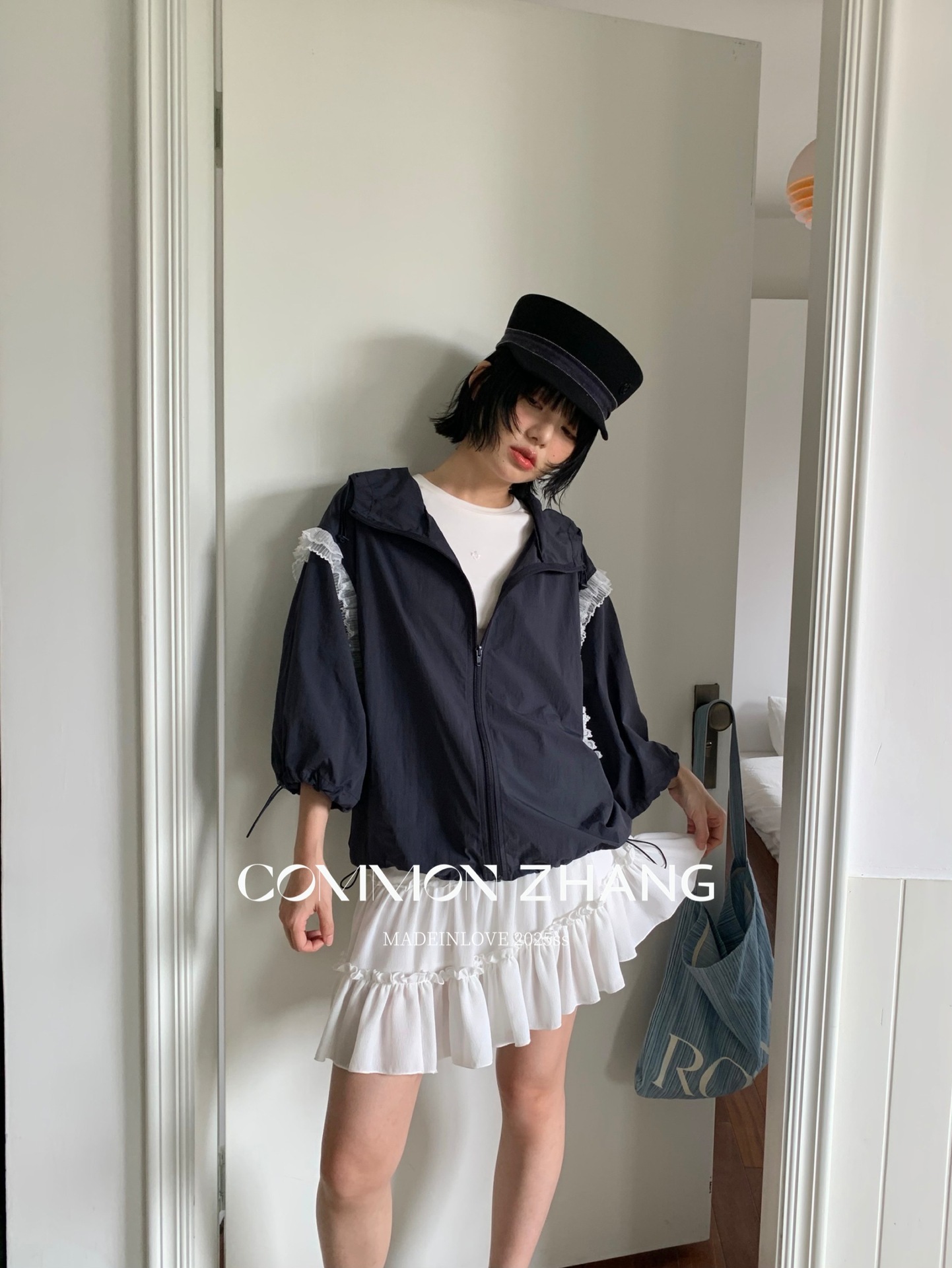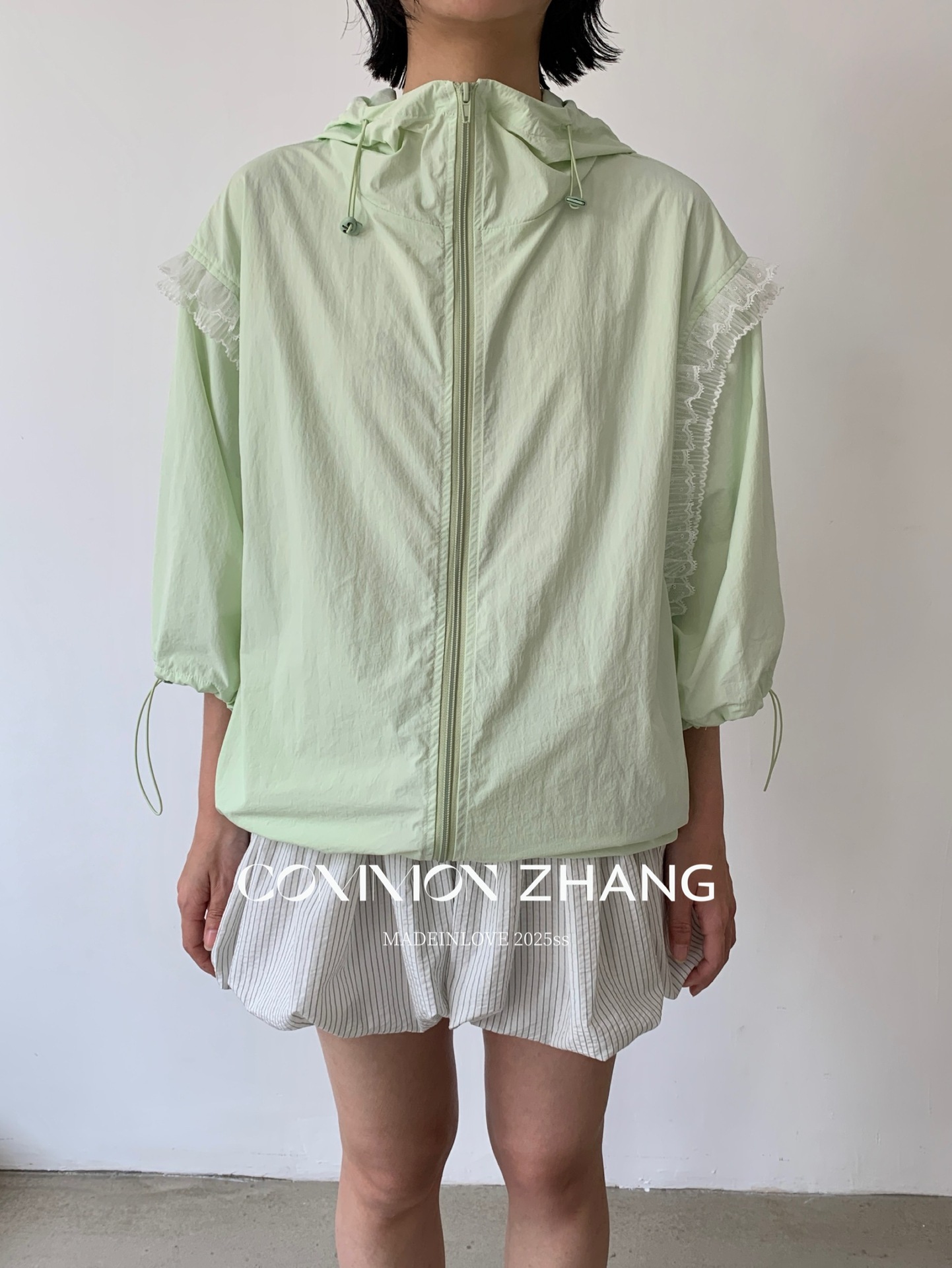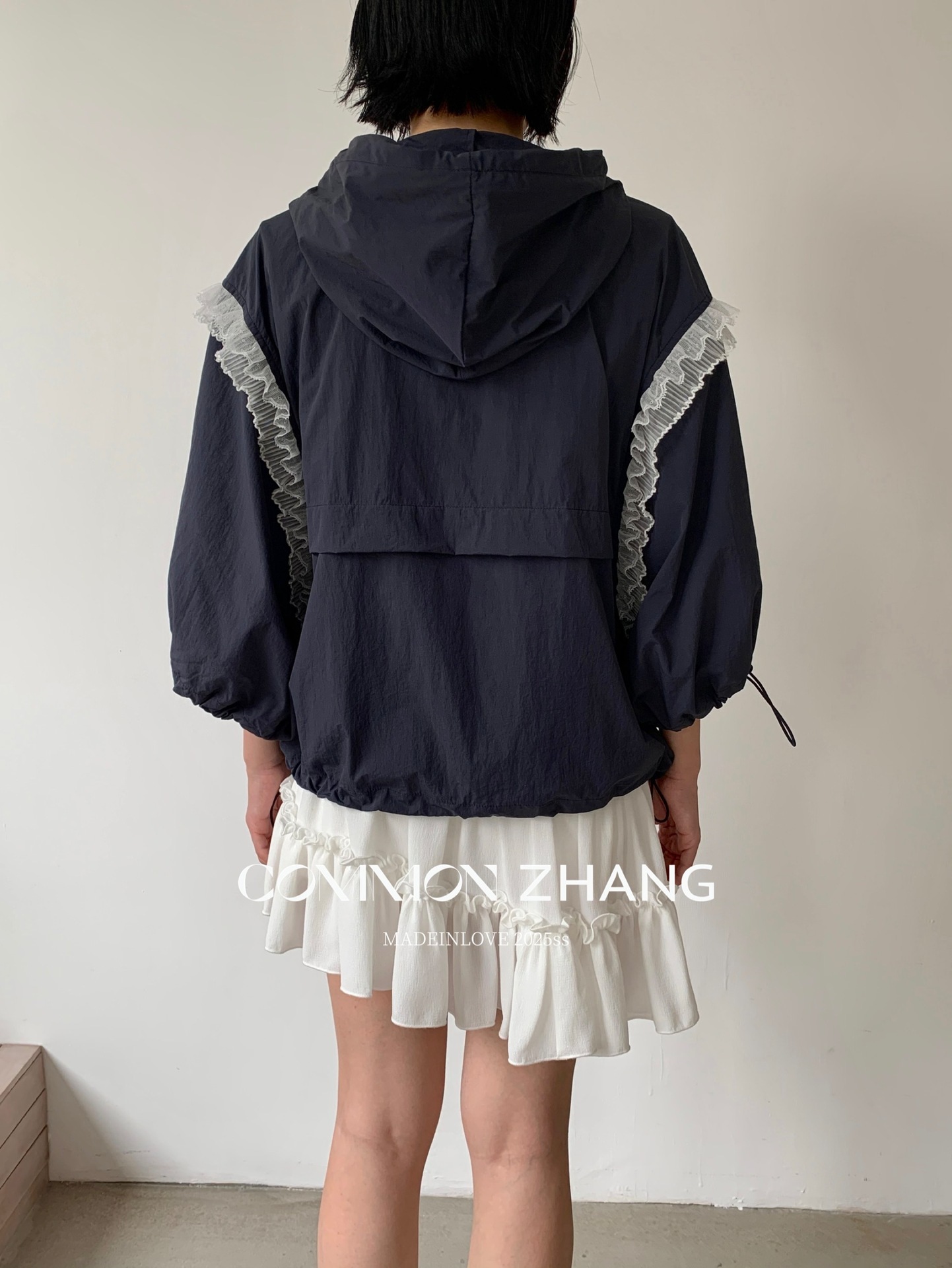 *o-ha-you*【FCZCB207839】夏季法式減齡休閒蕾絲邊拼接連帽寬鬆百搭短外套-2色