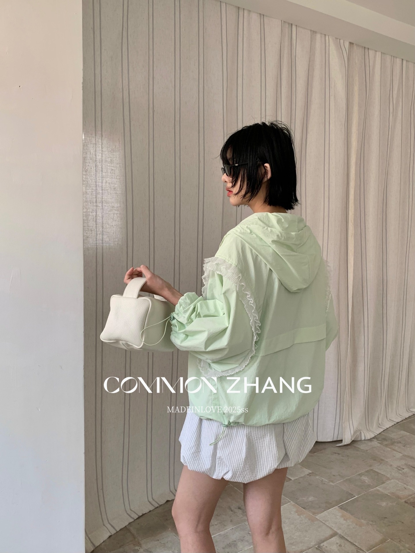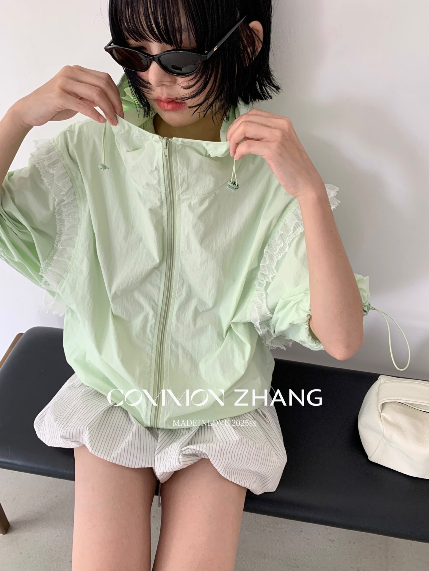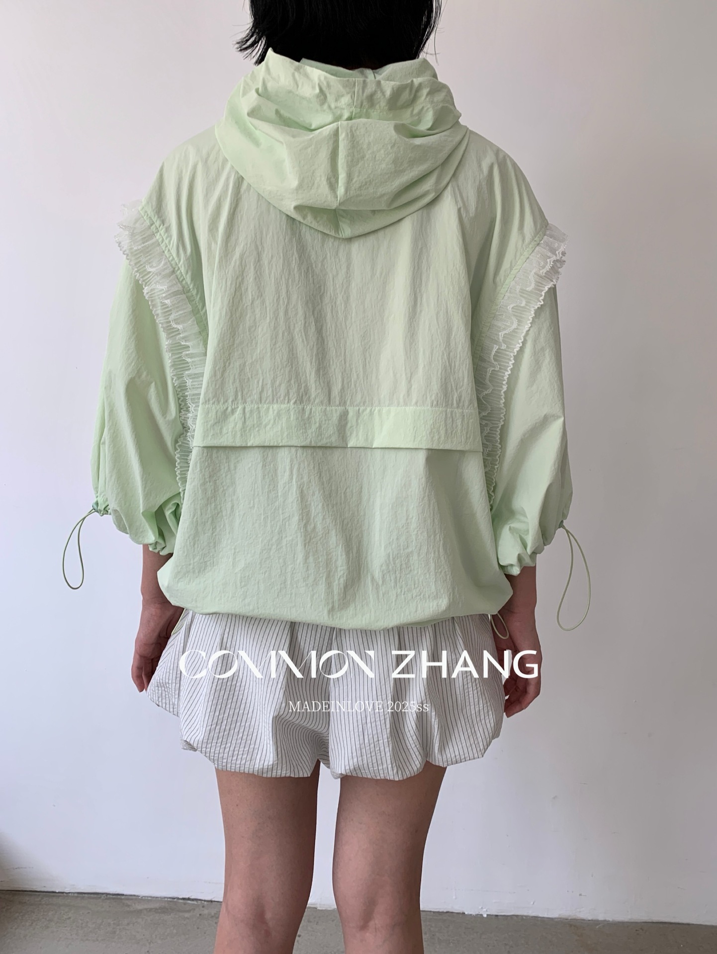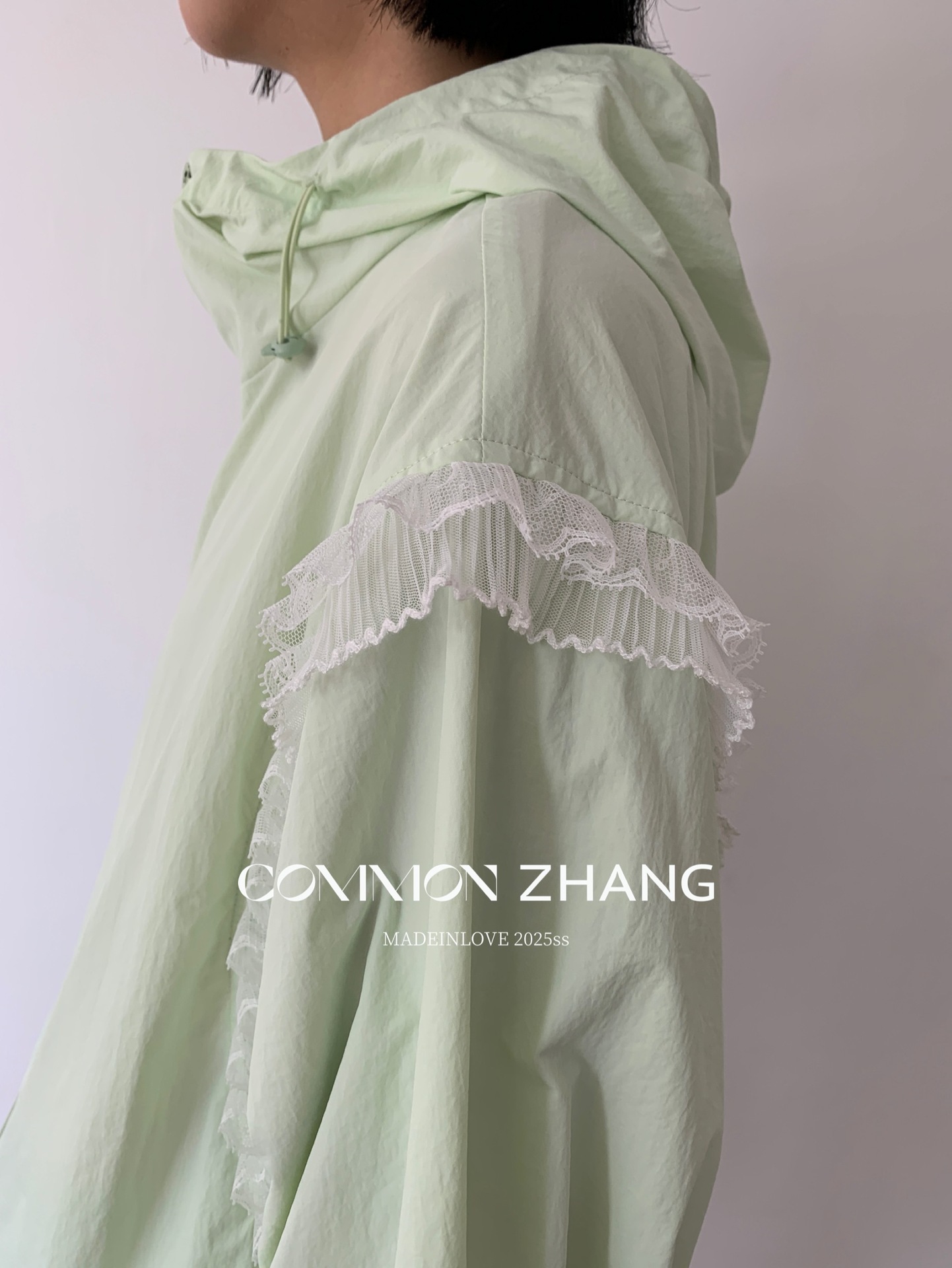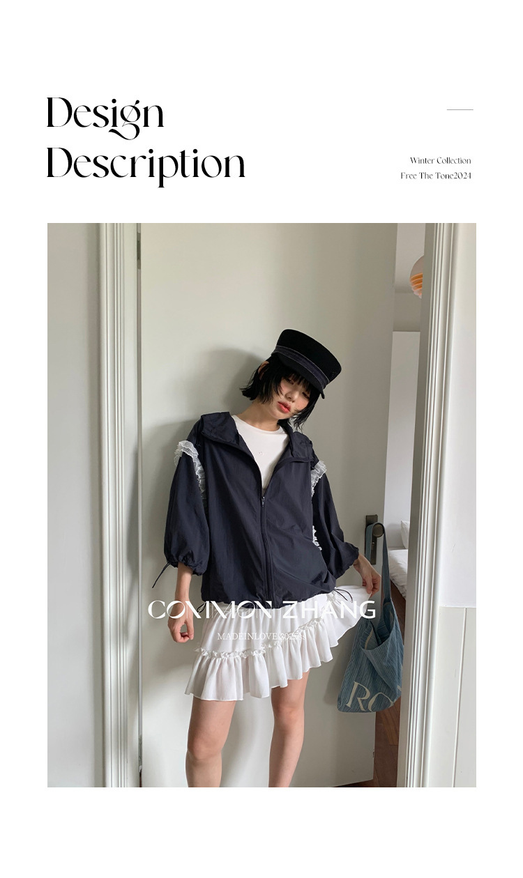 *o-ha-you*【FCZCB207839】夏季法式減齡休閒蕾絲邊拼接連帽寬鬆百搭短外套-2色