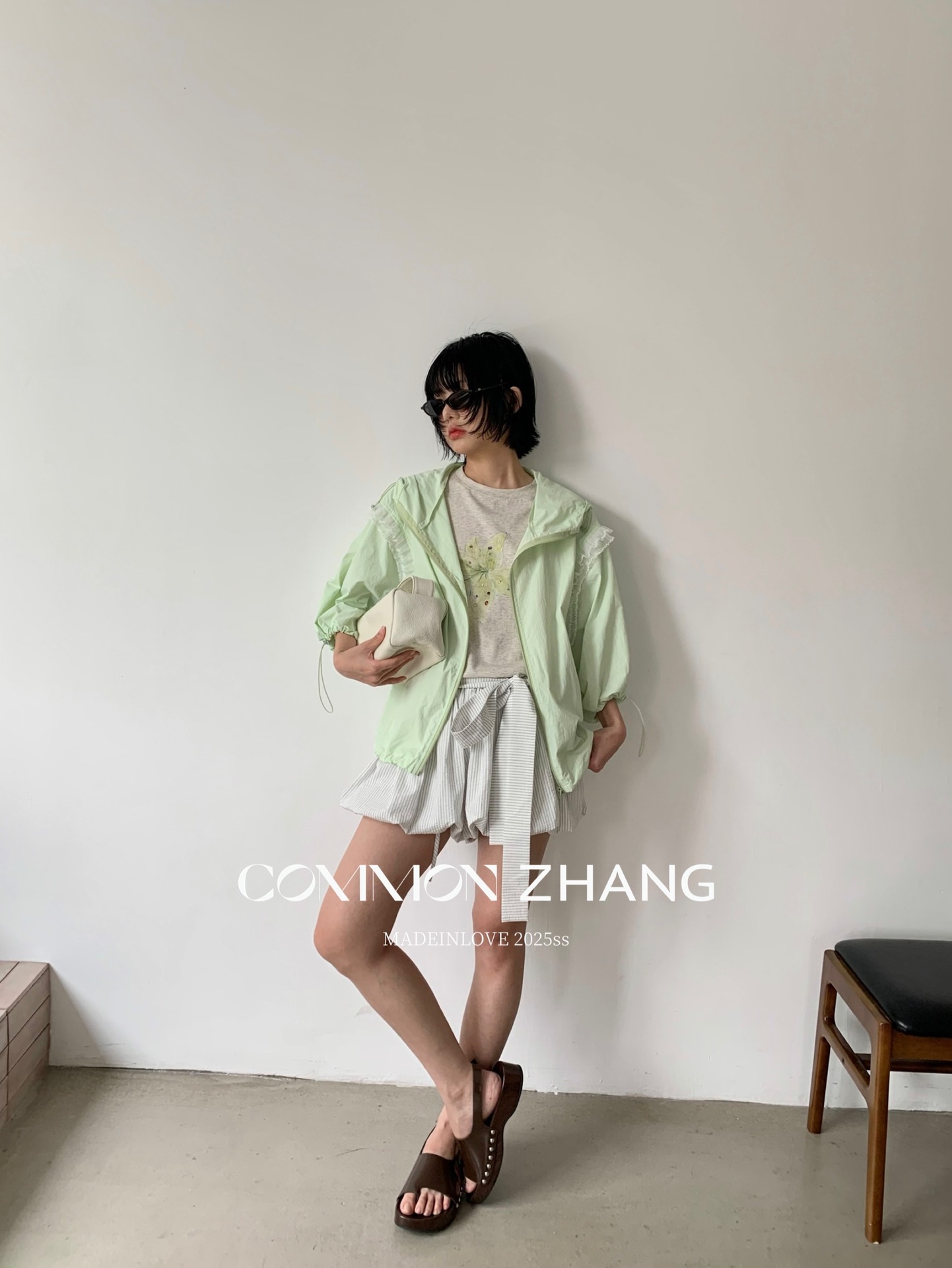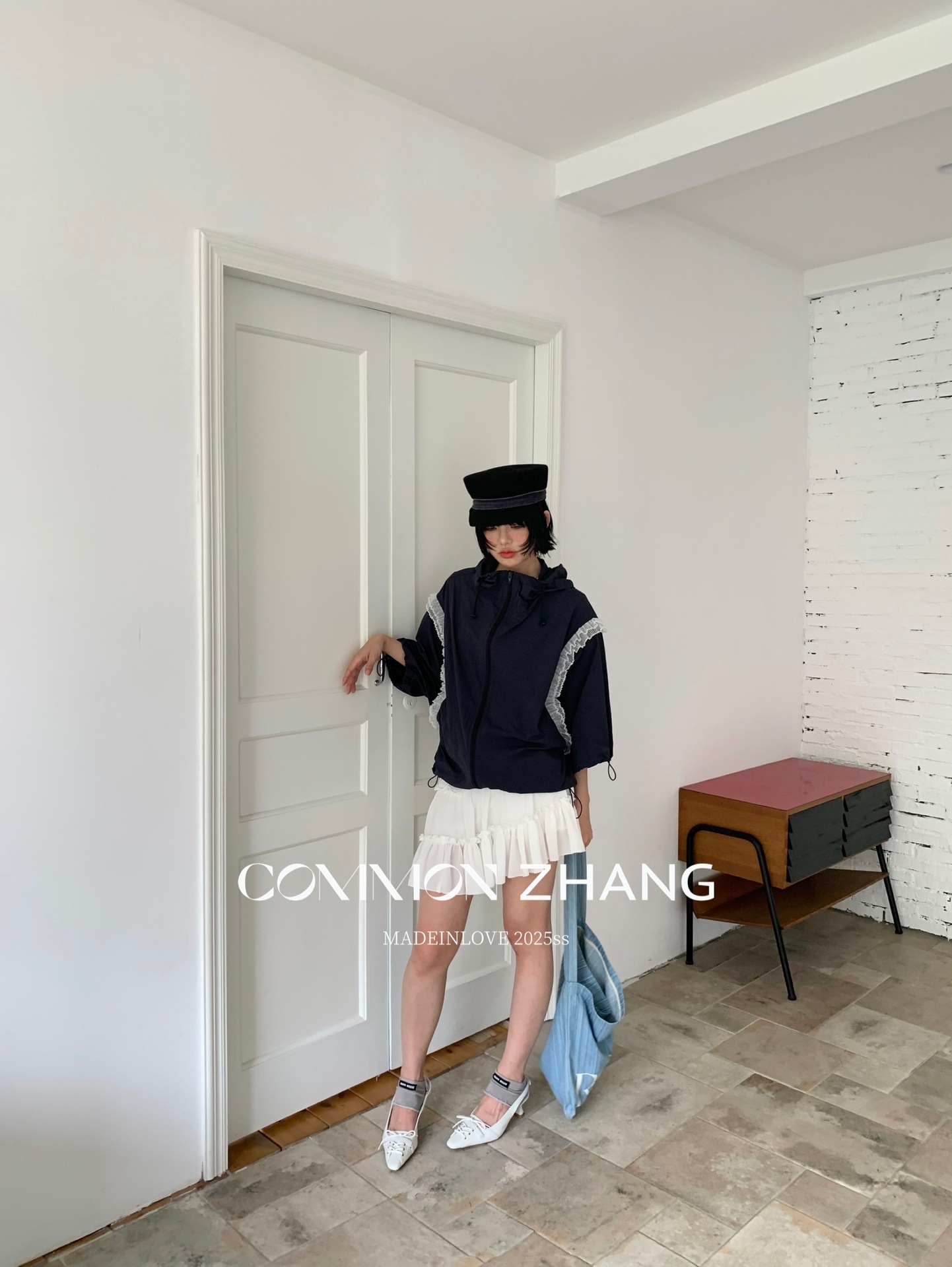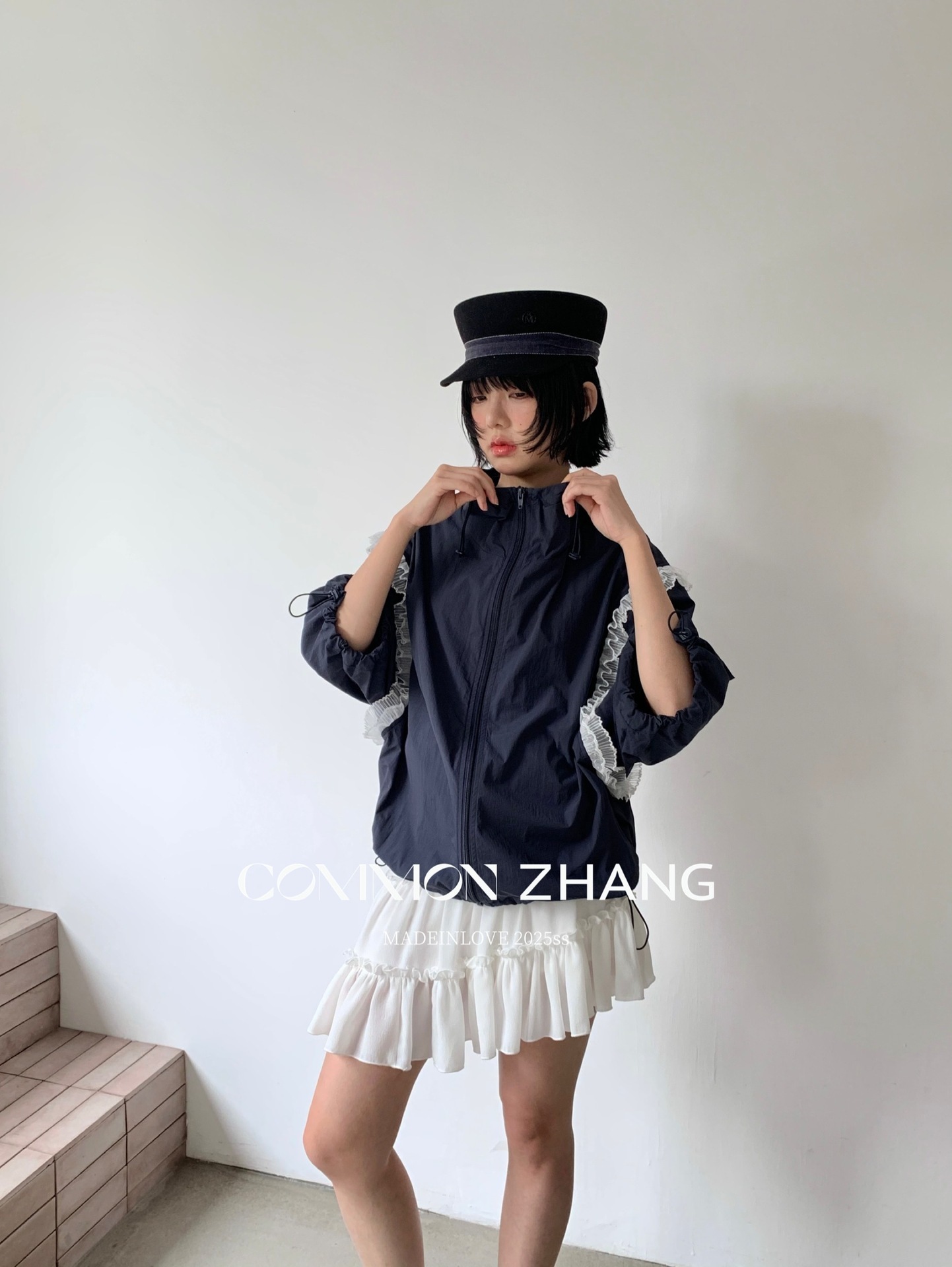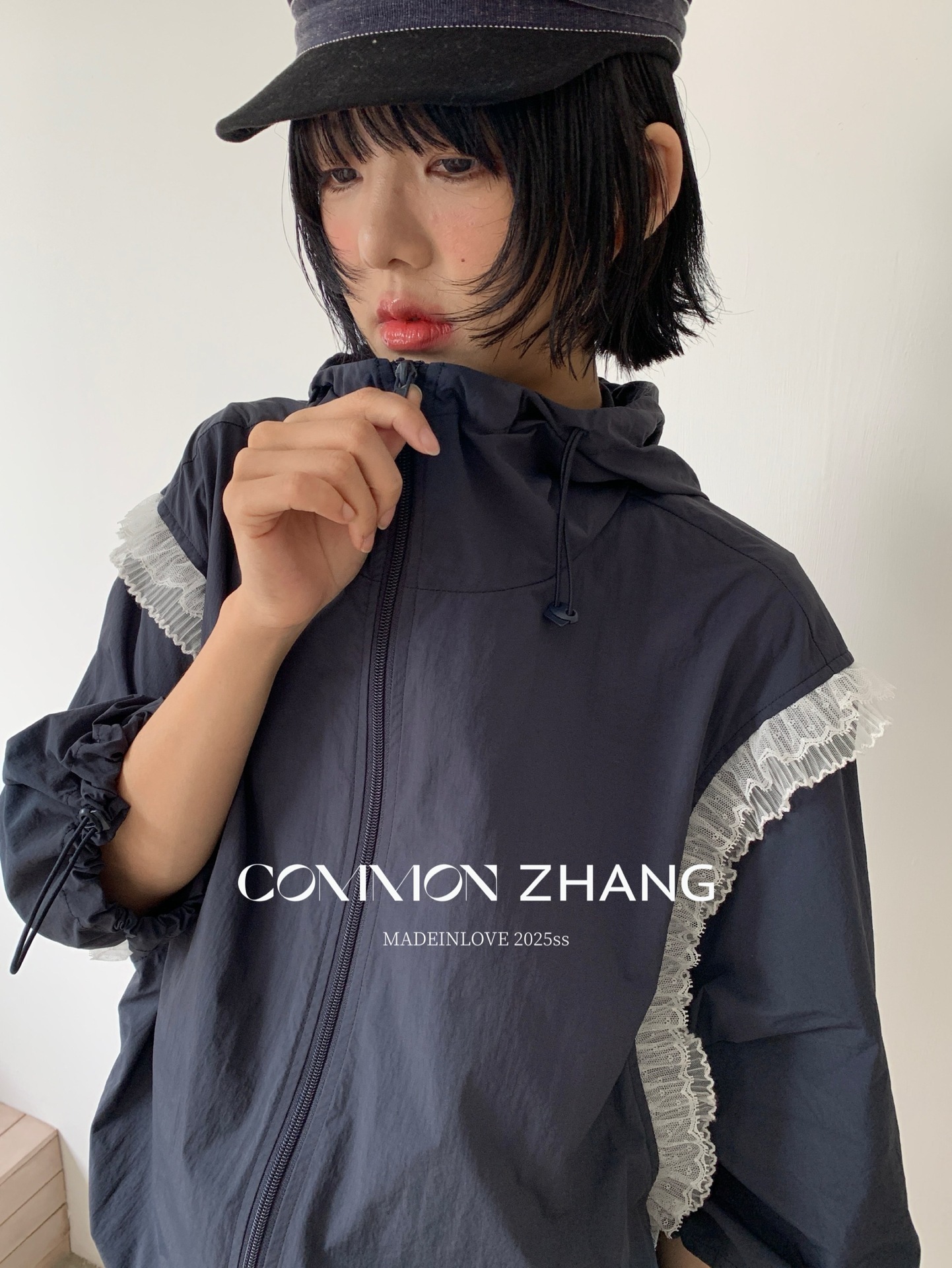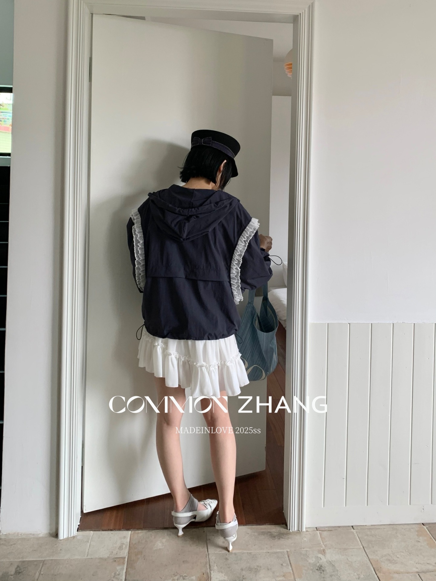 *o-ha-you*【FCZCB207839】夏季法式減齡休閒蕾絲邊拼接連帽寬鬆百搭短外套-2色