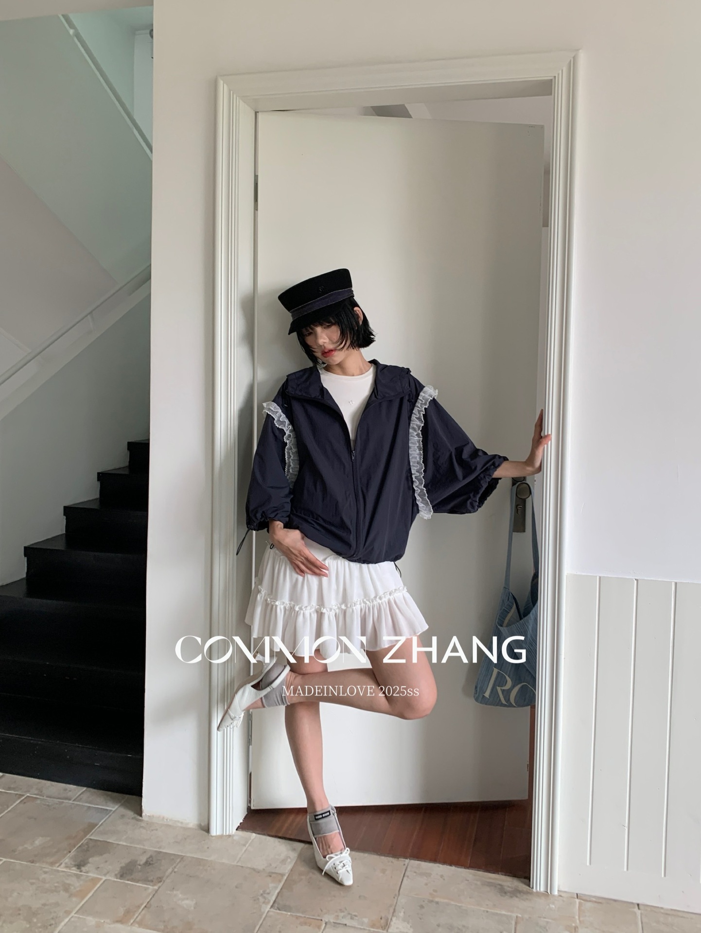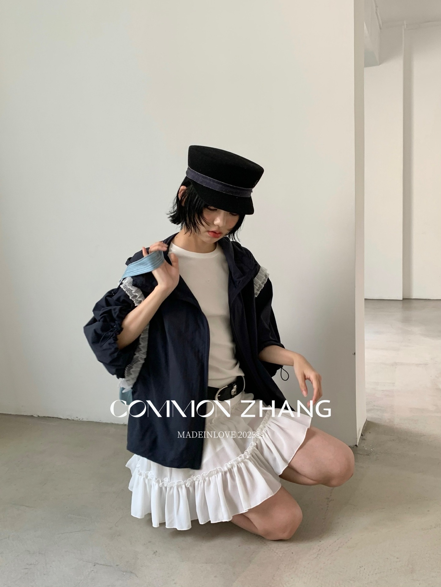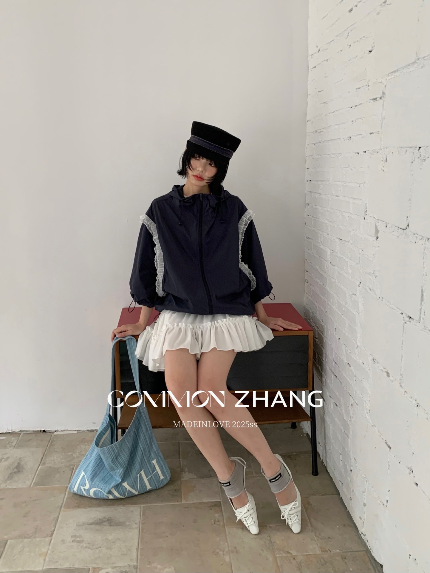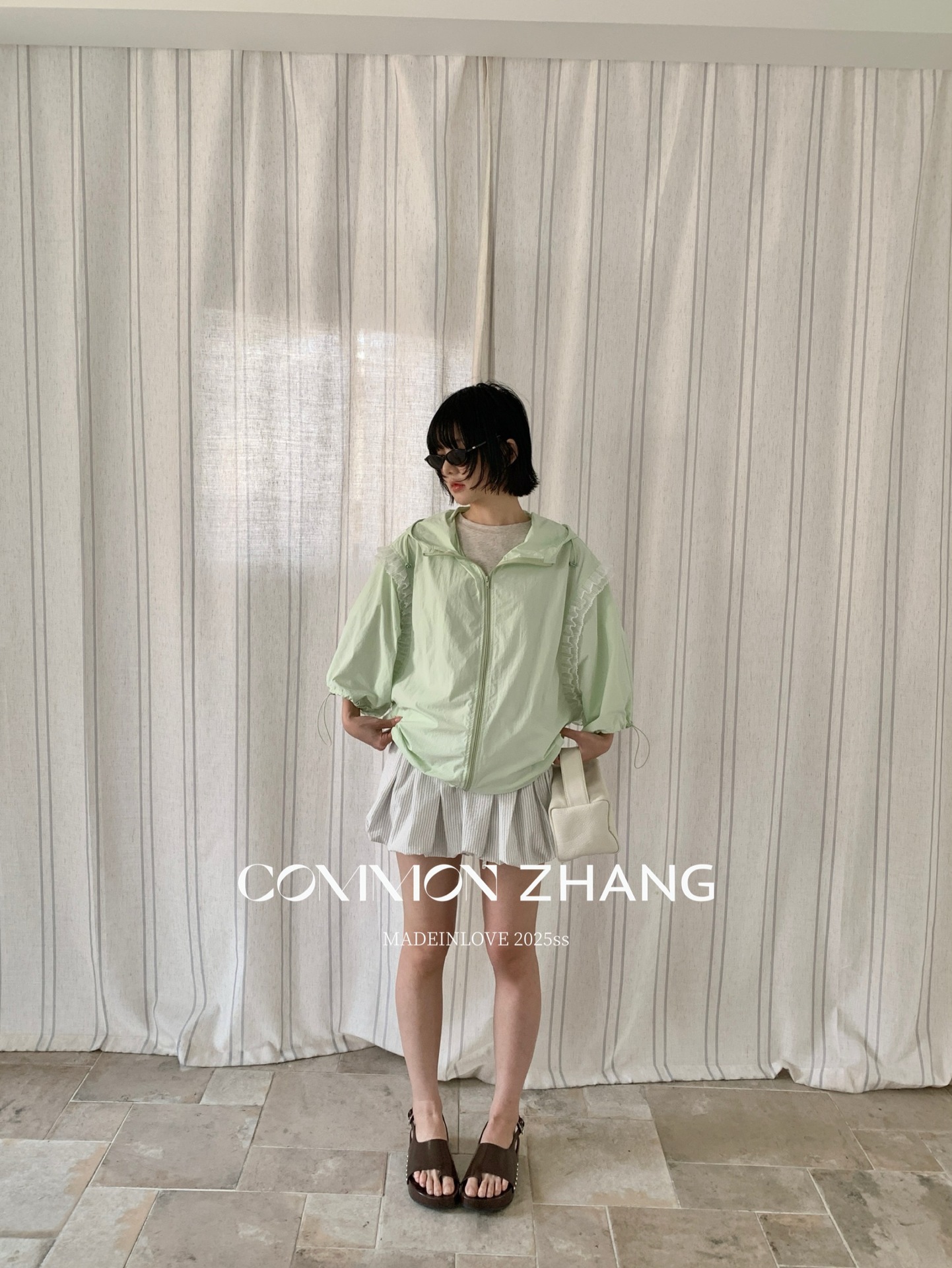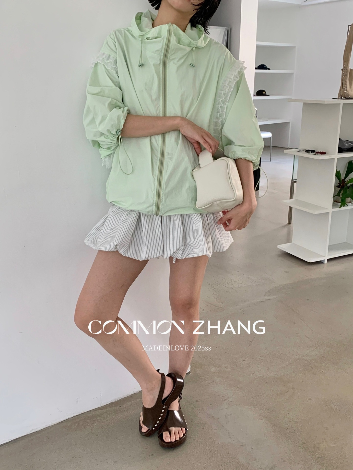 *o-ha-you*【FCZCB207839】夏季法式減齡休閒蕾絲邊拼接連帽寬鬆百搭短外套-2色