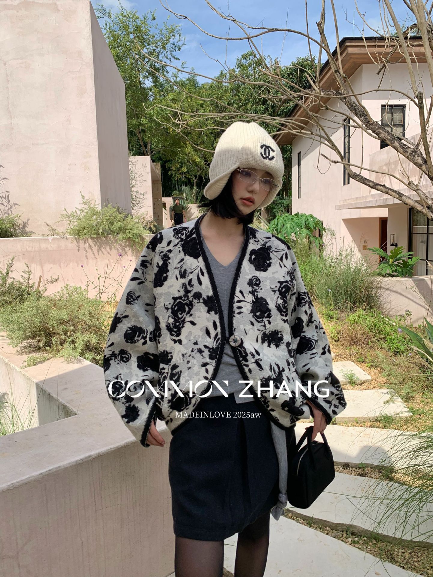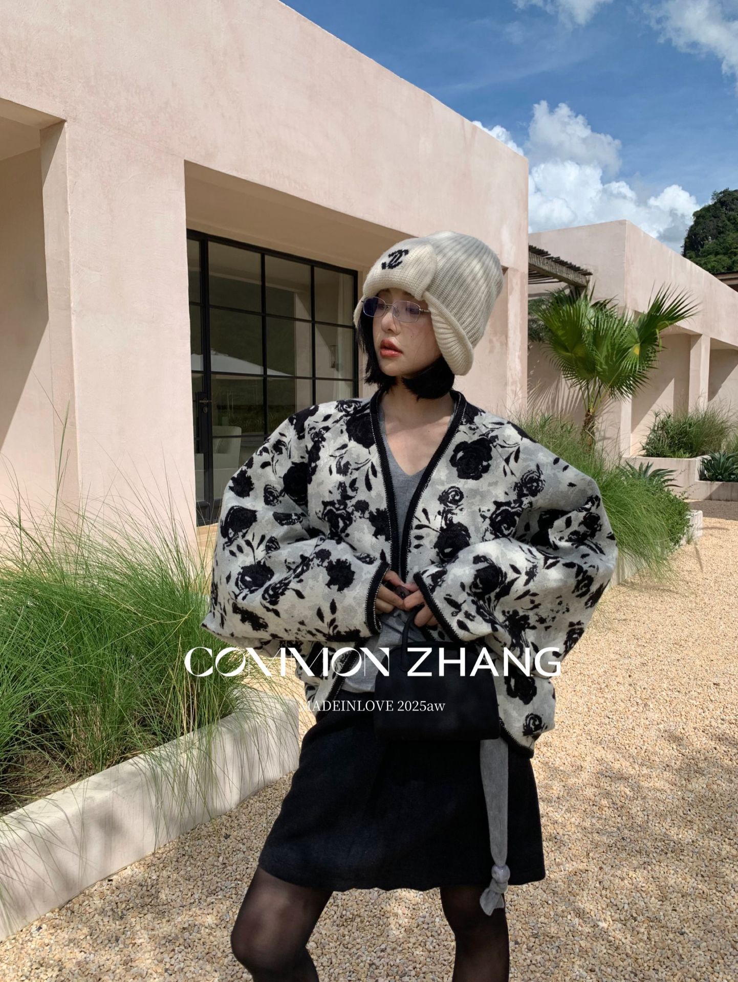 *o-ha-you*【FCZCB307931】秋冬羊毛粗花呢寬鬆休閒一粒扣撞色慵懶風短外套-2色