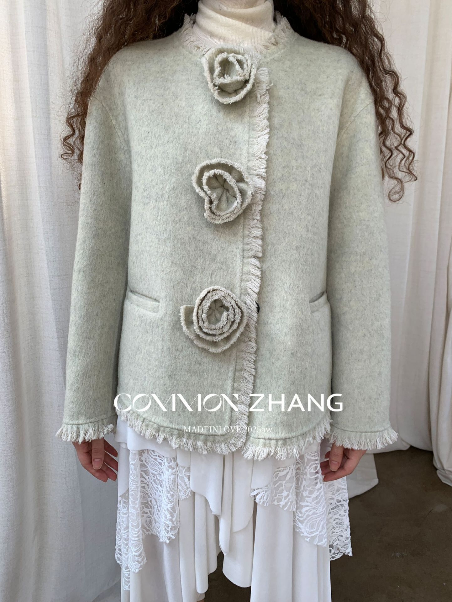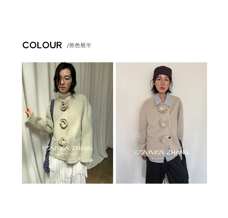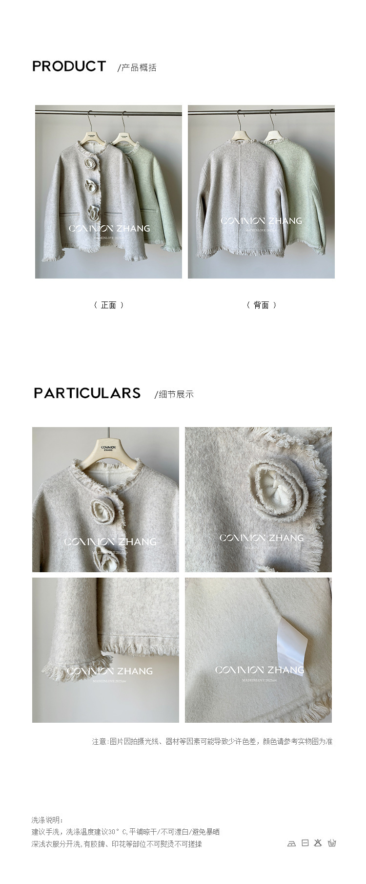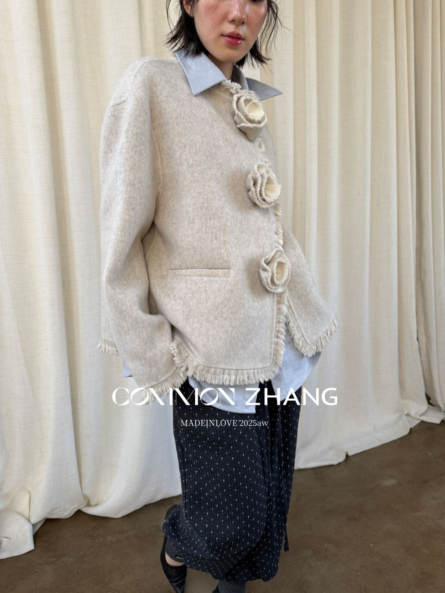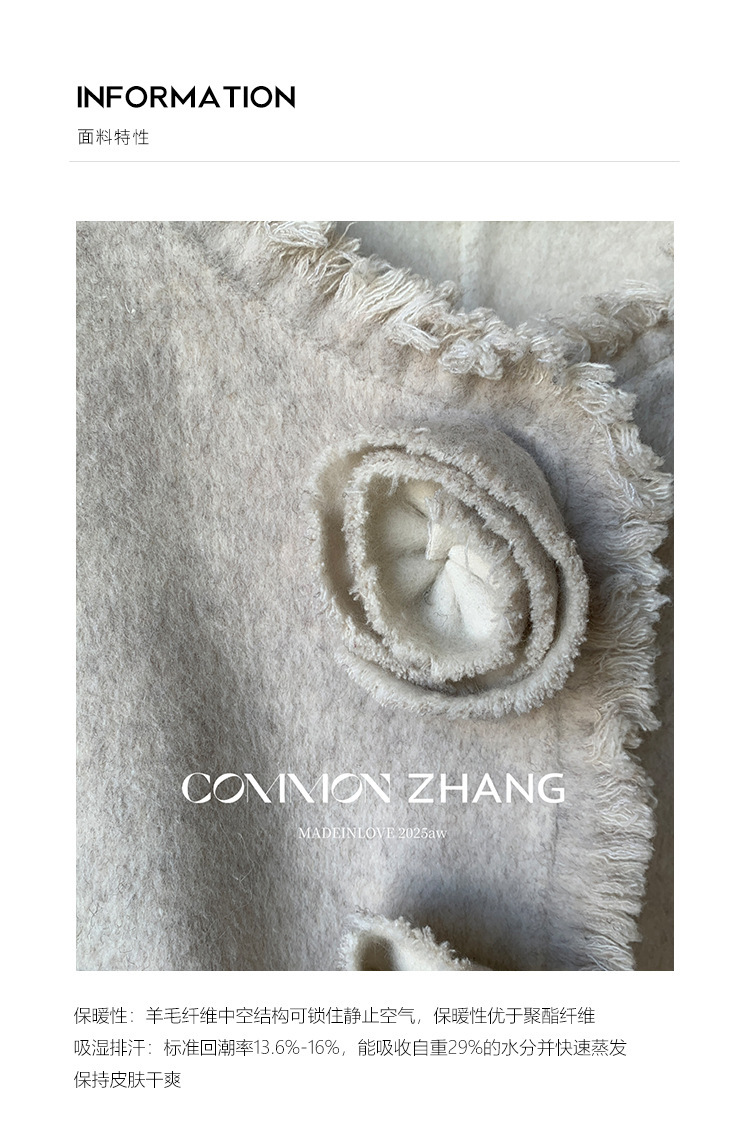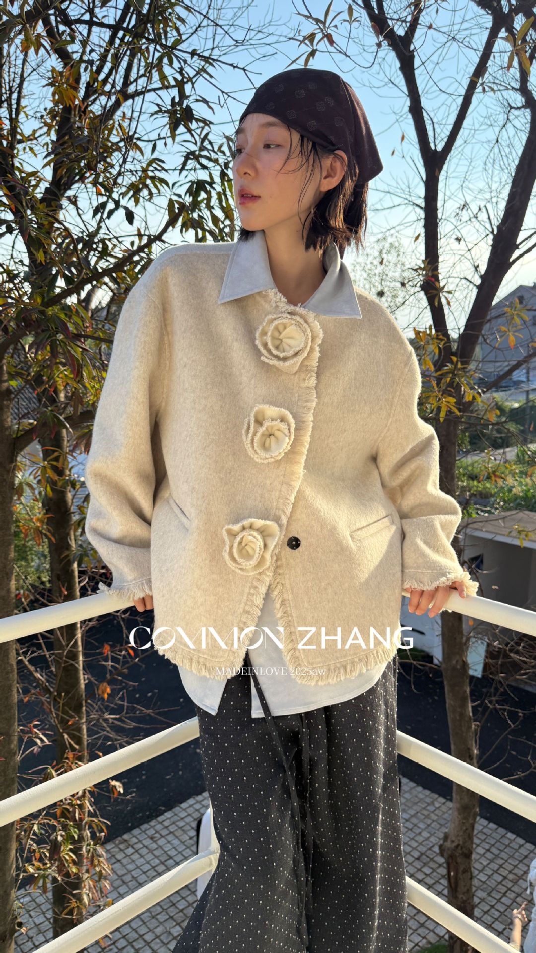 *o-ha-you*【FCZCB309722】秋冬純手工羊毛雙面尼女少女感花朵流蘇邊毛呢外套-2色