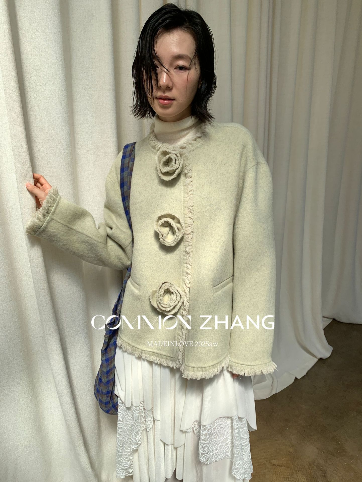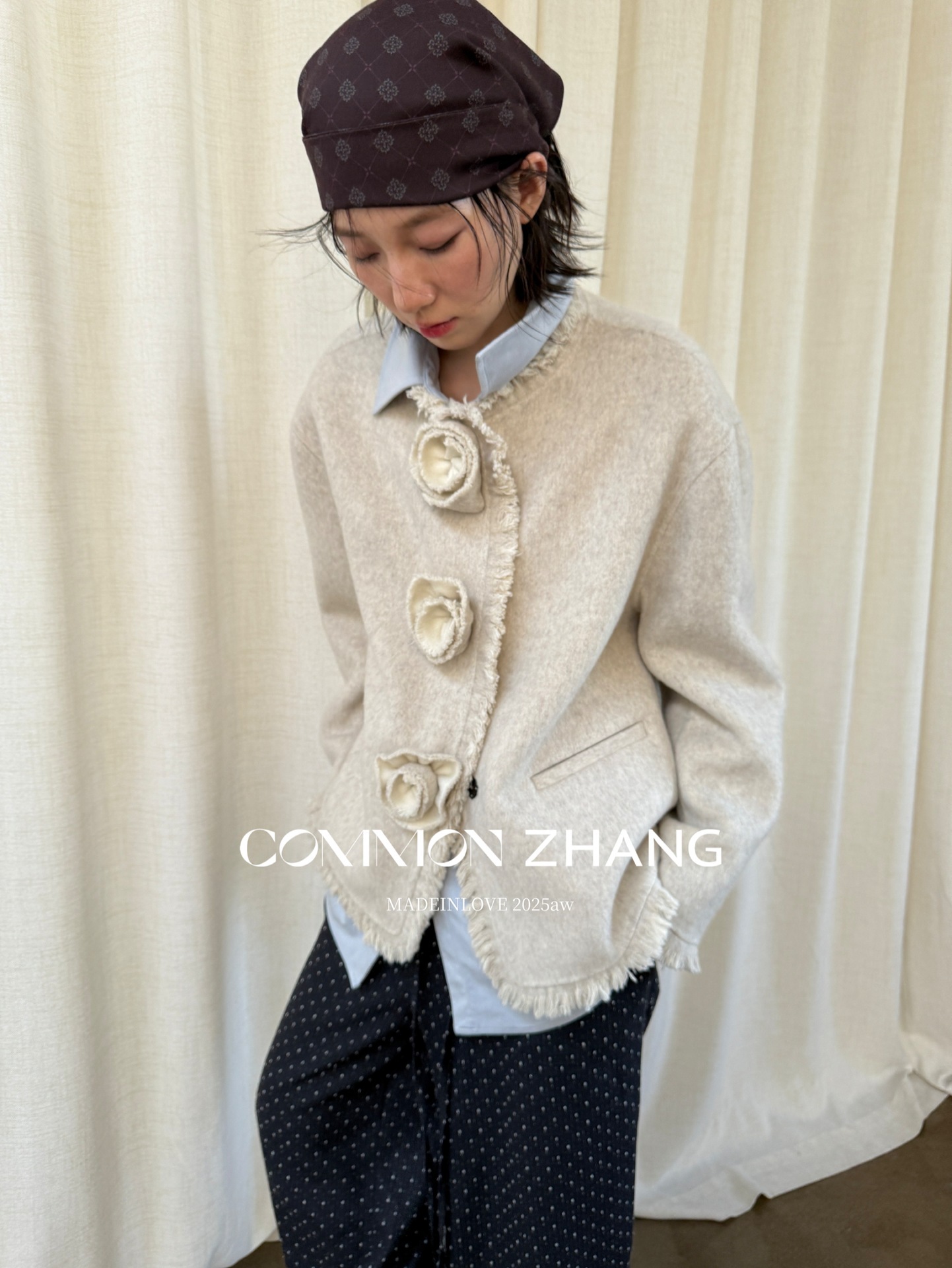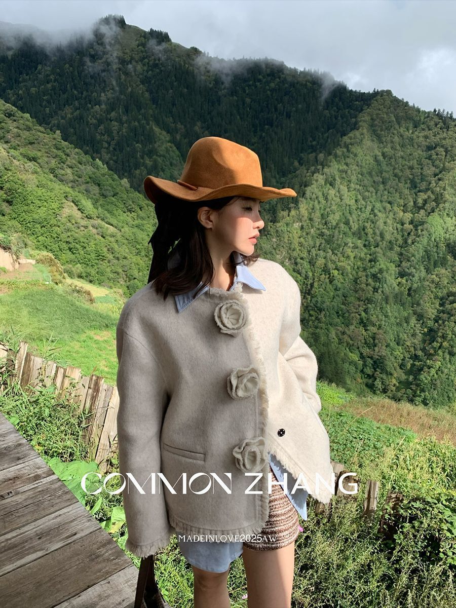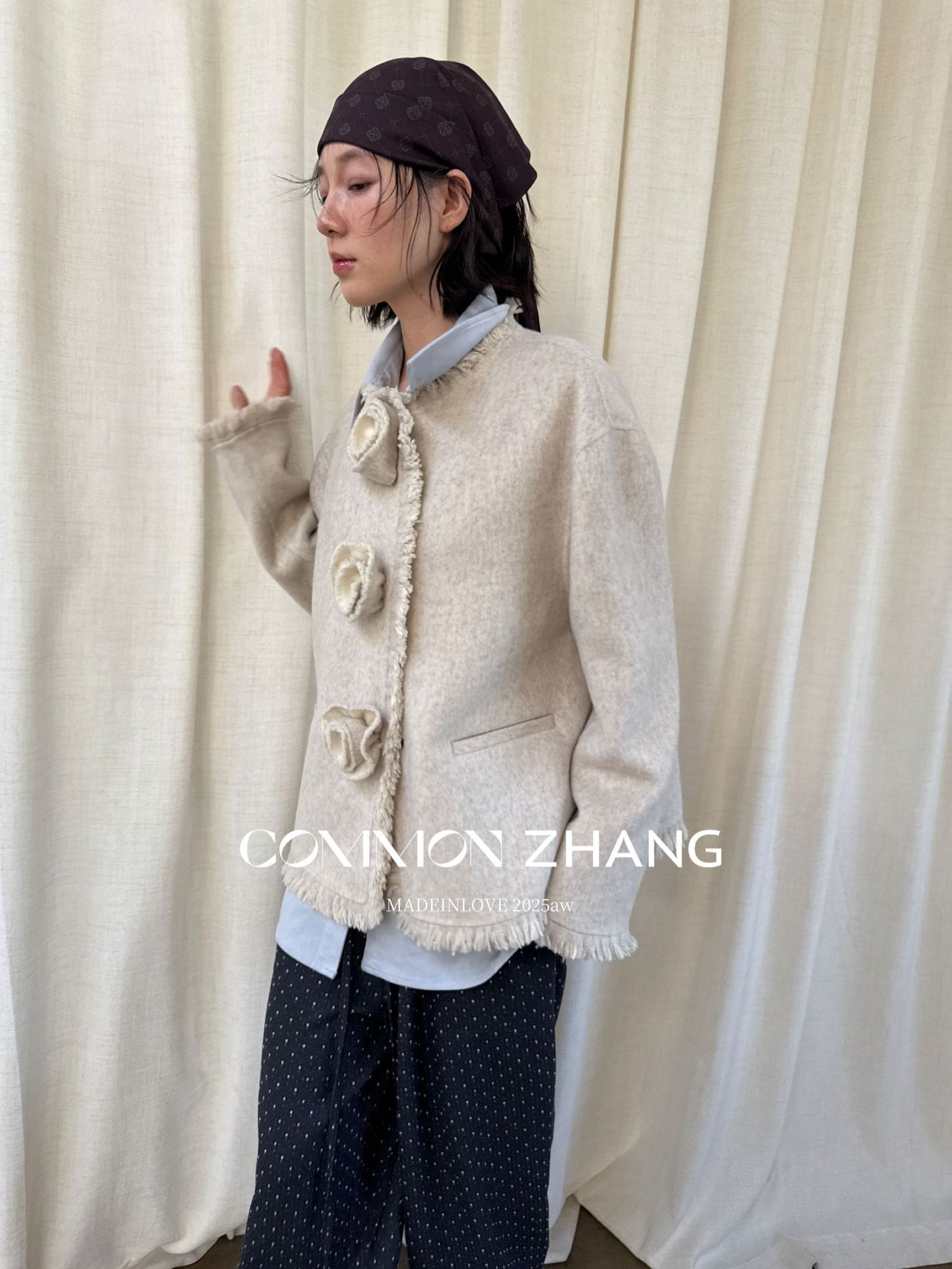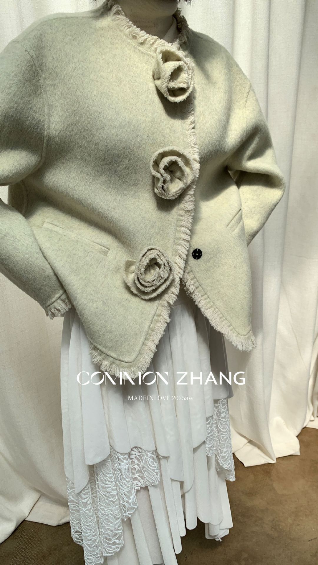 *o-ha-you*【FCZCB309722】秋冬純手工羊毛雙面尼女少女感花朵流蘇邊毛呢外套-2色