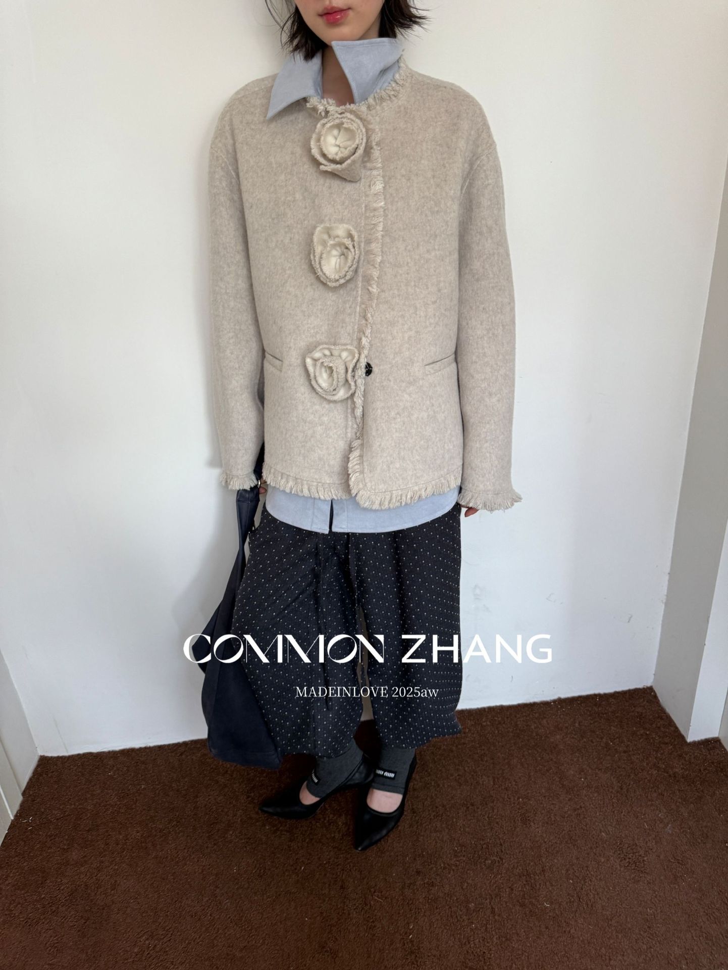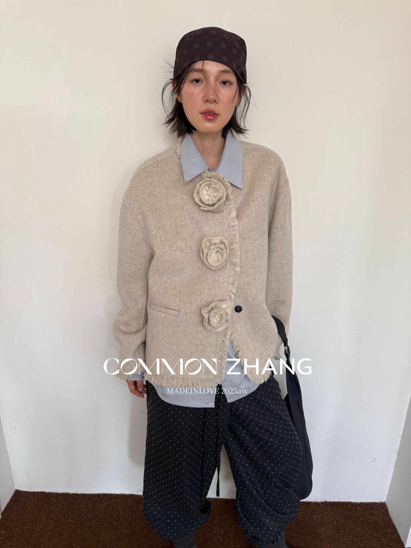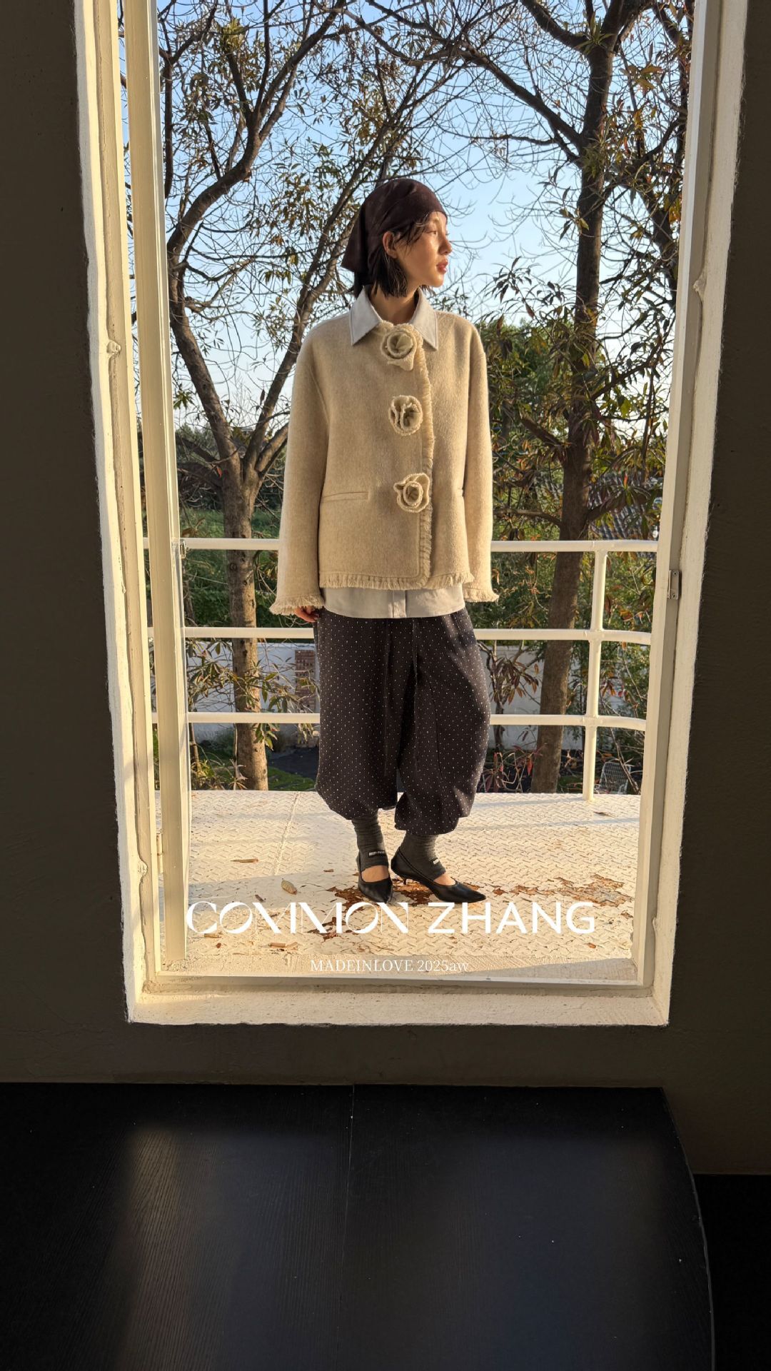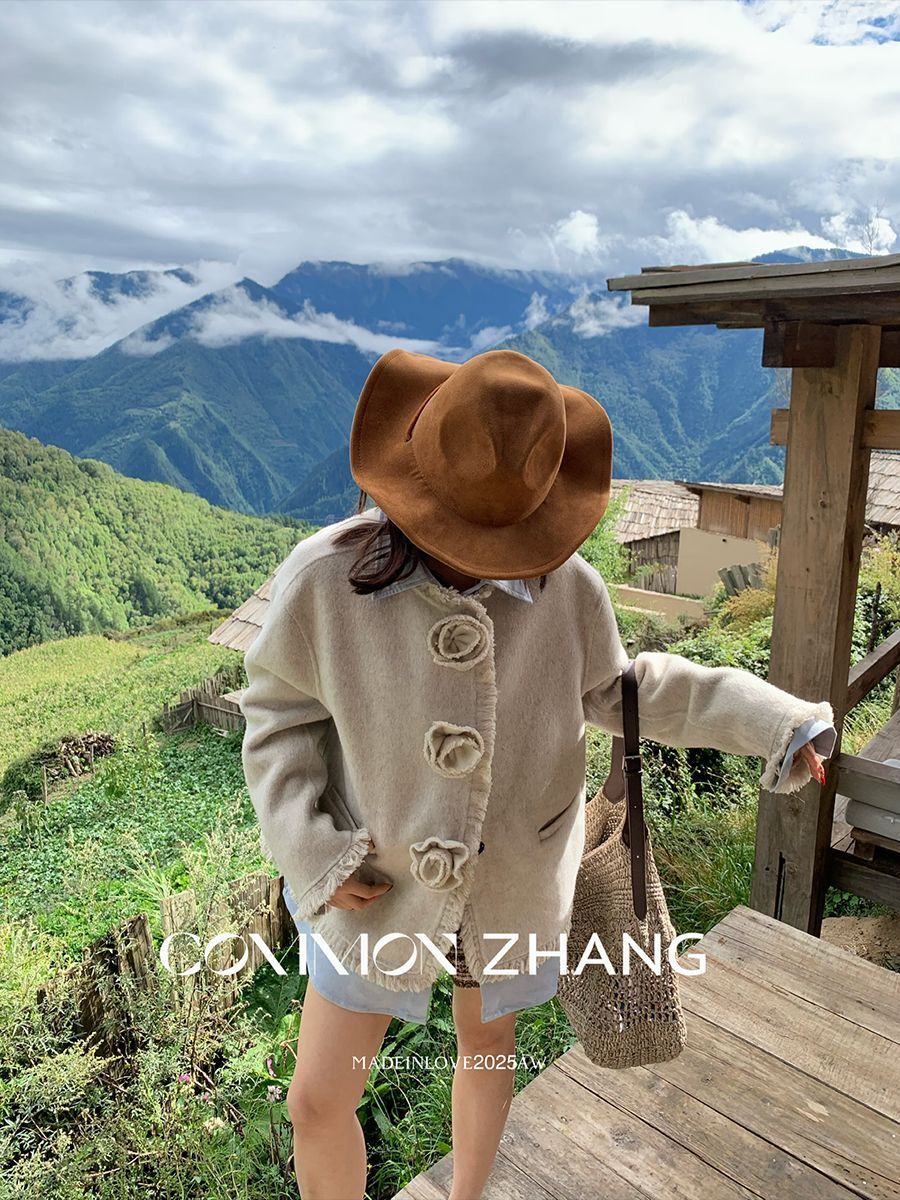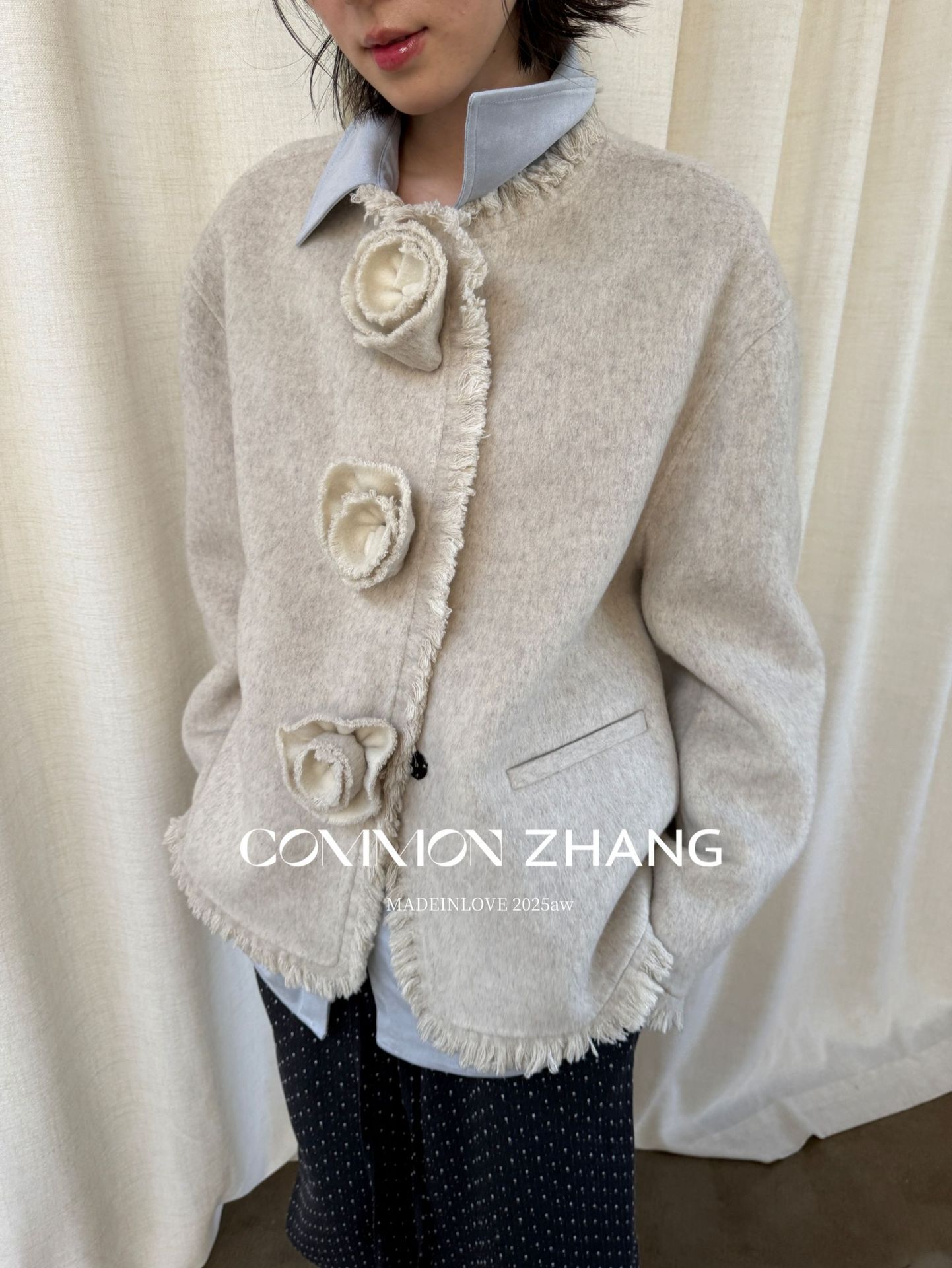 *o-ha-you*【FCZCB309722】秋冬純手工羊毛雙面尼女少女感花朵流蘇邊毛呢外套-2色
