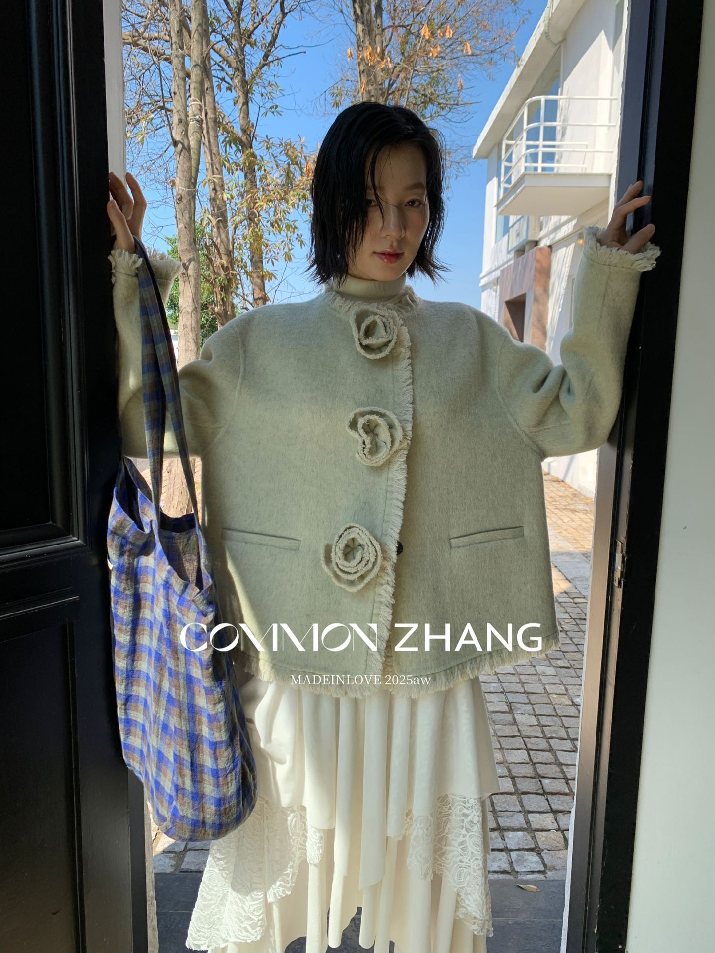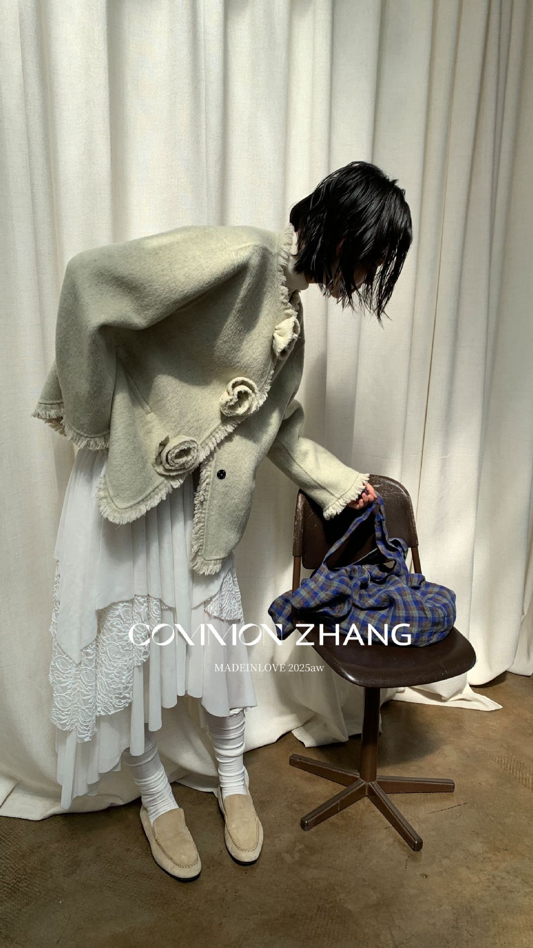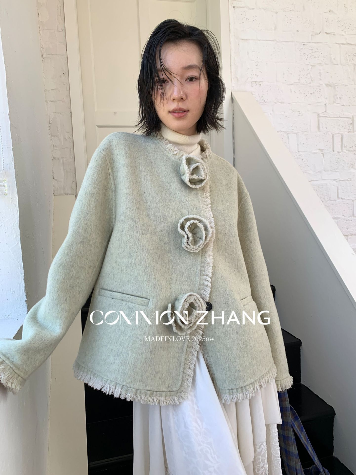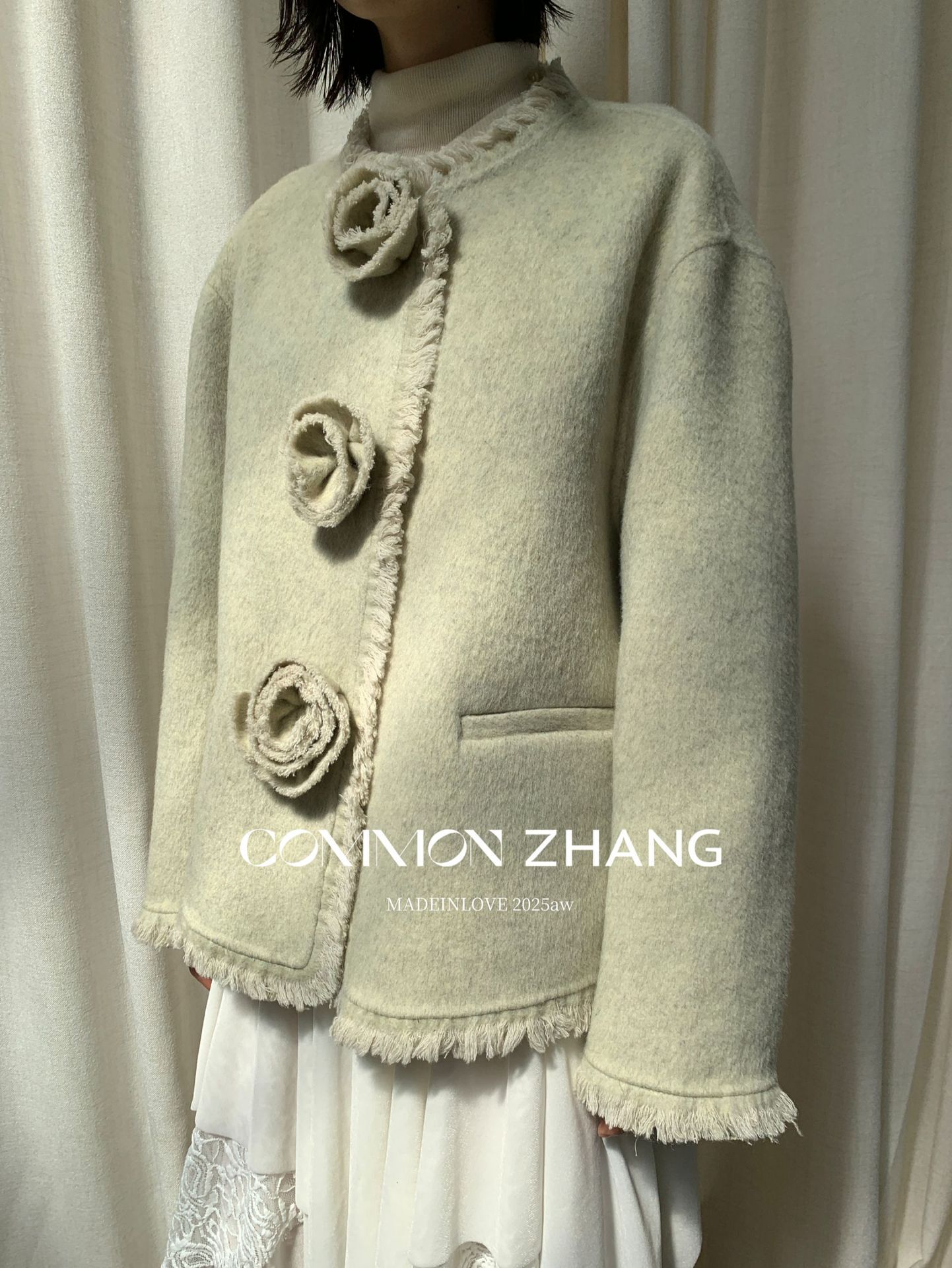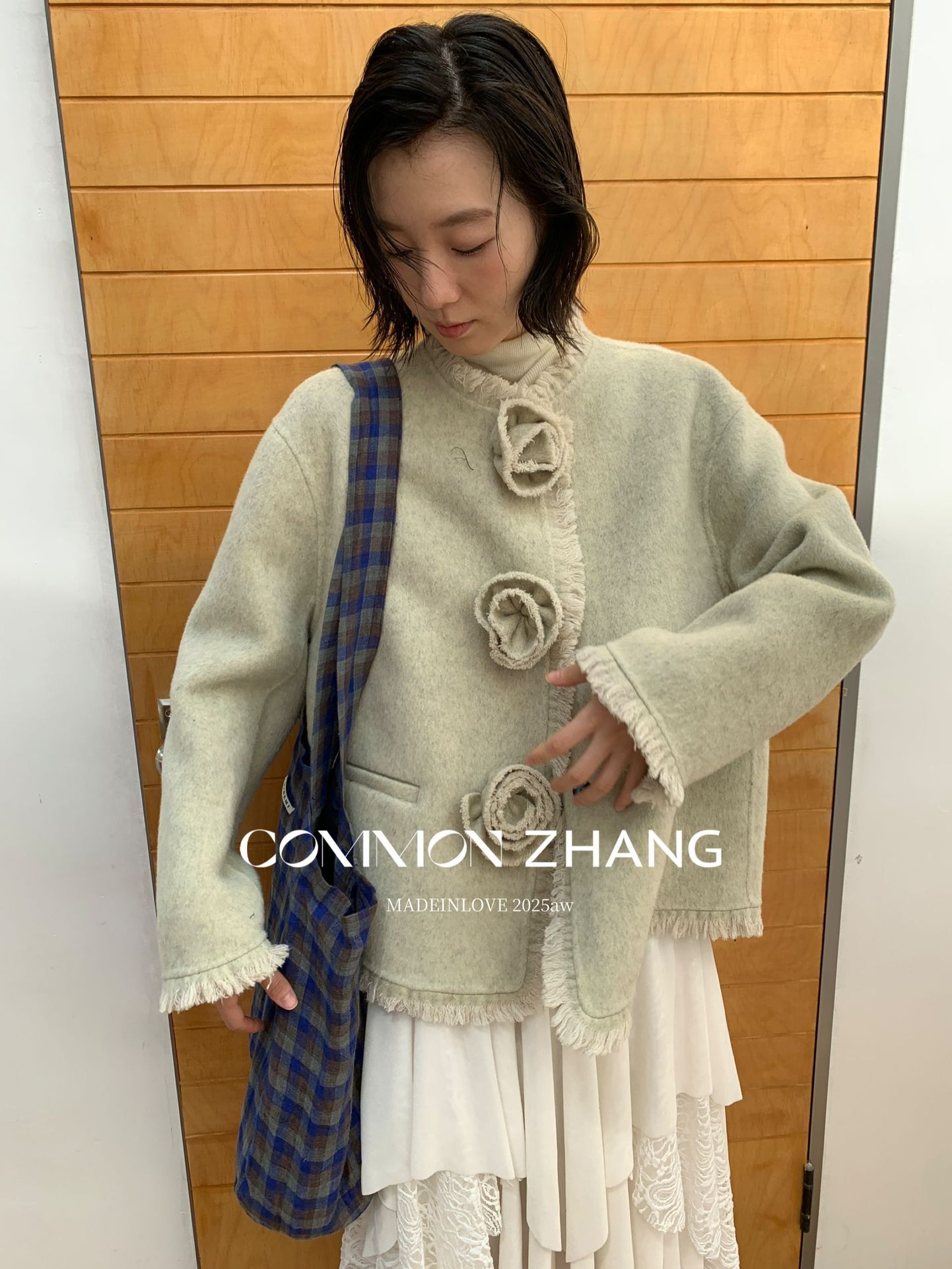 *o-ha-you*【FCZCB309722】秋冬純手工羊毛雙面尼女少女感花朵流蘇邊毛呢外套-2色