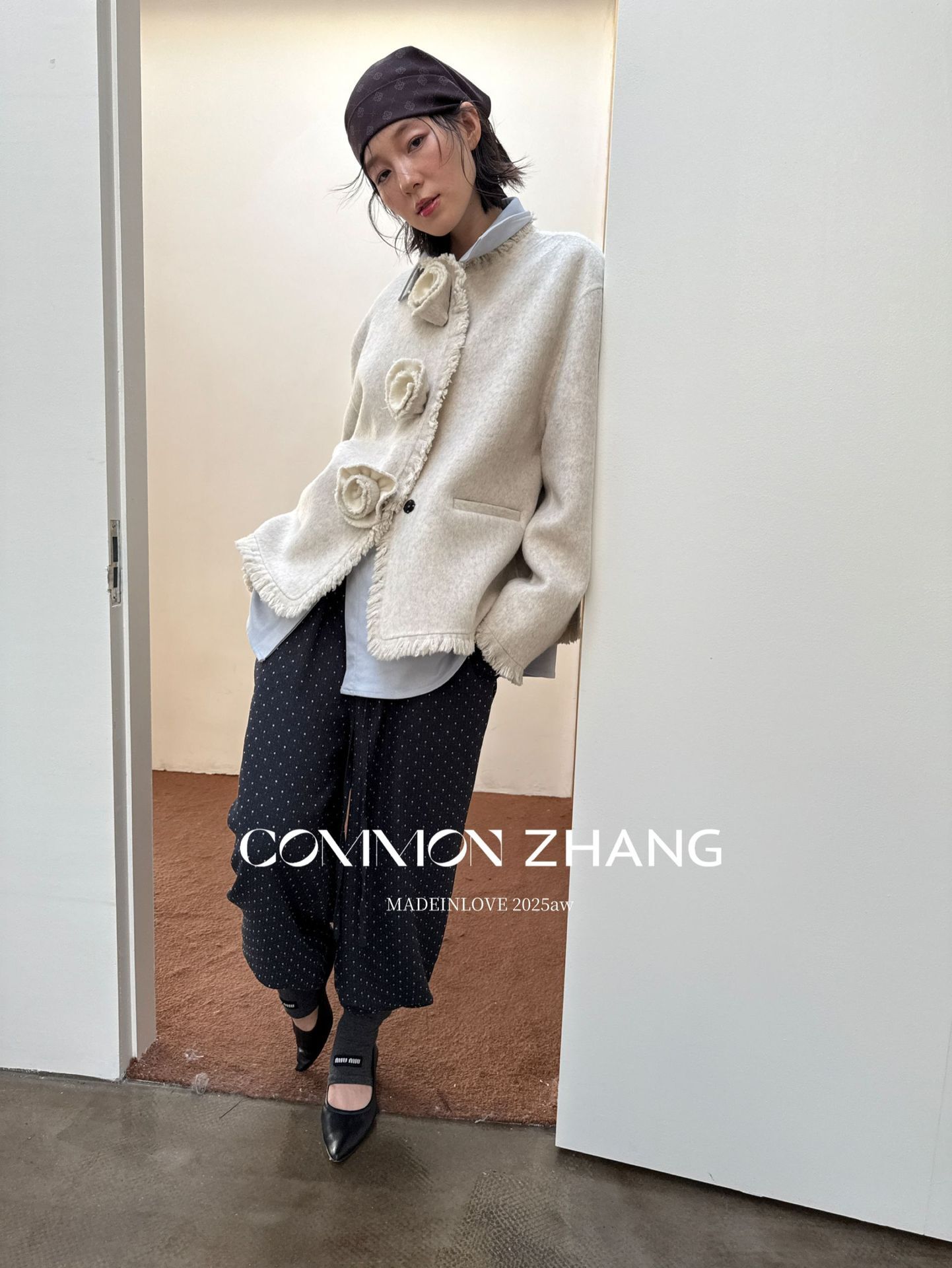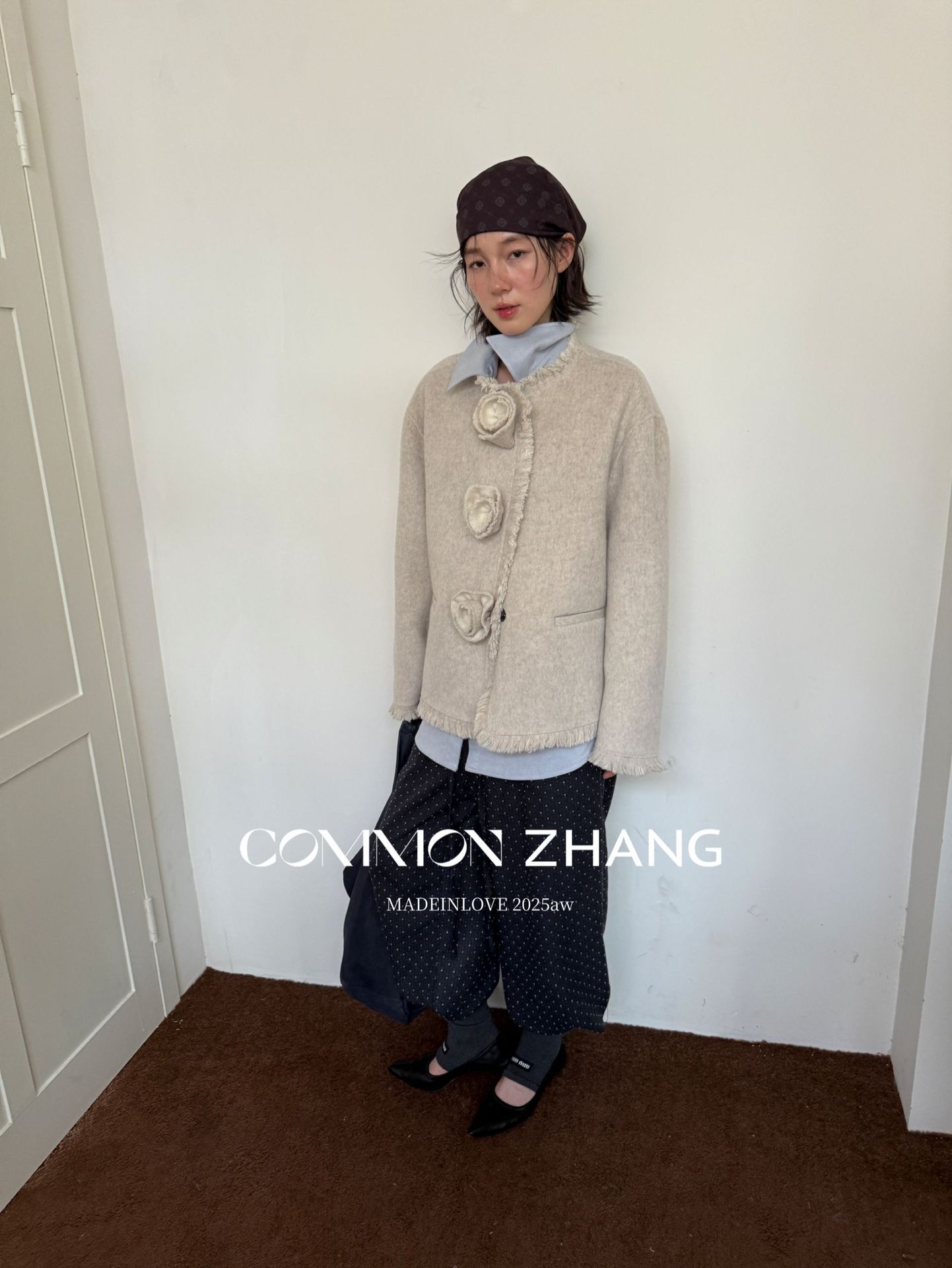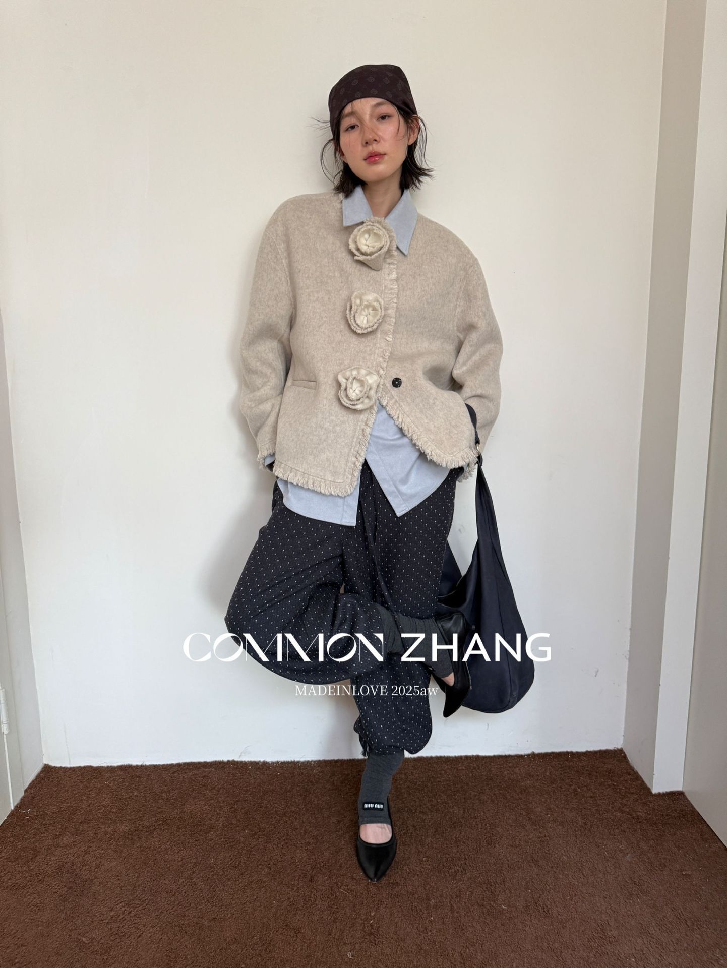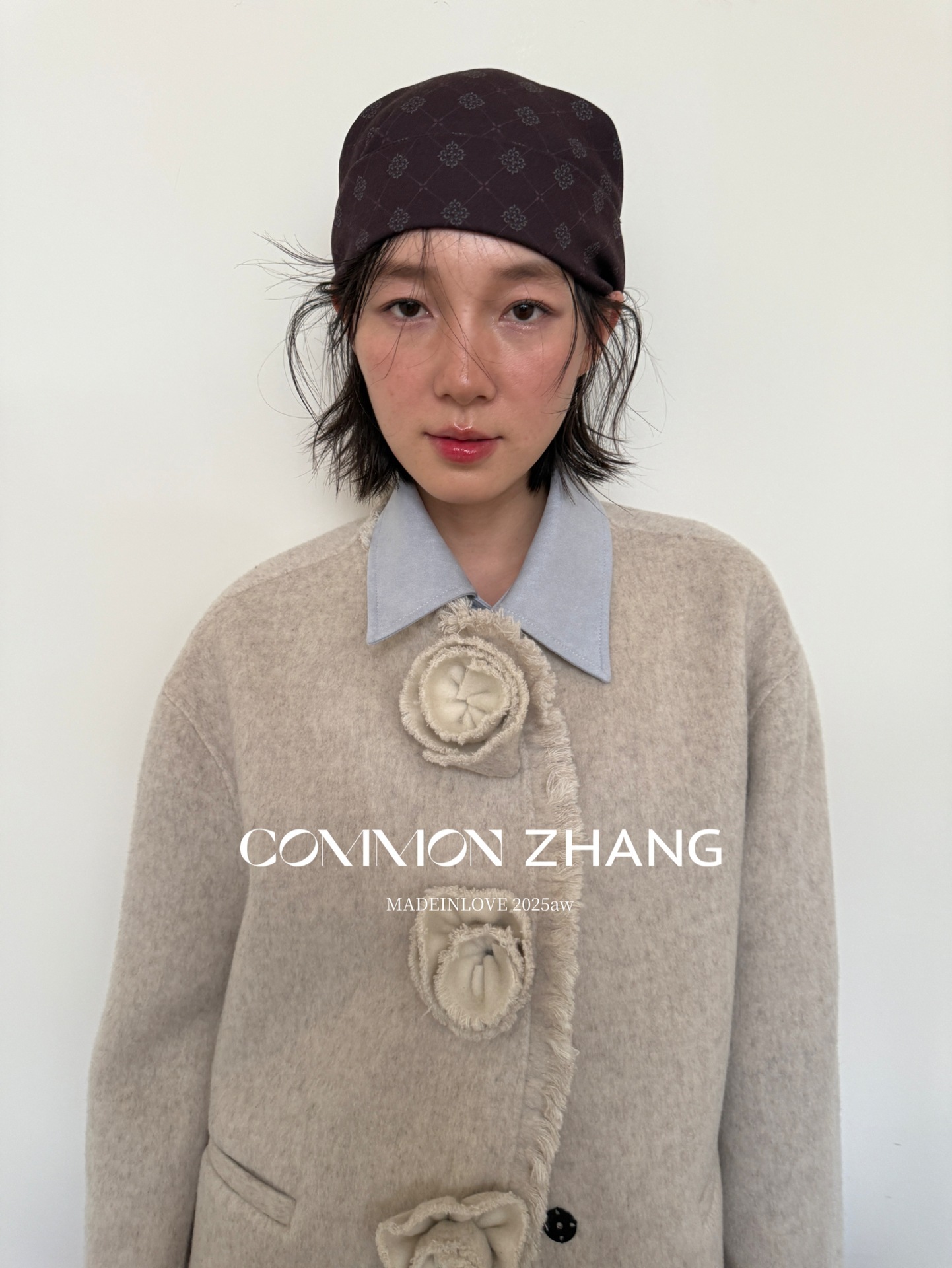*o-ha-you*【FCZCB309722】秋冬純手工羊毛雙面尼女少女感花朵流蘇邊毛呢外套-2色