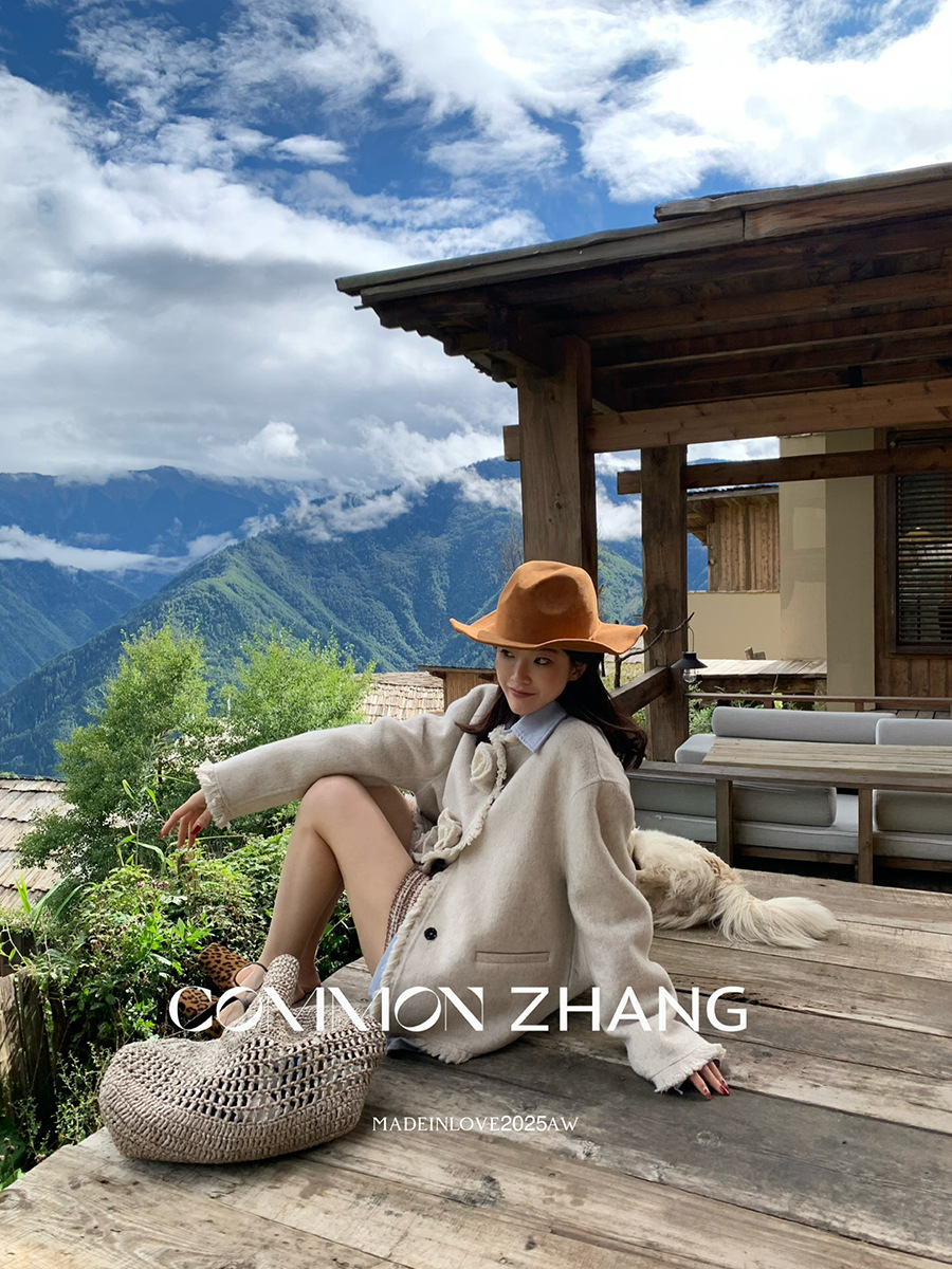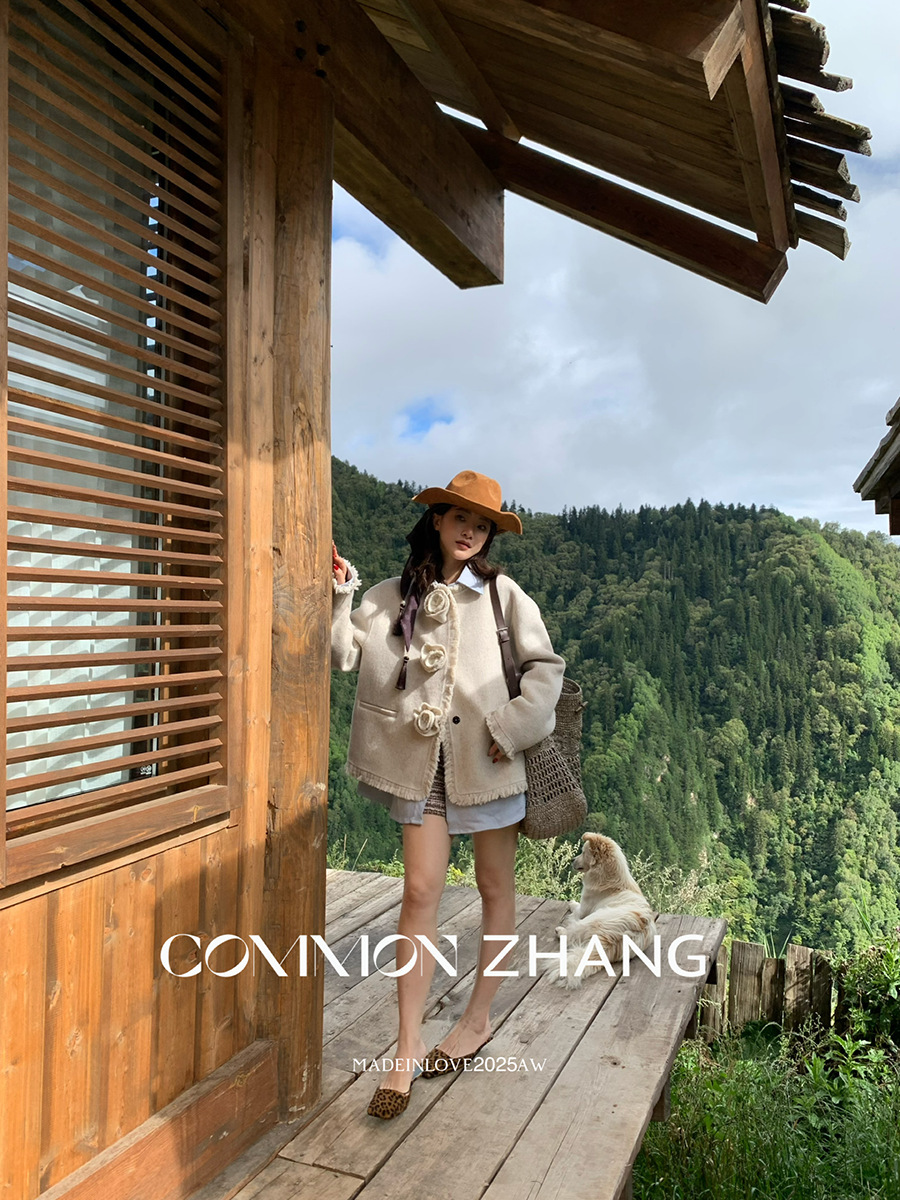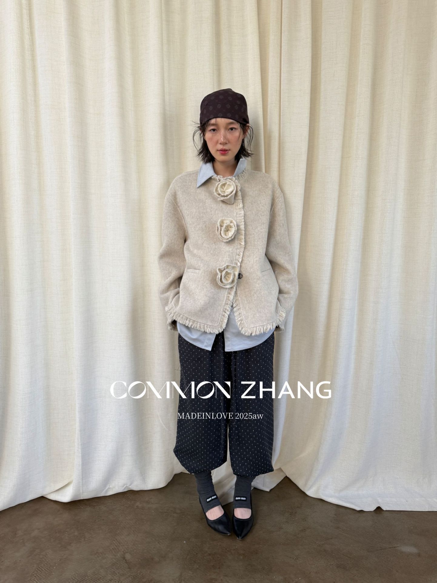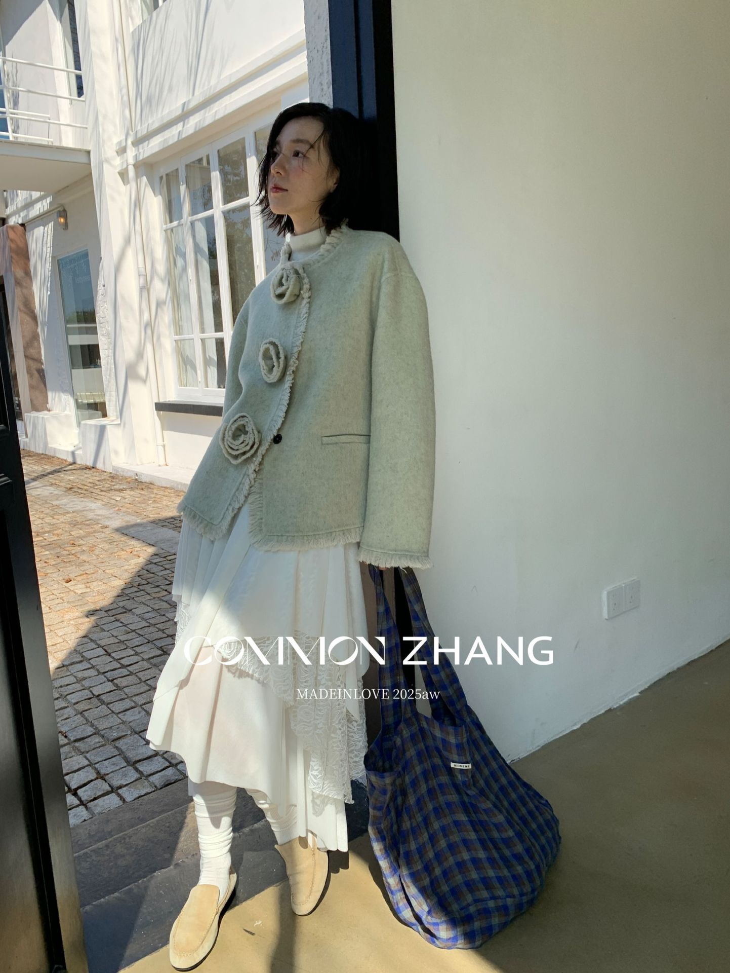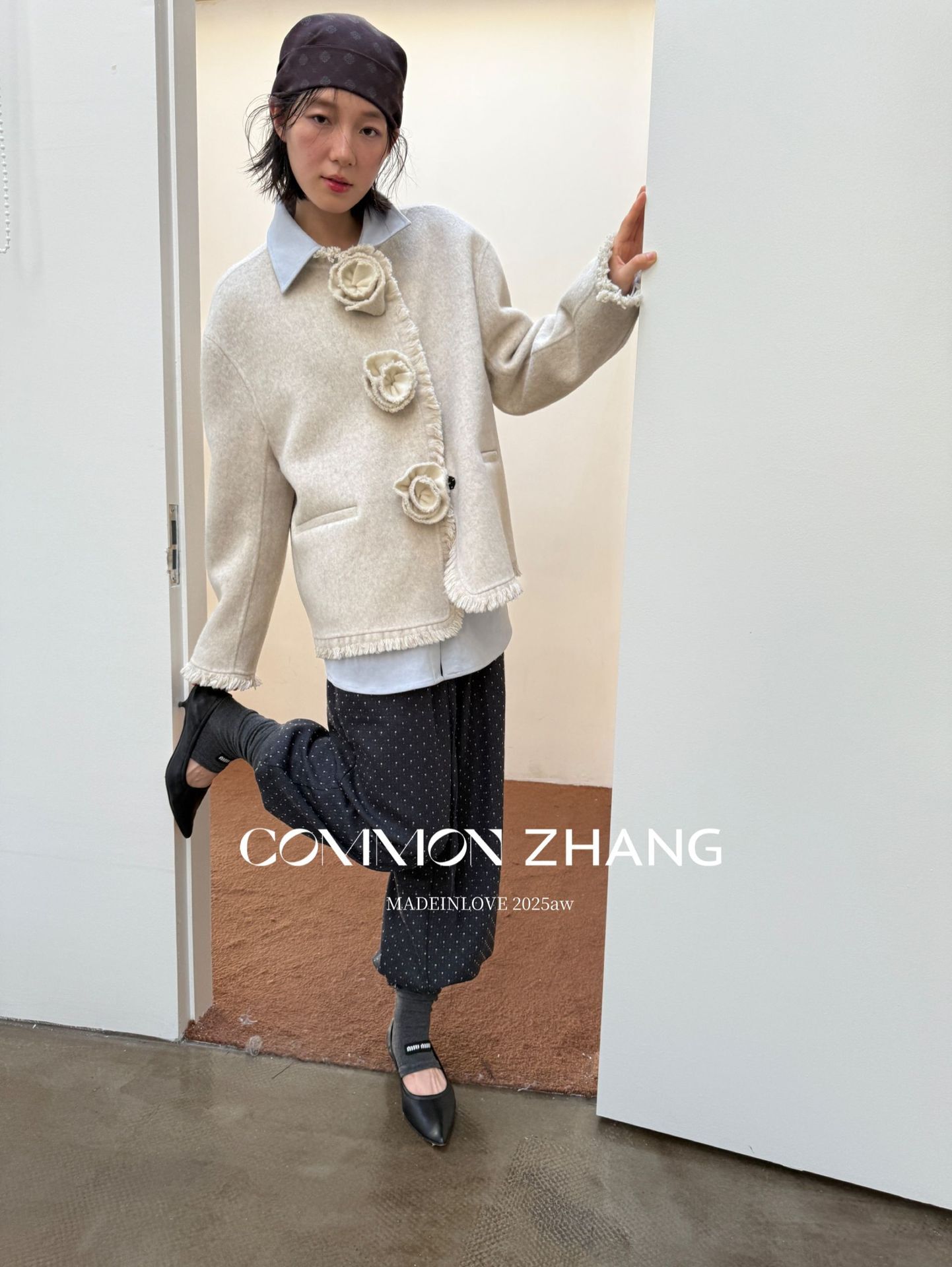 *o-ha-you*【FCZCB309722】秋冬純手工羊毛雙面尼女少女感花朵流蘇邊毛呢外套-2色