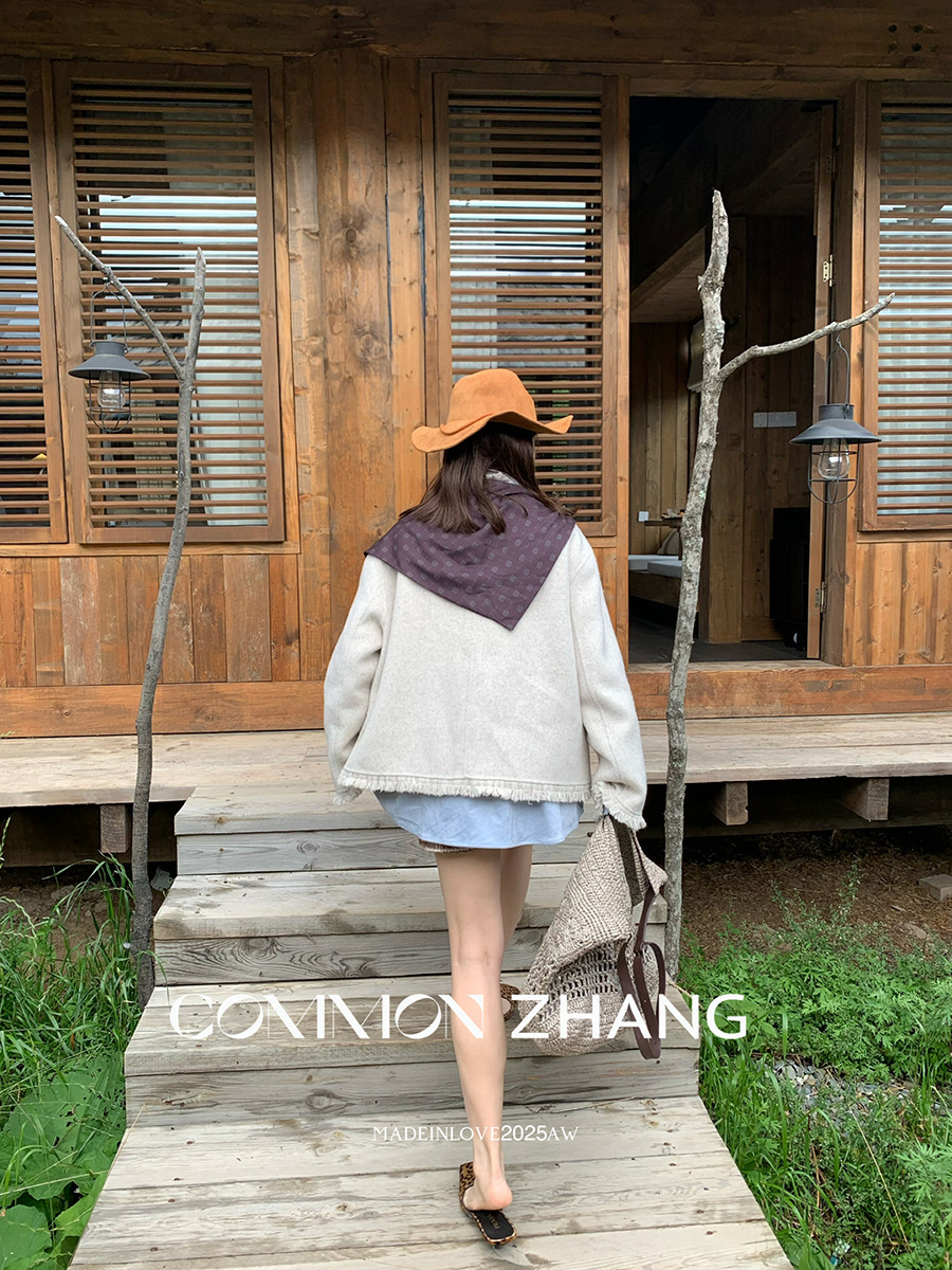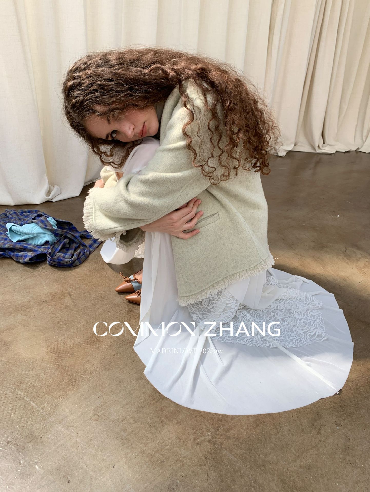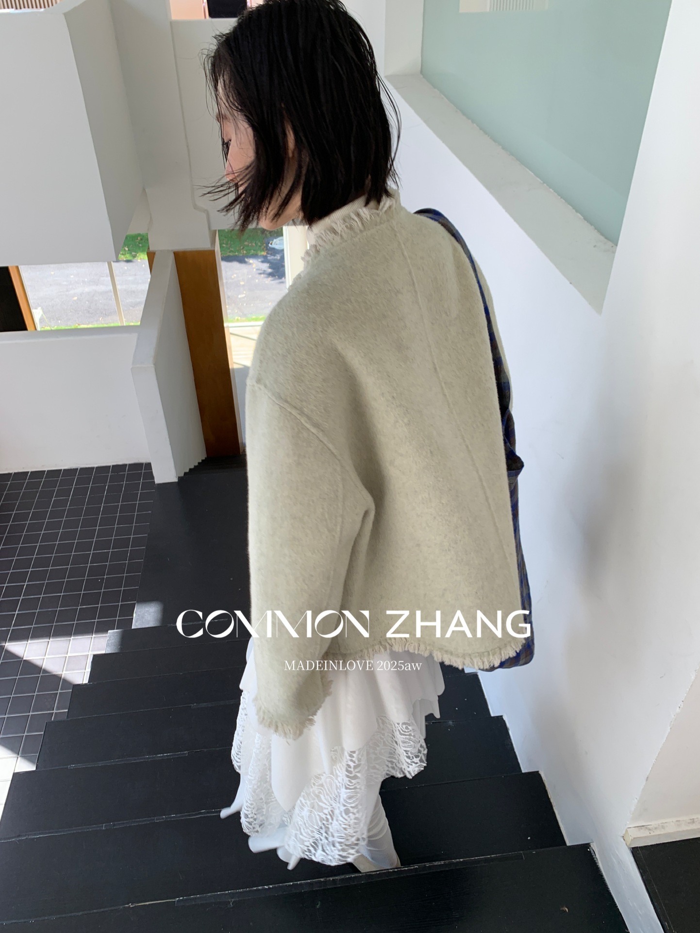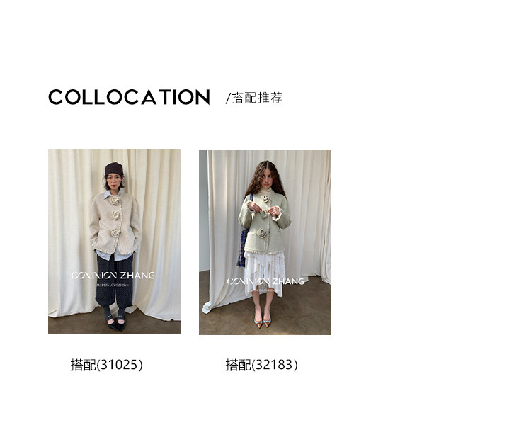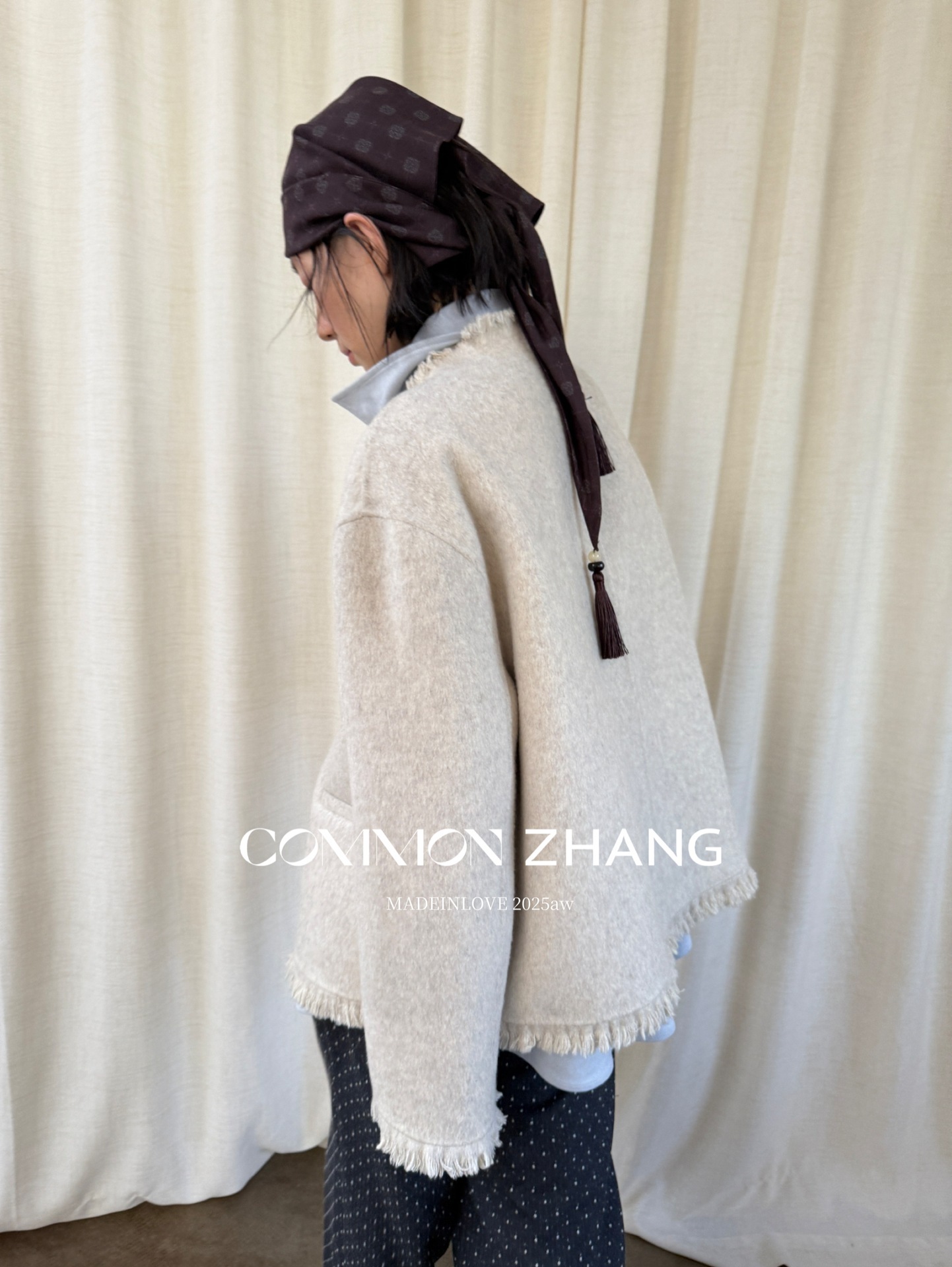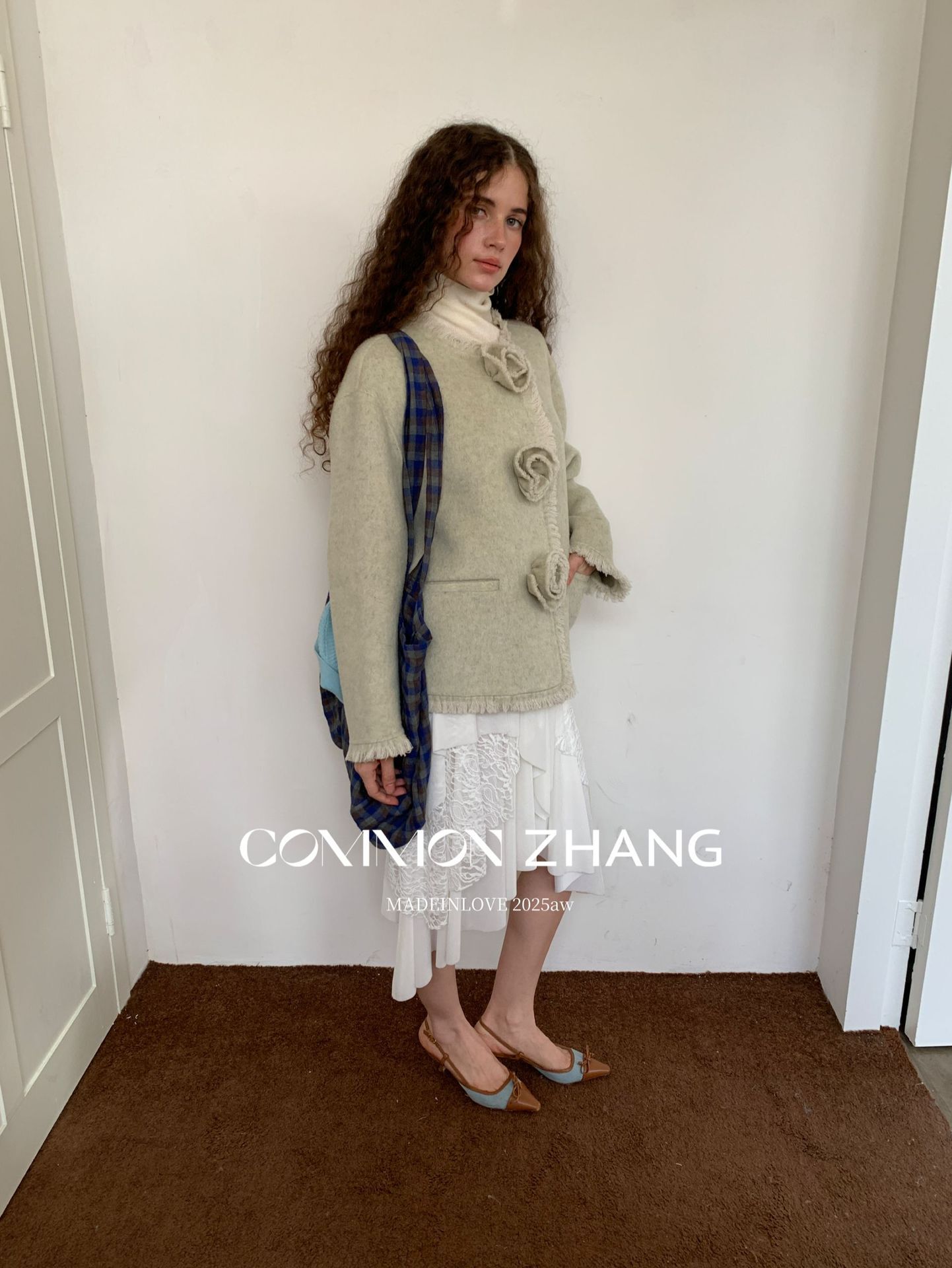 *o-ha-you*【FCZCB309722】秋冬純手工羊毛雙面尼女少女感花朵流蘇邊毛呢外套-2色