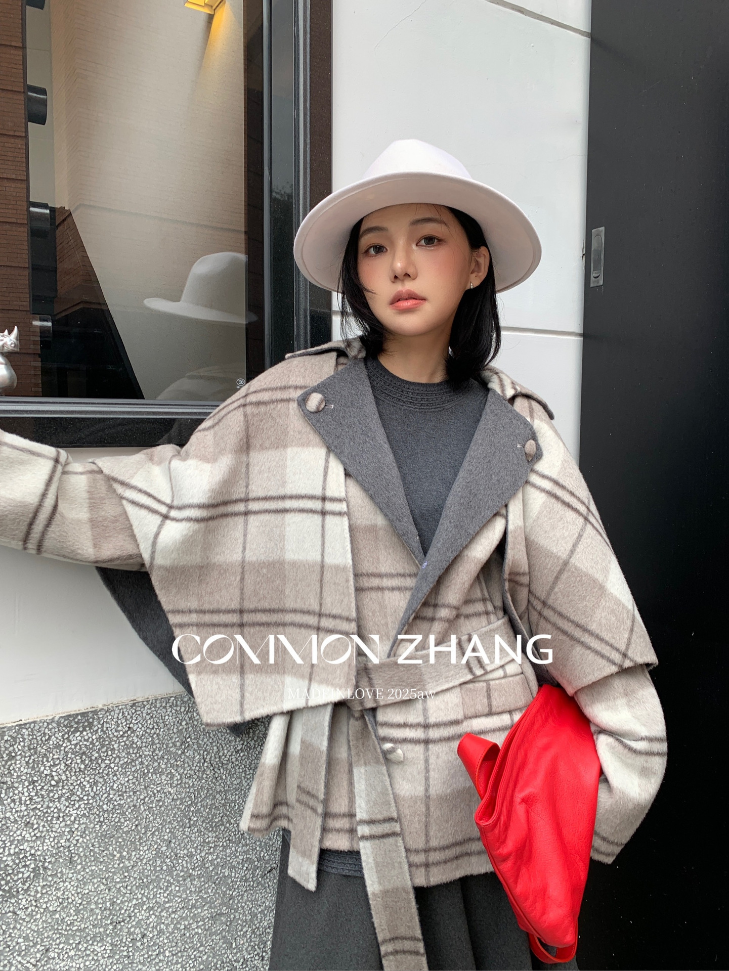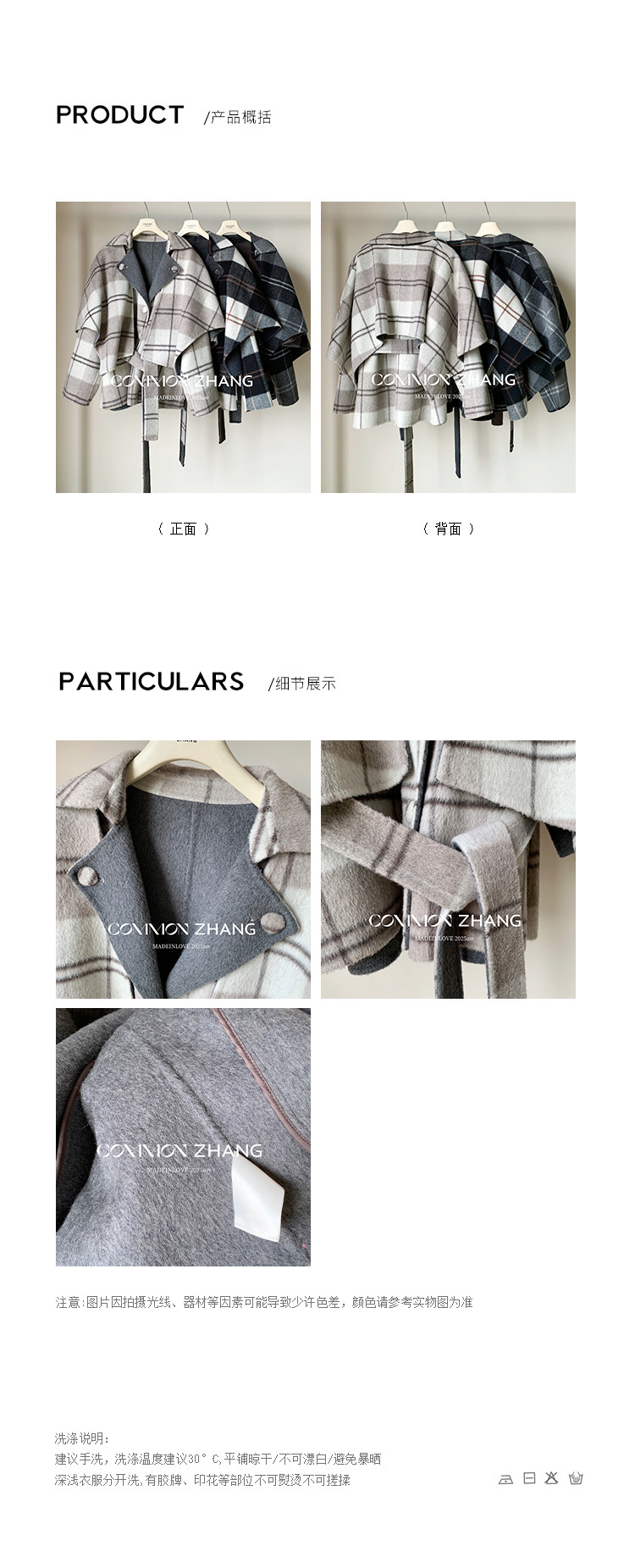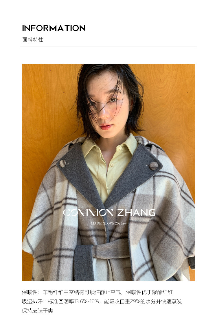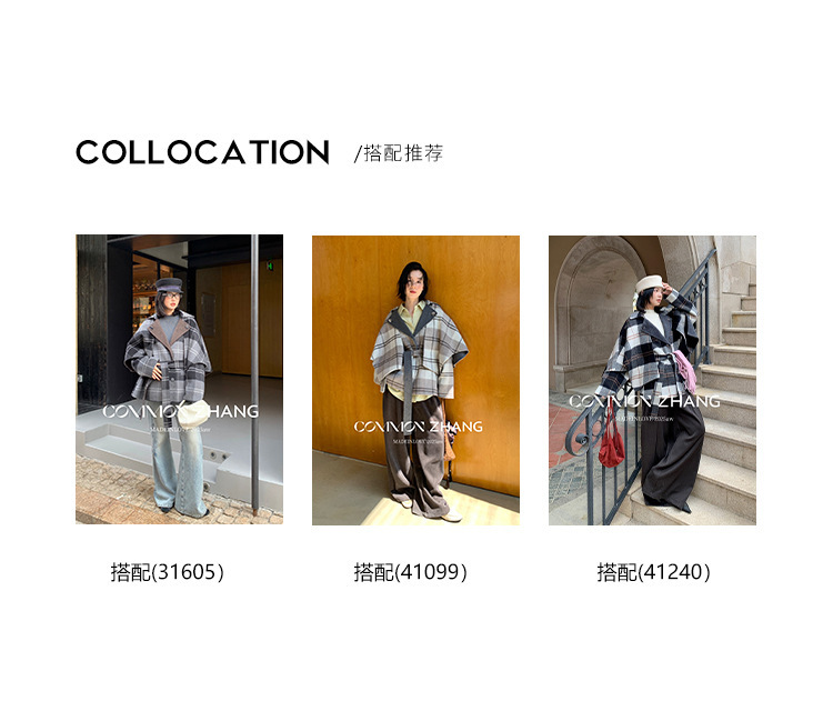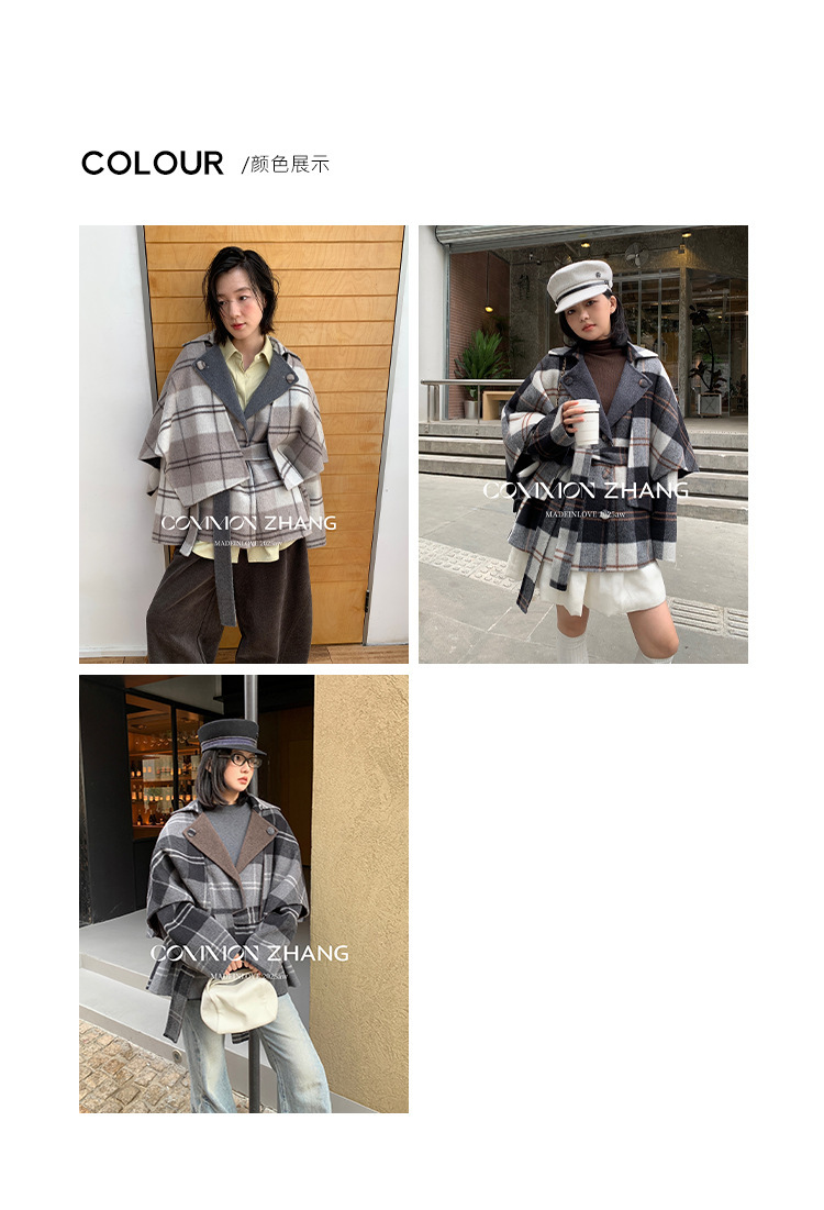 *o-ha-you*【FCZCB309731】秋冬純手工羊毛雙面尼子大衣女大翻領格子毛呢外套-3色