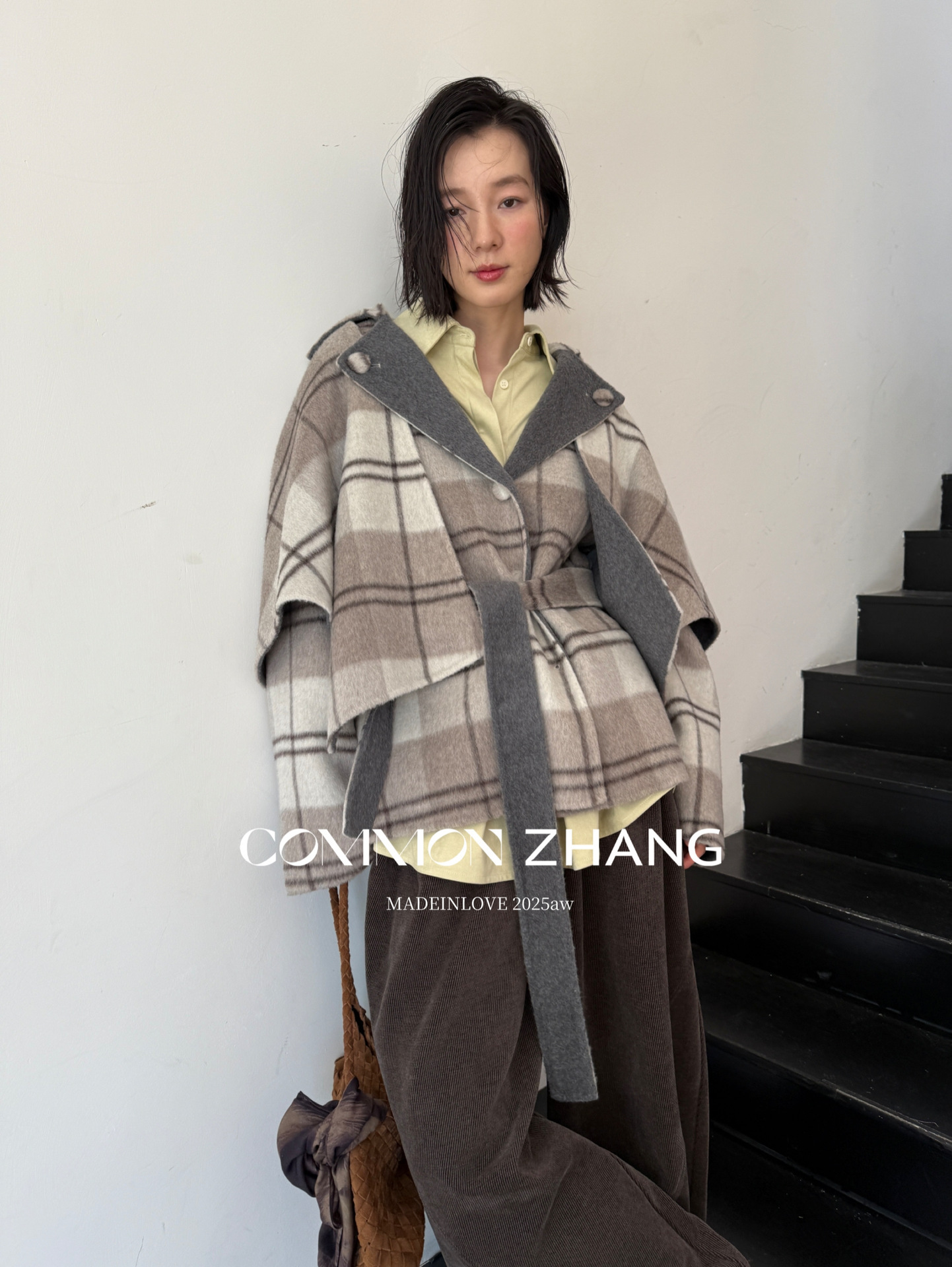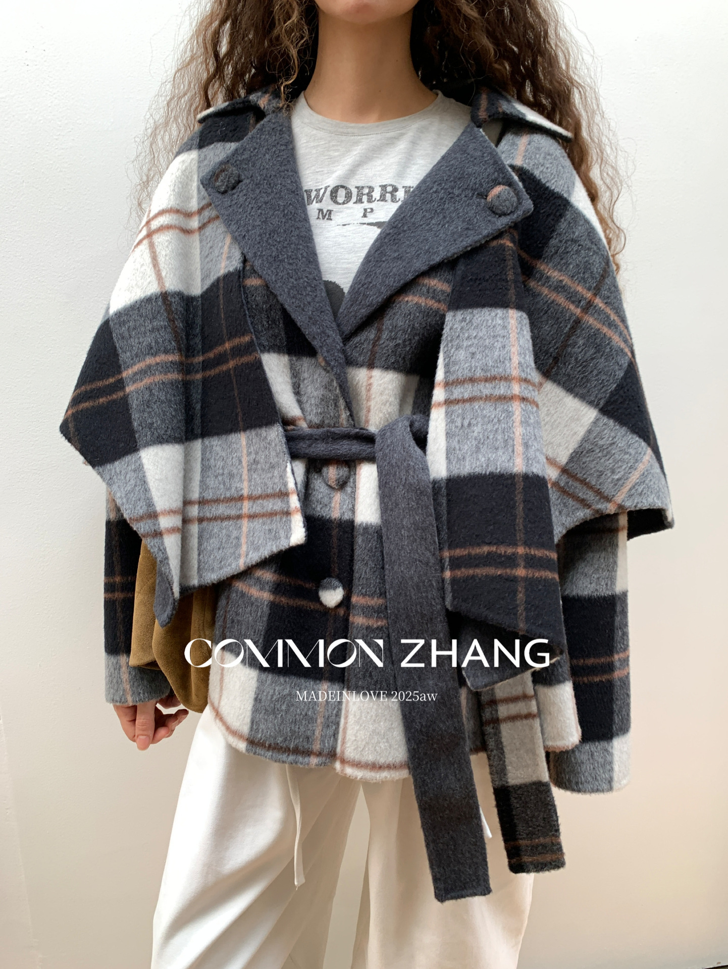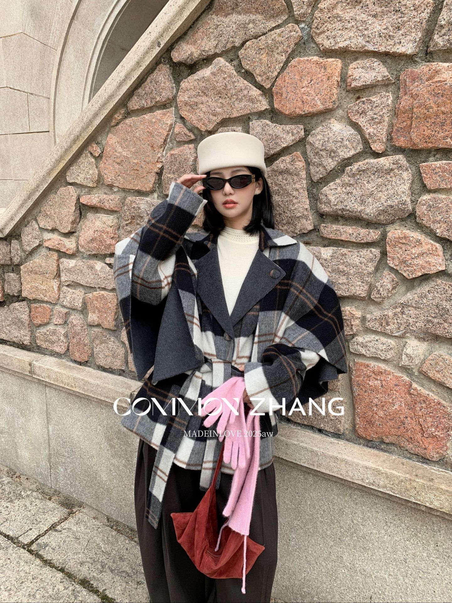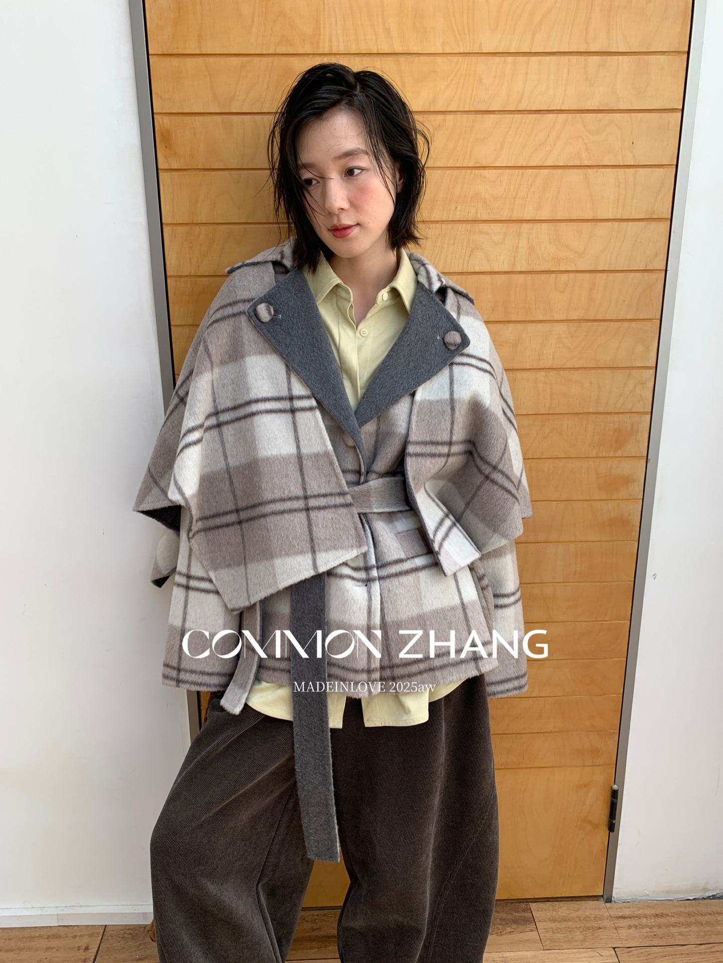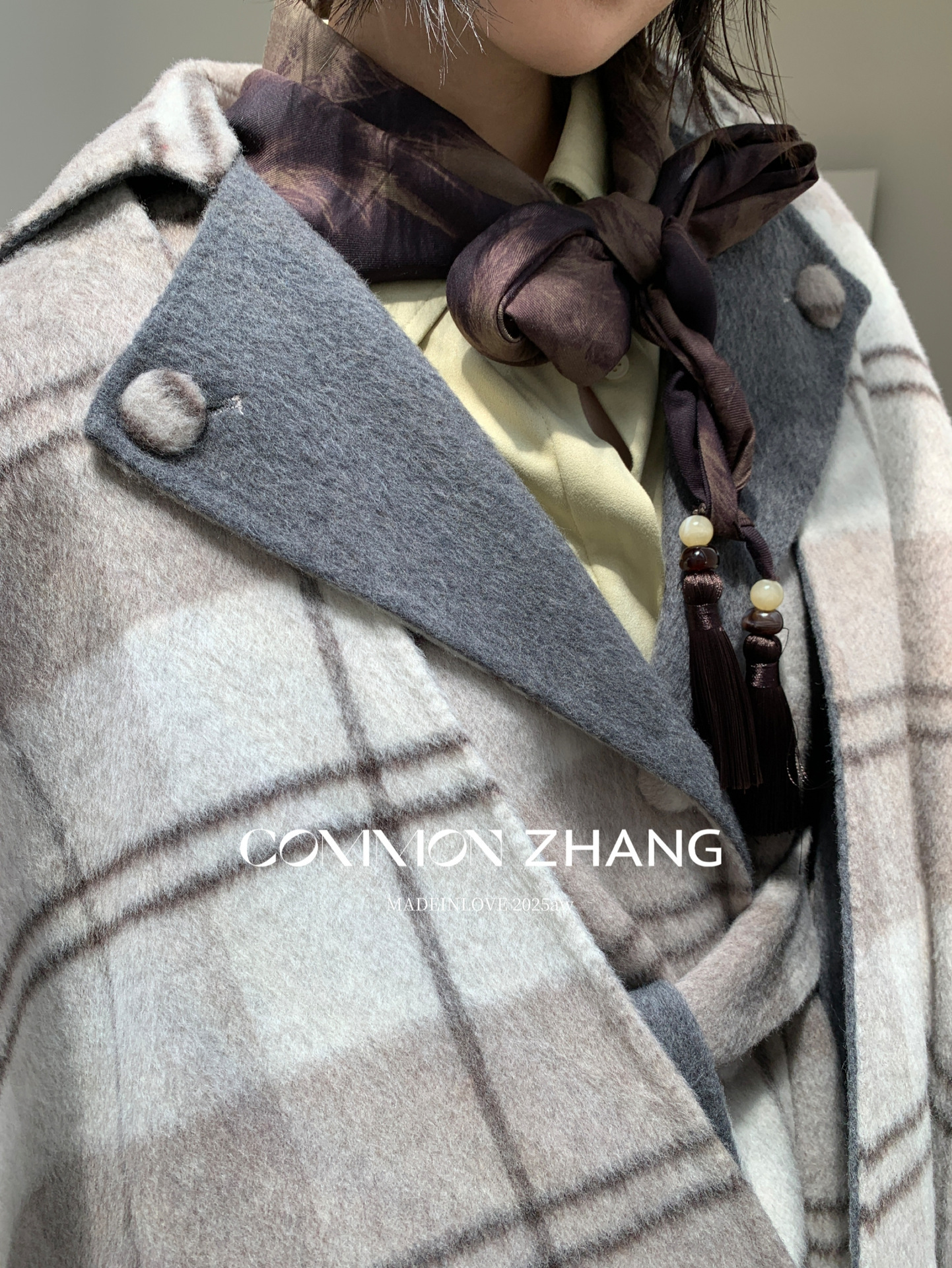 *o-ha-you*【FCZCB309731】秋冬純手工羊毛雙面尼子大衣女大翻領格子毛呢外套-3色