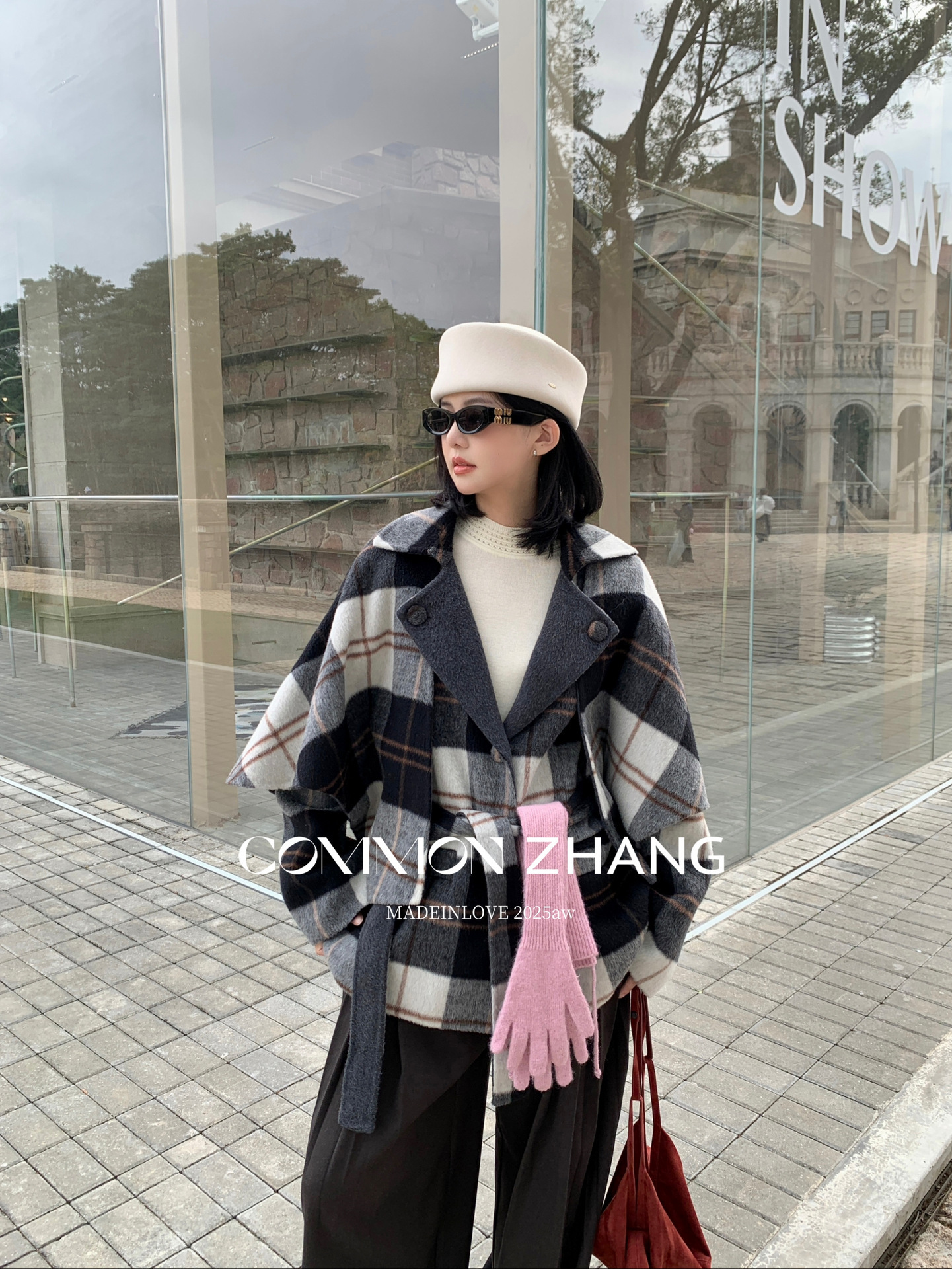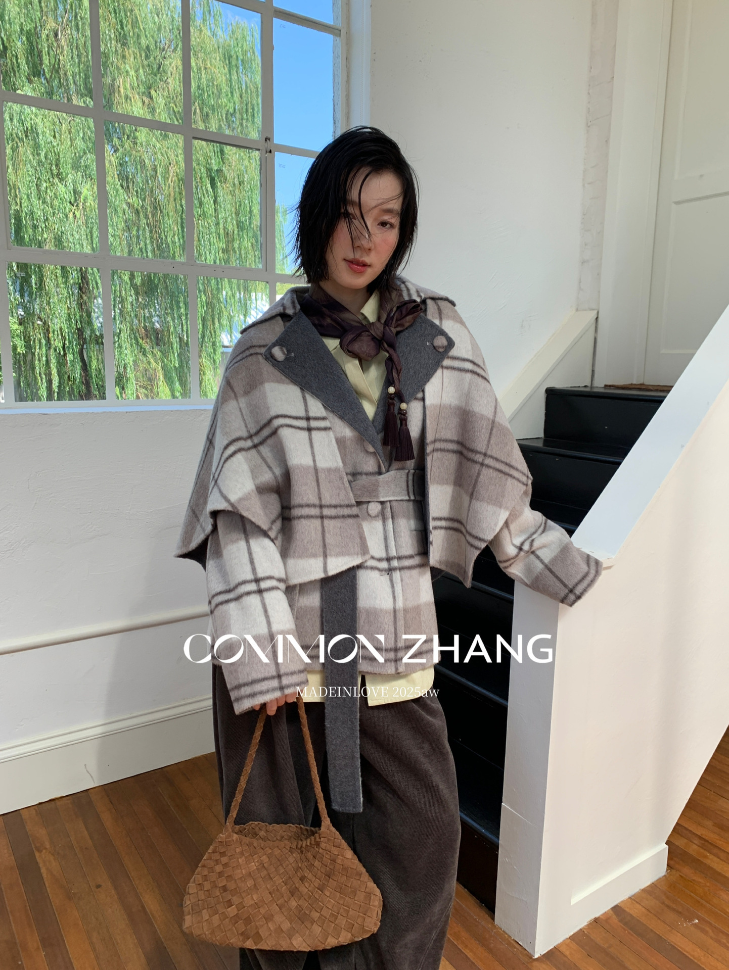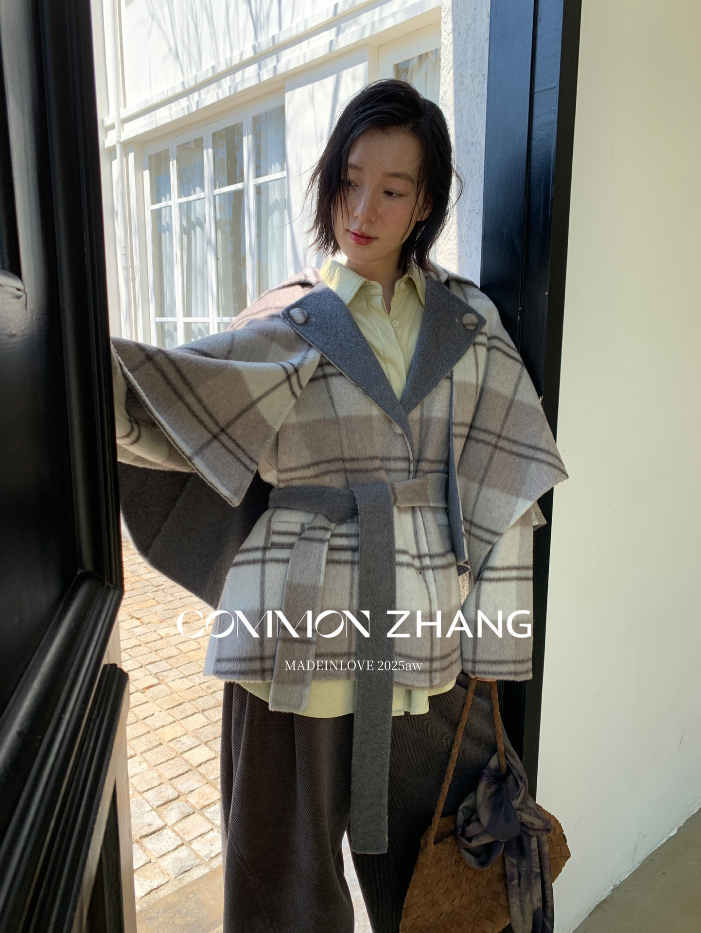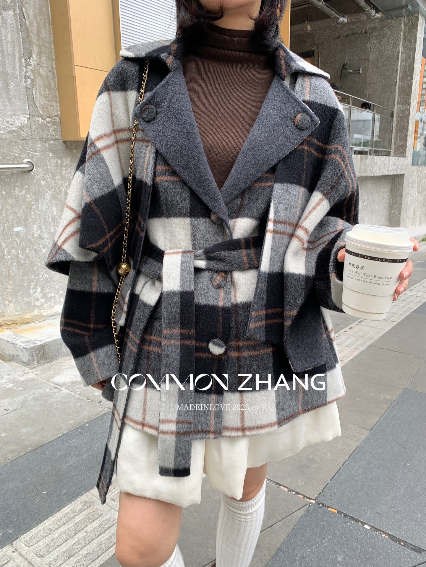 *o-ha-you*【FCZCB309731】秋冬純手工羊毛雙面尼子大衣女大翻領格子毛呢外套-3色