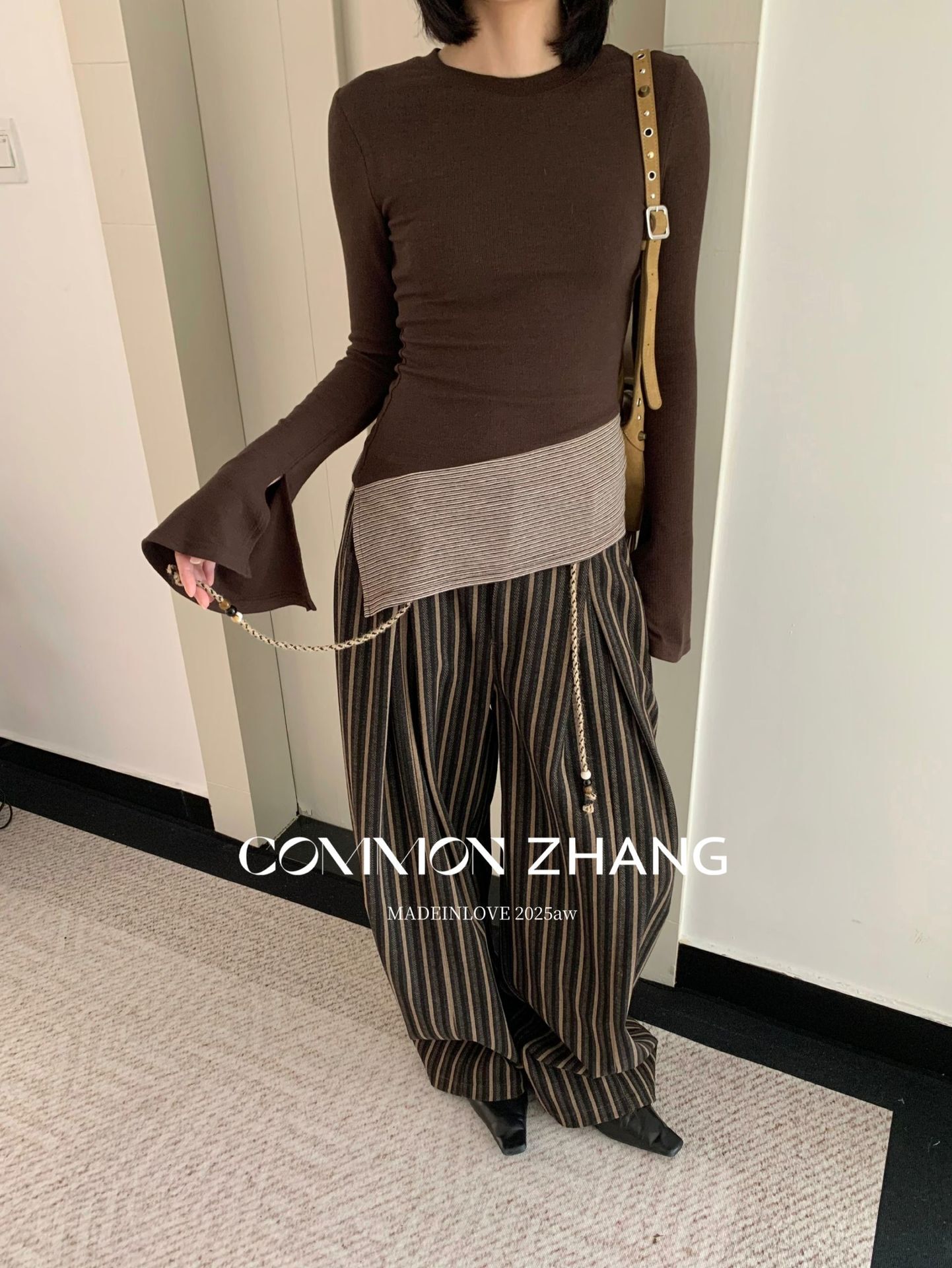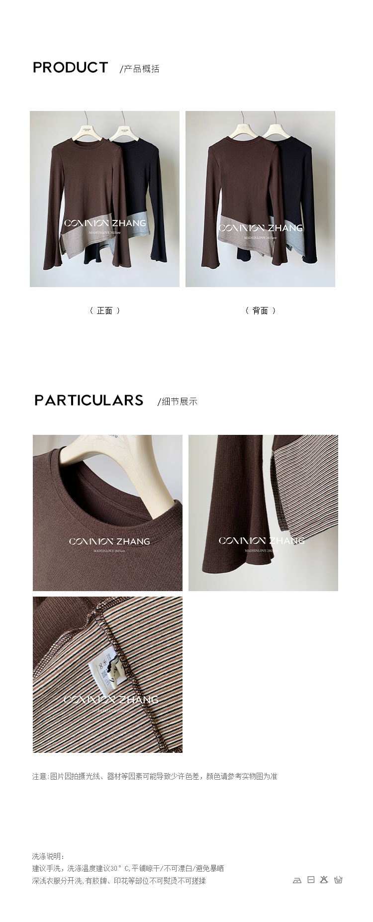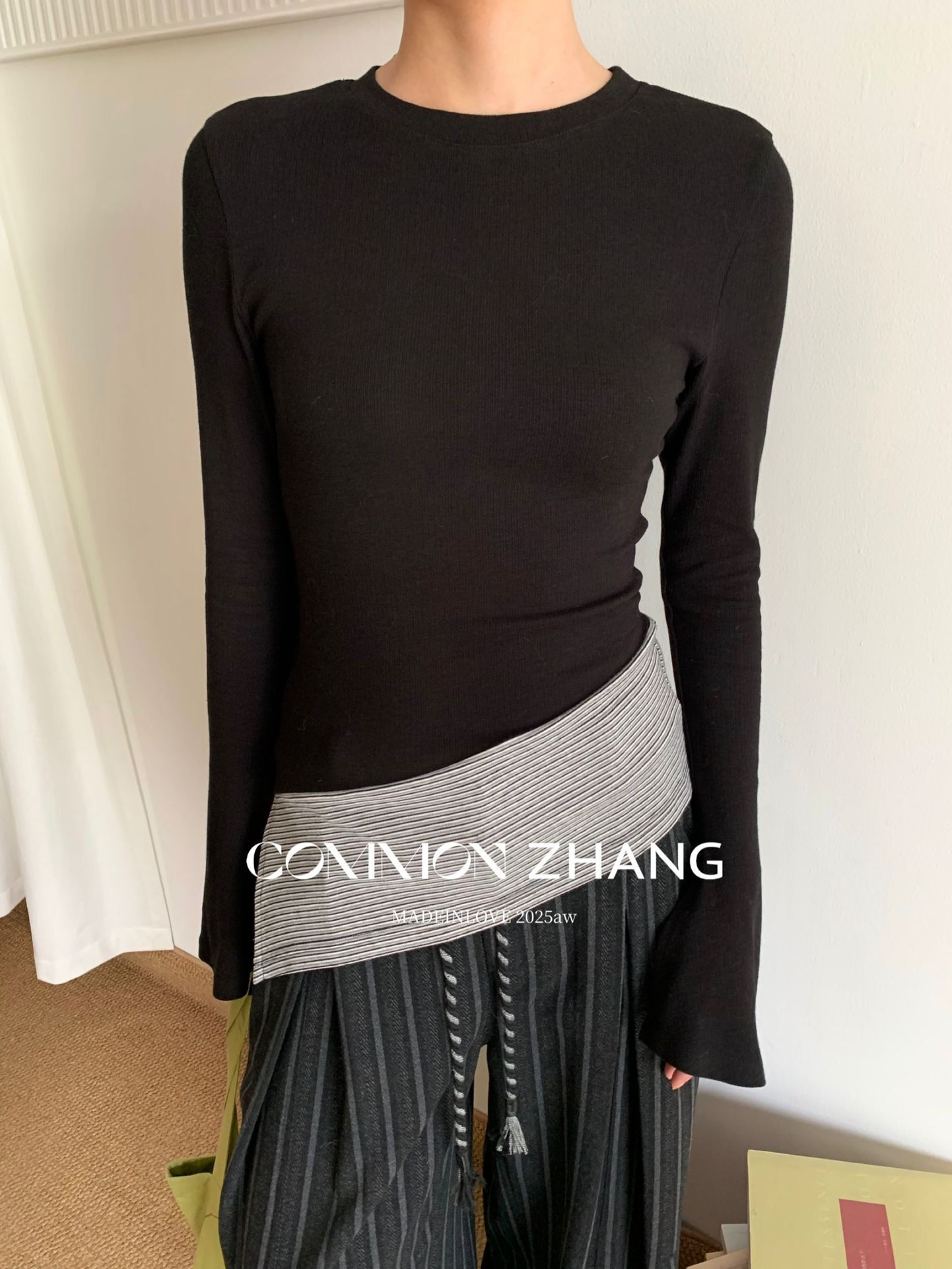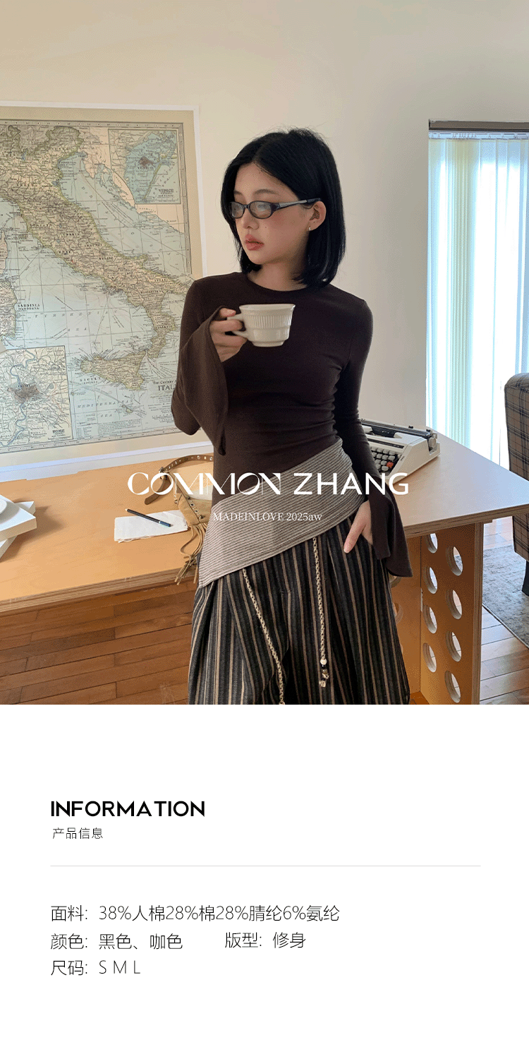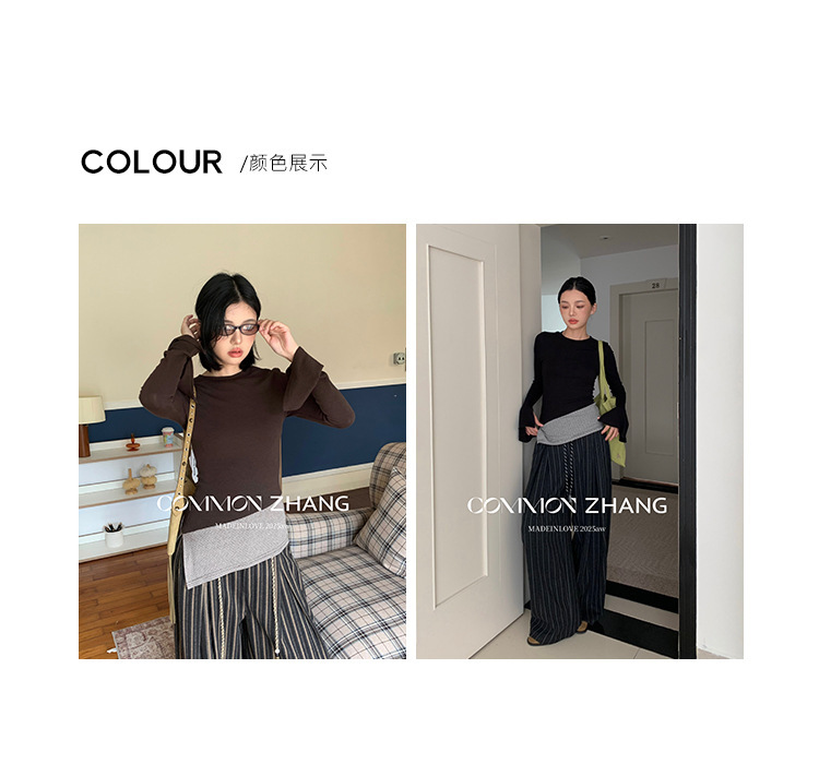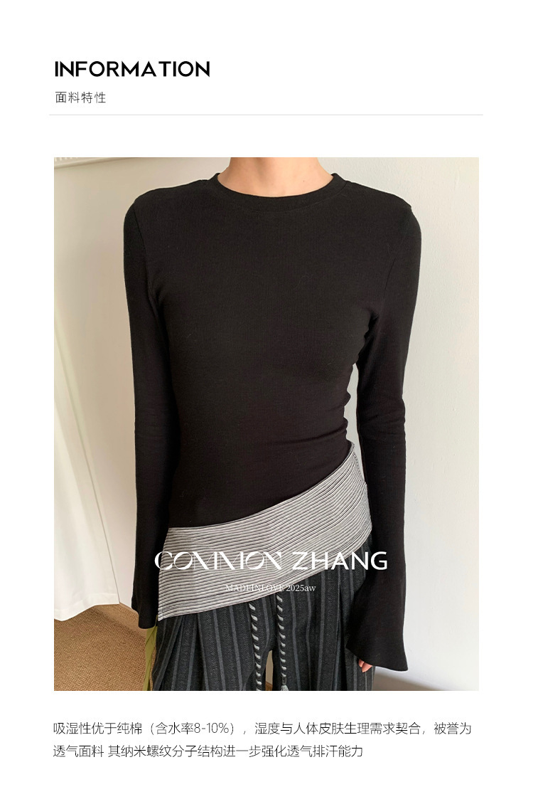 *o-ha-you*【FCZCB400098】秋冬喇叭袖撞色拼接針織衫女通勤長袖T恤打底衫-2色