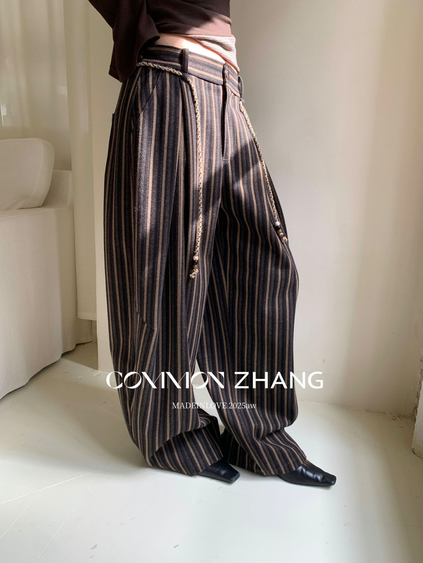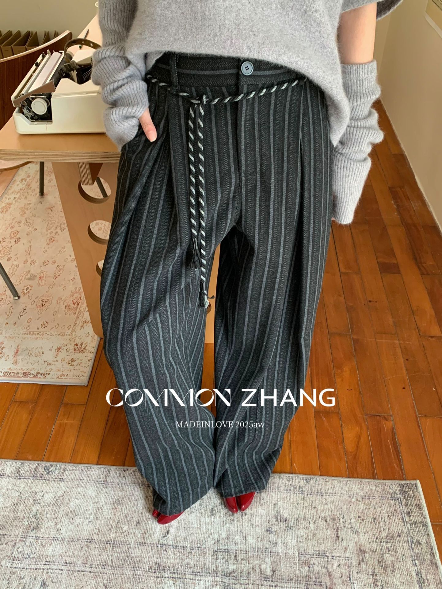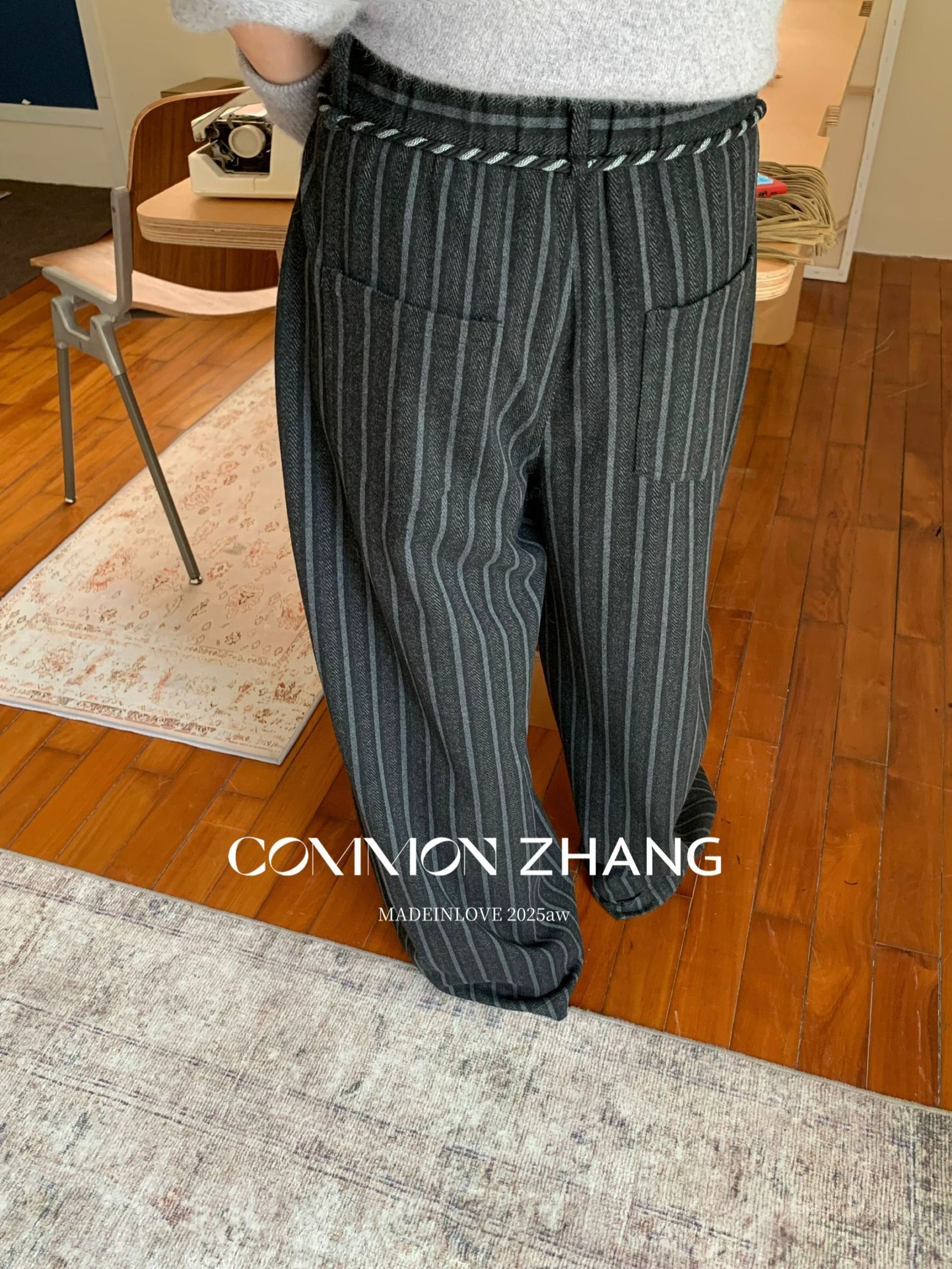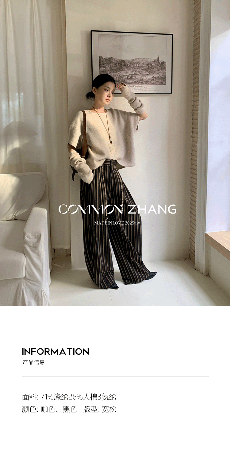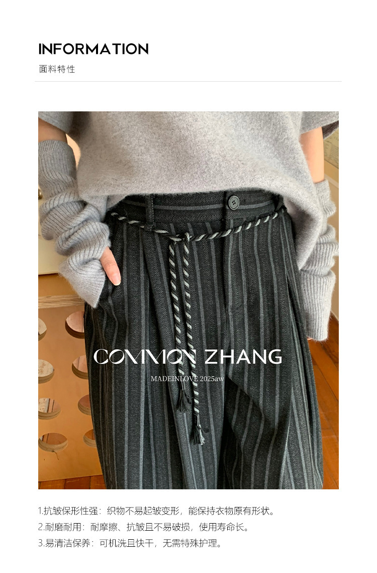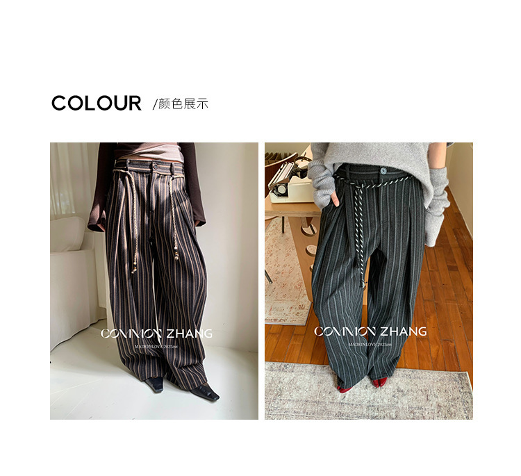 *o-ha-you*【FCZCB401117】秋冬粗呢條紋直筒闊腿褲女通勤百搭休閒褲-2色