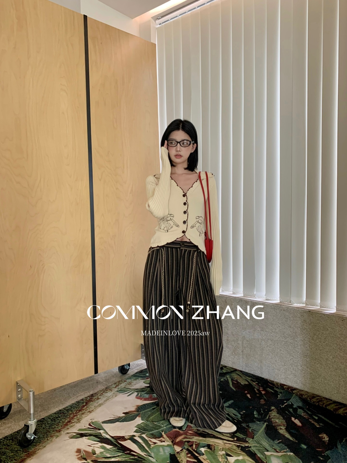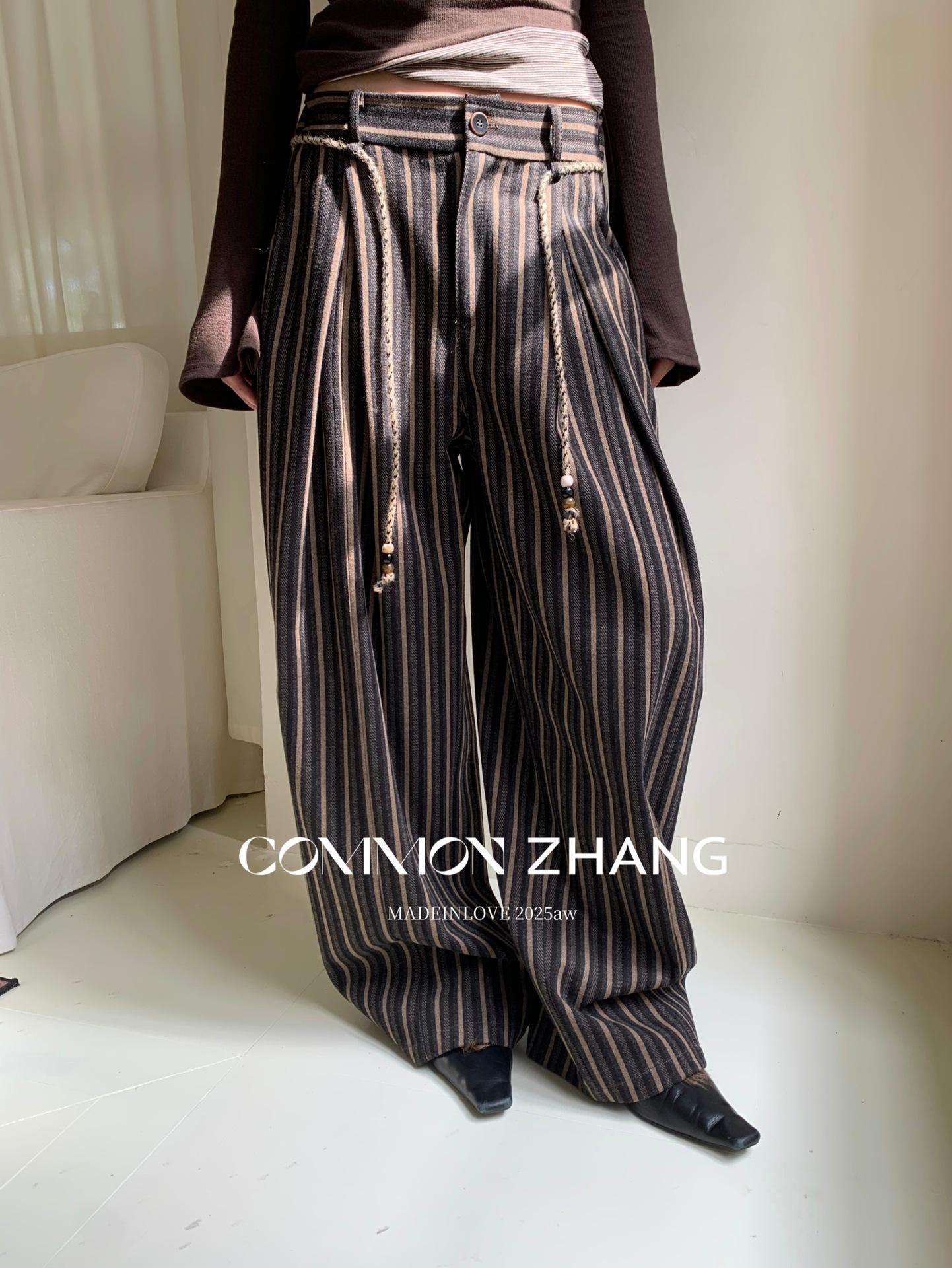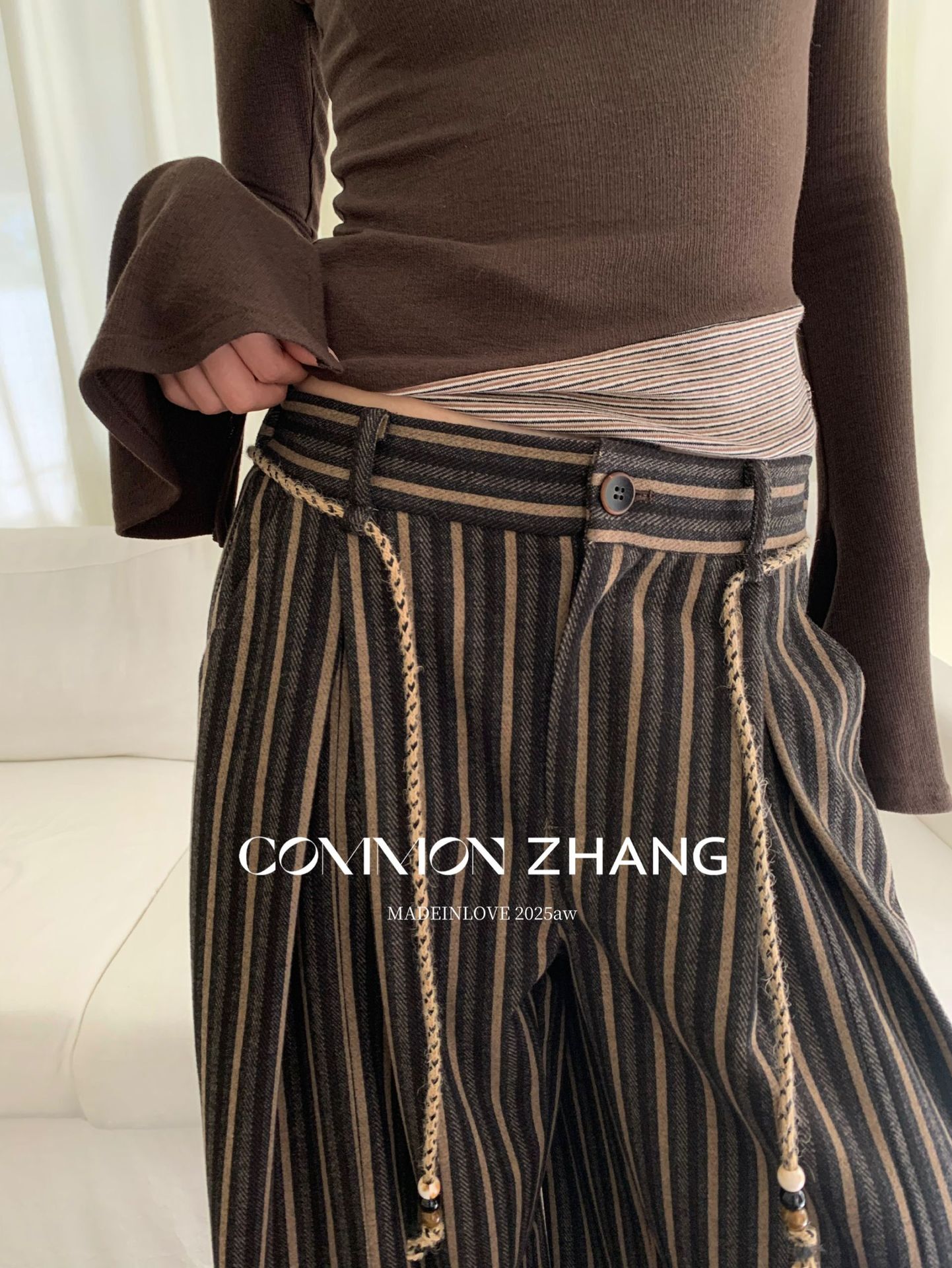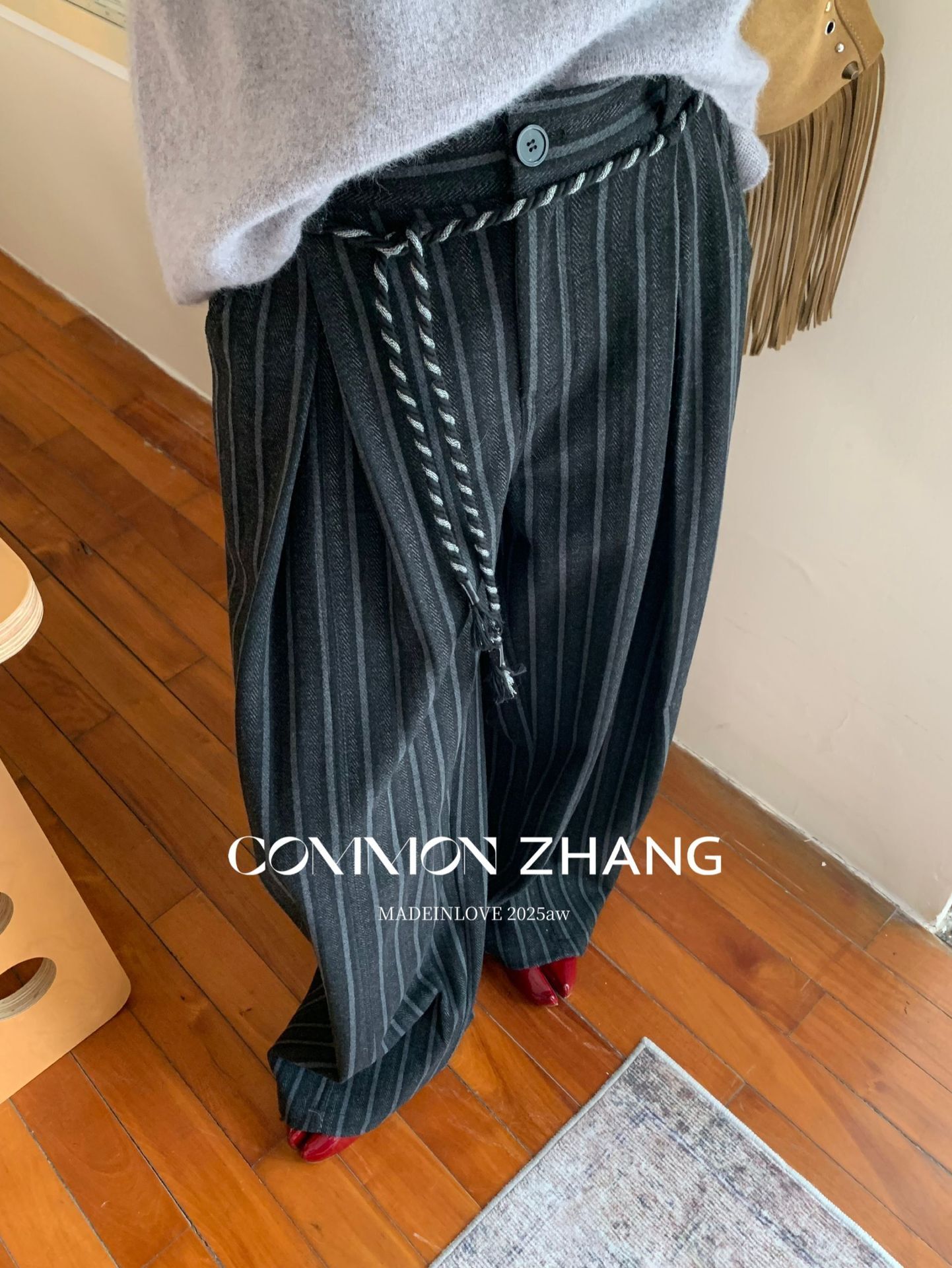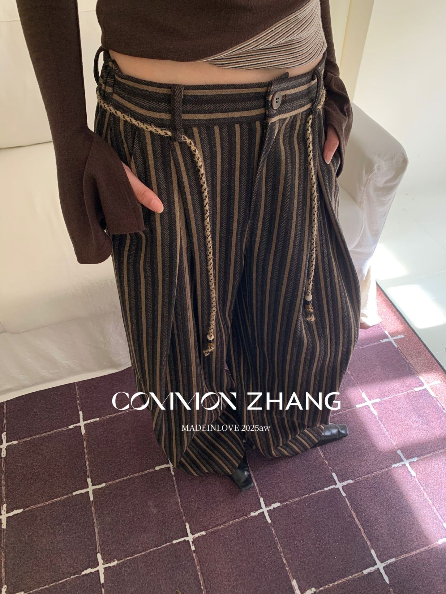 *o-ha-you*【FCZCB401117】秋冬粗呢條紋直筒闊腿褲女通勤百搭休閒褲-2色