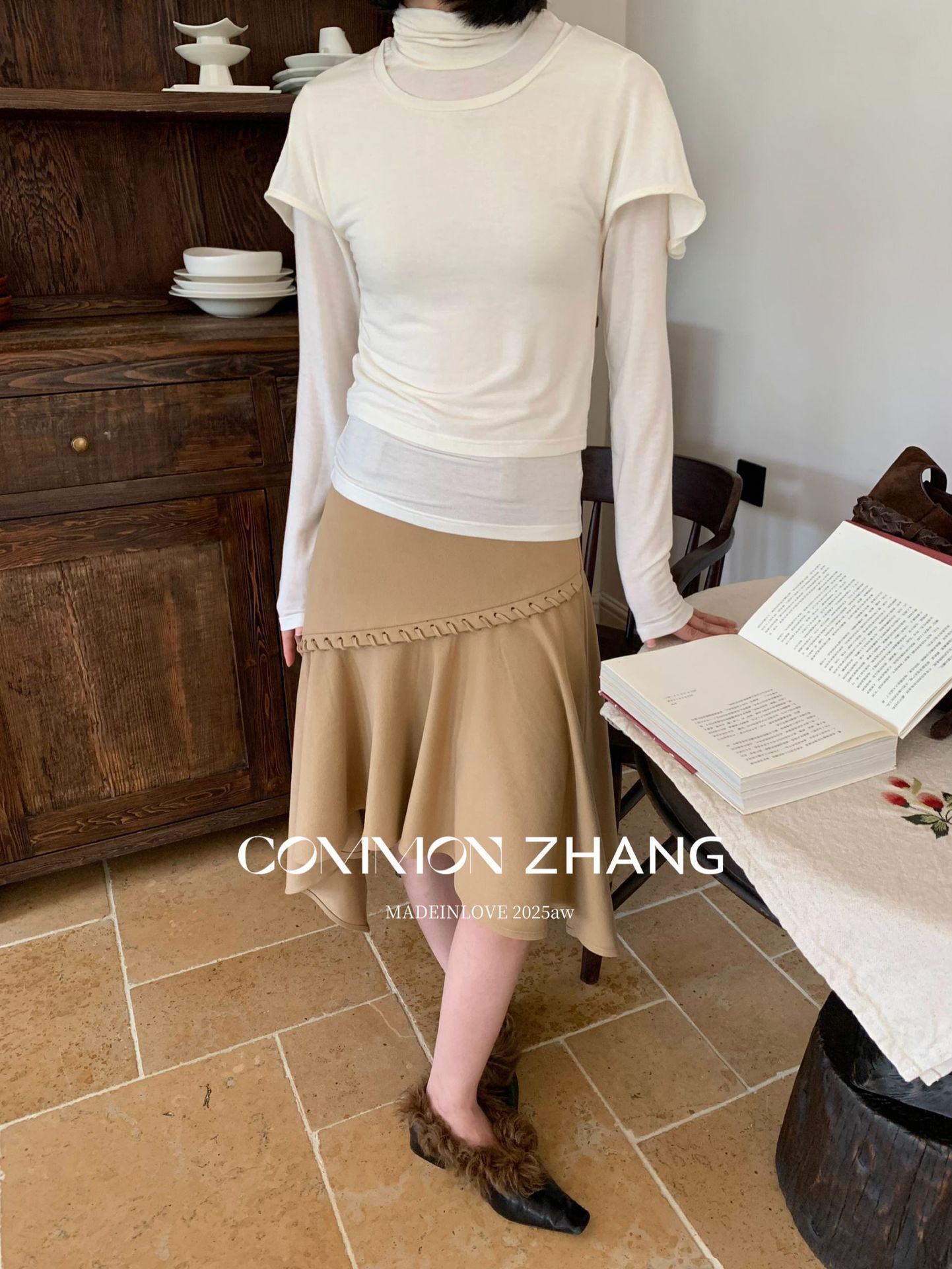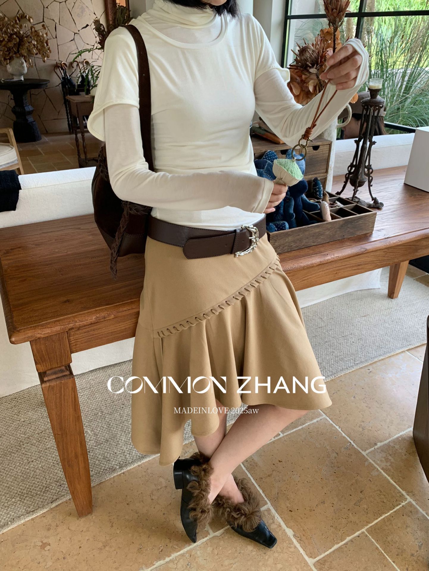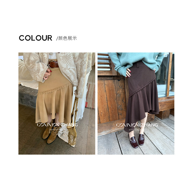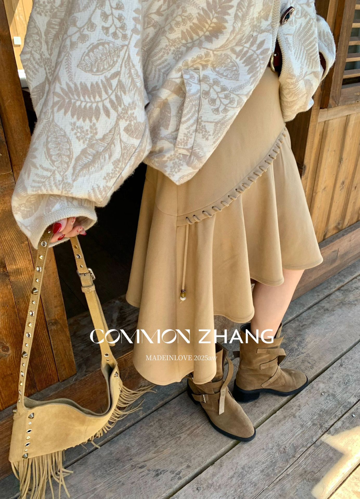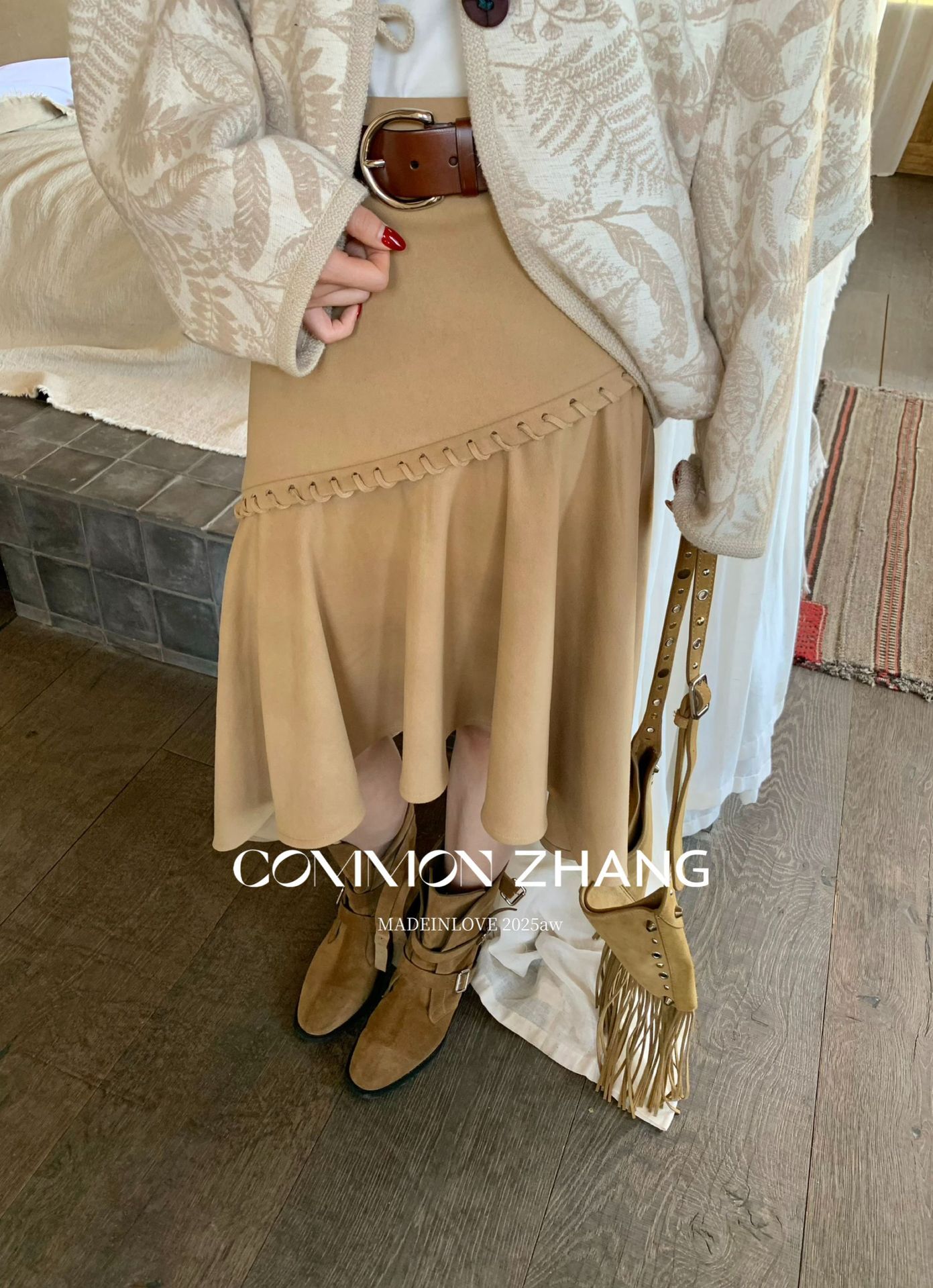 *o-ha-you*【FCZCB402080】秋冬麂皮絨不規則褶皺拼接半身裙女甜美A字百褶裙-2色