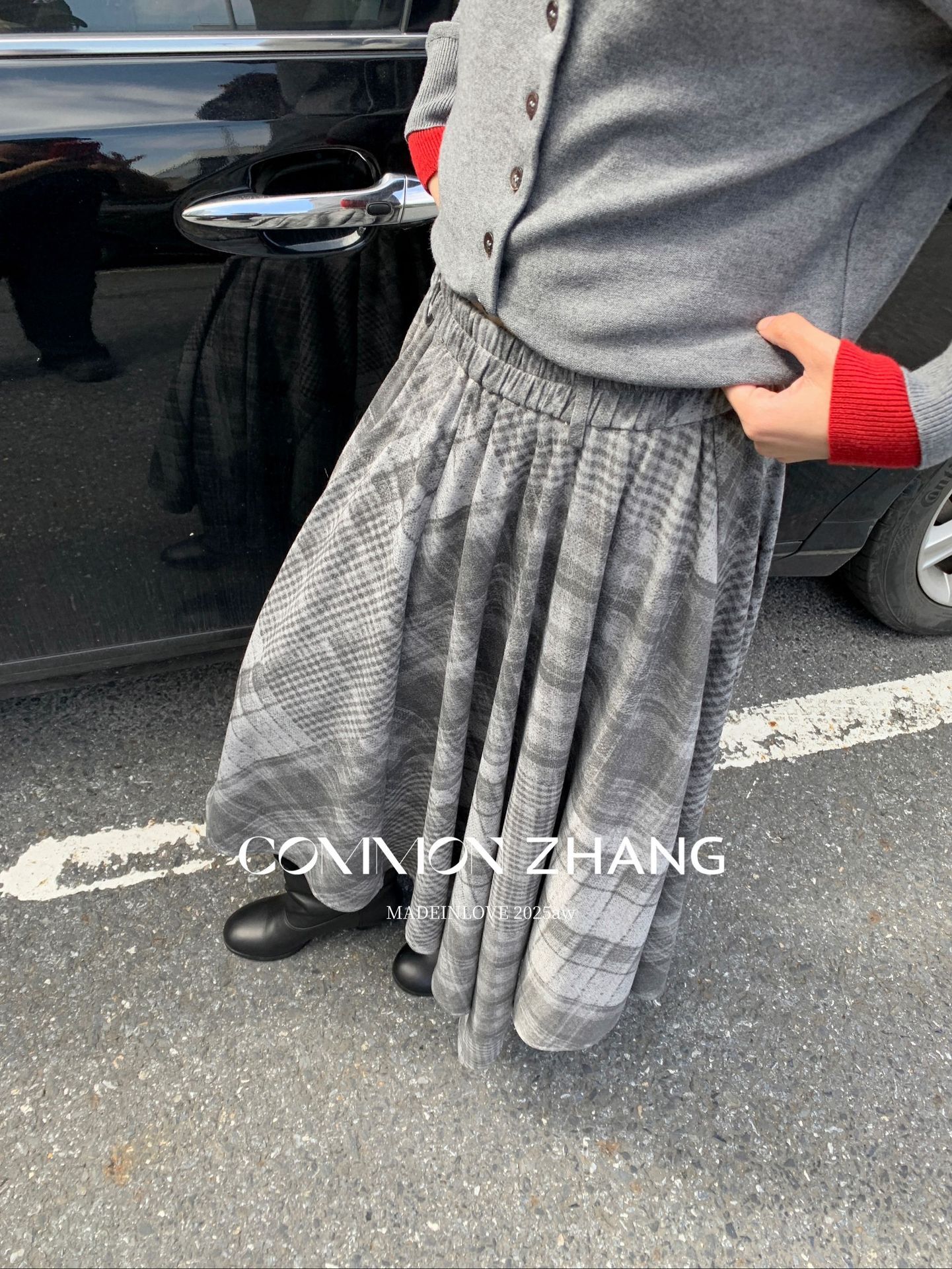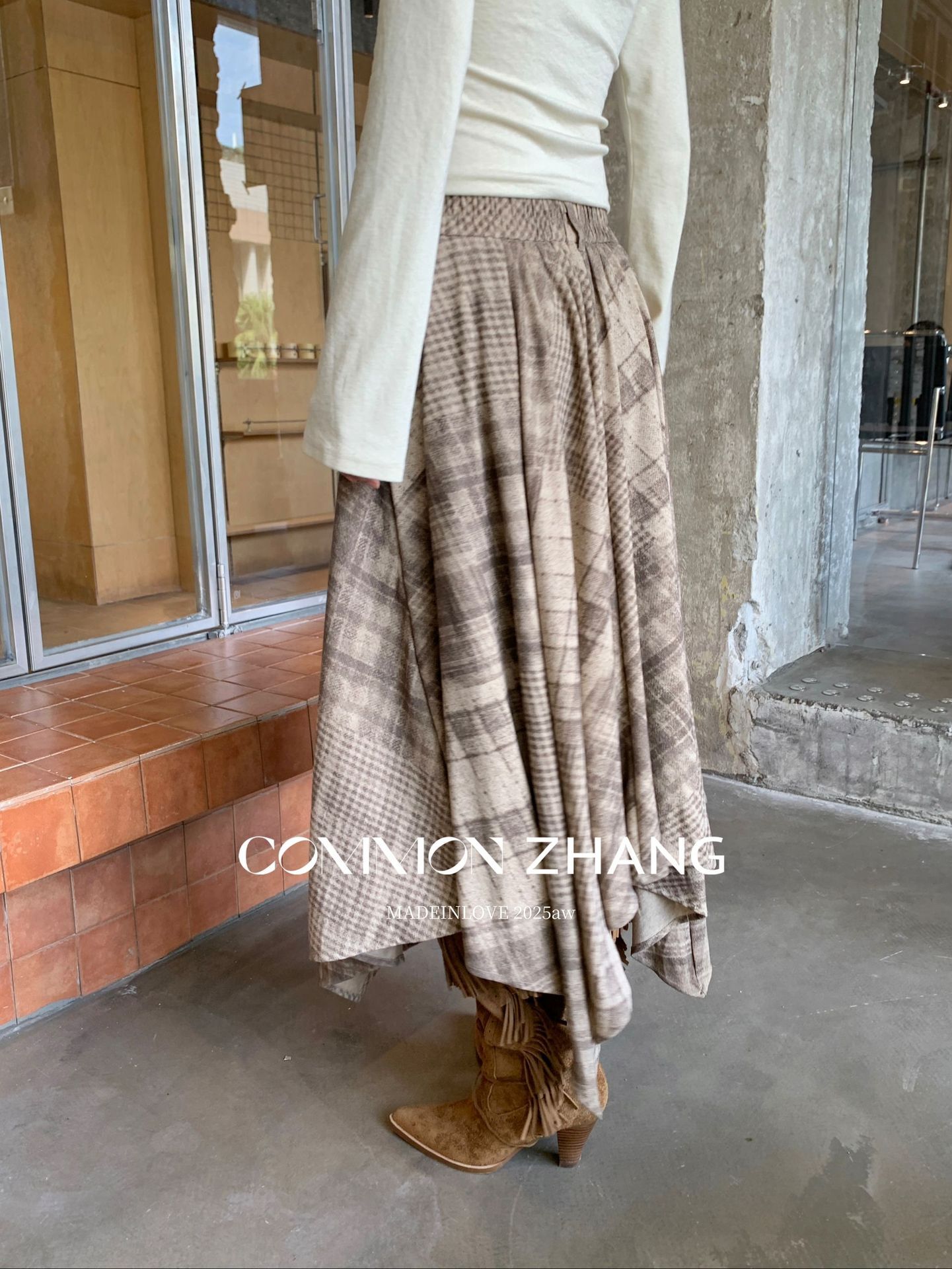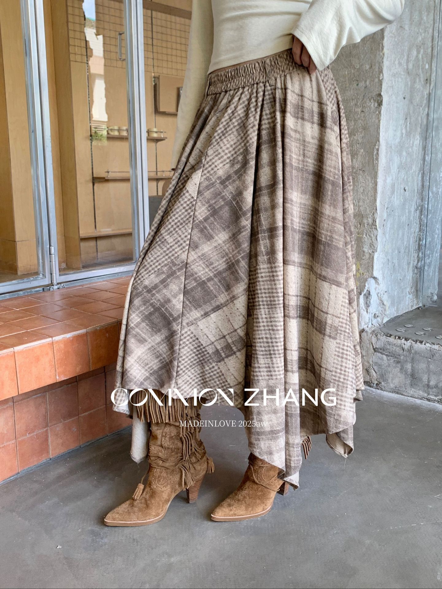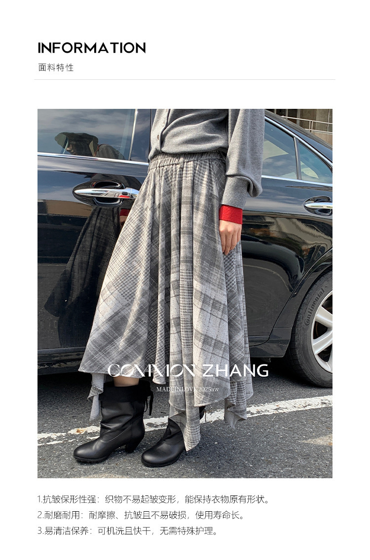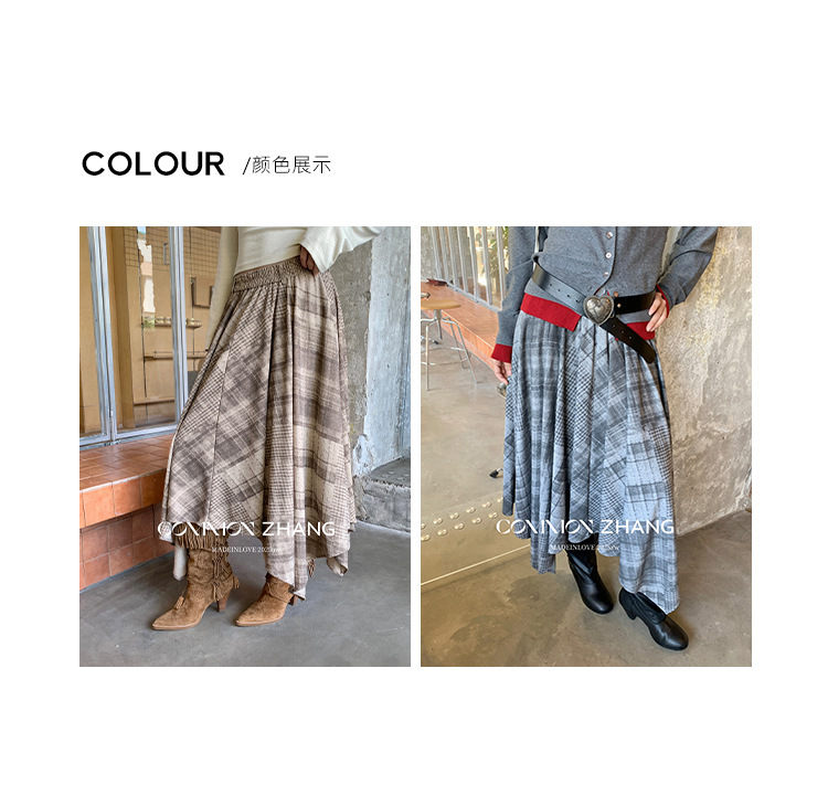 *o-ha-you*【FCZCB402271】秋冬不規則鬆緊腰A字百褶半身裙格子印花休閒長裙-2色