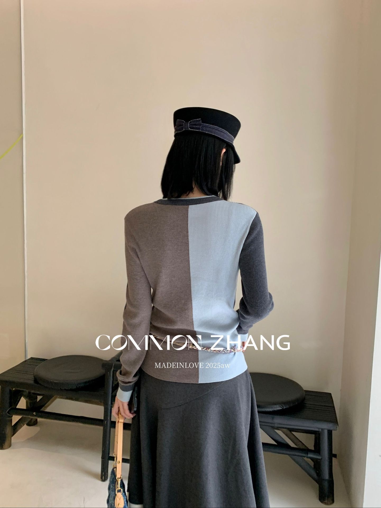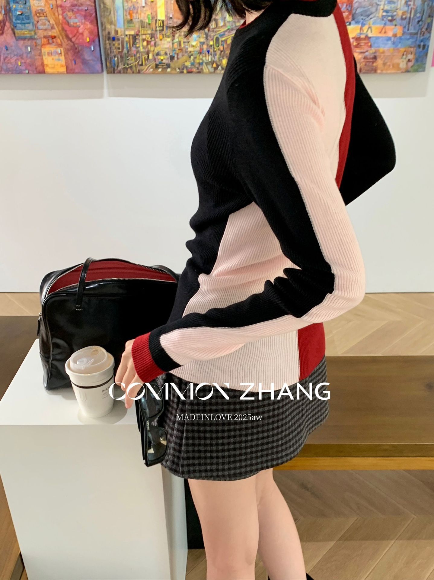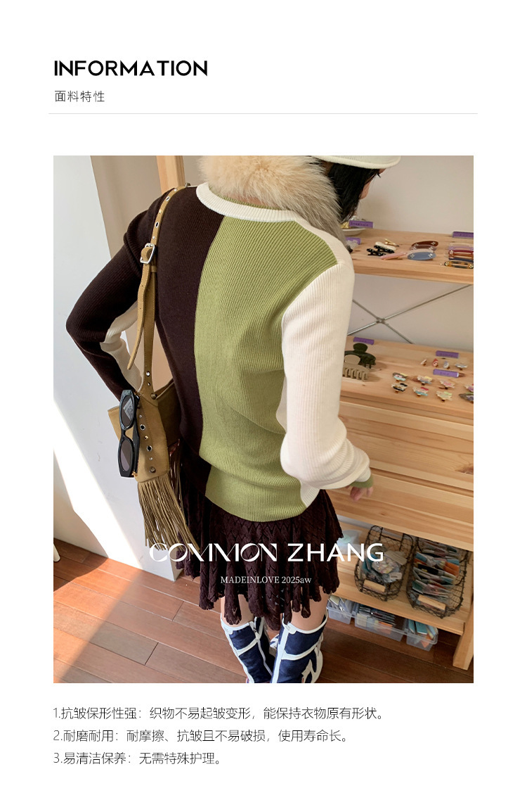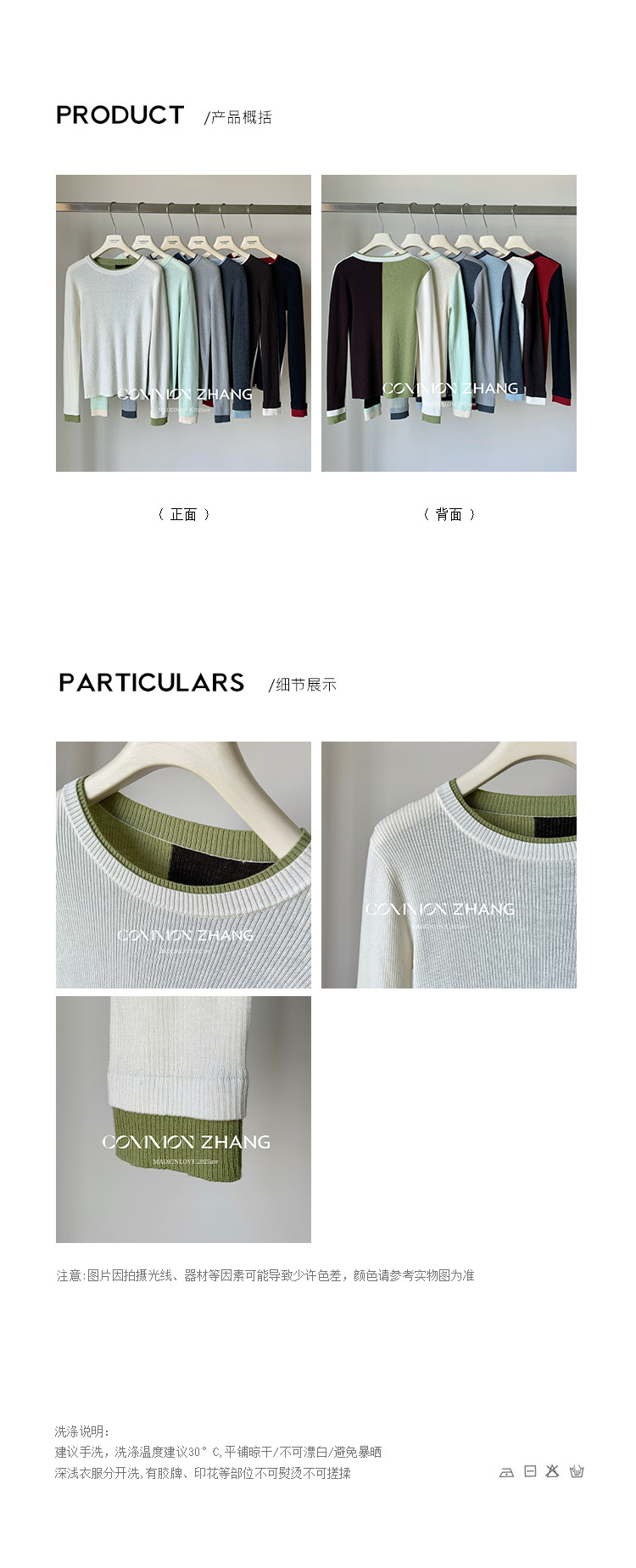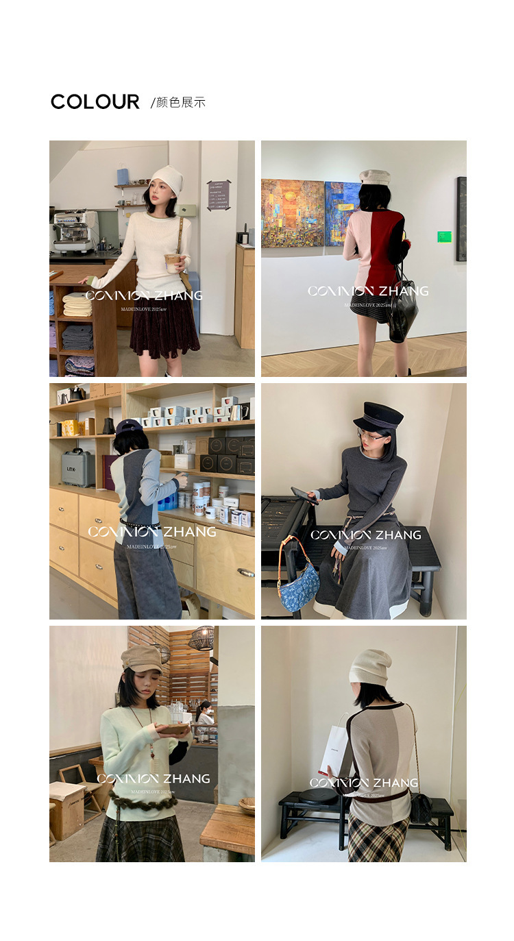 *o-ha-you*【FCZCB405043】秋冬設計感撞色拼接羊毛針織衫女修身打底衫毛衣-6色