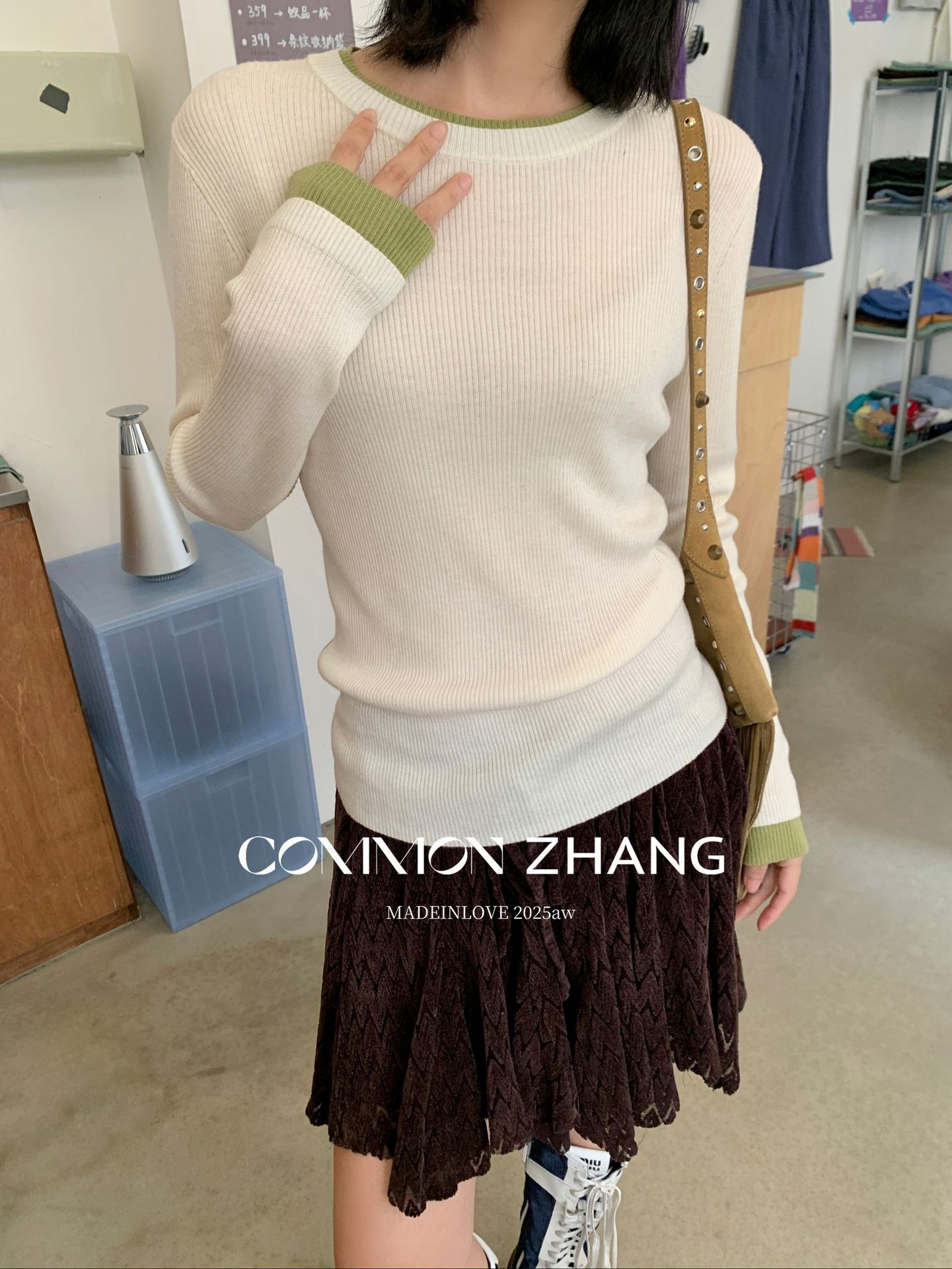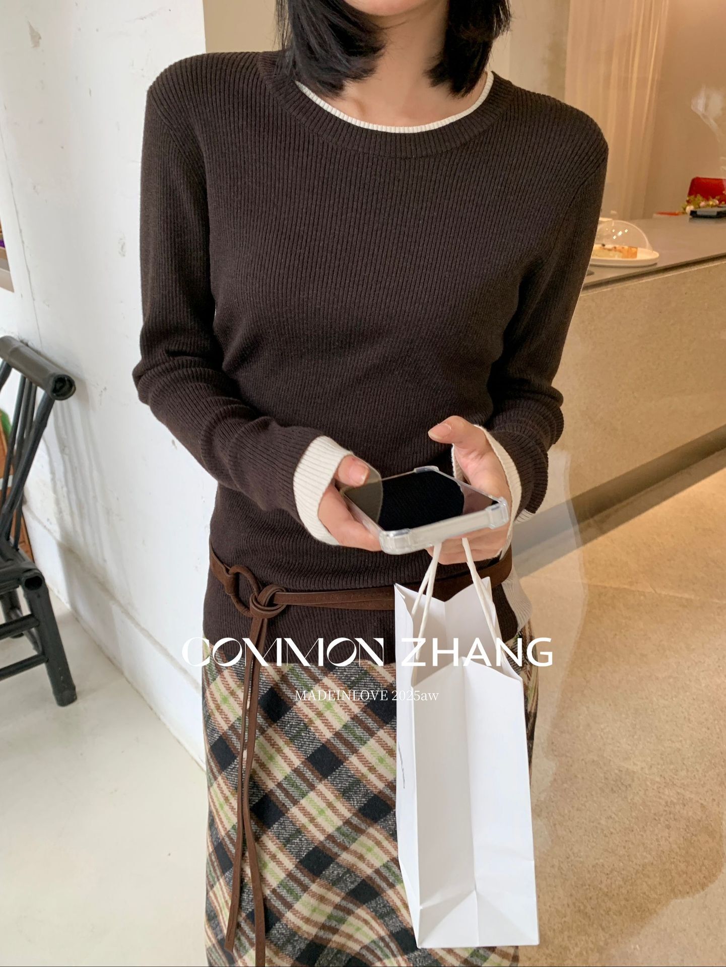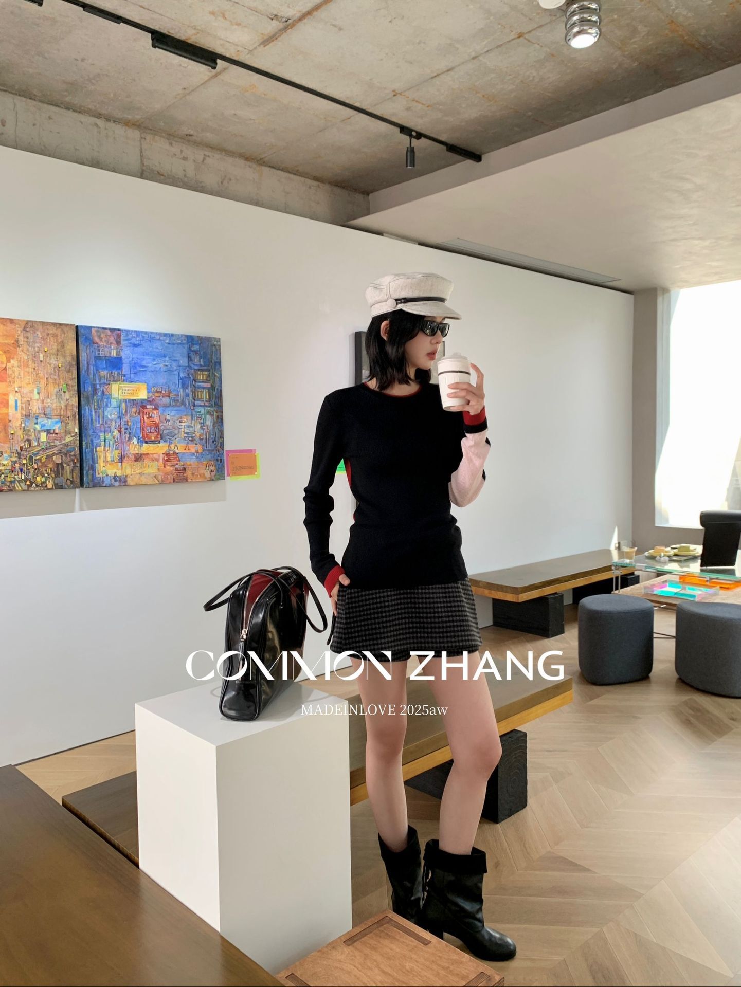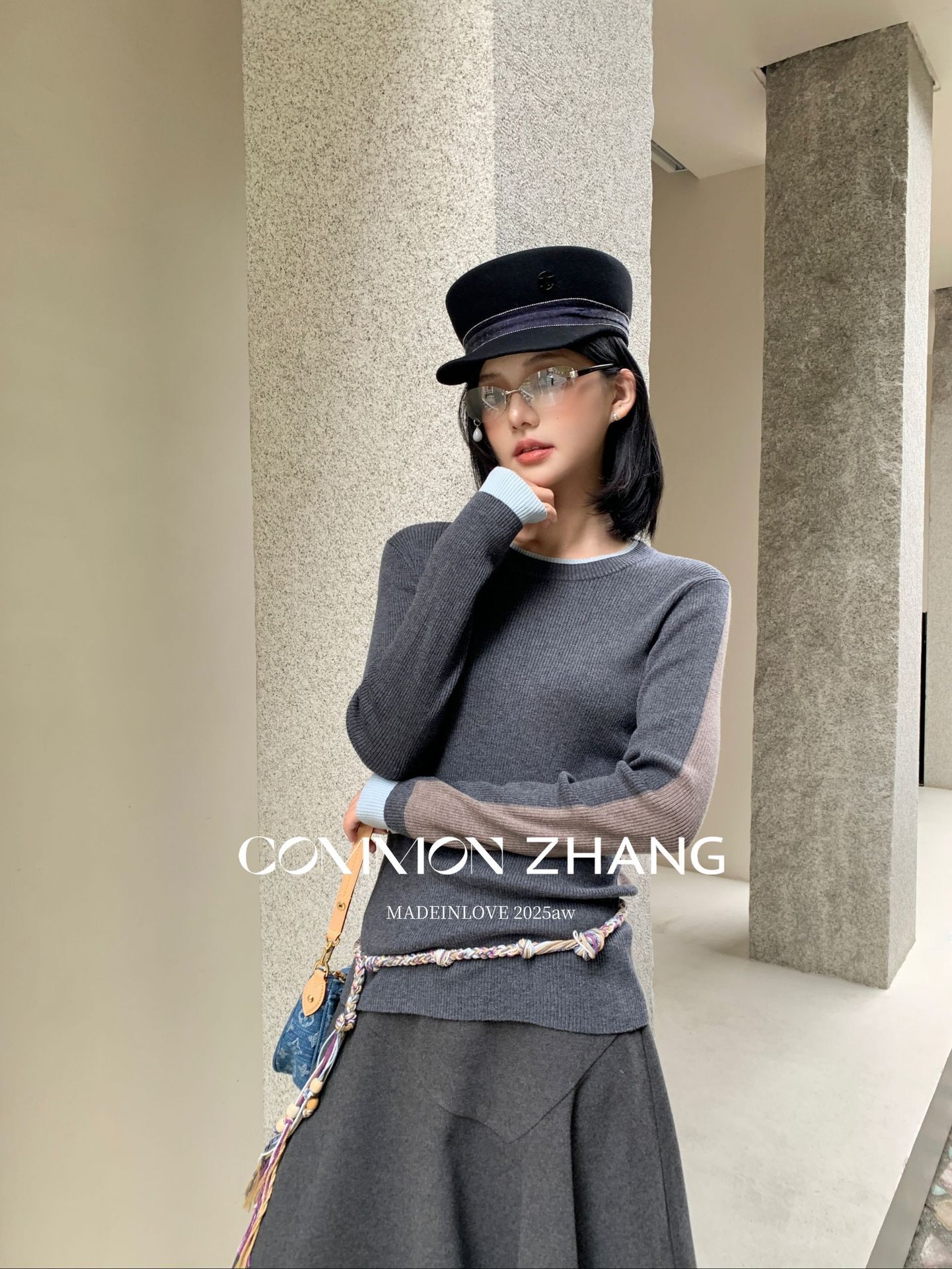 *o-ha-you*【FCZCB405043】秋冬設計感撞色拼接羊毛針織衫女修身打底衫毛衣-6色