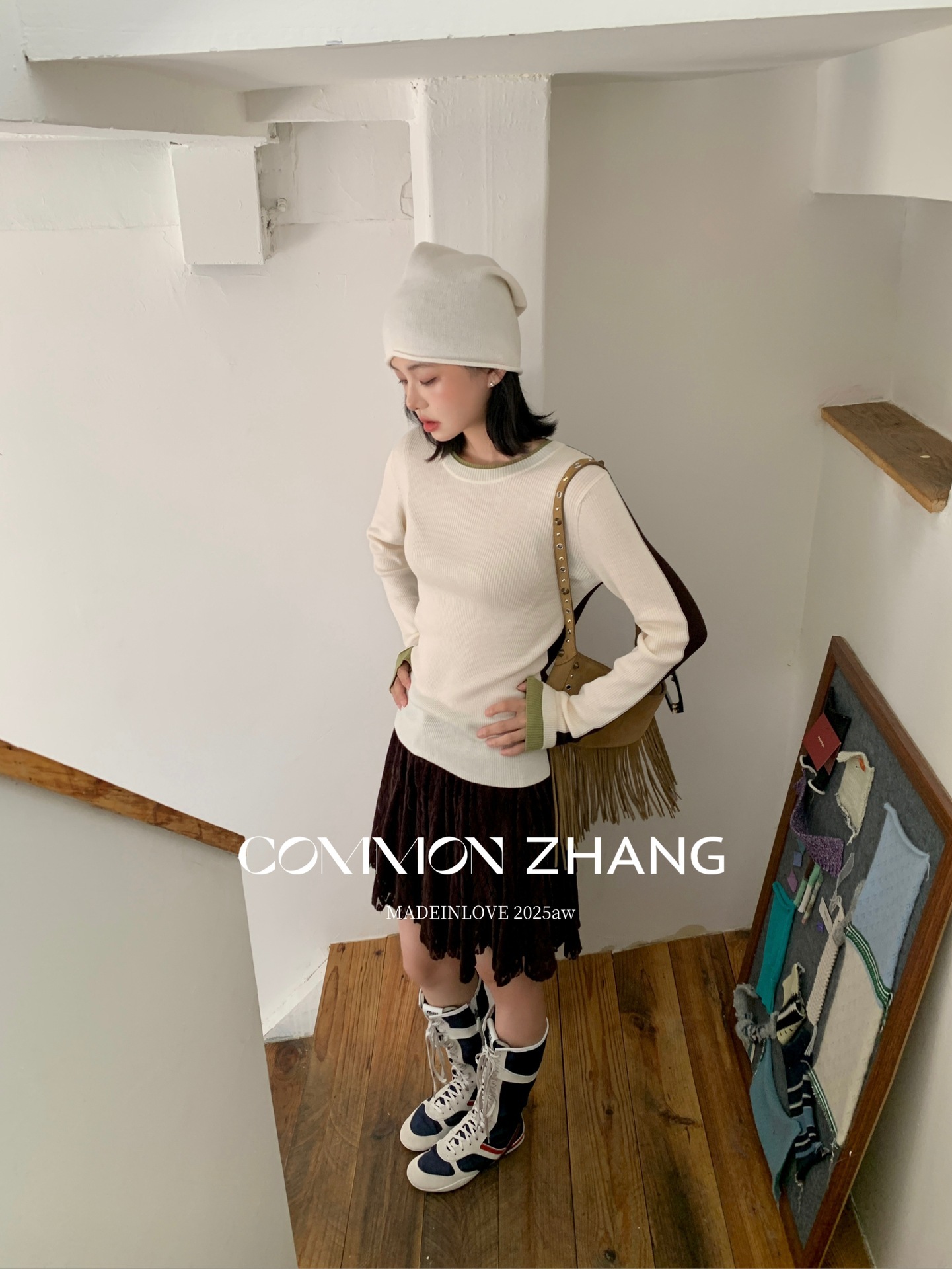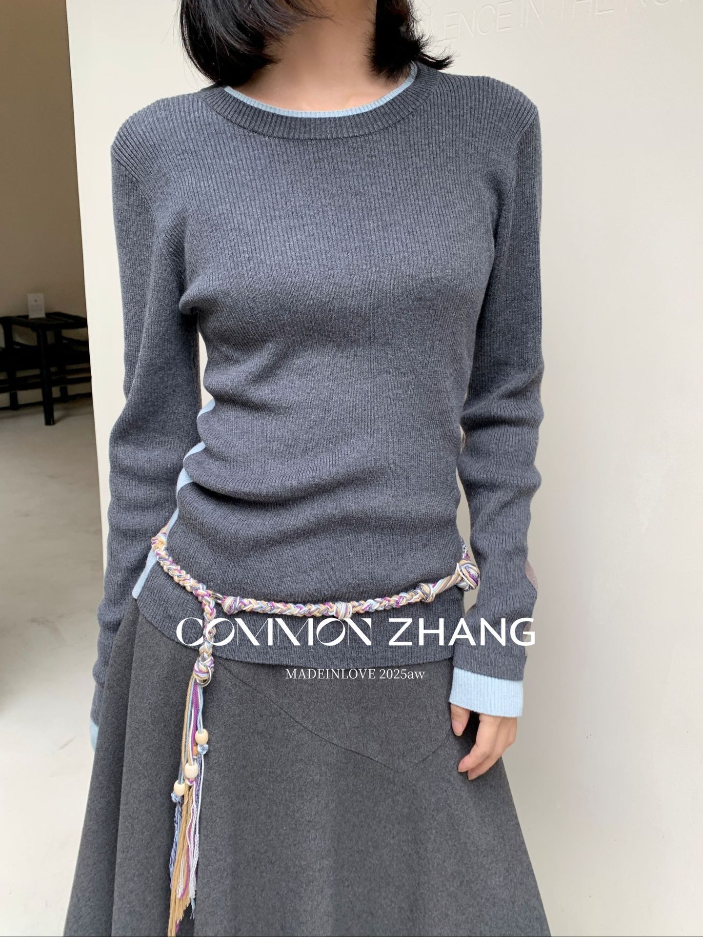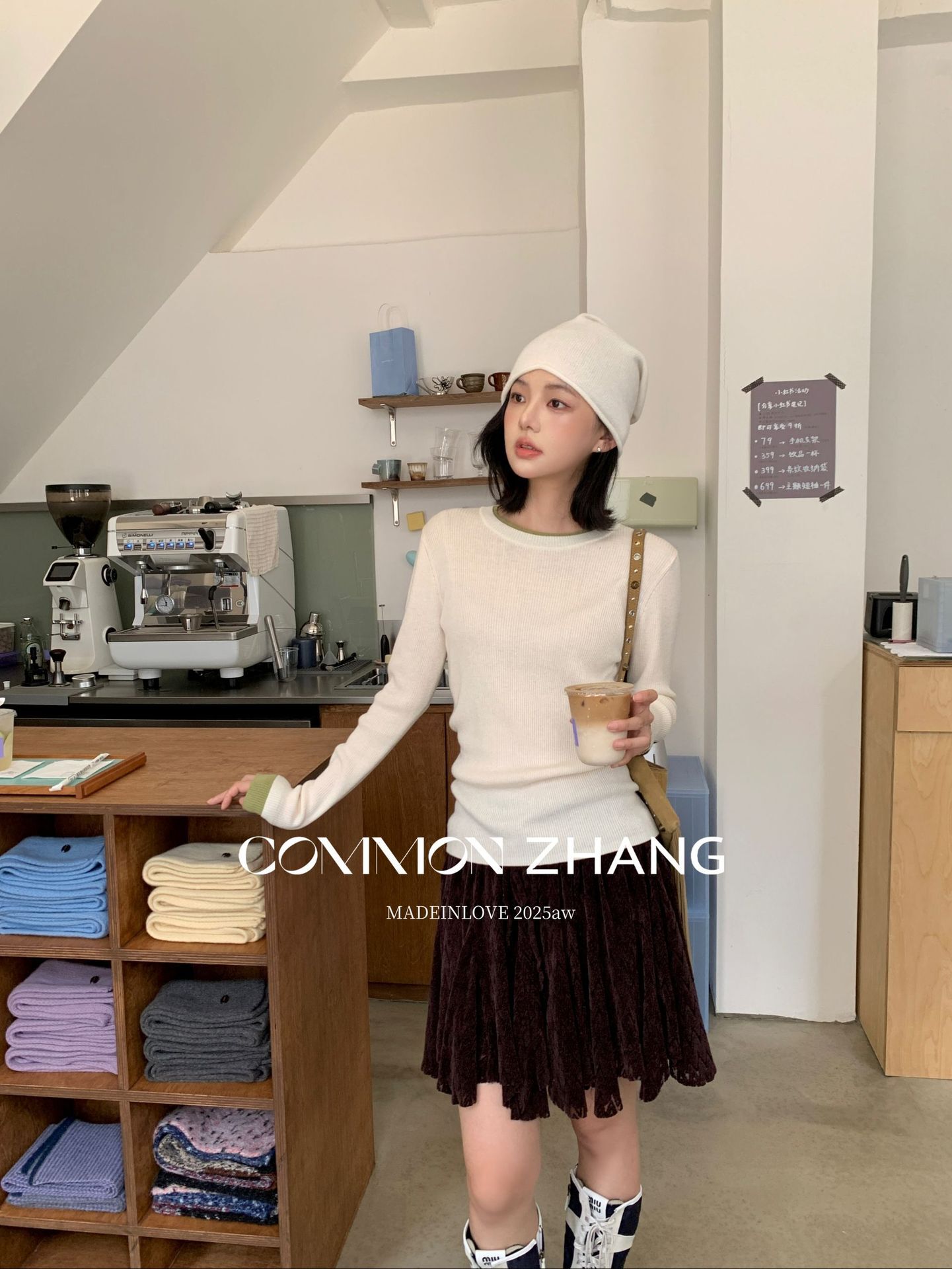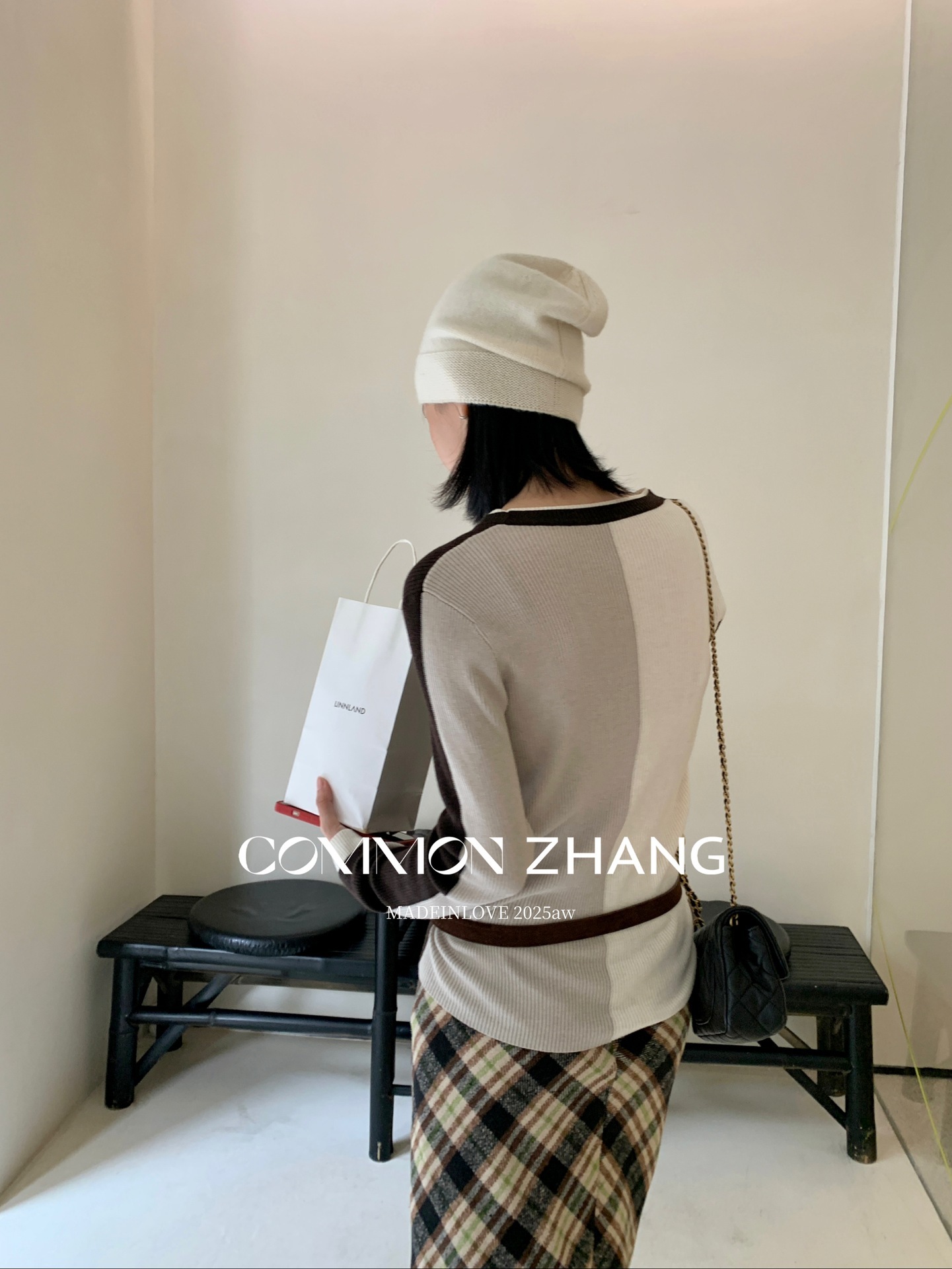 *o-ha-you*【FCZCB405043】秋冬設計感撞色拼接羊毛針織衫女修身打底衫毛衣-6色